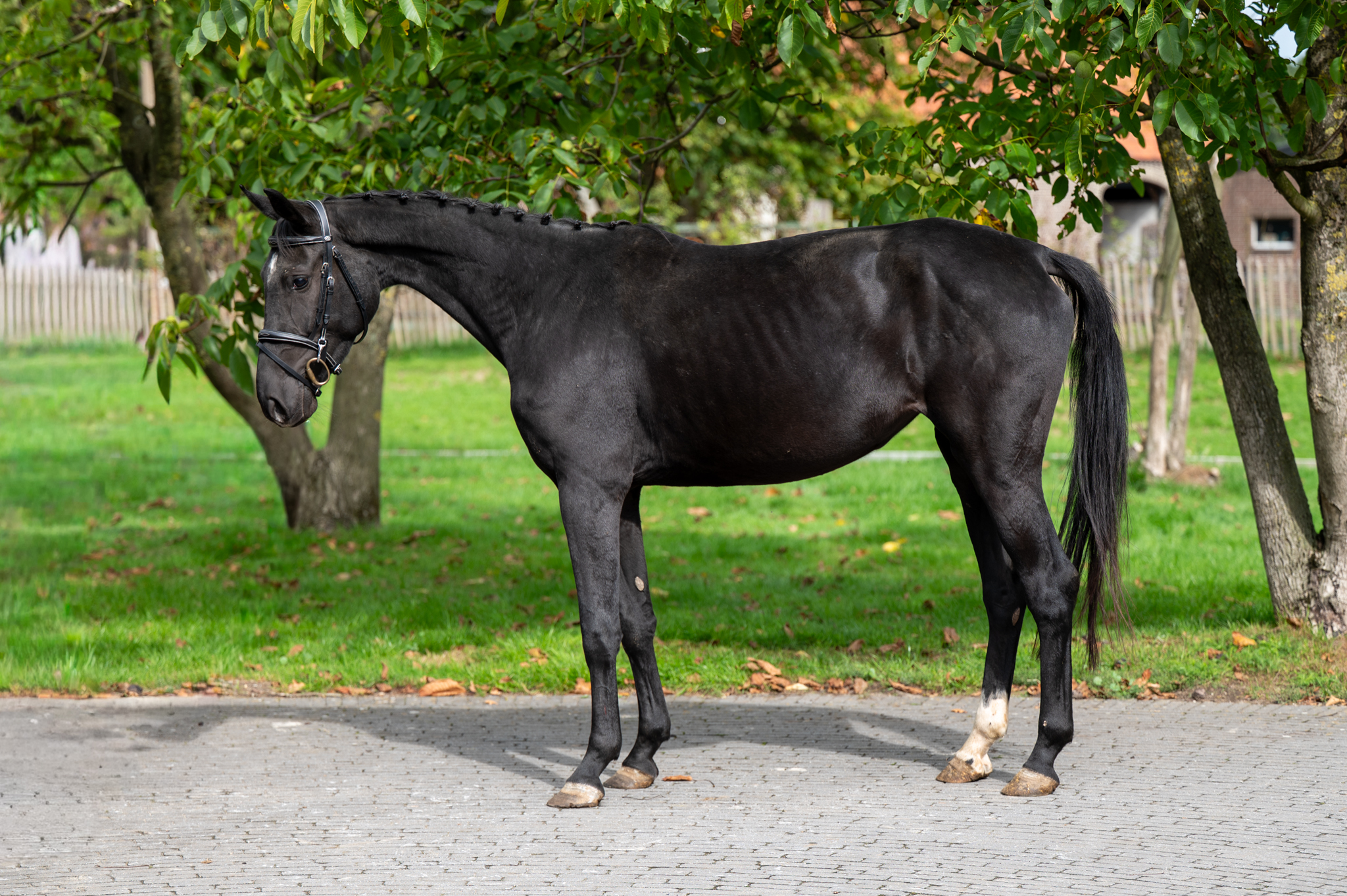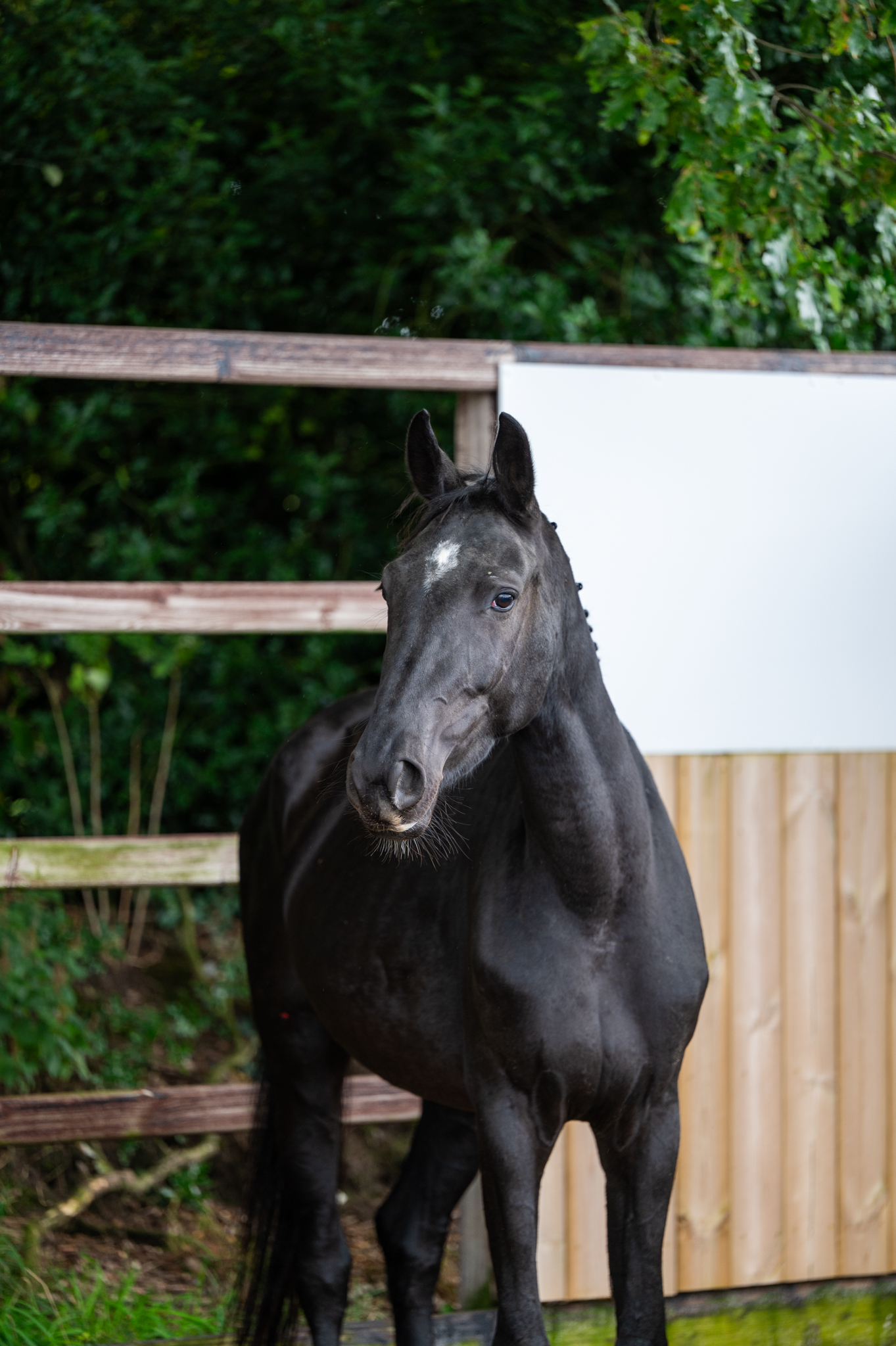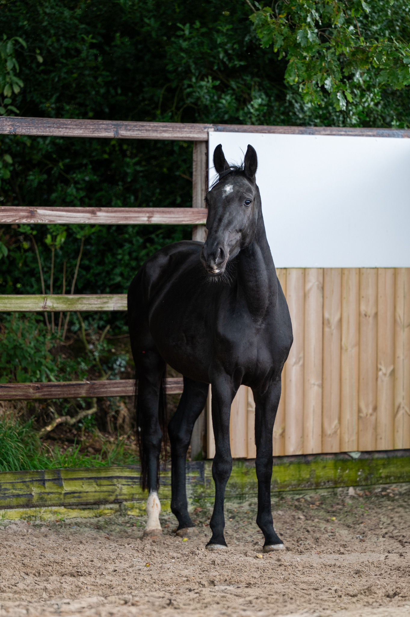 Cometa Kto Z is een compacte jonge zwarte merrie met goede bloedlijnen en een vriendelijk, mensgericht karakter. Ze is niet groot, maar goed gebouwd en beweegt energiek en lichtvoetig. Tijdens vrijspringen laat ze veel enthousiasme en talent zien. Cometa kent al het hoofdstel en het zadel, is een paar keer bereden en staat klaar om verder gewerkt te worden. Ze neemt alles rustig en gemakkelijk op. In de toekomst zal Cometa een fijn paard zijn voor een kleinere volwassen ruiter of als overgang van pony naar paard. Cometa Kto Z is a compact young black mare with good bloodlines and a friendly, people-oriented character. She is not very tall, but well-proportioned and shows plenty of energy with light, elegant movements. During free-jumping training, she displays enthusiasm and good ability. Cometa is already familiar with bridle and saddle, has been sat on a few times, and is ready to be fully started under saddle. She handles everything calmly and with ease. In the future, Cometa will make a lovely partner for a smaller adult rider or for a smooth transition from ponies to horses. Cometa Kto Z est une jeune jument noire compacte avec de bonnes origines et un caractère amical, orienté vers l’homme. Elle n’est pas très grande, mais bien proportionnée, énergique et dotée de mouvements légers et élégants. Lors des séances de saut en liberté, elle montre de l’enthousiasme et de belles aptitudes. Cometa connaît déjà le filet et la selle, a déjà été montée quelques fois et est prête à être débourrée complètement. Elle accepte tout calmement et sans difficulté. À l’avenir, Cometa sera une excellente partenaire pour un cavalier adulte de petite taille ou pour une transition en douceur du poney au cheval. Cometa Kto Z ist eine kompakte junge schwarze Stute mit guter Abstammung und einem freundlichen, menschenbezogenen Charakter. Sie ist nicht sehr groß, aber gut proportioniert und bewegt sich energisch und leichtfüßig. Beim Freispringen zeigt sie viel Begeisterung und Talent. Cometa kennt bereits Trense und Sattel, wurde schon ein paar Mal aufgesessen und ist bereit, vollständig angeritten zu werden. Sie nimmt alles ruhig und gelassen an. In Zukunft wird Cometa ein tolles Pferd für eine kleinere erwachsene Reiterin oder als Übergang vom Pony zum Großpferd sein.