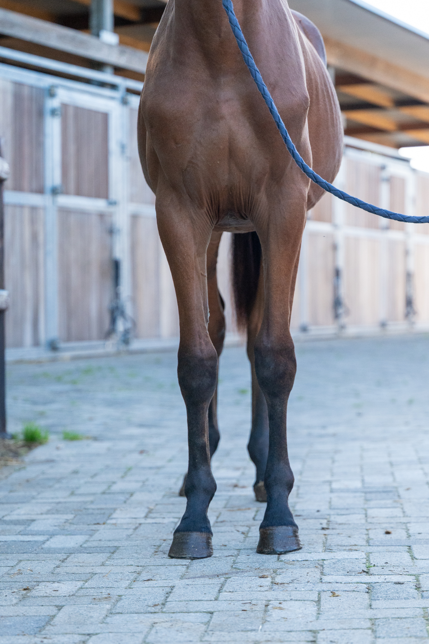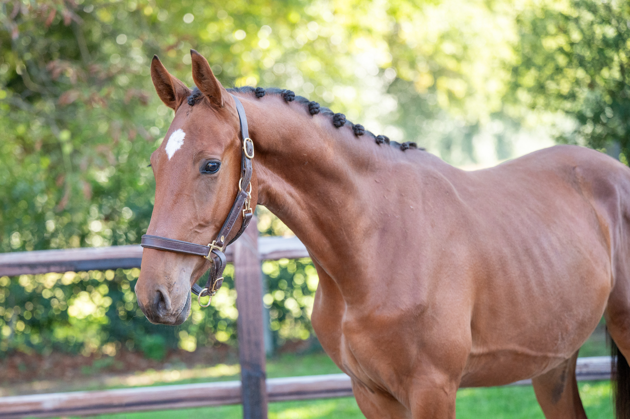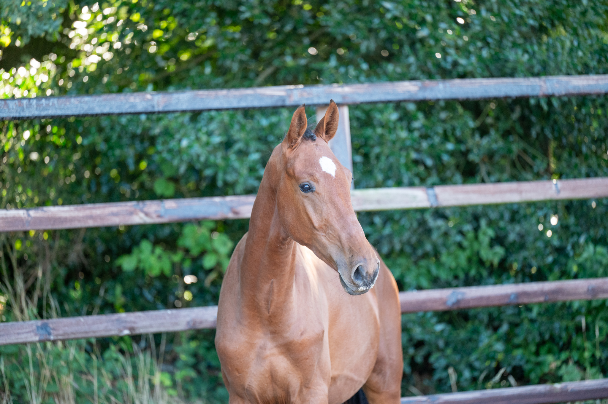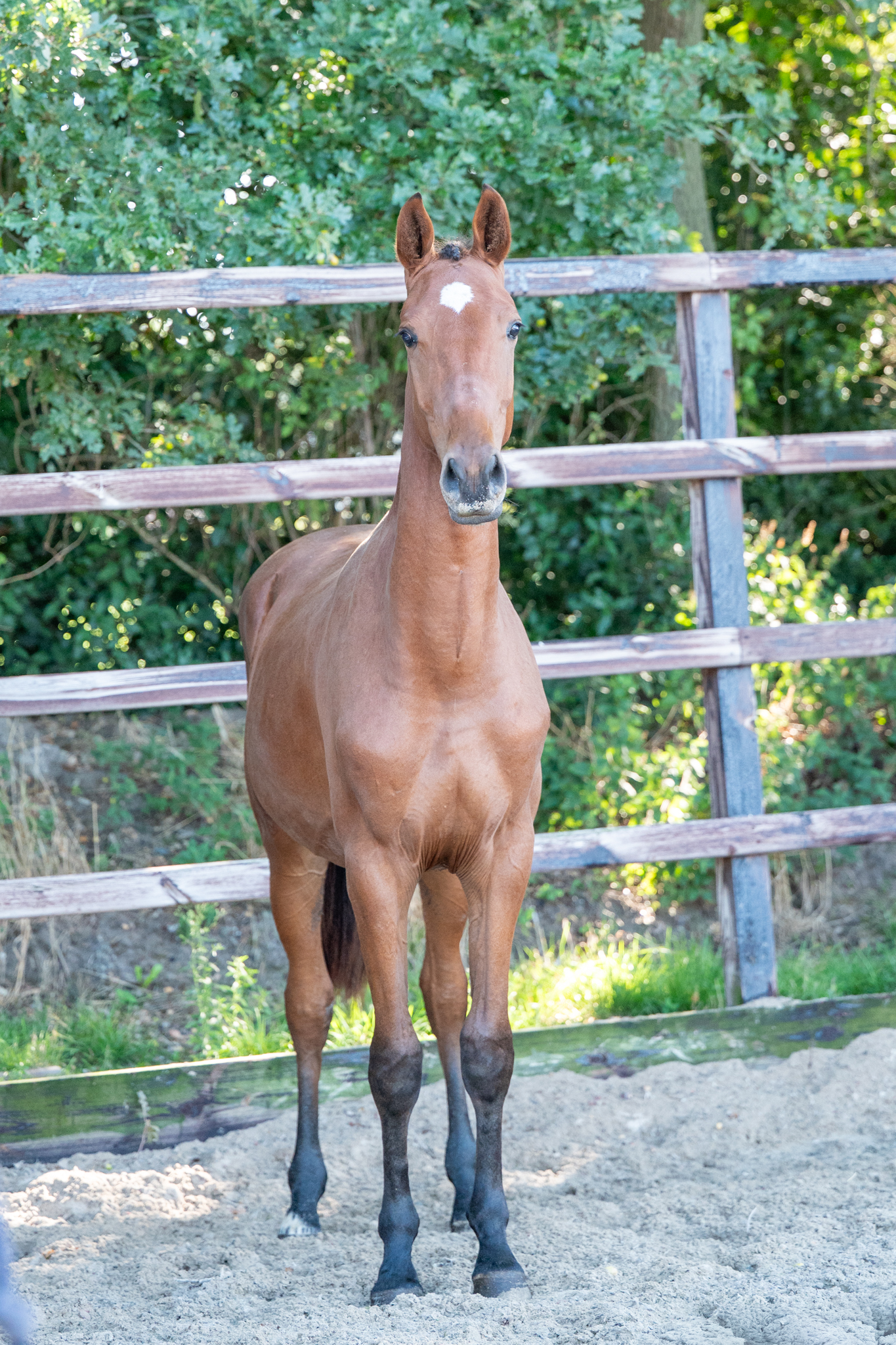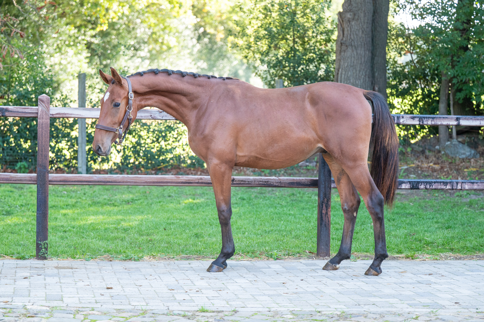 Chaccaroo is een zoon van Coolkid (v.Colman) uit een Eldorado vd Zeshoek x Chacco Blue moeder. Uit deze kleine stam komen al enkele interessante jongelingen, waaronder de moeder die in vrijheid zeer goed springt en nu onlangs op stal is gekomen om zadelmak te maken. Deze 2-jarige hengst is nog wat jeugdig, maar bewijst zich als een paard met de juiste instelling, een natuurlijke voorzichtigheid en een slimme techniek op de hindernis. Daarbovenop heeft hij een gebalanceerde galop wat een pluspunt is voor de toekomst. Volgens ons een paard met potentie dat vandaag door een liefhebber naar waarde geschat moet worden. Chaccaroo is a son of Coolkid (by Colman) out of a dam by Eldorado van de Zeshoek x Chacco Blue. This small family has already produced some interesting young horses, including the dam, who jumps very well in free jumping and has recently been brought into the stable to be started under saddle. This 2-year-old colt is still a bit young but already shows himself as a horse with the right attitude, natural carefulness, and smart technique over fences. Additionally, he has a balanced canter, which is a real asset for the future. In our opinion, he is a horse with potential that today deserves to be appreciated by a knowledgeable enthusiast. Chaccaroo est un fils de Coolkid (par Colman), issu d’une mère par Eldorado van de Zeshoek x Chacco Blue. Cette petite lignée a déjà produit quelques jeunes chevaux intéressants, dont la mère, qui saute très bien en liberté et vient récemment d’être mise au travail sous la selle. Ce poulain de 2 ans est encore jeune, mais il se montre déjà comme un cheval avec la bonne attitude, une prudence naturelle et une technique intelligente à l’obstacle. De plus, il possède un galop équilibré, un vrai atout pour l’avenir. Selon nous, c’est un cheval avec du potentiel qui mérite dès aujourd’hui d’être apprécié par un cavalier connaisseur. Chaccaroo ist ein Sohn von Coolkid (v. Colman) aus einer Mutterlinie Eldorado van de Zeshoek x Chacco Blue. Aus dieser kleinen Linie stammen bereits einige interessante Jungpferde, darunter die Mutter, die im Freispringen sehr gut springt und kürzlich in den Stall gekommen ist, um angeritten zu werden. Dieser 2-jährige Hengst ist noch etwas jung, zeigt sich jedoch bereits als Pferd mit der richtigen Einstellung, natürlicher Vorsicht und intelligenter Technik über Hindernisse. Außerdem verfügt er über einen ausbalancierten Galopp, was für die Zukunft ein großer Vorteil ist. Unserer Meinung nach ist er ein Pferd mit Potenzial, das heute von einem erfahrenen Liebhaber geschätzt werden sollte.
