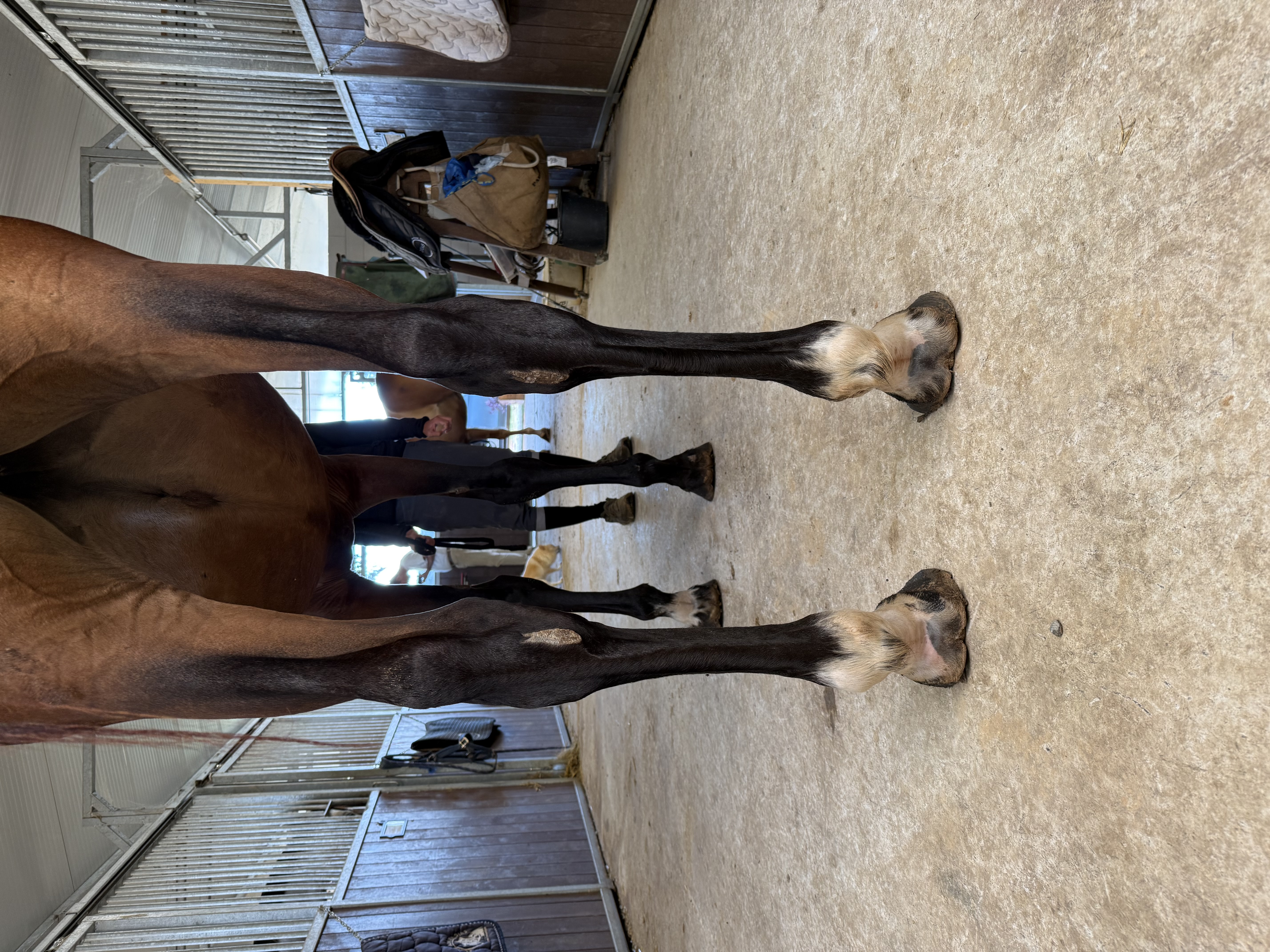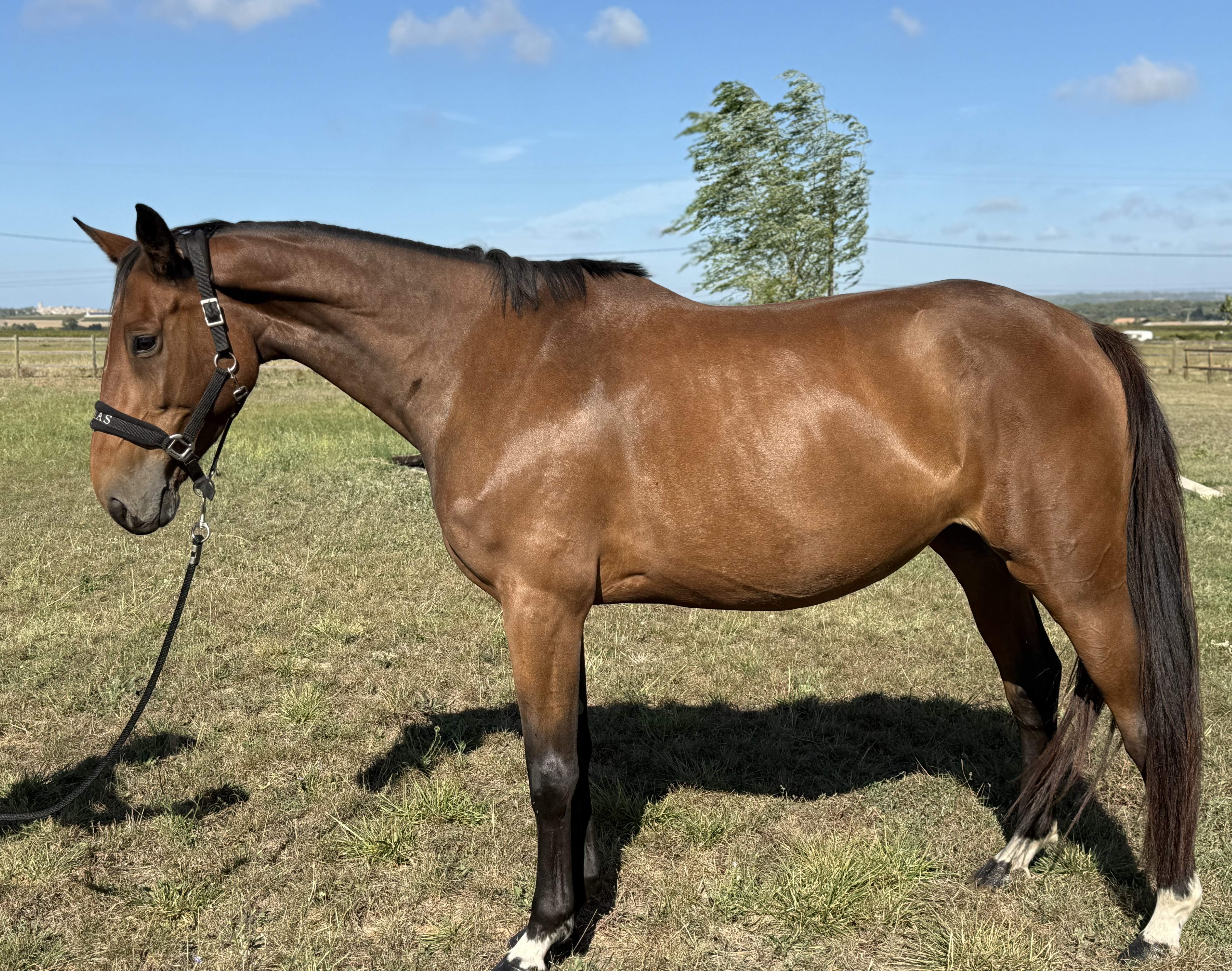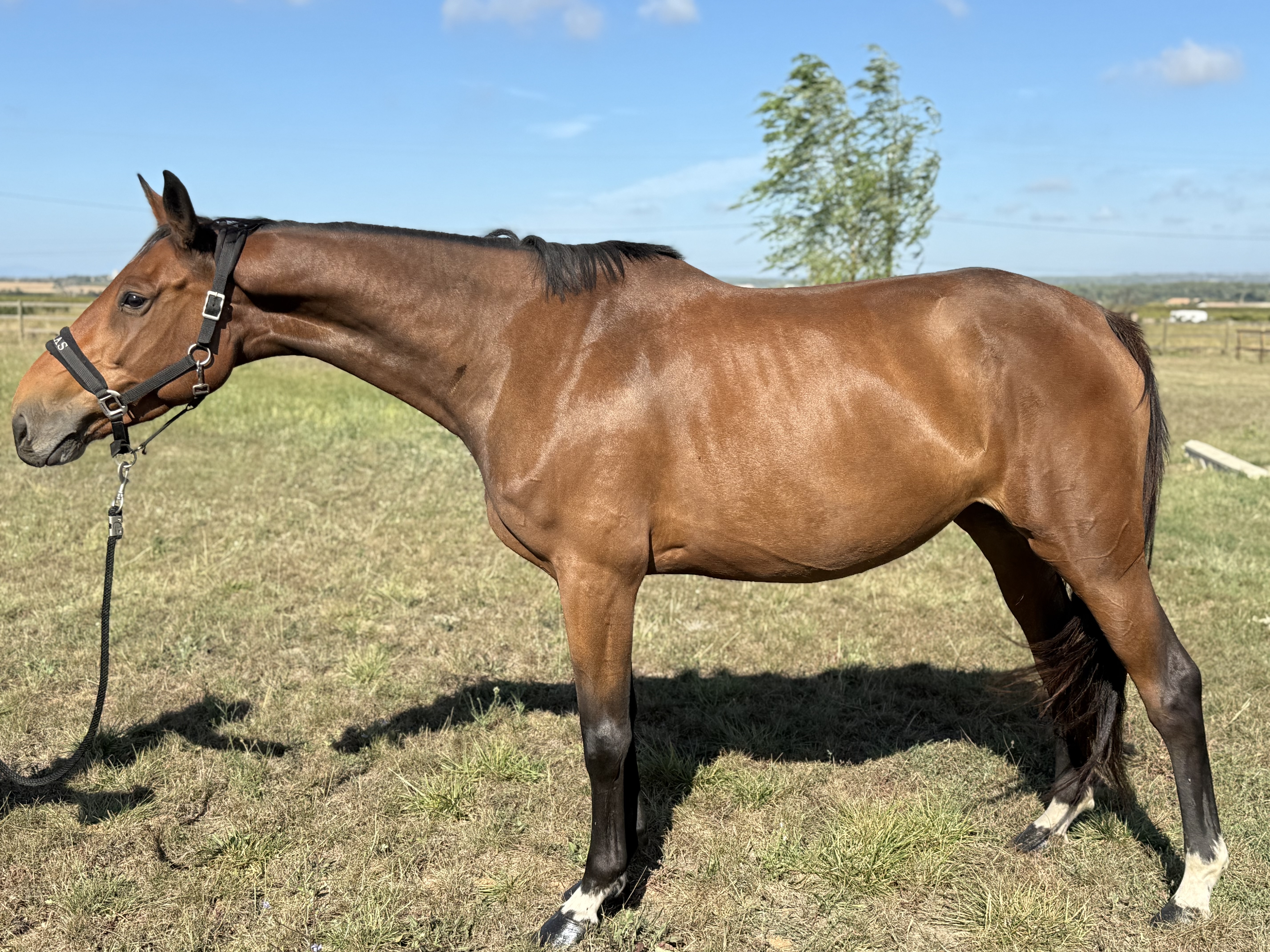 5-jarige merrie, van Diamant de Semilly uit een merrie van Dollar du Murier. Kadmelia is een getalenteerde jonge merrie met een mooie toekomst, afkomstig uit twee prestigieuze springbloedlijnen. Ze valt op door haar moed over hindernissen, haar energie en haar natuurlijke kracht. Kadmelie toont bloed en is voorwaarts wanneer dat ze na de sprong galoppeert, ze heeft veel zelfvertrouwen en enthousiasme en vraagt dus een ruiter die haar goed kan begeleiden.. Ze staat nog aan het begin van haar carrière, maar toont alle kwaliteiten om zich snel te ontwikkelen tot een uitstekende sportpaard. 5-year-old mare, by Diamant de Semilly out of a mare by Dollar du Murier. Kadmelia is a talented young mare with a bright future, descended from two prestigious show jumping bloodlines. She stands out for her courage over jumps, her energy and her natural strength. Kadmelia shows spirit and is forward when galloping after the jump. She has a lot of confidence and enthusiasm and therefore needs a rider who can guide her well. She is still at the beginning of her career, but shows all the qualities to quickly develop into an excellent sport horse. Jument de 5 ans, par Diamant de Semilly et d’une mère par Dollar du Murier. Kadmelia est une jeune jument talentueuse promise à un bel avenir, issue de deux lignées prestigieuses de chevaux de saut d'obstacles. Elle se distingue par son courage face aux obstacles, son énergie et sa puissance naturelle. Kadmelia fait preuve de fougue et d'enthousiasme lorsqu'elle galope après le saut. Elle a beaucoup d'assurance et d'enthousiasme et a donc besoin d'un cavalier capable de bien la guider. Elle n'en est qu'au début de sa carrière, mais elle possède toutes les qualités pour devenir rapidement un excellent cheval de sport. 5-jährige Stute, von Diamant de Semilly aus einer Stute von Dollar du Murier. Kadmelia ist eine talentierte junge Stute mit einer vielversprechenden Zukunft, die aus zwei renommierten Springpferdestämmen stammt. Sie zeichnet sich durch ihren Mut über Hindernisse, ihre Energie und ihre natürliche Kraft aus. Kadmelia zeigt Temperament und ist nach dem Sprung vorwärts galoppierend. Sie hat viel Selbstvertrauen und Enthusiasmus und benötigt daher einen Reiter, der sie gut begleiten kann. Sie steht noch am Anfang ihrer Karriere, zeigt aber alle Qualitäten, um sich schnell zu einem hervorragenden Sportpferd zu entwickeln.