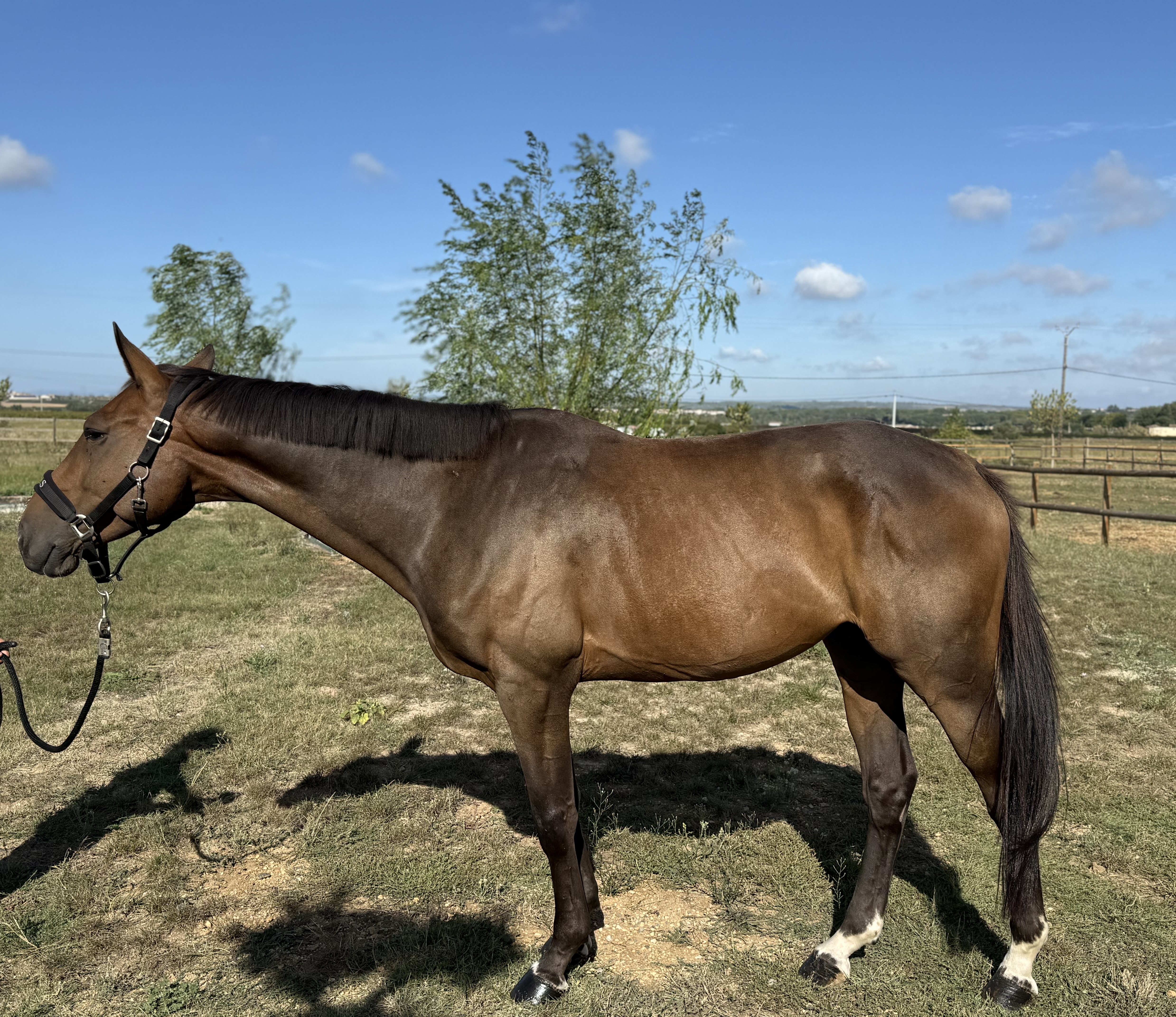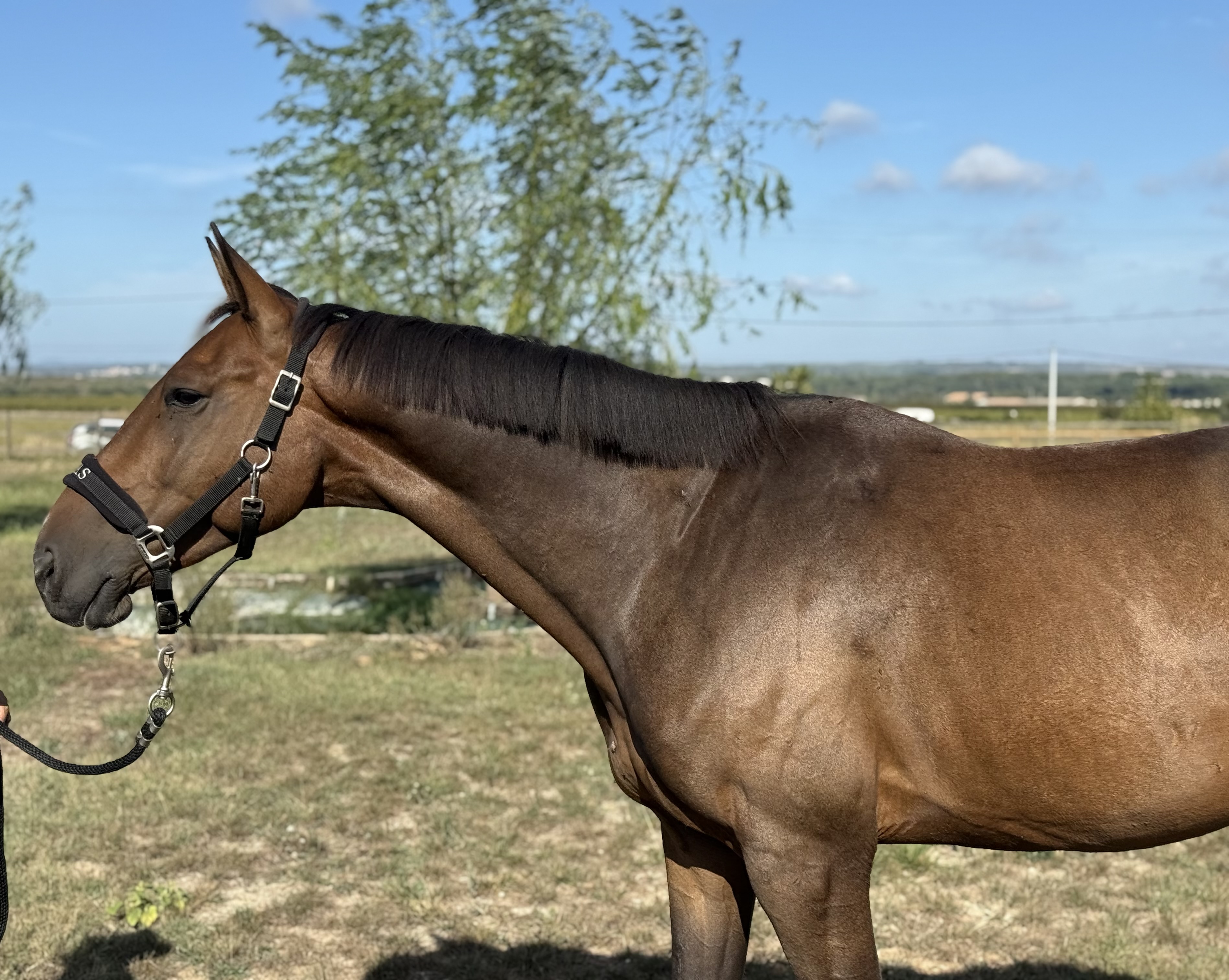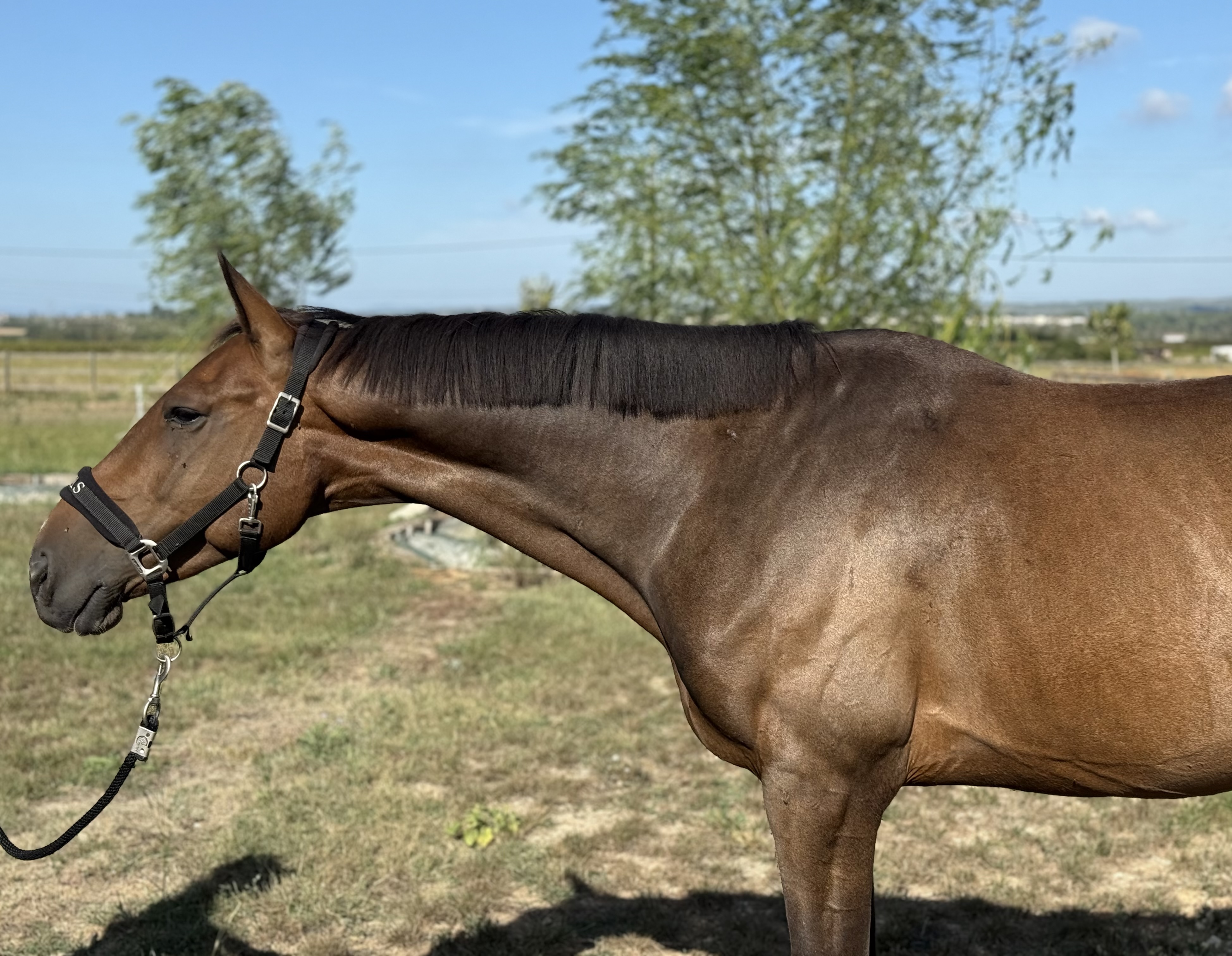 6-jarige ruin – Bloedlijnen: Quality Bois Margot x Baloubet du Rouet Een supermakkelijk en prettig paard, ideaal voor een amateurruiter die met vertrouwen vooruitgang wil boeken. Hij toont veel vermogen op de hindernis, maar blijft eenvoudig en rechttoe rechtaan in de dagelijkse omgang. Een echte partner voor zowel sport als plezier, met een mooie toekomst voor zich. Makkelijk en eerlijk op de hindernis en aangenaam en ongecompliceerd in het dagelijks leven. 6-year-old gelding – Bloodlines: Quality Bois Margot x Baloubet du Rouet A super easy and pleasant horse, ideal for an amateur rider looking to progress with confidence. He shows plenty of scope over fences while remaining simple and straightforward in everyday handling. A true partner for both sport and pleasure, with a bright future ahead. Easy, honest, and generous over jumps and easy and uncomplicated in daily life. Cheval de 6 ans – Origines Quality Bois Margot x Baloubet du Rouet Super cheval facile et agréable, idéal pour un amateur souhaitant évoluer en confiance. Il présente beaucoup de moyens à l’obstacle, tout en restant simple et pratique au quotidien. Un vrai partenaire de sport et de plaisir, avec un bel avenir devant lui. Facile, franc et généreux à l’obstacle et confortable et simple dans la vie de tous les jours 6-jähriger Wallach – Abstammung: Quality Bois Margot x Baloubet du Rouet Ein superleichtes und angenehmes Pferd, ideal für Amateurreiter, die selbstbewusst Fortschritte machen möchten. Er zeigt viel Vermögen am Hindernis und bleibt im Alltag unkompliziert und unkompliziert. Ein treuer Partner für Sport und Freizeit mit einer vielversprechenden Zukunft. Leicht, ehrlich und großzügig am Hindernis und Gemütlich und unkompliziert im Alltag.