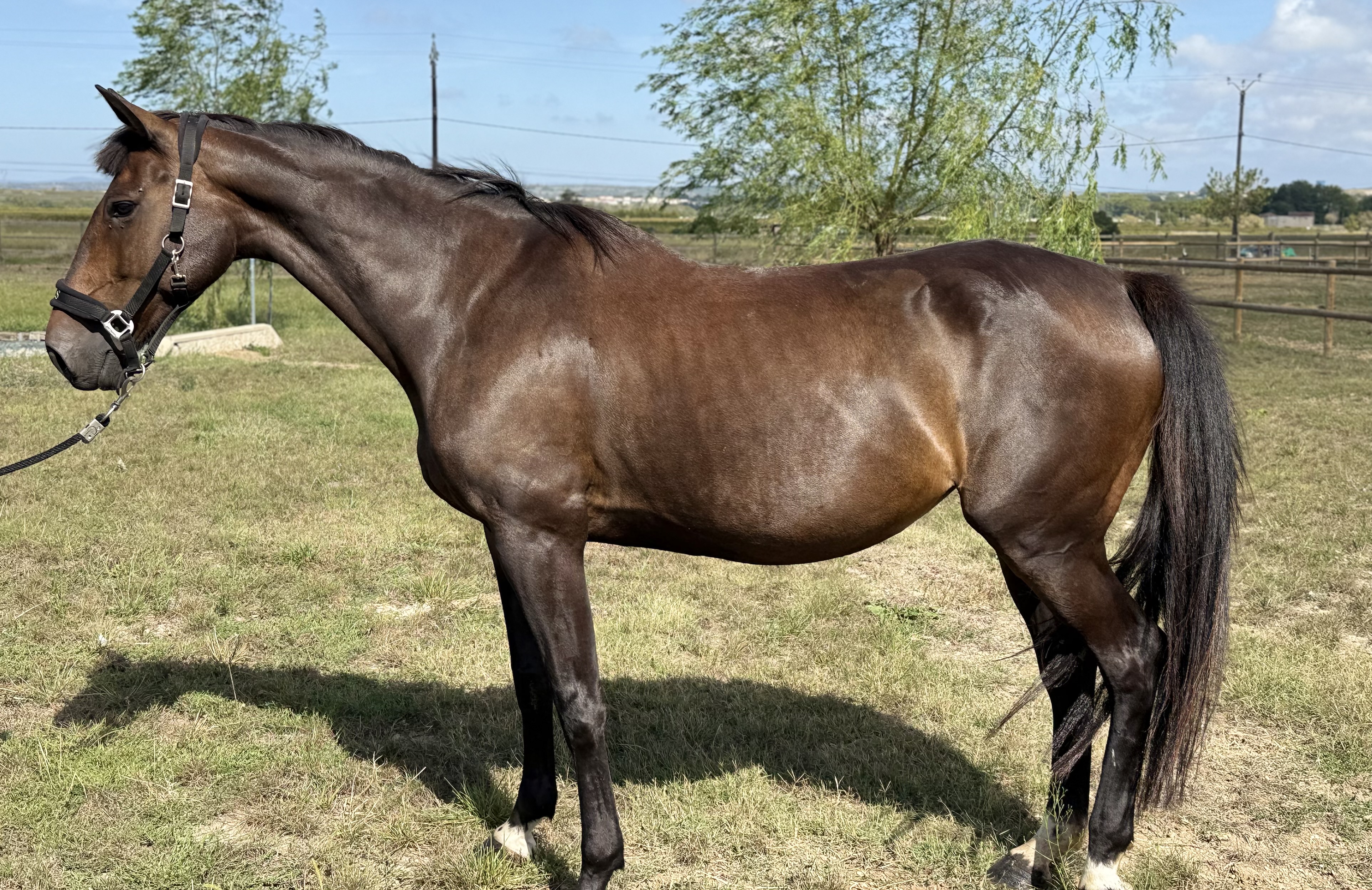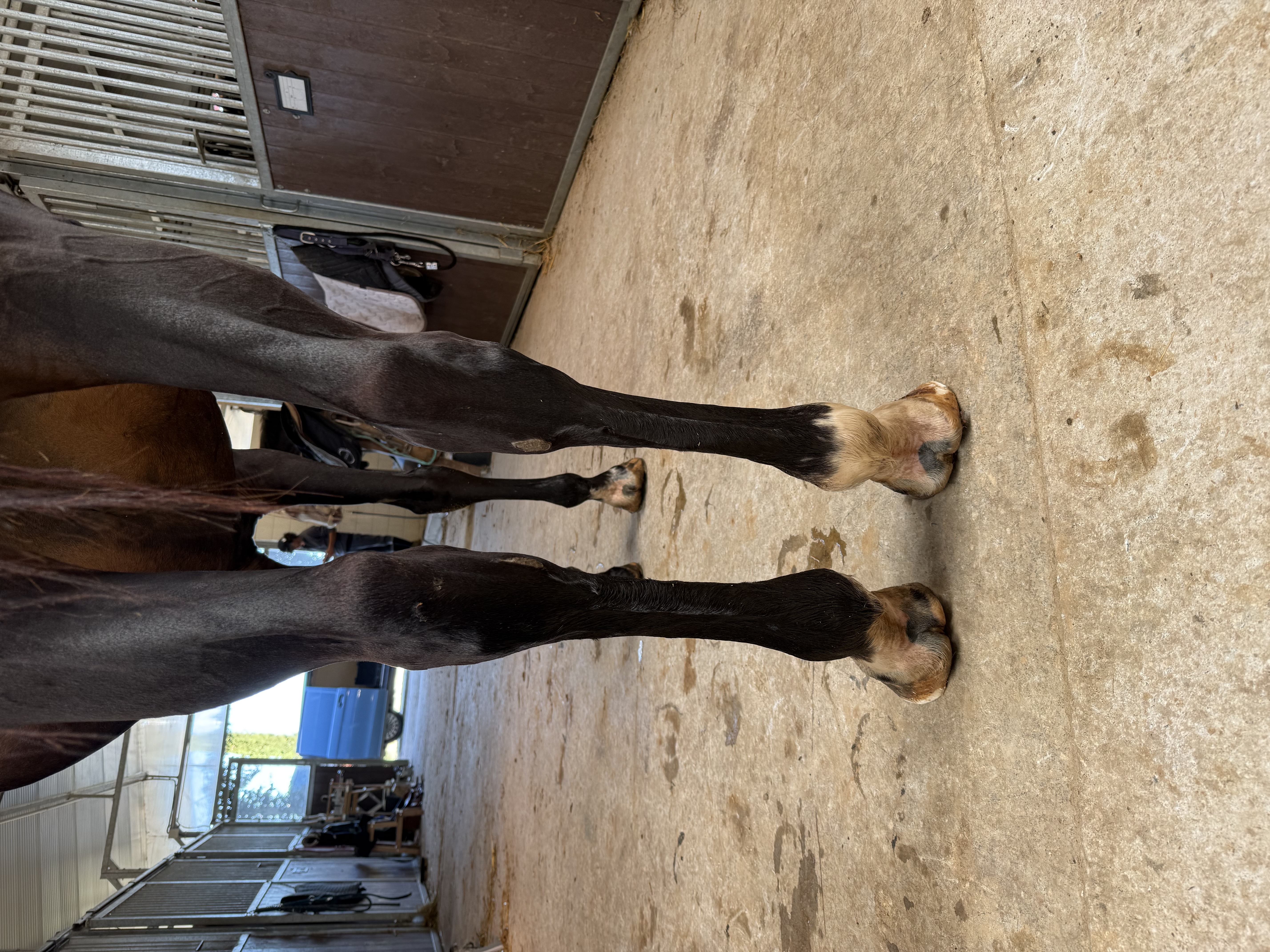 Merrie van 10 jaar, afstammeling van Rubis du Rustick, Panaji du Herbe en Echo des Forêts Merrie van 10 jaar, met een harmonieuze bouw en afkomstig uit zeer goede bloedlijnen. Veelzijdig paard, ideaal zowel voor recreatief gebruik als voor rustige deelname aan kleine wedstrijden. Zeer vriendelijk en gemakkelijk in het dagelijkse leven. Geschikt voor zowel een kind als een volwassene. Een eerlijk en genereus springpaard, de perfecte partner om veilig en plezierige ritjes mee te maken. 10-year-old mare by Rubis du Rustick, Panaji du Herbe, and Echo des Forêts 10-year-old mare with a harmonious conformation and excellent bloodlines. Versatile horse, ideal for both leisure riding and confident participation in small competitions. Very gentle and easy to handle on a daily basis. Suitable for both children and adults. Straightforward and generous over jumps, a perfect partner for safe and enjoyable riding. Jument de 10 ans par Rubis du Rustick, Panaji du Herbe et Echo des Forêts Jument de 10 ans, au modèle harmonieux et issue de très bonnes origines. Cheval polyvalent, idéal autant pour le loisir que pour évoluer sereinement en concours sur des épreuves de petite envergure. Très gentille et facile à vivre au quotidien. Convient aussi bien à un enfant qu’à un adulte. Jument franche et généreuse à l’obstacle, parfaite partenaire pour se faire plaisir en toute sécurité. 10-jährige Stute von Rubis du Rustick, Panaji du Herbe und Echo des Forêts 10-jährige Stute mit harmonischem Exterieur und sehr guter Abstammung. Vielseitiges Pferd, ideal sowohl für Freizeit als auch für sichere Teilnahme an kleinen Turnieren. Sehr freundlich und unkompliziert im Alltag. Geeignet für Kinder ebenso wie für Erwachsene. Ehrliche und großzügige Springstute, die perfekte Partnerin für sicheres Vergnügen.