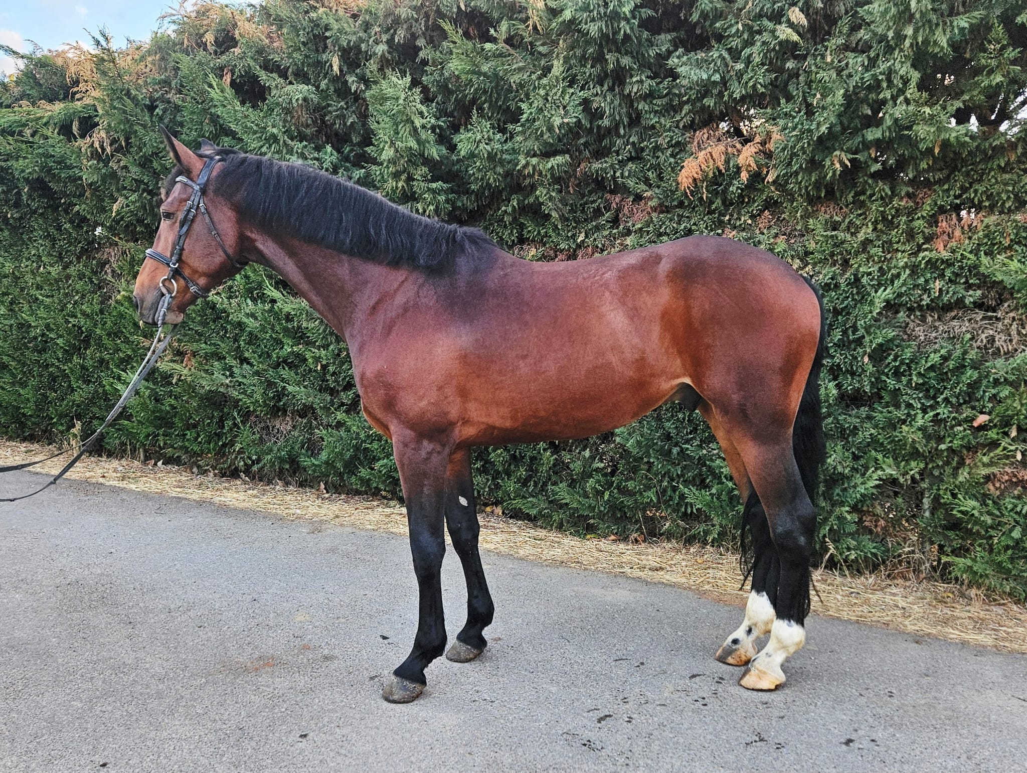 Gezonde jonge paard met groot wedstrijdpotentieel. Hij loopt momenteel parcoursen tot 1.10m. Hij heeft een fijn karakter en is makkelijk in de omgang. Ideaal voor een ruiter die zijn of haar niveau wil verbeteren en verder wil doorgroeien. Healthy young horse with excellent potential for competition. Currently competing successfully at 1.10m level. He has a kind temperament and is easy to handle. An ideal partner for a rider eager to develop their skills and continue progressing. Jeune cheval en bonne santé avec un excellent potentiel de compétition. Il participe actuellement à des épreuves de 1,10 m. Il a un bon caractère et se montre facile à manipuler. Idéal pour un cavalier souhaitant progresser et développer ses compétences. Gesundes junges Pferd mit großem Turnierpotenzial. Zurzeit startet er erfolgreich in Prüfungen bis 1,10 m. Er hat ein ausgeglichenes Temperament und ist im Umgang unkompliziert. Ideal für Reiter, die ihr Können weiterentwickeln und vorankommen möchten.