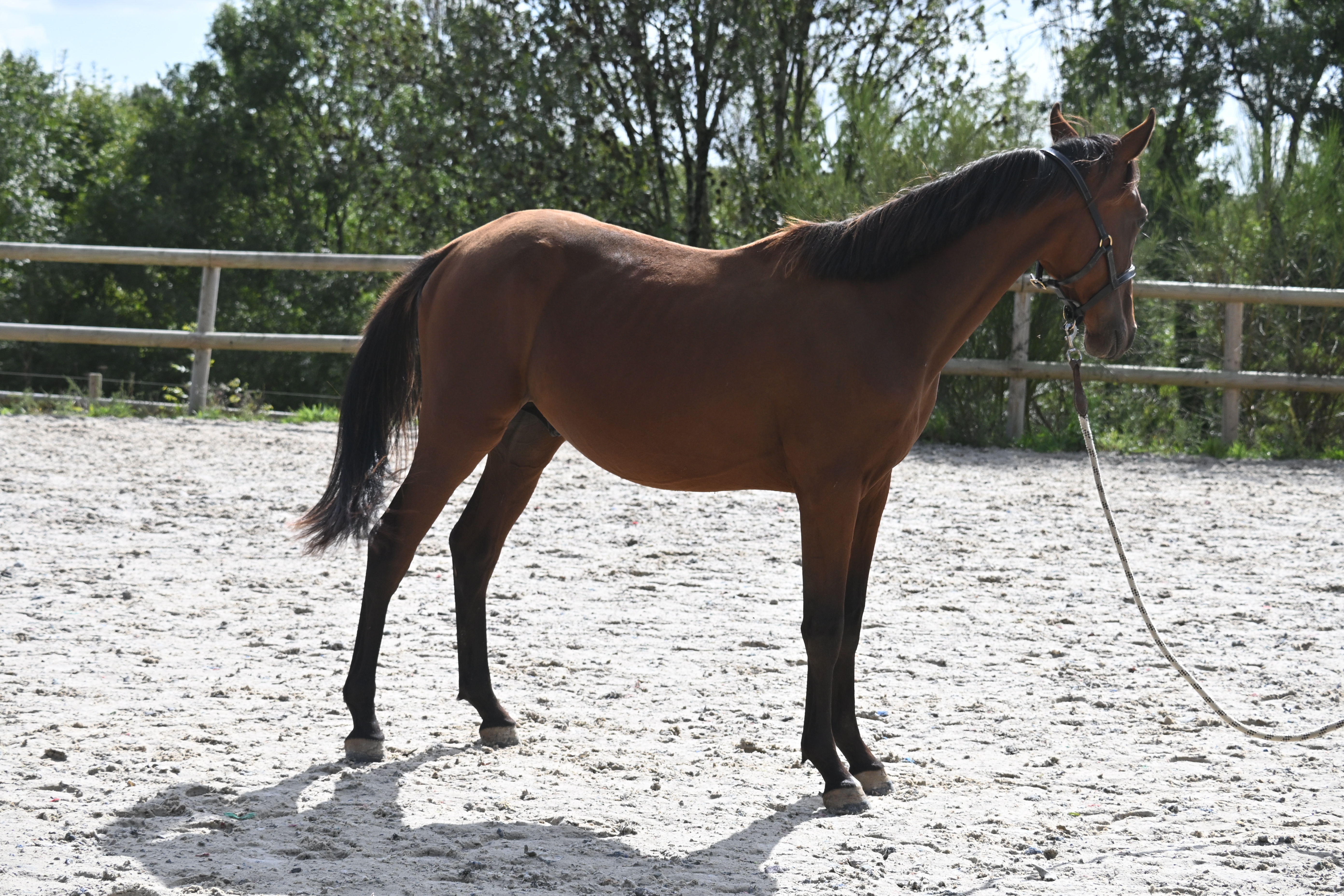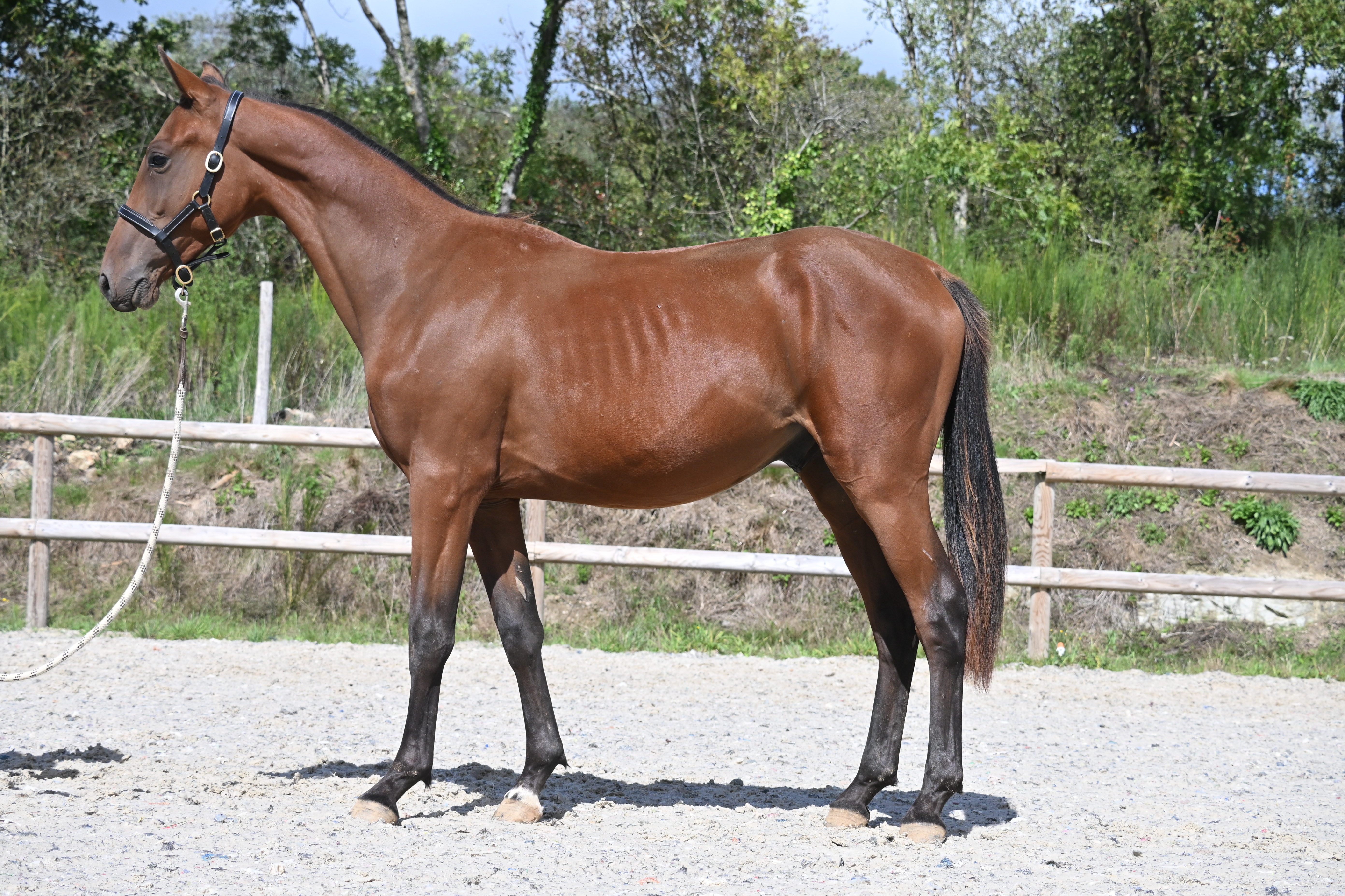 Hengst geboren in 2024, van Jetset du Chatelain en Helline d'Alba. Zijn vader, Jetset du Chatelain, behaalde in 2022 de 8ᵉ plaats bij de driejarige hengsten op het Nationaal PFS, met 5 foutloze parcours van de 6, gevolgd door een foutloos parcours en 4 strafpunten in de finale. In 2023 werd hij 15ᵉ bij de 4-jarigen D met het predicaat "Zeer Goed". Zijn moeder, Helline d'Alba, waarvan Obiwan het eerste veulen is, heeft nog geen beoordeelde nakomelingen. "Met drie mooie gangen, een groot meewerkend karakter en absoluut geen angst, heeft Obiwan alles in zich om een geweldig wedstrijdpony te worden, zowel voor springen als eventing." Colt born in 2024, by Jetset du Chatelain out of Helline d'Alba. His sire, Jetset du Chatelain, ranked 8th among the 3-year-old stallions at the National PFS in 2022, with 5 clear rounds out of 6, then a clear round and 4 faults in the final. In 2023, he finished 15th in the 4-year-old D category, earning a “Very Good” mark. His dam, Helline d'Alba, with Obiwan being her first foal, has no production record yet. "With three lovely gaits, a kind nature, and complete fearlessness, Obiwan has everything it takes to become an excellent competition pony, whether in showjumping or eventing." Mâle né en 2024, par Jetset du Chatelain et Helline d'Alba. Son père, Jetset du Chatelain, s’est classé 8ᵉ des mâles de 3 ans au National PFS en 2022, avec 5 parcours sans faute sur 6, puis sans faute et 4 points lors de la finale. En 2023, il termine 15ᵉ dans les 4 ans D, avec la mention Très Bon. Sa mère, Helline d'Alba, dont Obiwan est le premier produit, n’a pas encore de descendance évaluée. « Avec trois belles allures, une grande gentillesse et une absence totale de peur, Obiwan réunit toutes les qualités pour devenir un excellent poney de concours, aussi bien en CSO qu’en CCE. » Hengst, geboren 2024, von Jetset du Chatelain aus Helline d'Alba. Sein Vater, Jetset du Chatelain, belegte 2022 beim National PFS den 8. Platz der 3-jährigen Hengste, mit 5 fehlerfreien Runden von 6, sowie einer Nullrunde und 4 Fehlerpunkten im Finale. 2023 erreichte er den 15. Platz bei den 4-Jährigen D und erhielt die Bewertung „Sehr Gut“. Seine Mutter, Helline d'Alba, deren erstes Fohlen Obiwan ist, hat noch keine Nachzucht zur Bewertung. „Mit drei schönen Grundgangarten, großem Charme und völliger Unerschrockenheit bringt Obiwan alle Voraussetzungen mit, um ein hervorragendes Turnierpony zu werden – sei es im Springen oder im Vielseitigkeitssport.“