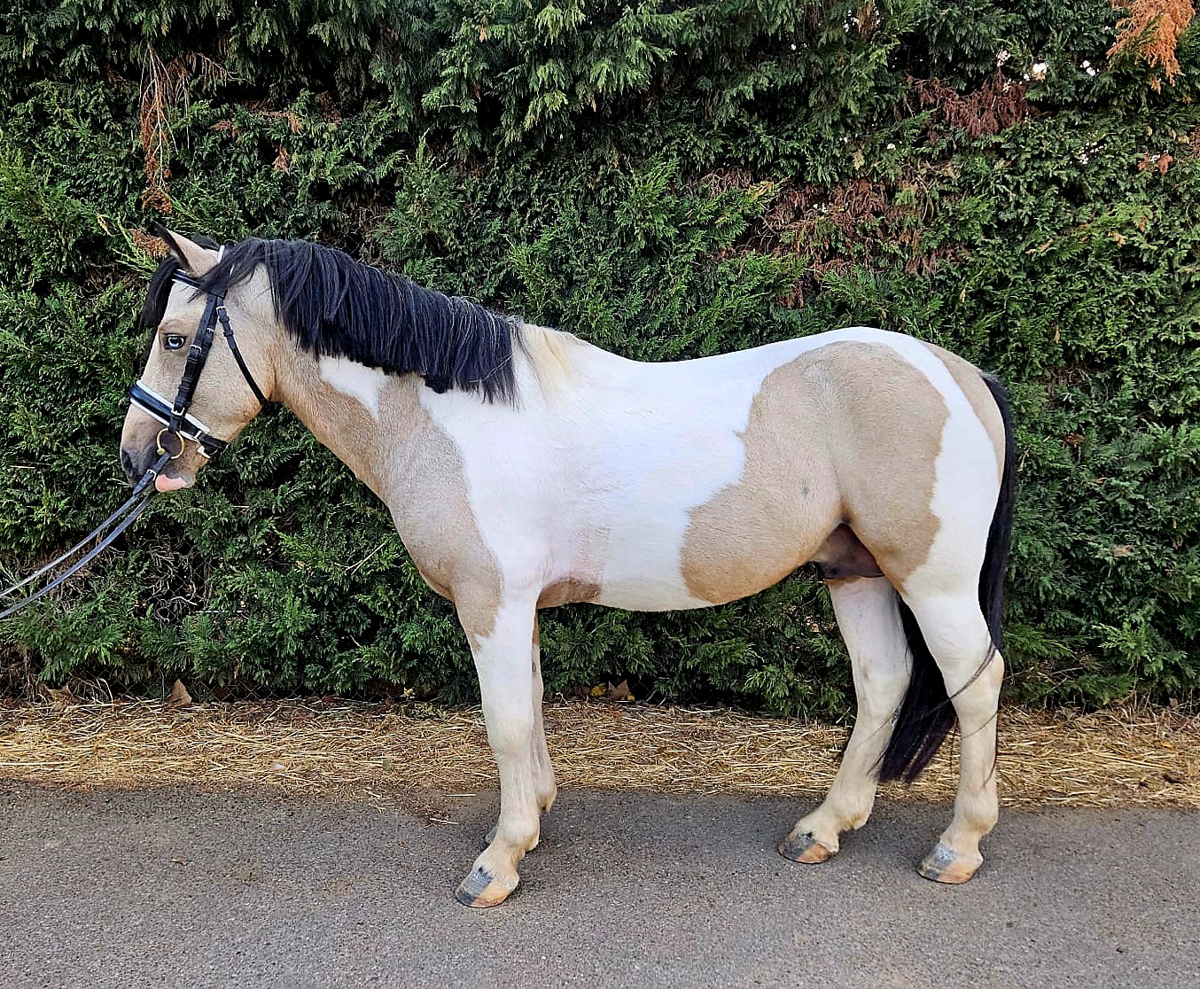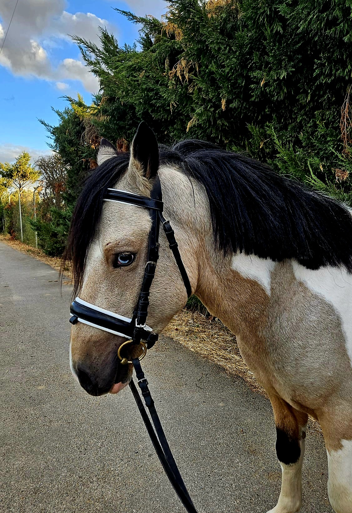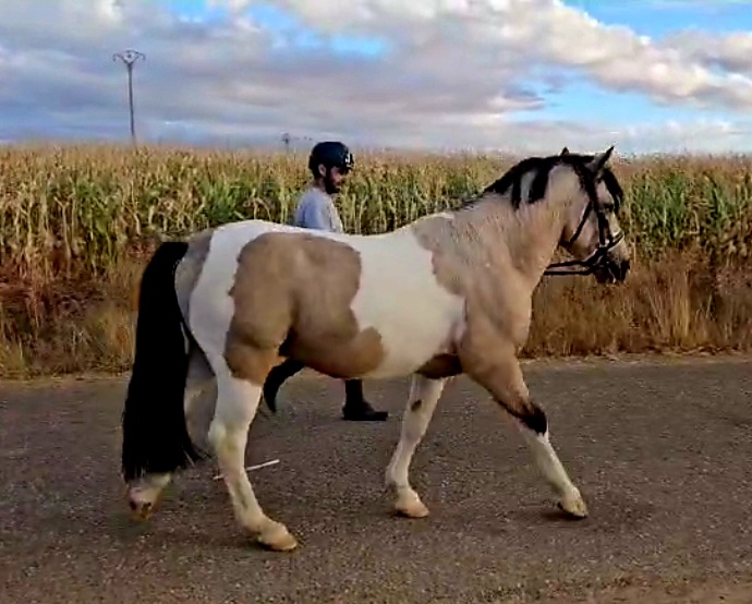 Een prachtig pony met blauwe ogen en een geel-witte vacht, ideaal voor elk kind dat plezier wil hebben en zijn of haar vaardigheden wil ontwikkelen. Neo de Sancris is een zeer vriendelijke en aanhankelijke pony. Hij gedraagt zich goed onder het zadel, in de stal en is zacht in de omgang. Hij is altijd bij de fokker geweest en is nu klaar om verwelkomd te worden door een familie die van hem wil genieten en samen vele successen wil behalen. A beautiful pony with blue eyes and a yellow and white coat, ideal for any child who wants to have fun and advance their skills. Neo de Sancris is a very friendly and affectionate pony. He behaves well when ridden, in the stable, and is gentle to handle. He has always been with the breeder and is now ready to be welcomed into a family who wants to enjoy him and achieve many successes. Un magnifique poney aux yeux bleus et à la robe jaune et blanche, idéal pour tout enfant souhaitant s’amuser et progresser. Neo de Sancris est un poney très amical et affectueux. Il se comporte bien sous la selle, à l’écurie et est doux à manipuler. Il a toujours vécu chez l’éleveur et est maintenant prêt à rejoindre une famille qui voudra profiter de lui et remporter de nombreux succès. Ein wunderschönes Pony mit blauen Augen und einem gelb-weißen Fell, ideal für jedes Kind, das Spaß haben und seine Fähigkeiten weiterentwickeln möchte. Neo de Sancris ist ein sehr freundliches und liebevolles Pony. Er benimmt sich gut unter dem Sattel, im Stall und ist sanft im Umgang. Er war immer beim Züchter und ist nun bereit, von einer Familie aufgenommen zu werden, die Freude an ihm haben und viele Erfolge mit ihm erzielen möchte.