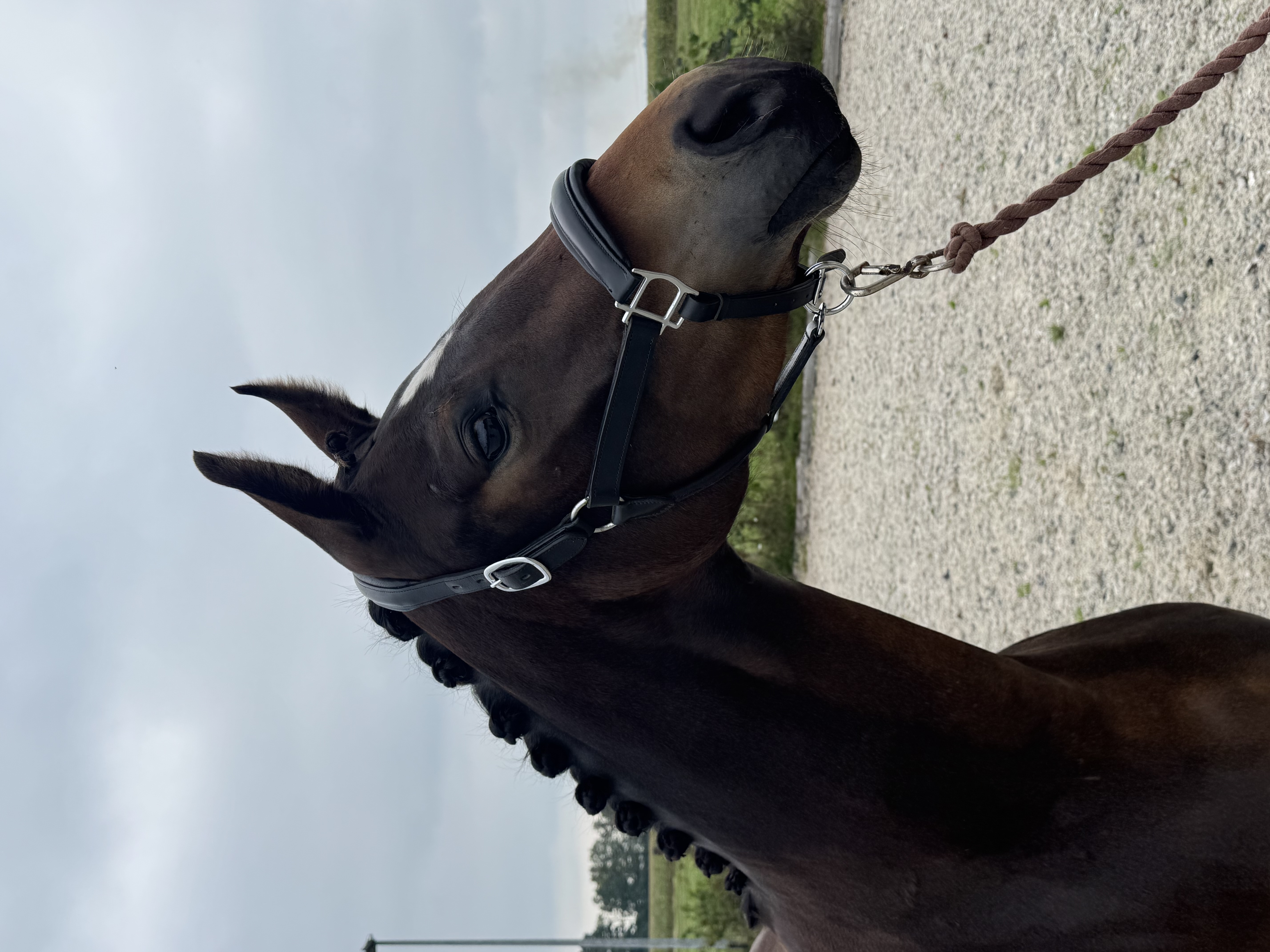 Prachtige 3-jarige merrie met sterke bewegingen, rechtstreeks uit het land. Ze komt uit een bewezen sportlijn. Onbeleerd, maar volledig klaar om met de training te starten. Ze is braaf in de omgang, gewend om dagelijks in de hand te komen, en vertrouwd met zowel hoefsmid als dierenarts. Een veelbelovende merrie voor de toekomst! Beautiful 3-year-old mare with powerful movements, directly from the field. She comes from a proven sport lineage. Unbroken, but ready to start her training. Easy to handle, used to being led, and familiar with both farrier and veterinarian. A very promising mare for the future! Magnifique jument de 3 ans avec de très beaux mouvements, directement du pré. Issue d’une lignée sportive reconnue. Non débourrée, mais prête à commencer le travail. Facile à manipuler, habituée à être tenue en main, et déjà familiarisée avec le maréchal-ferrant et le vétérinaire. Une jument pleine de potentiel pour l’avenir ! Wunderschöne 3-jährige Stute mit kraftvollen Bewegungen, direkt von der Weide. Sie stammt aus einer bewährten Sportlinie. Unangeritten, aber bereit für die Ausbildung. Lieb im Umgang, an das Führen gewöhnt und vertraut mit Hufschmied und Tierarzt. Eine vielversprechende Stute für die Zukunft!