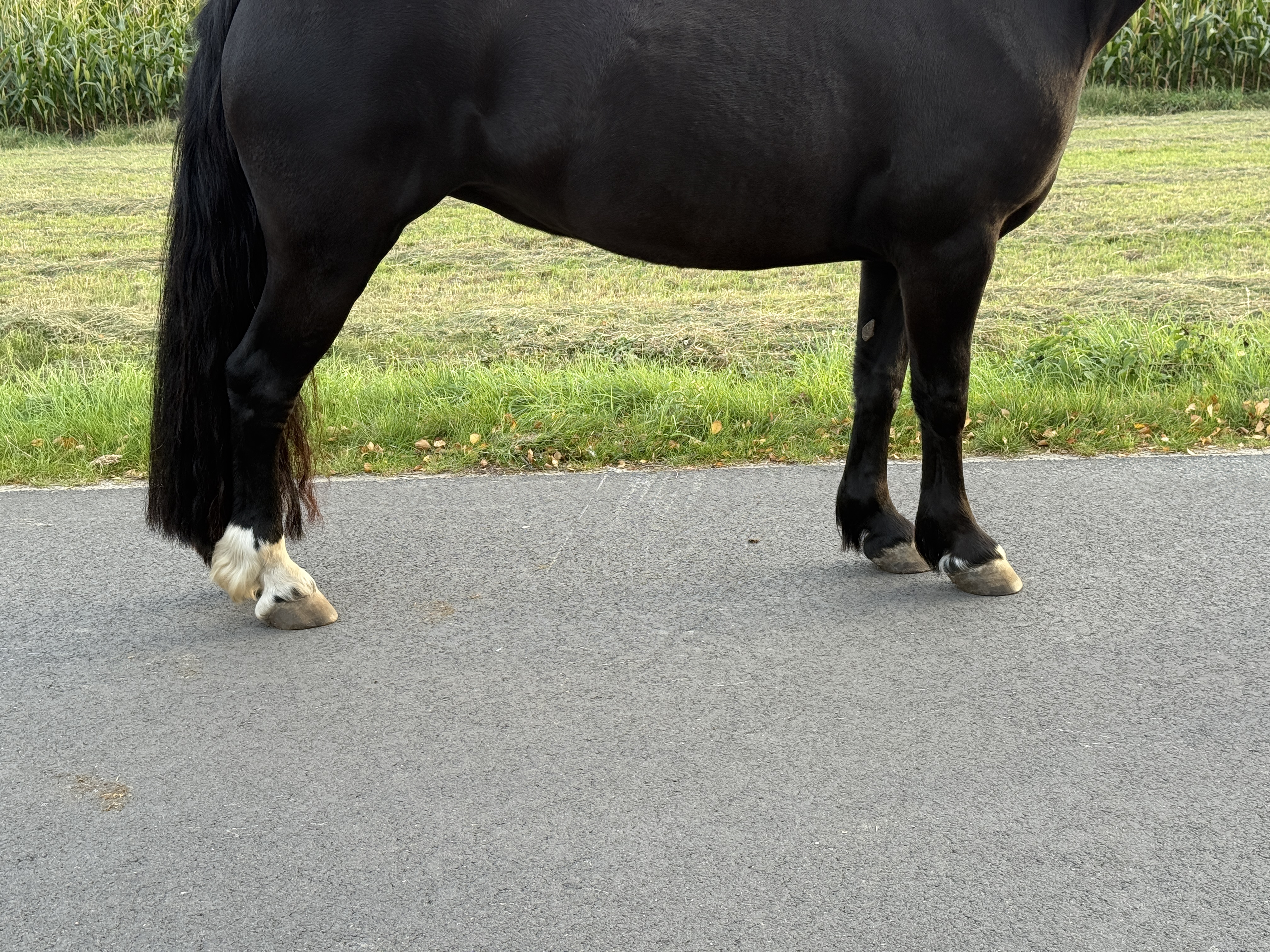 Menai Lady Controversy (“Coco”) Coco is een aansprekende, elegante fokmerrie met een bewezen bloedlijn binnen de bekende Menai-stoeterij. Haar vader is Menai Cavalier (v. Tyreos Survivor), een hengst met afstamming naar invloedrijke Welsh C namen zoals Merioneth Storm en Menai Sparkling Imperial. Haar moeder Menai Lady Constantine (v. Menai Cadernid) gaat terug op sterke lijnen met o.a. Menai Bonheddwr en Menai Lady Cortina. Coco heeft reeds twee gezonde veulens voortgebracht en bewijst daarmee haar waarde als fokmerrie. Ze combineert een betrouwbare genetische achtergrond met een vriendelijk en intelligent karakter. Van nature wat terughoudend, maar eenmaal haar vertrouwen gewonnen, laat ze zich zien als een zeer lieve en slimme pony. Bekend met hoefsmid, tandarts, transport en poetsen. Een unieke kans om een merrie met deze sterke Menai-bloedlijn in uw fokkerij op te nemen. Menai Lady Controversy (“Coco”) Coco is an appealing, elegant broodmare with a proven bloodline from the renowned Menai Stud. Her sire is Menai Cavalier (by Tyreos Survivor), a stallion tracing back to influential Welsh C names such as Merioneth Storm and Menai Sparkling Imperial. Her dam, Menai Lady Constantine (by Menai Cadernid), descends from strong lines including Menai Bonheddwr and Menai Lady Cortina. Coco has already produced two healthy foals, proving her value as a broodmare. She combines a reliable genetic background with a kind and intelligent character. Naturally a little reserved, but once she gains your trust, she reveals herself as a very sweet and clever pony. Accustomed to farrier, dentist, transport, and grooming. A unique opportunity to add a mare with this strong Menai bloodline to your breeding program. Menai Lady Controversy (“Coco”) Coco est une jument d’élevage élégante et attrayante, issue d’une lignée éprouvée au sein du célèbre élevage Menai. Son père est Menai Cavalier (par Tyreos Survivor), un étalon descendant de noms influents de la race Welsh C tels que Merioneth Storm et Menai Sparkling Imperial. Sa mère, Menai Lady Constantine (par Menai Cadernid), remonte à de solides lignées comprenant notamment Menai Bonheddwr et Menai Lady Cortina. Coco a déjà donné naissance à deux poulains en bonne santé, démontrant ainsi sa valeur en tant que jument d’élevage. Elle associe un patrimoine génétique fiable à un caractère gentil et intelligent. Naturellement un peu réservée, mais une fois la confiance acquise, elle se montre comme une ponette très douce et maligne. Habituée au maréchal-ferrant, au dentiste, au transport et au pansage. Une opportunité unique d’intégrer une jument avec cette solide lignée Menai à votre programme d’élevage. Menai Lady Controversy (“Coco”) Coco ist eine ansprechende, elegante Zuchtstute mit einer bewährten Blutlinie aus dem renommierten Menai Gestüt. Ihr Vater ist Menai Cavalier (von Tyreos Survivor), ein Hengst mit Abstammung von einflussreichen Welsh C-Namen wie Merioneth Storm und Menai Sparkling Imperial. Ihre Mutter, Menai Lady Constantine (von Menai Cadernid), geht auf starke Linien zurück, darunter Menai Bonheddwr und Menai Lady Cortina. Coco hat bereits zwei gesunde Fohlen hervorgebracht und damit ihren Wert als Zuchtstute unter Beweis gestellt. Sie verbindet einen verlässlichen genetischen Hintergrund mit einem freundlichen und intelligenten Charakter. Von Natur aus etwas zurückhaltend, zeigt sie sich – sobald man ihr Vertrauen gewonnen hat – als eine sehr liebe und kluge Ponystute. Vertraut mit Hufschmied, Tierzahnarzt, Transport und Putzen. Eine einzigartige Gelegenheit, eine Stute mit dieser starken Menai-Blutlinie in Ihre Zucht aufzunehmen.