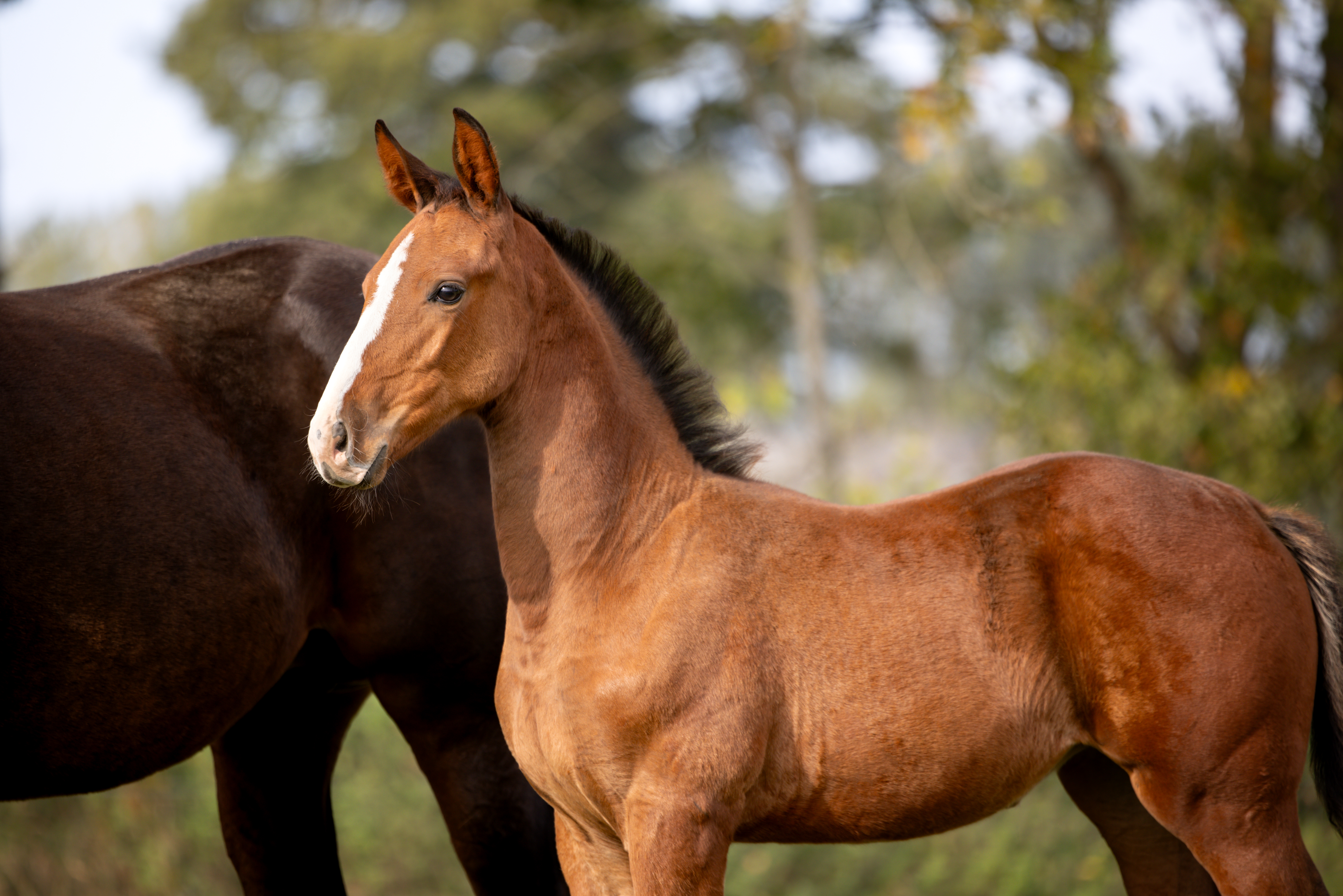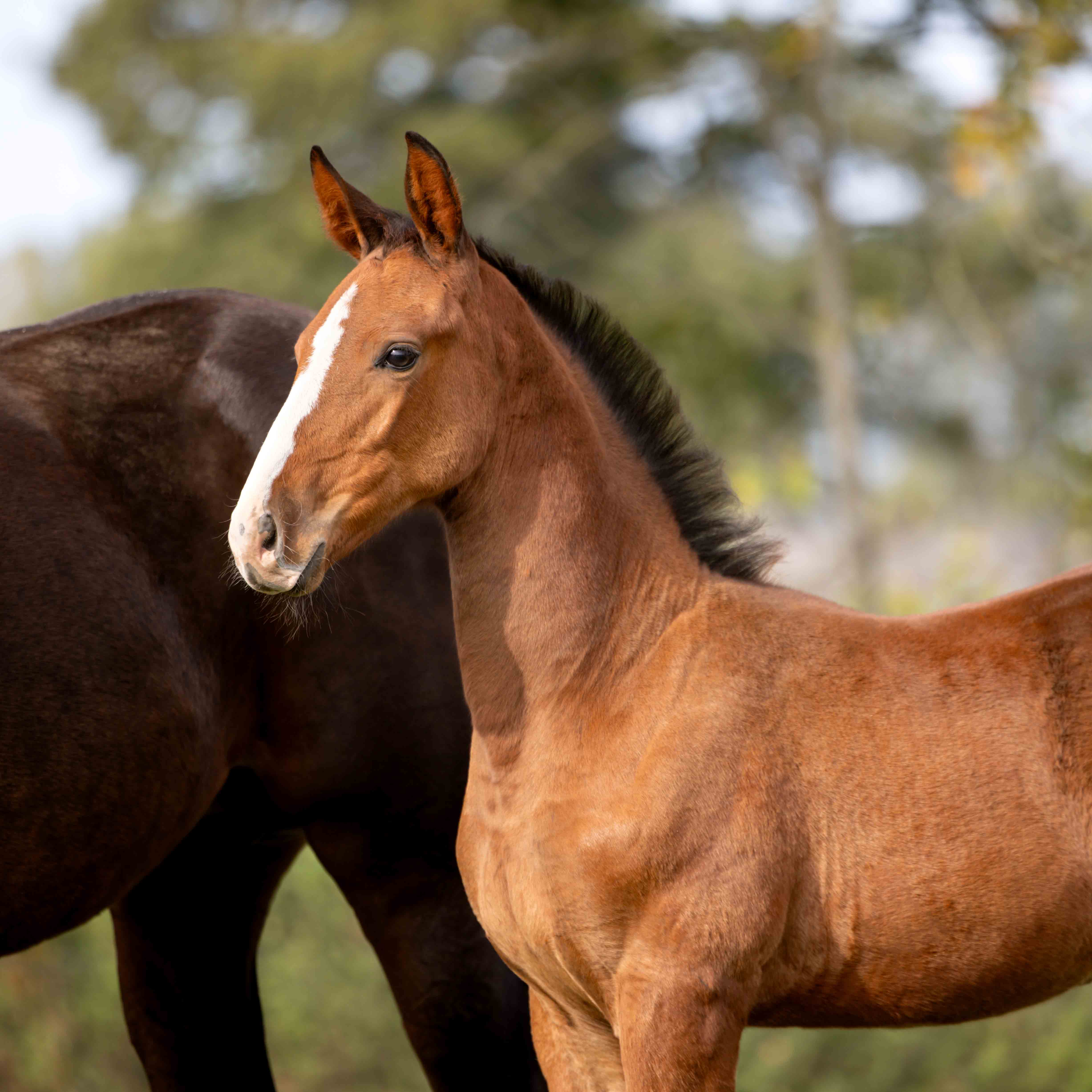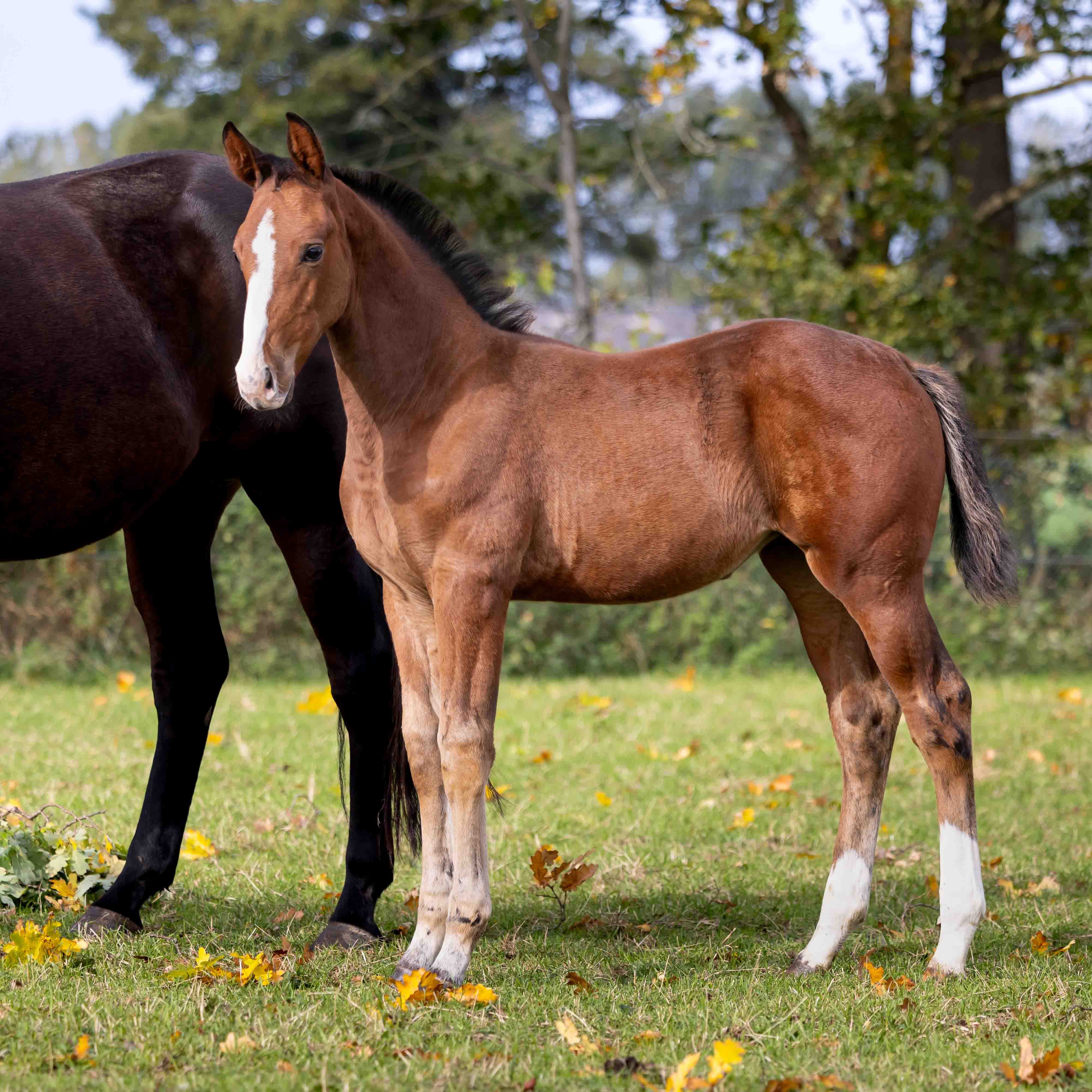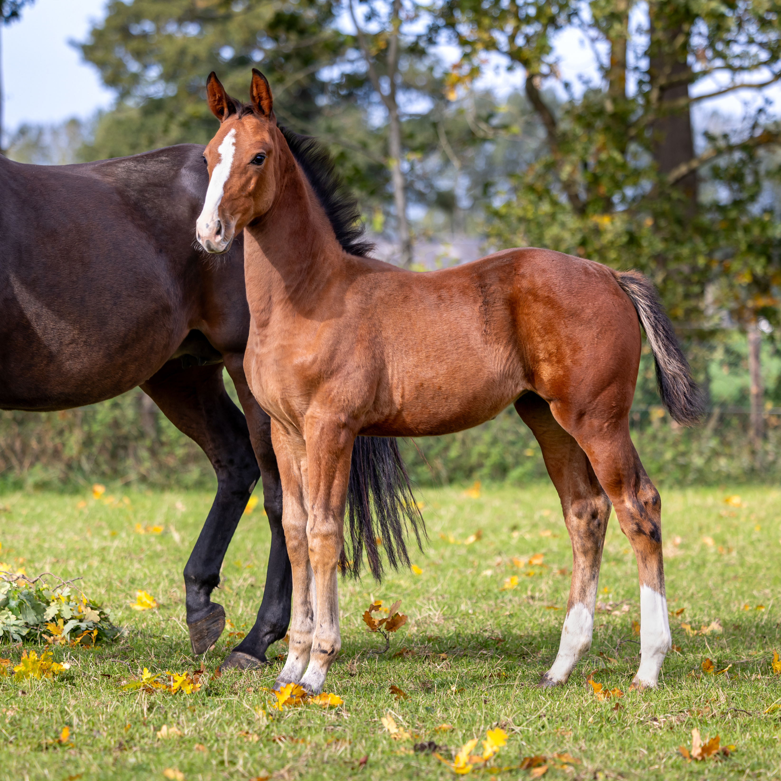 Angelina Z is een opvallend modern merrieveulen met uitstraling, bloed en kracht. Dit genetisch juweel verenigt vijf absolute toppers uit de internationale springpaardenfokkerij. Aganix du Seigneur levert keer op keer nakomelingen met explosieve afzet, vermogen en topmentaliteit. Aan moederszijde versterken For Pleasure, Stakkato, Cassini I en Carthago Z de garantie op springkwaliteit en rijdbaarheid. Deze bloedcombinatie spreekt tot de verbeelding: scherpte en souplesse uit Hannover, vermogen en instelling uit Holstein- samengebracht in één moderne atletische verschijning. Een merrieveulen met alle ingrediënten voor een sportieve toekomst én een waardevolle fokkerijcarriere. *Het paspoort werd aangevraagd en het is nog in verwerking bij het stamboek, houdt rekening met mogelijke vertragingen. Angelina Z is a strikingly modern filly with presence, blood, and power. This genetic jewel unites five absolute top performers from international show jumping breeding. Aganix du Seigneur consistently produces offspring with explosive takeoff, scope, and an outstanding mentality. On the dam’s side, For Pleasure, Stakkato, Cassini I, and Carthago Z strengthen the guarantee of jumping quality and rideability. This blood combination sparks the imagination: sharpness and suppleness from Hanover, power and attitude from Holstein – brought together in one modern, athletic appearance. A filly with all the ingredients for a successful sporting career and a valuable future in breeding. *The passport has been requested and is still being processed by the studbook, please take possible delays into account. Angelina Z est une pouliche remarquablement moderne, pleine d’allure, de sang et de puissance. Ce joyau génétique réunit cinq véritables références de l’élevage international de chevaux de saut d’obstacles. Aganix du Seigneur transmet inlassablement à ses descendants une détente explosive, de la force et un mental exceptionnel. Du côté maternel, For Pleasure, Stakkato, Cassini I et Carthago Z renforcent la garantie de qualité à l’obstacle et de facilité sous la selle. Cette combinaison de sang fait rêver : la vivacité et la souplesse de Hanovre, la puissance et la détermination du Holstein – réunies en une apparence moderne et athlétique. Une pouliche dotée de tous les atouts pour une brillante carrière sportive et un avenir prometteur en élevage. *Le passeport a été demandé et il est toujours en cours de traitement par le stud-book, tenez compte des éventuels retards. Angelina Z ist ein auffallend modernes Stutfohlen mit Ausstrahlung, Blut und Kraft. Dieses genetische Juwel vereint fünf absolute Spitzenvererber der internationalen Springpferdezucht. Aganix du Seigneur liefert immer wieder Nachkommen mit explosivem Absprung, Vermögen und erstklassigem Charakter. Auf der Mutterseite verstärken For Pleasure, Stakkato, Cassini I und Carthago Z die Garantie für Springqualität und Rittigkeit. Diese Blutkombination regt die Fantasie an: Schärfe und Geschmeidigkeit aus Hannover, Kraft und Einstellung aus Holstein – vereint in einem modernen, athletischen Erscheinungsbild. Ein Stutfohlen mit allen Voraussetzungen für eine sportliche Zukunft und eine wertvolle Karriere in der Zucht. *Der Equidenpass wurde beantragt und wird noch vom Zuchtbuch bearbeitet, bitte rechnen Sie mit möglichen Verzögerungen.