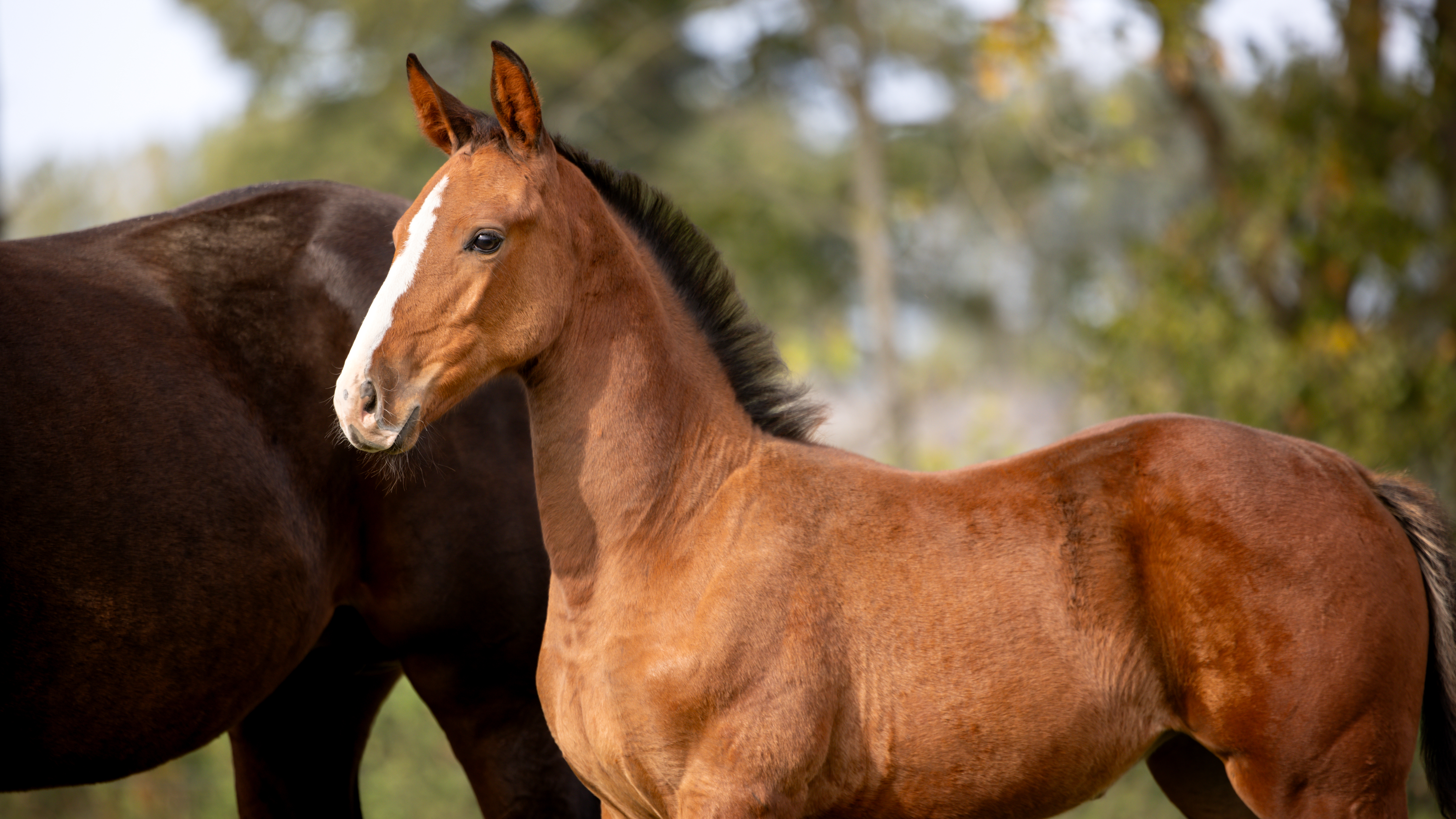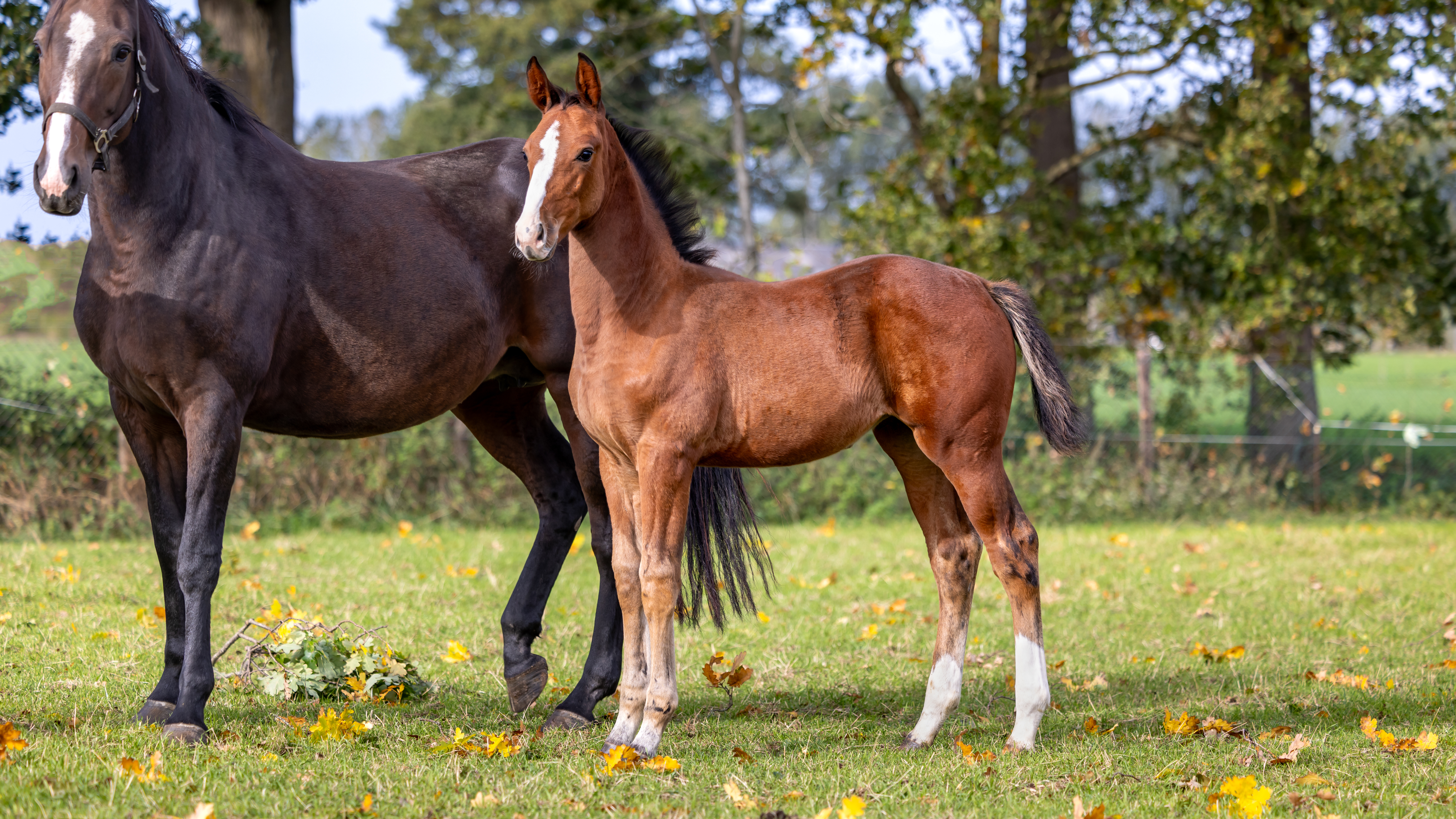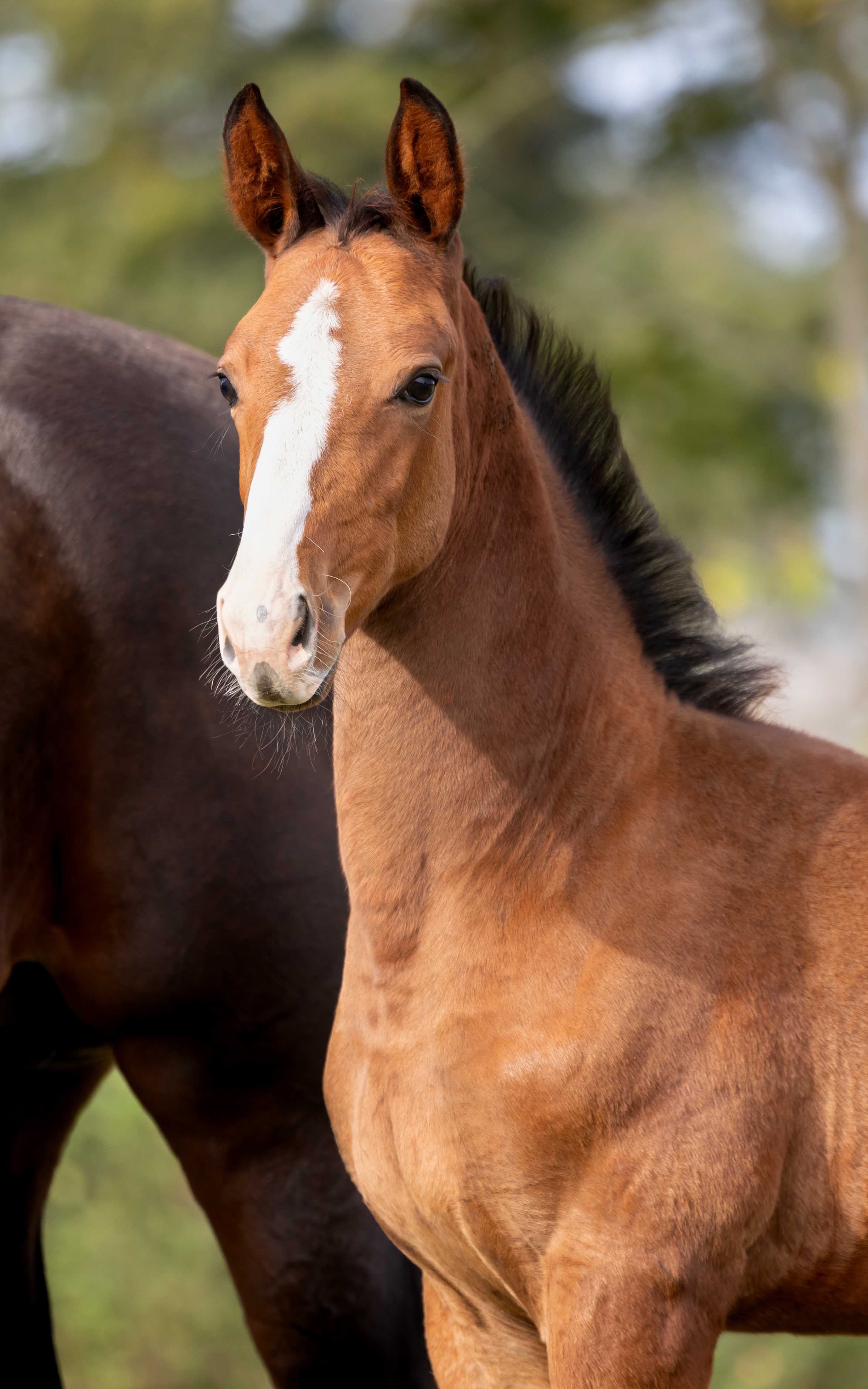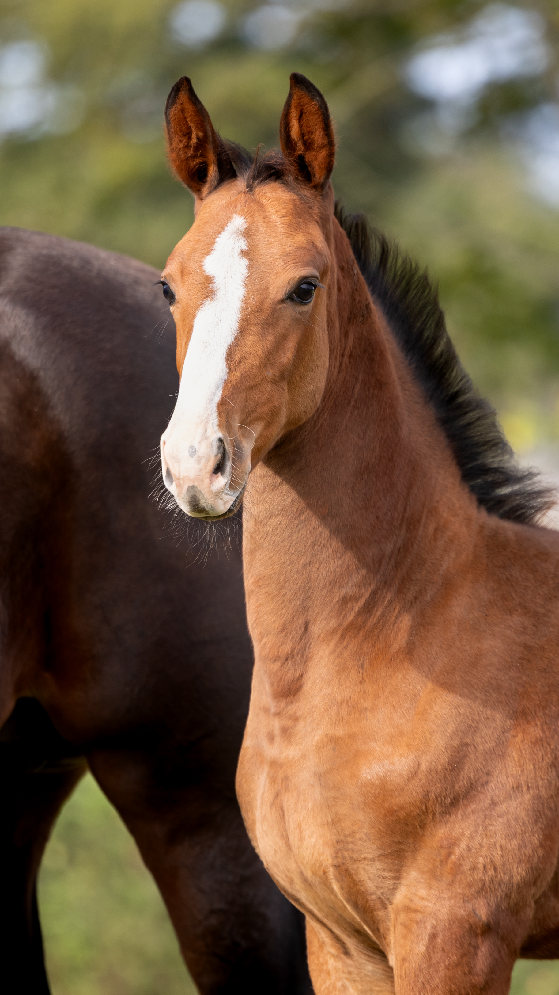 Angelina Z is een opvallend modern merrieveulen met uitstraling, bloed en kracht. Dit genetisch juweel verenigt vijf absolute toppers uit de internationale springpaardenfokkerij. Aganix du Seigneur levert keer op keer nakomelingen met explosieve afzet, vermogen en topmentaliteit. Aan moederszijde versterken For Pleasure, Stakkato, Cassini I en Carthago Z de garantie op springkwaliteit en rijdbaarheid. Deze bloedcombinatie spreekt tot de verbeelding: scherpte en souplesse uit Hannover, vermogen en instelling uit Holstein- samengebracht in één moderne atletische verschijning. Een merrieveulen met alle ingrediënten voor een sportieve toekomst én een waardevolle fokkerijcarriere. *Het paspoort werd aangevraagd en het is nog in verwerking bij het stamboek, houdt rekening met mogelijke vertragingen. Angelina Z is a strikingly modern filly with presence, blood, and power. This genetic jewel unites five absolute top performers from international show jumping breeding. Aganix du Seigneur consistently produces offspring with explosive takeoff, scope, and an outstanding mentality. On the dam’s side, For Pleasure, Stakkato, Cassini I, and Carthago Z strengthen the guarantee of jumping quality and rideability. This blood combination sparks the imagination: sharpness and suppleness from Hanover, power and attitude from Holstein – brought together in one modern, athletic appearance. A filly with all the ingredients for a successful sporting career and a valuable future in breeding. *The passport has been requested and is still being processed by the studbook, please take possible delays into account. Angelina Z est une pouliche remarquablement moderne, pleine d’allure, de sang et de puissance. Ce joyau génétique réunit cinq véritables références de l’élevage international de chevaux de saut d’obstacles. Aganix du Seigneur transmet inlassablement à ses descendants une détente explosive, de la force et un mental exceptionnel. Du côté maternel, For Pleasure, Stakkato, Cassini I et Carthago Z renforcent la garantie de qualité à l’obstacle et de facilité sous la selle. Cette combinaison de sang fait rêver : la vivacité et la souplesse de Hanovre, la puissance et la détermination du Holstein – réunies en une apparence moderne et athlétique. Une pouliche dotée de tous les atouts pour une brillante carrière sportive et un avenir prometteur en élevage. *Le passeport a été demandé et il est toujours en cours de traitement par le stud-book, tenez compte des éventuels retards. Angelina Z ist ein auffallend modernes Stutfohlen mit Ausstrahlung, Blut und Kraft. Dieses genetische Juwel vereint fünf absolute Spitzenvererber der internationalen Springpferdezucht. Aganix du Seigneur liefert immer wieder Nachkommen mit explosivem Absprung, Vermögen und erstklassigem Charakter. Auf der Mutterseite verstärken For Pleasure, Stakkato, Cassini I und Carthago Z die Garantie für Springqualität und Rittigkeit. Diese Blutkombination regt die Fantasie an: Schärfe und Geschmeidigkeit aus Hannover, Kraft und Einstellung aus Holstein – vereint in einem modernen, athletischen Erscheinungsbild. Ein Stutfohlen mit allen Voraussetzungen für eine sportliche Zukunft und eine wertvolle Karriere in der Zucht. *Der Equidenpass wurde beantragt und wird noch vom Zuchtbuch bearbeitet, bitte rechnen Sie mit möglichen Verzögerungen.