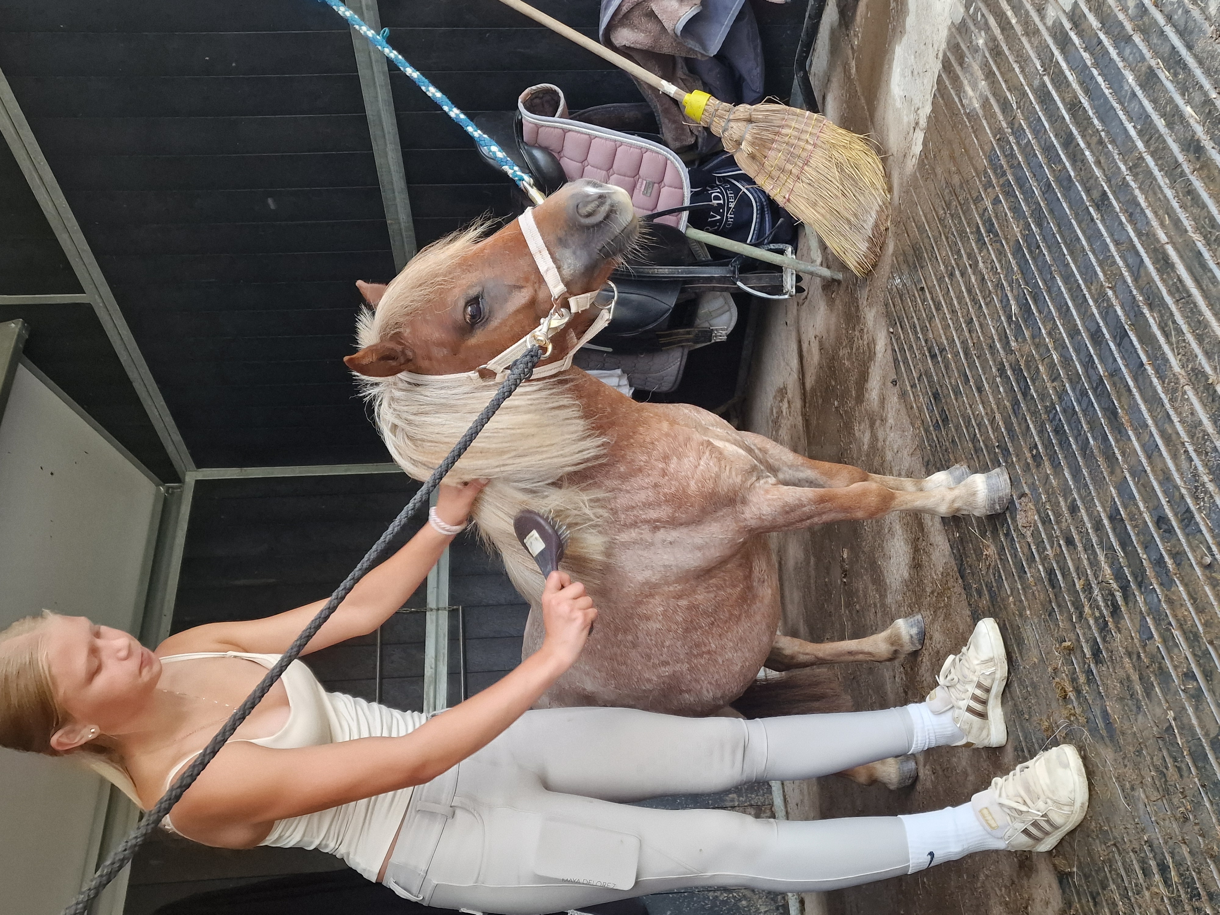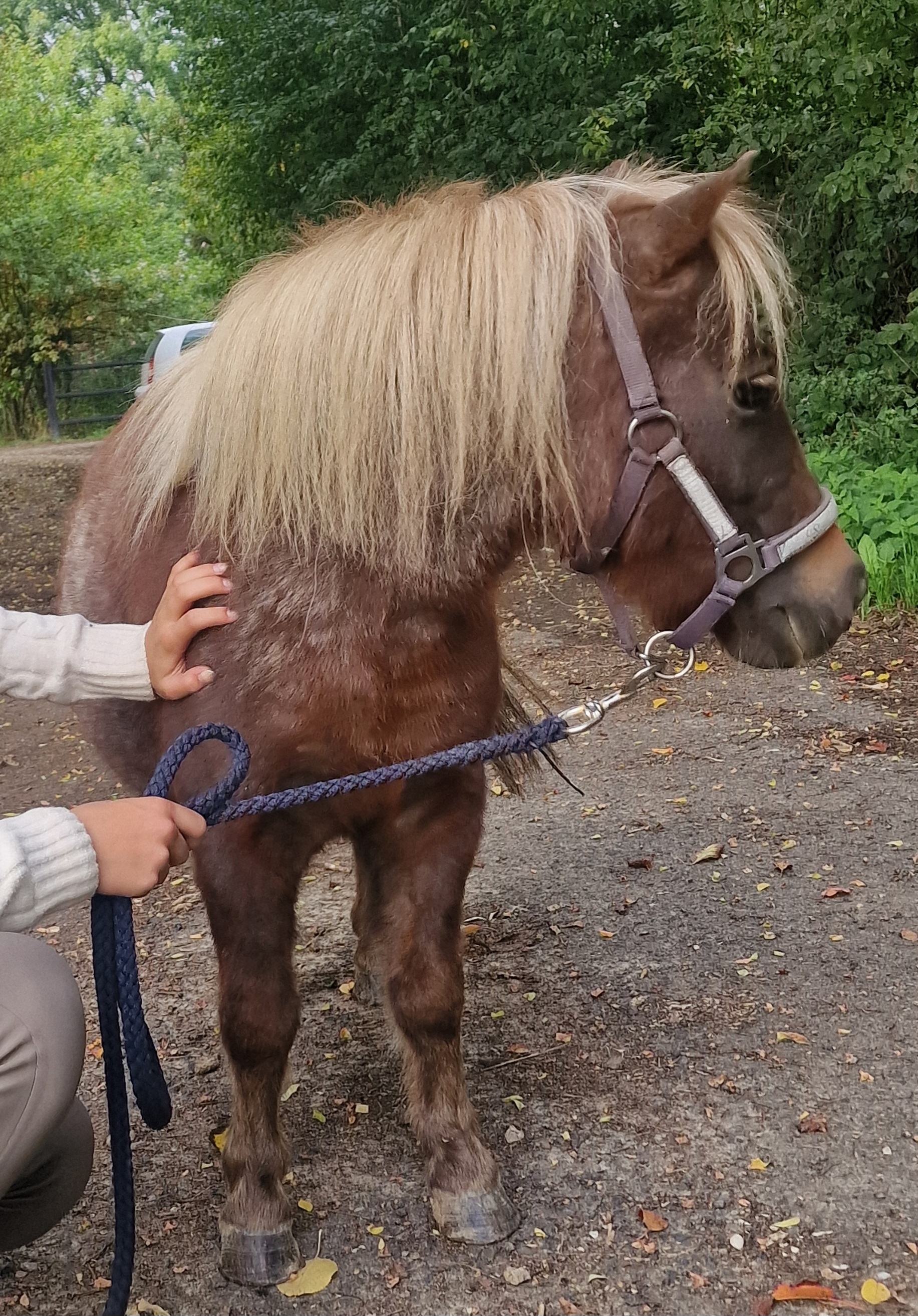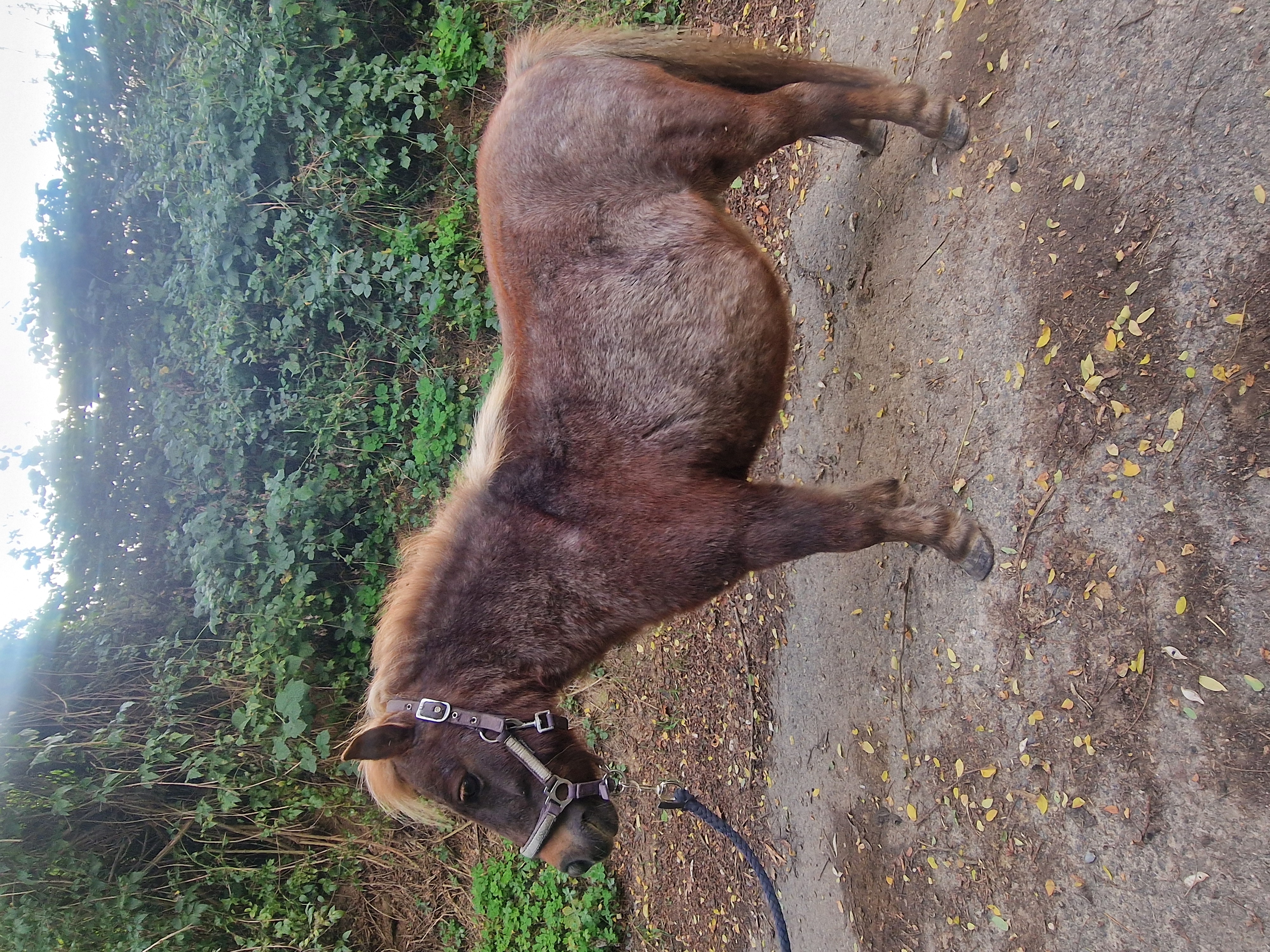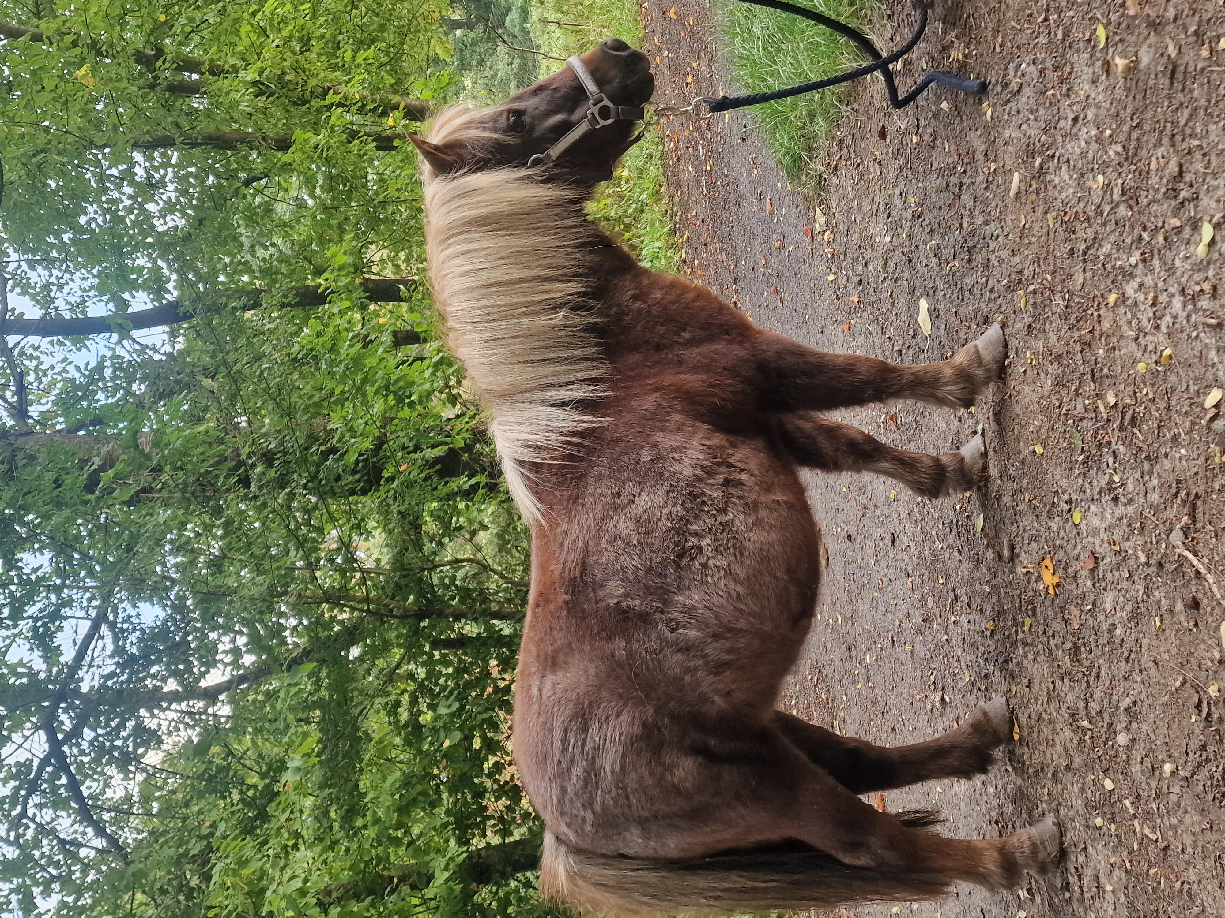 Zeer brave en beeldschone pony merrie. Was bij ons als gezelschap voor onze grote paarden. Laat zich braaf leiden en poetsen. Zeker ook een geweldig pony voor voor de koets. Mogelijk drachtig van onze AMHA-hengst. Bij ons altijd gezond geweest. Loopt in de kudde ook goed samen met grote paarden. Very well-behaved and beautiful pony mare. She was with us as a companion for our large horses. Easy to lead and groom. Certainly also a great pony for driving. Possibly in foal by our AMHA stallion. Has always been healthy with us. Lives peacefully in the herd together with large horses. Très gentille et magnifique ponette. Elle était chez nous comme compagnie pour nos grands chevaux. Elle se laisse facilement mener et brosser. Certainement aussi une excellente ponette d’attelage. Possiblement gestante de notre étalon AMHA. Toujours en bonne santé chez nous. Vit en troupeau également avec des grands chevaux sans problème. Sehr brave und wunderschöne Ponystute. Sie war bei uns als Gesellschaft für unsere Großpferde. Lässt sich brav führen und putzen. Sicher auch ein tolles Pony für die Kutsche. Eventuell tragend von unserem AMHA-Hengst. Bei uns war sie stets gesund. Läuft in der Herde auch problemlos mit Großpferden.