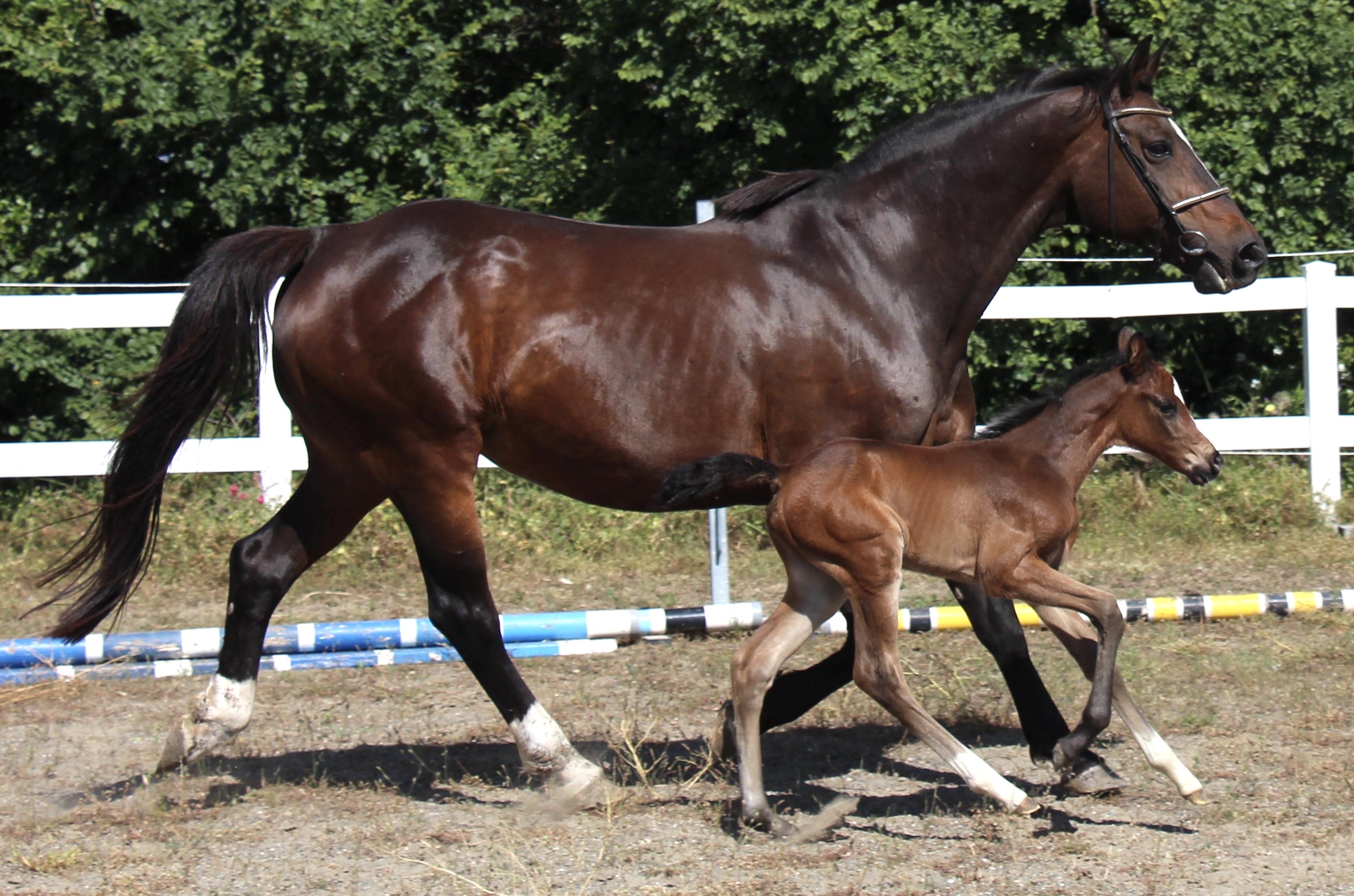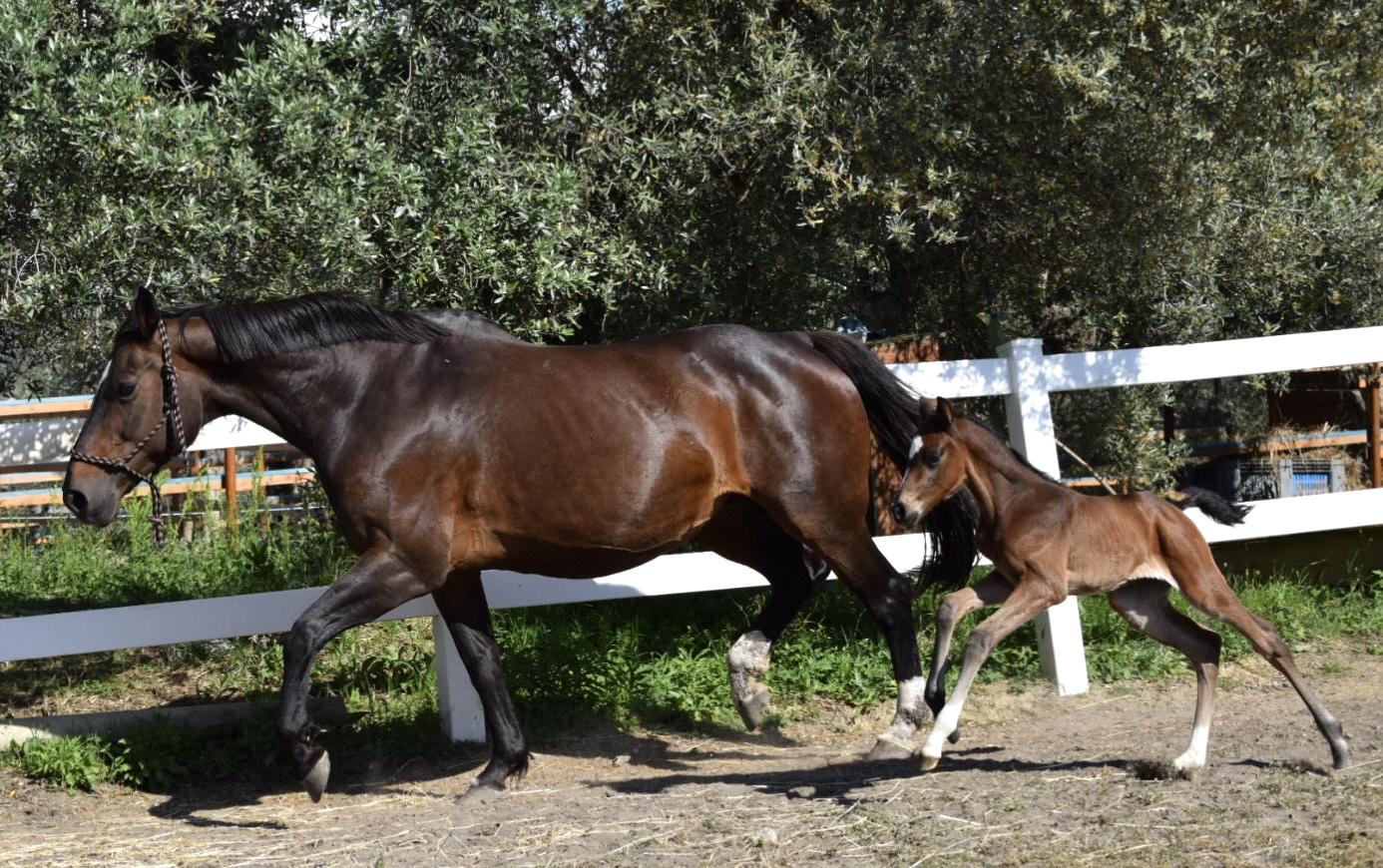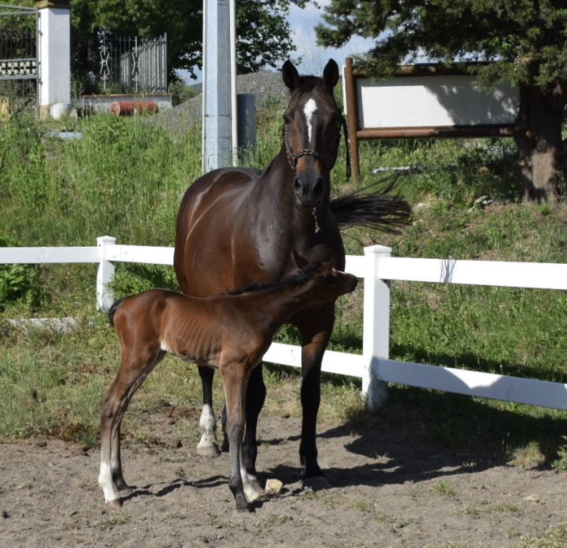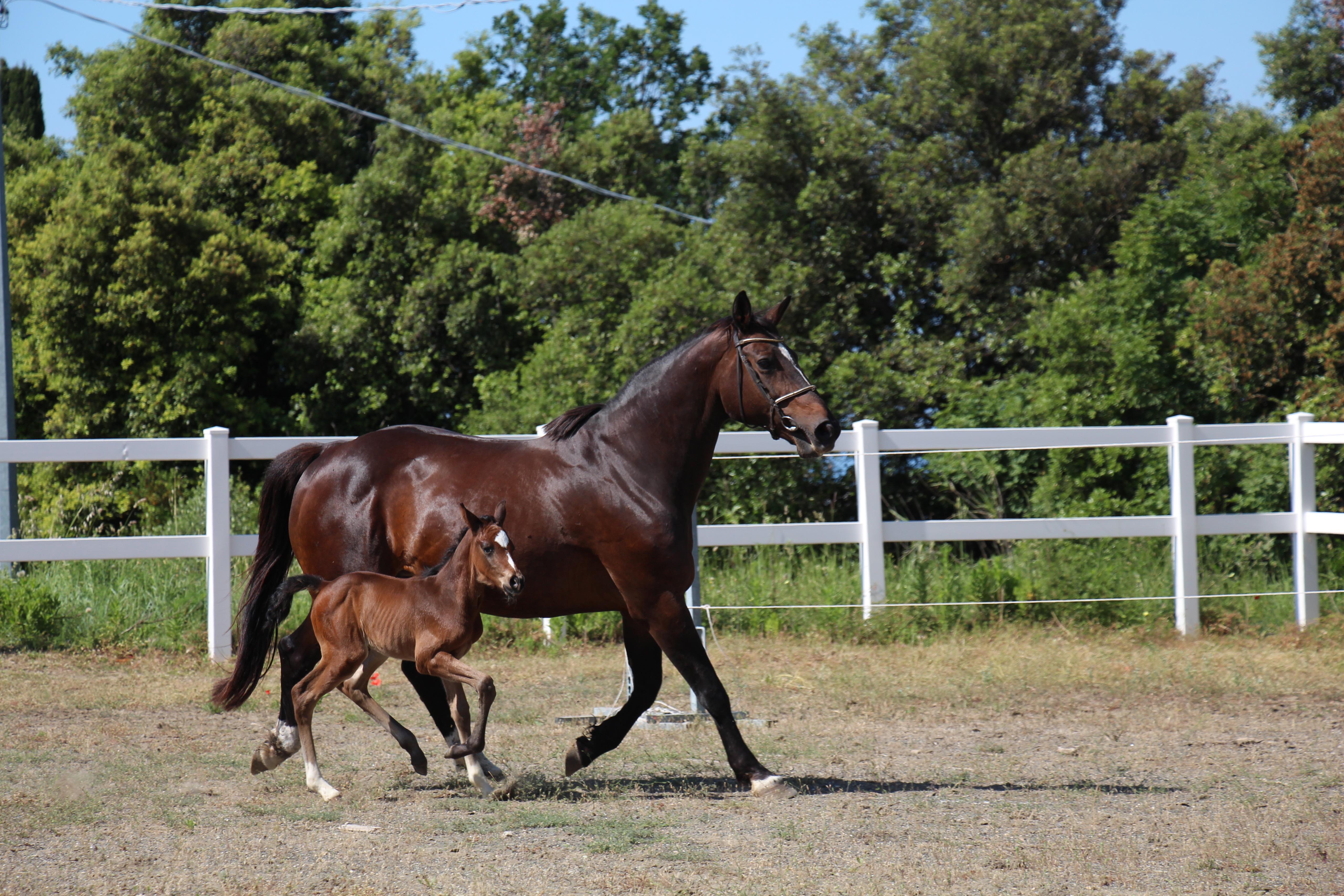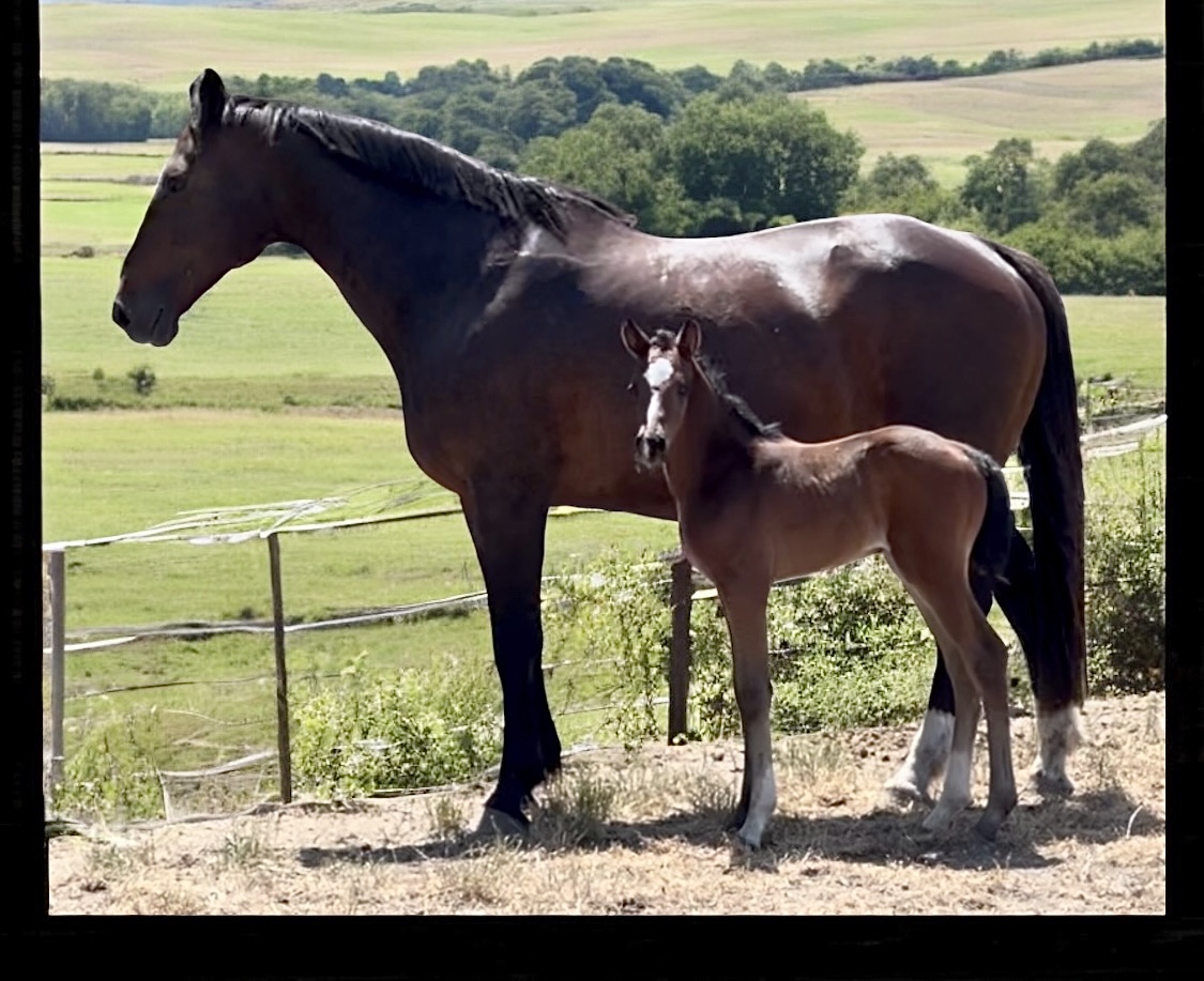 Op de foto zie je Unte met haar merrieveulen van 2025. Het embryo in de merrie blijft bij de verkoper gestald. Aan de koper wordt een vergoeding van €300 per maand (excl. BTW) in rekening gebracht voor de verzorging van het veulen tot en met de afname na het spenen. Eventuele extra kosten, zoals extra echo’s, veterinaire behandelingen of andere onvoorziene uitgaven, worden afzonderlijk en in overleg aan de koper doorberekend. The photo shows Unte with her filly foal 2025. The embryo in the mare remains with the seller. The buyer will be charged a monthly fee of €300 (excluding VAT) for the care of the foal until its removal after weaning. Any additional costs, such as additional ultrasounds, veterinary treatments, or other unforeseen expenses, will be invoiced to the buyer separately and upon agreement. La photo montre Unte avec sa pouliche 2025. L'embryon de la jument reste chez le vendeur. L'acheteur devra payer un forfait mensuel de 300 € (hors TVA) pour les soins du poulain jusqu'à son retrait après sevrage. Tous frais supplémentaires, tels que des échographies supplémentaires, des soins vétérinaires ou autres dépenses imprévues, seront facturés séparément à l'acheteur et après accord. Das Foto zeigt Unte mit ihrem Stutfohlen 2025. Der Embryo in der Stute verbleibt beim Verkäufer. Für die Betreuung des Fohlens bis zur Abholung nach dem Absetzen wird dem Käufer eine monatliche Gebühr von 300 € (zzgl. MwSt.) in Rechnung gestellt. Eventuelle Zusatzkosten, wie z. B. zusätzliche Ultraschalluntersuchungen, tierärztliche Behandlungen oder sonstige unvorhergesehene Ausgaben, werden dem Käufer nach Absprache gesondert in Rechnung gestellt.