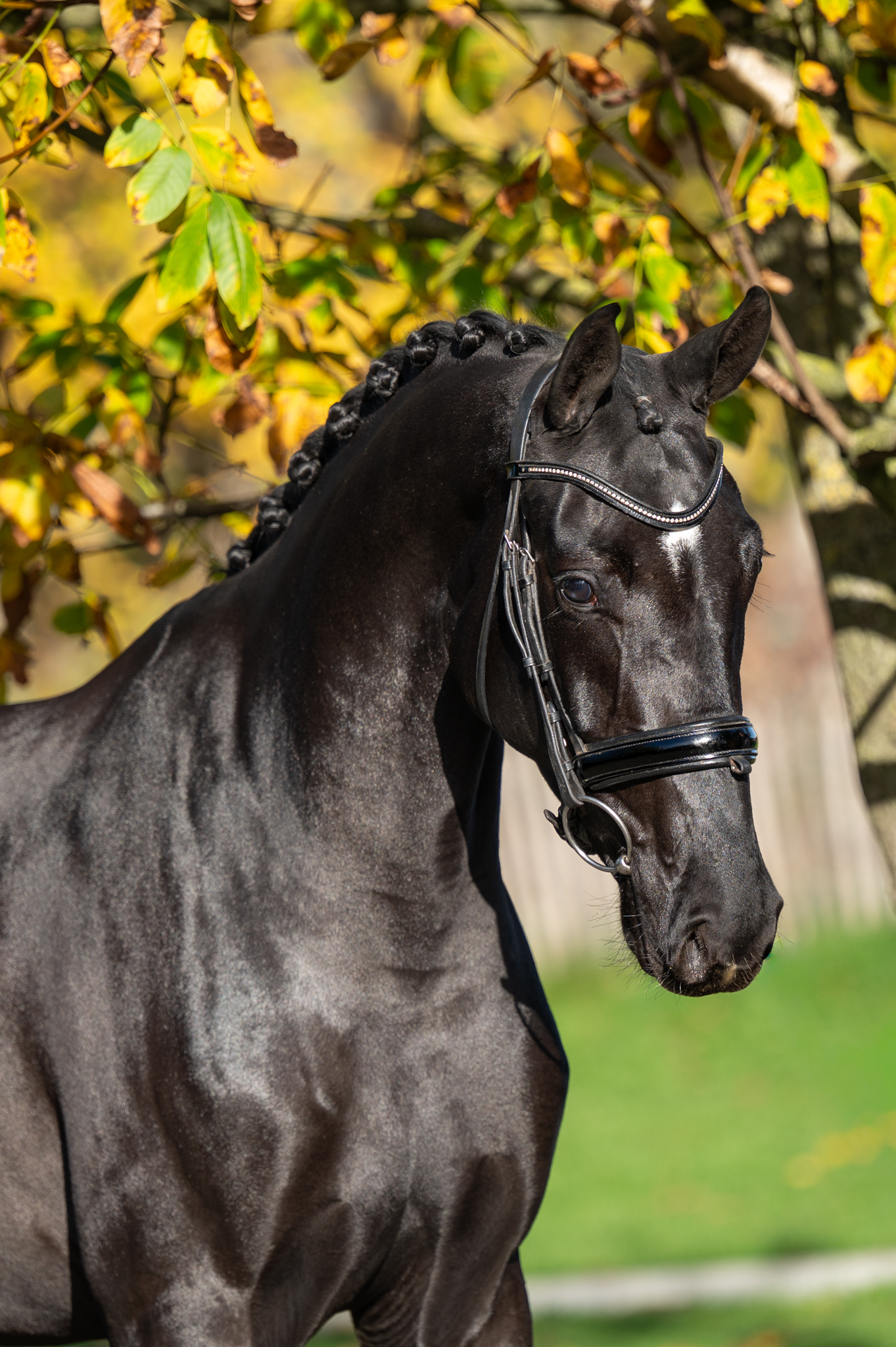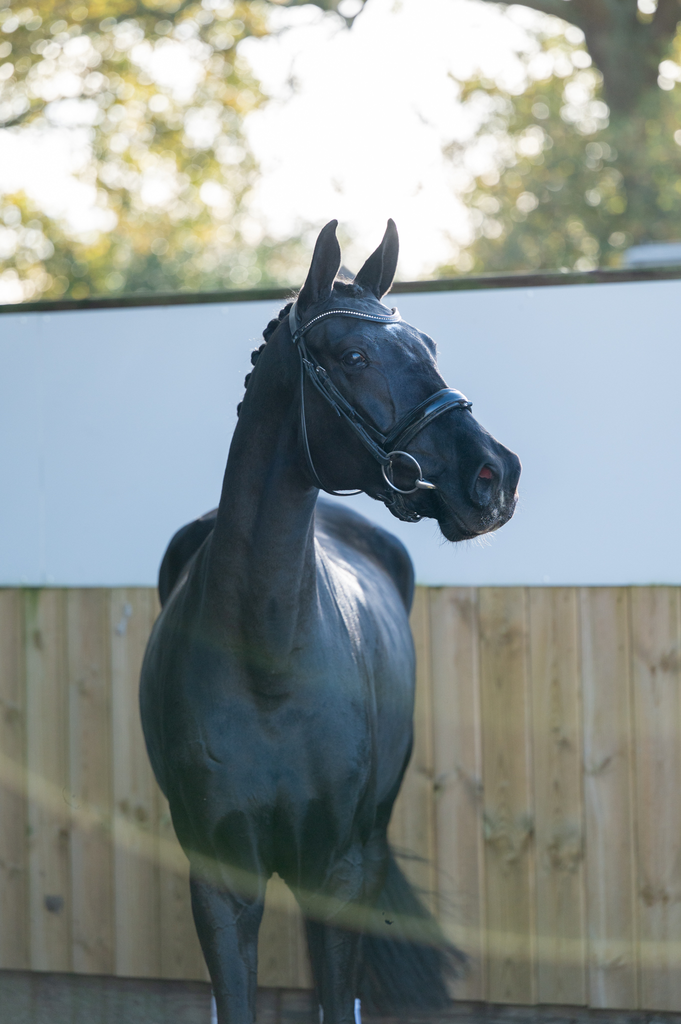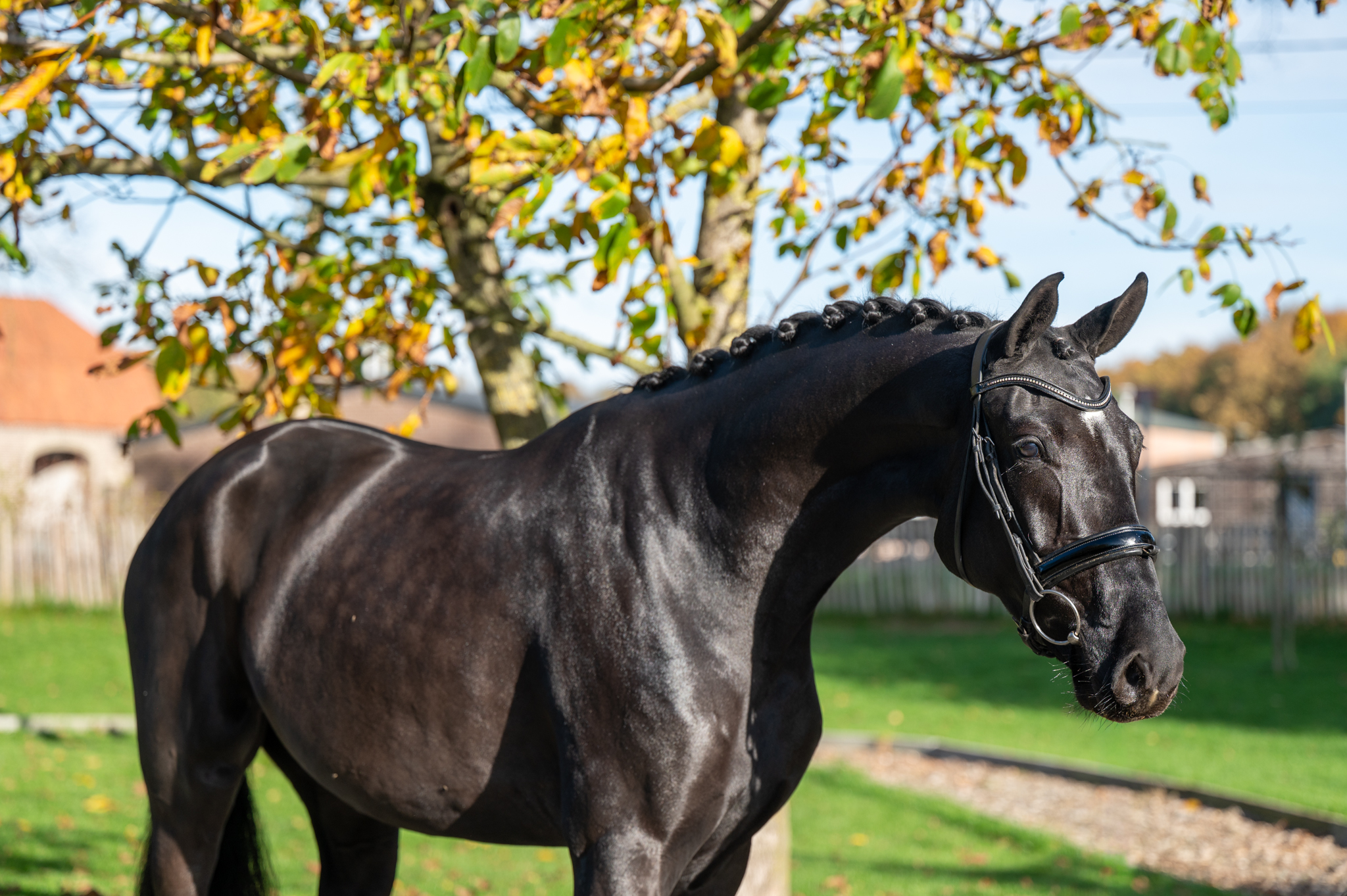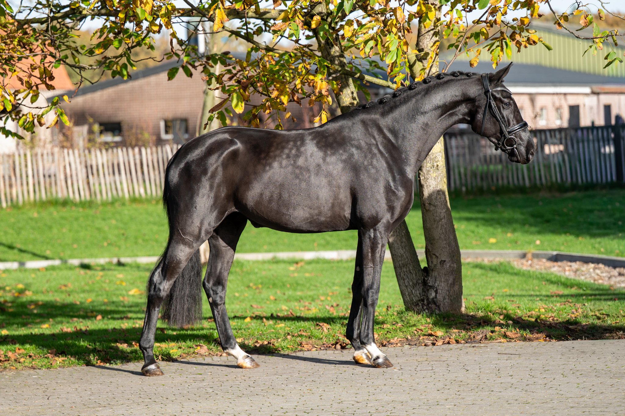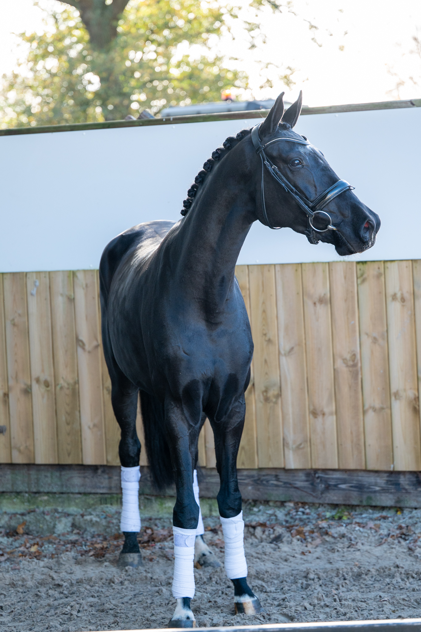 Sweety Noeska, een opvallend mooie zwartbruine merrie van Blue Hors Santiano uit een Fürst Romancier-moeder. Sweety Noeska komt uit een uitzonderlijk sterke moederlijn. Haar grootmoeder Anne v. Tuschinski bracht al twee internationale Grand Prix-paarden: GGH IronMan v. Ferro en Escarigo v. Meastro, en daarnaast het Lichte Tour-paard Incredible v. Apache. Dit maakt haar afkomst bijzonder interessant voor zowel sport als fokkerij. De vader Blue Hors Santiano (Sezuan x Romanov) staat bekend om zijn krachtige bewegingsvorm, elegantie en rijdbaarheid. De invloed van Fürst Romancier aan moederszijde versterkt dit met zijn vermogen om nuchtere, werkwillige en talentvolle dressuurpaarden te geven. Sweety Noeska is WFFS-negatief en beschikt over een goede DO C-waarde, wat haar extra geschikt maakt voor een verantwoorde fokkerij. Ze toont veel balans, souplesse en een moderne uitstraling met drie correcte basisgangen. Een merrie met een bewezen moederlijn, gezonde basis en opvallend veel kwaliteit – klaar om verder op te leiden voor de sport of in te zetten in een serieuze fokkerij. Sweety Noeska: genetisch goud met uitstraling, gezondheid en potentie. Sweety Noeska, an elegant dark bay mare by Blue Hors Santiano out of a Fürst Romancier dam. Sweety Noeska comes from an exceptional dam line. Her granddam Anne by Tuschinski produced two international Grand Prix horses — GGH IronMan by Ferro and Escarigo by Meastro — as well as the Small Tour horse Incredible by Apache. This pedigree makes her highly interesting for both sport and breeding. Her sire Blue Hors Santiano (Sezuan x Romanov) is renowned for his power, elegance, and rideability. On the dam’s side, Fürst Romancier adds a strong character and the ability to pass on calm, willing, and talented dressage horses. Sweety Noeska is WFFS negative and has an excellent DO C-value, making her perfectly suited for responsible breeding. She shows balance, suppleness, and a modern expression with three correct basic gaits. A mare with a proven dam line, solid health, and remarkable quality — ready to develop further in sport or to be a valuable addition to any breeding program. Sweety Noeska: genetic excellence with elegance, soundness, and potential. Sweety Noeska, superbe jument bai brun issue de Blue Hors Santiano et d’une mère par Fürst Romancier. Sweety Noeska provient d’une lignée maternelle exceptionnelle. Sa grand-mère Anne par Tuschinski a produit deux chevaux de Grand Prix international — GGH IronMan par Ferro et Escarigo par Meastro — ainsi que le cheval de Petit Tour Incredible par Apache. Une généalogie idéale pour le sport comme pour l’élevage. Son père Blue Hors Santiano (Sezuan x Romanov) est connu pour sa puissance, son élégance et sa grande facilité sous la selle. Du côté maternel, Fürst Romancier apporte calme, disponibilité et talent, des qualités très recherchées pour le dressage moderne. Sweety Noeska est négative WFFS et possède une excellente valeur DO C, garantissant une base saine pour l’élevage. Elle se distingue par son équilibre, sa souplesse et son expression moderne avec trois allures correctes et expressives. Une jument issue d’une lignée confirmée, en parfaite santé et dotée d’un grand potentiel — prête pour le sport ou pour enrichir un programme d’élevage ambitieux. Sweety Noeska, eine ausdrucksstarke dunkelbraune Stute von Blue Hors Santiano aus einer Fürst Romancier-Mutter. Sweety Noeska entstammt einer außergewöhnlich erfolgreichen Mutterlinie. Ihre Großmutter Anne v. Tuschinski brachte bereits zwei internationale Grand-Prix-Pferde hervor — GGH IronMan v. Ferro und Escarigo v. Meastro — sowie das Prix-St-Georges-Pferd Incredible v. Apache. Eine Abstammung, die sowohl für Sport als auch für Zucht höchste Qualität verspricht. Ihr Vater Blue Hors Santiano (Sezuan x Romanov) überzeugt durch Kraft, Eleganz und Rittigkeit. Über die Mutterseite bringt Fürst Romancier Leistungsbereitschaft, Ruhe und Talent für den modernen Dressursport mit. Sweety Noeska ist WFFS-negativ und besitzt einen sehr guten DO C-Wert, was sie zu einer sicheren Wahl für verantwortungsvolle Zucht macht. Sie zeigt hervorragende Balance, Geschmeidigkeit und ein modernes Erscheinungsbild mit drei korrekten Grundgangarten. Eine Stute mit bewährter Mutterlinie, solider Gesundheit und außergewöhnlicher Qualität — bereit für eine erfolgreiche sportliche Karriere oder als wertvolle Zuchtstute. Sweety Noeska: genetische Stärke, Eleganz und Zukunftspotenzial. Sweety Noeska : excellence génétique, élégance et potentiel.