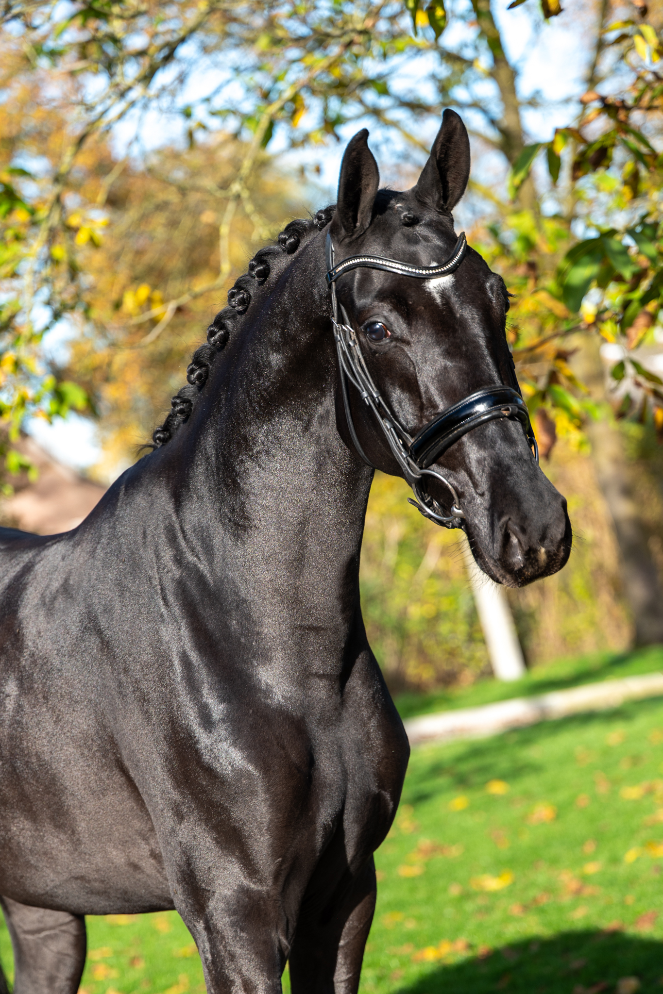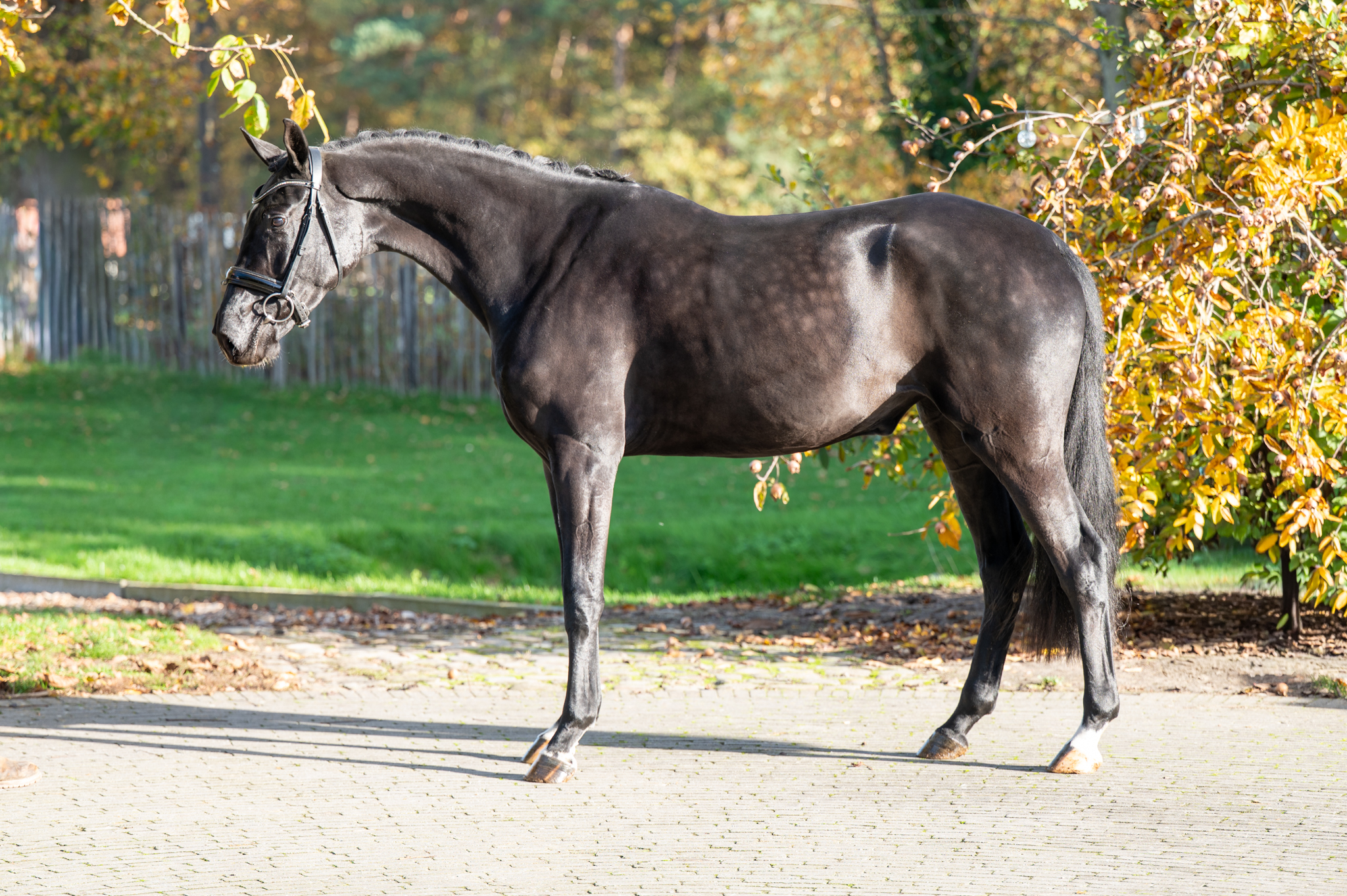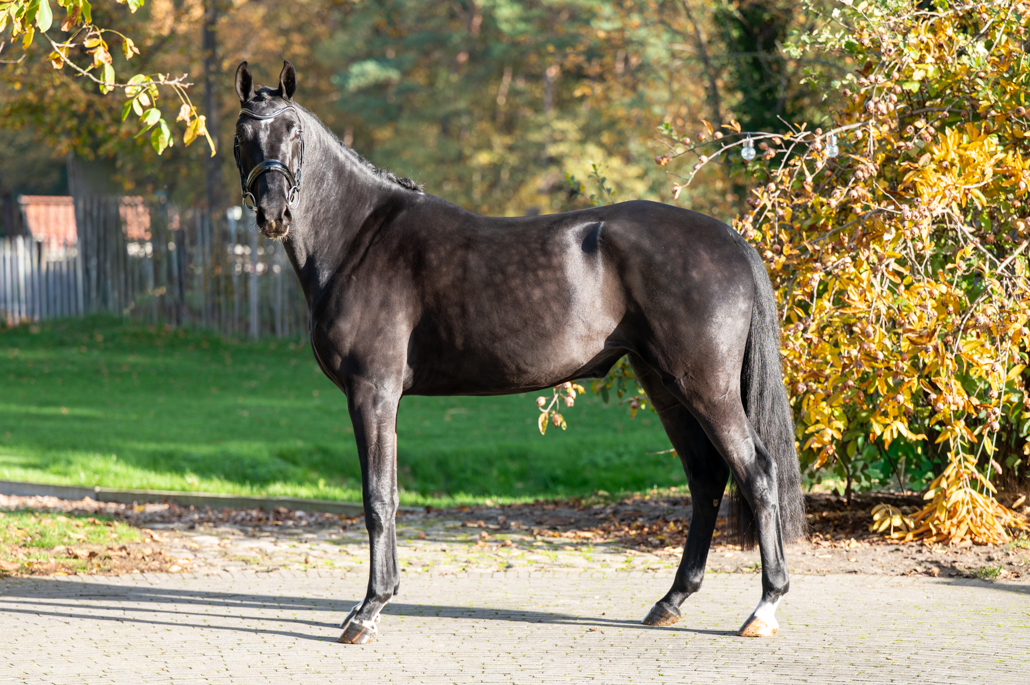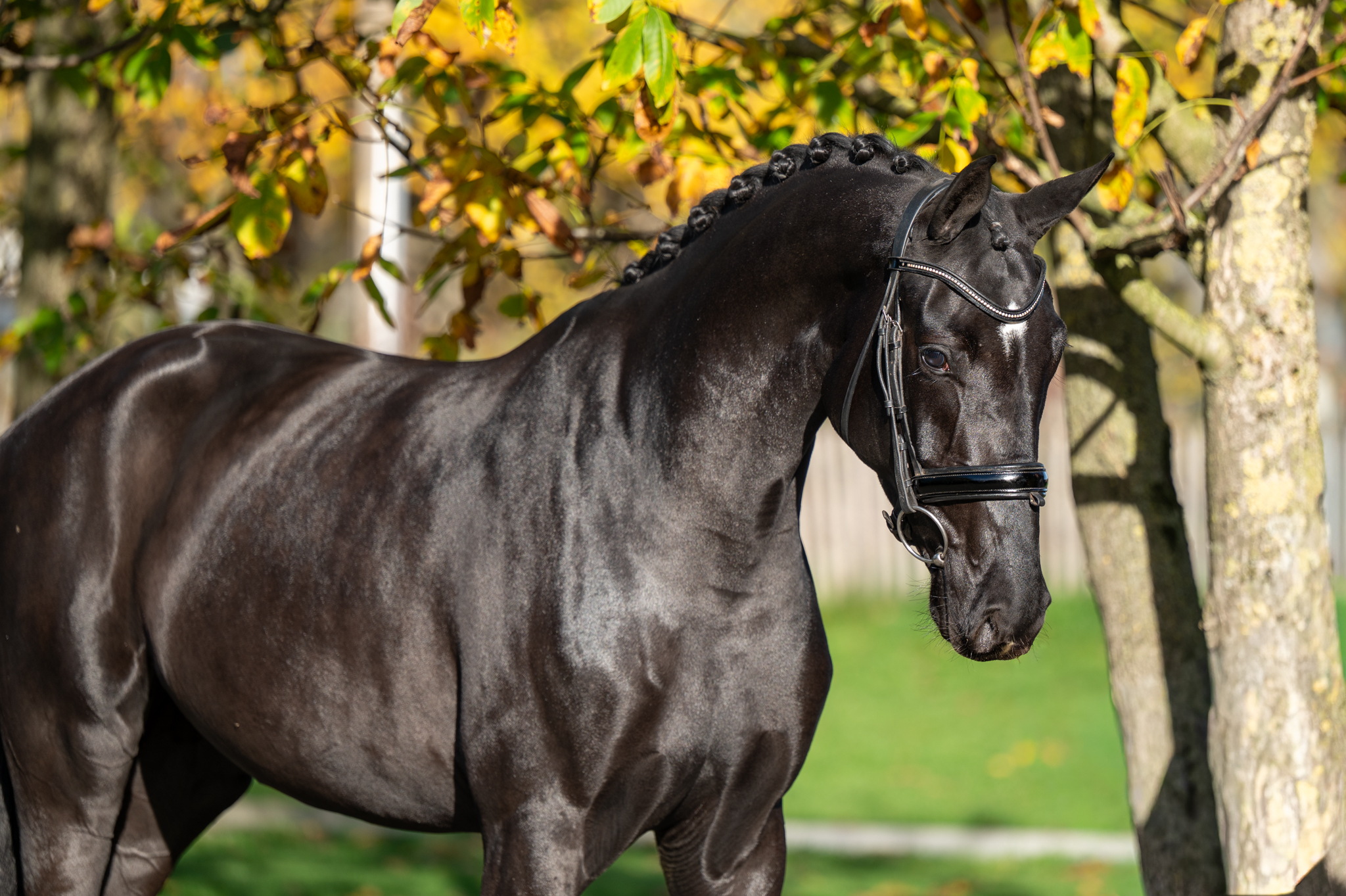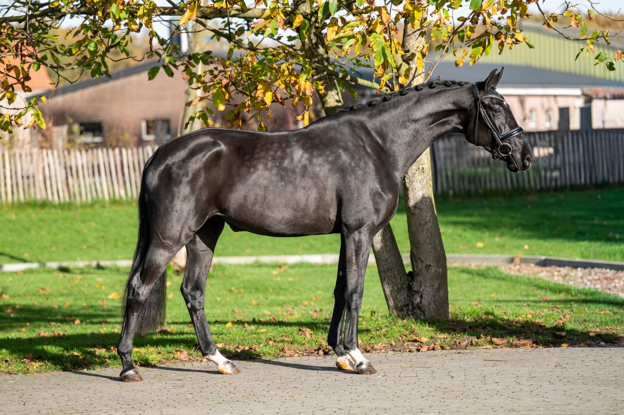 Sweety Noeska, een opvallend mooie zwartbruine merrie van Blue Hors Santiano uit een Fürst Romancier-moeder. Sweety Noeska komt uit een uitzonderlijk sterke moederlijn. Haar grootmoeder Anne v. Tuschinski bracht al twee internationale Grand Prix-paarden: GGH IronMan v. Ferro en Escarigo v. Meastro, en daarnaast het Lichte Tour-paard Incredible v. Apache. Dit maakt haar afkomst bijzonder interessant voor zowel sport als fokkerij. De vader Blue Hors Santiano (Sezuan x Romanov) staat bekend om zijn krachtige bewegingsvorm, elegantie en rijdbaarheid. De invloed van Fürst Romancier aan moederszijde versterkt dit met zijn vermogen om nuchtere, werkwillige en talentvolle dressuurpaarden te geven. Sweety Noeska is WFFS-negatief en beschikt over een goede DO C-waarde, wat haar extra geschikt maakt voor een verantwoorde fokkerij. Ze toont veel balans, souplesse en een moderne uitstraling met drie correcte basisgangen. Een merrie met een bewezen moederlijn, gezonde basis en opvallend veel kwaliteit – klaar om verder op te leiden voor de sport of in te zetten in een serieuze fokkerij. Sweety Noeska: genetisch goud met uitstraling, gezondheid en potentie. Sweety Noeska, an elegant dark bay mare by Blue Hors Santiano out of a Fürst Romancier dam. Sweety Noeska comes from an exceptional dam line. Her granddam Anne by Tuschinski produced two international Grand Prix horses — GGH IronMan by Ferro and Escarigo by Meastro — as well as the Small Tour horse Incredible by Apache. This pedigree makes her highly interesting for both sport and breeding. Her sire Blue Hors Santiano (Sezuan x Romanov) is renowned for his power, elegance, and rideability. On the dam’s side, Fürst Romancier adds a strong character and the ability to pass on calm, willing, and talented dressage horses. Sweety Noeska is WFFS negative and has an excellent DO C-value, making her perfectly suited for responsible breeding. She shows balance, suppleness, and a modern expression with three correct basic gaits. A mare with a proven dam line, solid health, and remarkable quality — ready to develop further in sport or to be a valuable addition to any breeding program. Sweety Noeska: genetic excellence with elegance, soundness, and potential. Sweety Noeska, superbe jument bai brun issue de Blue Hors Santiano et d’une mère par Fürst Romancier. Sweety Noeska provient d’une lignée maternelle exceptionnelle. Sa grand-mère Anne par Tuschinski a produit deux chevaux de Grand Prix international — GGH IronMan par Ferro et Escarigo par Meastro — ainsi que le cheval de Petit Tour Incredible par Apache. Une généalogie idéale pour le sport comme pour l’élevage. Son père Blue Hors Santiano (Sezuan x Romanov) est connu pour sa puissance, son élégance et sa grande facilité sous la selle. Du côté maternel, Fürst Romancier apporte calme, disponibilité et talent, des qualités très recherchées pour le dressage moderne. Sweety Noeska est négative WFFS et possède une excellente valeur DO C, garantissant une base saine pour l’élevage. Elle se distingue par son équilibre, sa souplesse et son expression moderne avec trois allures correctes et expressives. Une jument issue d’une lignée confirmée, en parfaite santé et dotée d’un grand potentiel — prête pour le sport ou pour enrichir un programme d’élevage ambitieux. Sweety Noeska, eine ausdrucksstarke dunkelbraune Stute von Blue Hors Santiano aus einer Fürst Romancier-Mutter. Sweety Noeska entstammt einer außergewöhnlich erfolgreichen Mutterlinie. Ihre Großmutter Anne v. Tuschinski brachte bereits zwei internationale Grand-Prix-Pferde hervor — GGH IronMan v. Ferro und Escarigo v. Meastro — sowie das Prix-St-Georges-Pferd Incredible v. Apache. Eine Abstammung, die sowohl für Sport als auch für Zucht höchste Qualität verspricht. Ihr Vater Blue Hors Santiano (Sezuan x Romanov) überzeugt durch Kraft, Eleganz und Rittigkeit. Über die Mutterseite bringt Fürst Romancier Leistungsbereitschaft, Ruhe und Talent für den modernen Dressursport mit. Sweety Noeska ist WFFS-negativ und besitzt einen sehr guten DO C-Wert, was sie zu einer sicheren Wahl für verantwortungsvolle Zucht macht. Sie zeigt hervorragende Balance, Geschmeidigkeit und ein modernes Erscheinungsbild mit drei korrekten Grundgangarten. Eine Stute mit bewährter Mutterlinie, solider Gesundheit und außergewöhnlicher Qualität — bereit für eine erfolgreiche sportliche Karriere oder als wertvolle Zuchtstute. Sweety Noeska: genetische Stärke, Eleganz und Zukunftspotenzial. Sweety Noeska : excellence génétique, élégance et potentiel.