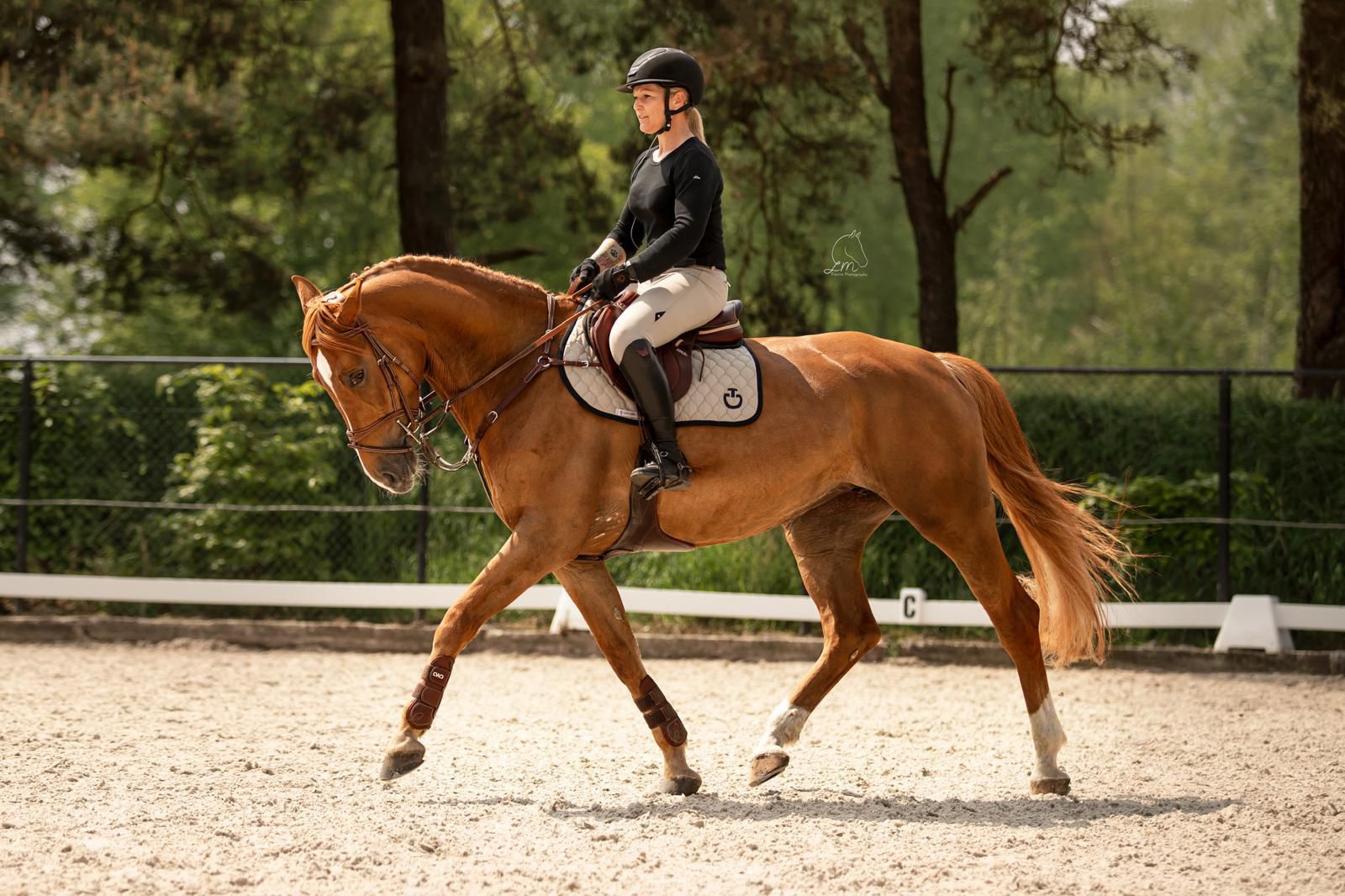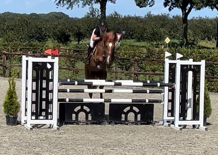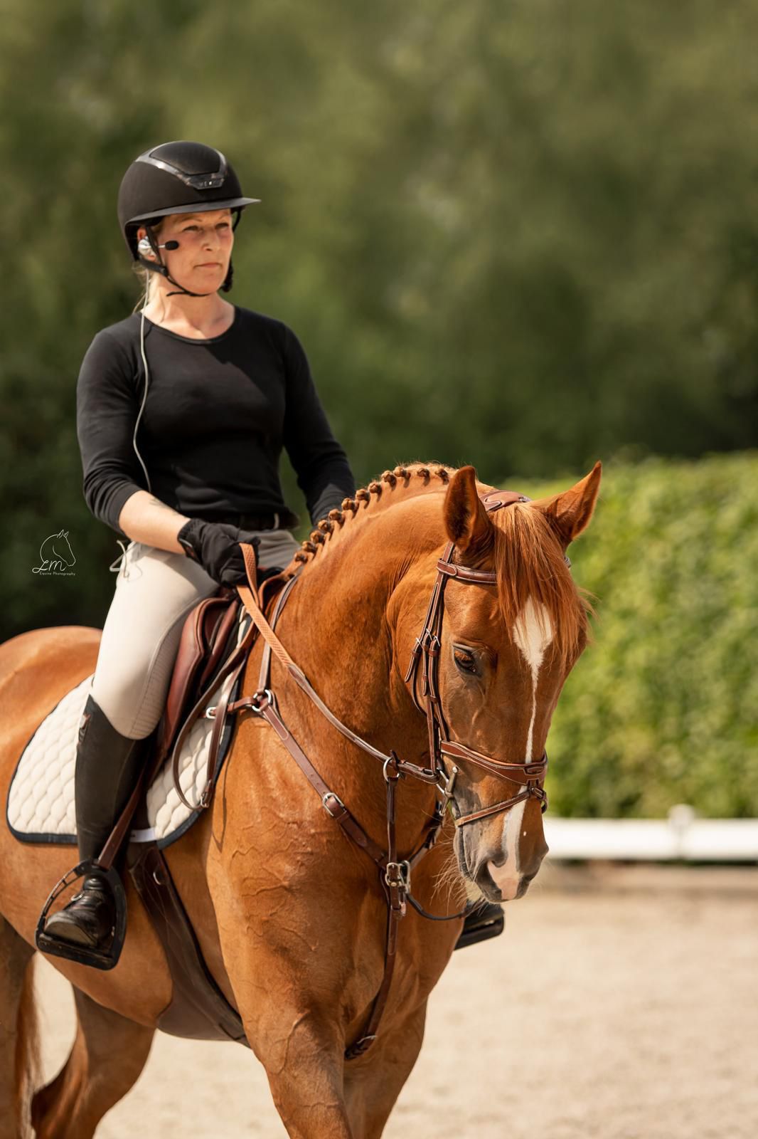 Idefix is een chique, grootramige merrie met enkele mooie witte aftekeningen. Ze meet 1,67 m en heeft veel uitstraling. In de omgang is ze een heerlijk en makkelijk paard: ze is dol op aandacht en knuffels en heeft geen stalgebreken. Ze gedraagt zich voorbeeldig bij de smid en is probleemloos tijdens transport. Ze geniet van buitenritten en is verkeersmak. In het dressuurwerk is ze fijn en eenvoudig te rijden, waardoor ze geschikt is voor vrijwel elke ruiter. Bij het springen is ze scherp, snel en zeer voorzichtig, wat haar vooral geschikt maakt voor een ervaren ruiter. Verder heeft ze een droomafstamming en komt ze uit een echt sportstammetje. Ook voor de fokkerij is ze zeer interessant. Idefix is an elegant, large-framed mare with a few lovely white markings. She stands 1.67 m tall and has a striking presence. She is a delightful and easy horse to handle, loves attention and cuddles, and has no stable vices. She behaves perfectly for the farrier and travels easily. She enjoys hacking out and is traffic-proof. In dressage work she is easy to ride and suitable for almost any rider. When it comes to jumping, she is sharp, quick, and very careful, making her best suited for an experienced rider. She has a dream pedigree and comes from a true sports family. She is also very interesting for breeding. Idefix est une jument chic, avec un grand cadre et quelques jolies marques blanches. Elle mesure 1,67 m et a beaucoup de présence. C’est un cheval agréable et facile à gérer, qui adore l’attention et les câlins, et qui n’a aucun vice d’écurie. Elle se comporte parfaitement avec le maréchal-ferrant et voyage facilement. Elle aime les balades en extérieur et n’a pas peur du trafic. En dressage, elle est facile à monter et convient à presque tous les cavaliers. À l’obstacle, elle est vive, rapide et très prudente, ce qui la rend surtout adaptée à un cavalier expérimenté. Elle possède une lignée de rêve et provient d’une véritable famille sportive. Elle est également très intéressante pour l’élevage. Idefix ist eine elegante, großrahmige Stute mit einigen hübschen weißen Abzeichen. Sie ist 1,67 m groß und hat viel Ausstrahlung. Im Umgang ist sie ein äußerst angenehmes und unkompliziertes Pferd, das Aufmerksamkeit und Zuneigung liebt und keine Stallmängel hat. Sie zeigt sich vorbildlich beim Schmied und lässt sich problemlos transportieren. Sie liebt Ausritte und ist verkehrssicher. In der Dressurarbeit ist sie einfach zu reiten und für fast jeden Reiter geeignet. Beim Springen ist sie aufmerksam, schnell und sehr vorsichtig, weshalb sie am besten zu einem erfahrenen Reiter passt. Sie verfügt über eine traumhafte Abstammung und stammt aus einer echten Sportlinie. Auch für die Zucht ist sie sehr interessant.