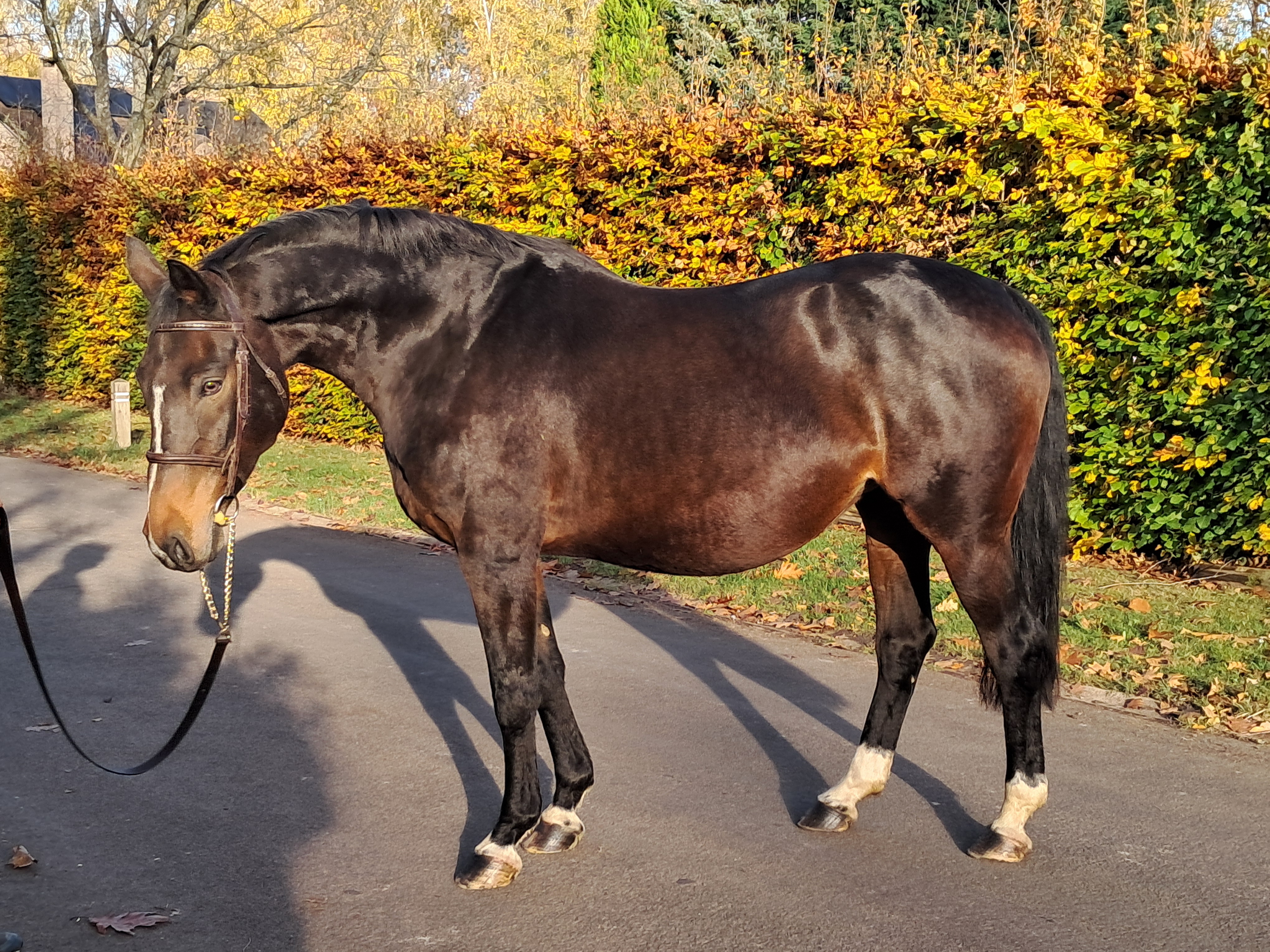 Mooie BWP-merrie, drachtig van Lector van de Bisschop, verwacht begin april 2026. Lector van de Bisschop combineert topgenetica met prestaties op hoog niveau. Vader: Bamako de Muze, uteriene broer van Mylord Carthago, moeder: Cordula de Laubry, halfbroer van Fantomas de Muze. De afgelopen jaren schitterde hij onder het zadel van Koen Vereecke met overwinningen in de GP5* en de Nations Cup van Sopot, de GP4* van Opglabbeek, de GP3* van Knokke en de Nations Cup van Deauville (dubbel foutloos). Vorig jaar eindigde hij mooi als vierde in de GP5* van Fontainebleau. Zijn nakomelingen lijken veel kwaliteit te hebben, kijk maar eens op Horsetelex. In 2023 bracht hij een jonge kampioenspaard voort in België (Libelle Asborne Z) en Nederland (Menoor). Zijn oudere nakomelingen zijn ondertussen al aanwezig in de internationale sport. Paola vd Bisschop, Popeye vd Bisschop, Looks Good de Liebri Z, Remus de Mariposa en Romulus de Mariposa zijn hiervan voorbeelden. Zeer goede merrie voor de fokkerij, staat alleen met veulen, zeer goede moeder. Merrie geboren op eigen erf, krachtig, bloedrijk, kan nog bereden worden voor recreatie. Heeft het BWP-label buiten gekregen, provinciale kampioene modellen en gangen op 3 maanden, 2 en 3 jaar. Zeer mooie gangen, zou ook geschikt kunnen zijn voor dressuur en eventing. Beautiful BWP mare, pregnant with Lector van de Bisschop, expected early April 2026. Lector van de Bisschop combines top genetics with high-level performance. Sire: Bamako de Muze, uterine brother of Mylord Carthago, dam: Cordula de Laubry, half-brother of Fantomas de Muze. In recent years, he excelled under the saddle of Koen Vereecke with wins in the GP5* and the Nations Cup of Sopot, the GP4* of Opglabbeek, the GP3* of Knokke, and the Nations Cup of Deauville (double clear rounds). Last year, he finished a nice fourth in the GP5* of Fontainebleau. His offspring appear to be very talented; just look on Horsetelex. In 2023, he produced a young horse champion in Belgium (Libelle Asborne Z) and the Netherlands (Menoor). His older offspring are already present in international sport. Paola vd Bisschop, Popeye vd Bisschop, Looks Good de Liebri Z, Remus de Mariposa, and Romulus de Mariposa are examples. Very good broodmare, alone with foal, excellent mother. Mare born on the farm, powerful, with blood, can still be ridden for leisure. Received the BWP outdoor label, provincial champion for conformation and gaits at 3 months, 2 and 3 years. Very beautiful gaits, could also produce for dressage and eventing. Belle jument BWP pleine de Lector van de Bisschop, pour début avril 2026. Lector Van de Bisschop, combinaison d’une top génétique avec des prestations de haut niveau. Père : Bamako de Muze, frère utérin de Mylord Carthago, mère Cordula de Laubry, demi-frère de Fantomas de Muze. Ces dernières années, il a brillé sous la selle de Koen Vereecke avec des victoires dans le GP5* et la Coupe des Nations de Sopot, le GP4* d'Opglabbeek, le GP3* de Knokke et la Coupe des Nations de Deauville (double sans-faute). L'année dernière, il a terminé à une belle quatrième place dans le GP5* de Fontainebleau. Sa progéniture semble avoir beaucoup de qualité, il suffit de regarder sur horsetelex. En 2023, il a produit un jeune cheval champion en Belgique (Libelle Asborne Z) et aux Pays-Bas (Menoor). Ses descendants plus âgés sont entre-temps déjà présents dans le sport international. Paola vd Bisschop, Popeye vd Bisschop, Looks Good de Liebri Z, Remus de Mariposa and Romulus de Mariposa en sont des exemples. Très bonne poulinière, pouline toute seule, très bonne mère. Jument née à la maison, puissante, avec du sang, peut encore être montée pour du loisir. A reçu le label extérieur au BWP, championne provinciale modèles et allures à 3 mois, 2 et 3 ans. Très belles allures, pourrait également produire pour le dressage et le complet. Schöne BWP-Stute, tragend von Lector van de Bisschop, erwartet Anfang April 2026. Lector van de Bisschop vereint Top-Genetik mit Spitzenleistungen. Vater: Bamako de Muze, uteriner Bruder von Mylord Carthago, Mutter: Cordula de Laubry, Halbbruder von Fantomas de Muze. In den letzten Jahren glänzte er unter dem Sattel von Koen Vereecke mit Siegen im GP5* und im Nationenpreis von Sopot, im GP4* von Opglabbeek, im GP3* von Knokke und im Nationenpreis von Deauville (doppelt fehlerfrei). Letztes Jahr belegte er einen schönen vierten Platz im GP5* von Fontainebleau. Seine Nachkommen scheinen von hoher Qualität zu sein, siehe auch auf Horsetelex. 2023 brachte er ein junges Pferd als Champion in Belgien (Libelle Asborne Z) und den Niederlanden (Menoor) hervor. Seine älteren Nachkommen sind inzwischen bereits im internationalen Sport vertreten. Paola vd Bisschop, Popeye vd Bisschop, Looks Good de Liebri Z, Remus de Mariposa und Romulus de Mariposa sind Beispiele. Sehr gute Zuchtstute, alleine mit Fohlen, ausgezeichnete Mutter. Zu Hause geborene Stute, kraftvoll, mit Blut, kann noch als Freizeitpferd geritten werden. Hat das BWP-Außensiegel erhalten, Provinzmeisterin in Modell und Gang bei 3 Monaten, 2 und 3 Jahren. Sehr schöne Gänge, könnte auch für Dressur und Vielseitigkeit gezüchtet werden.