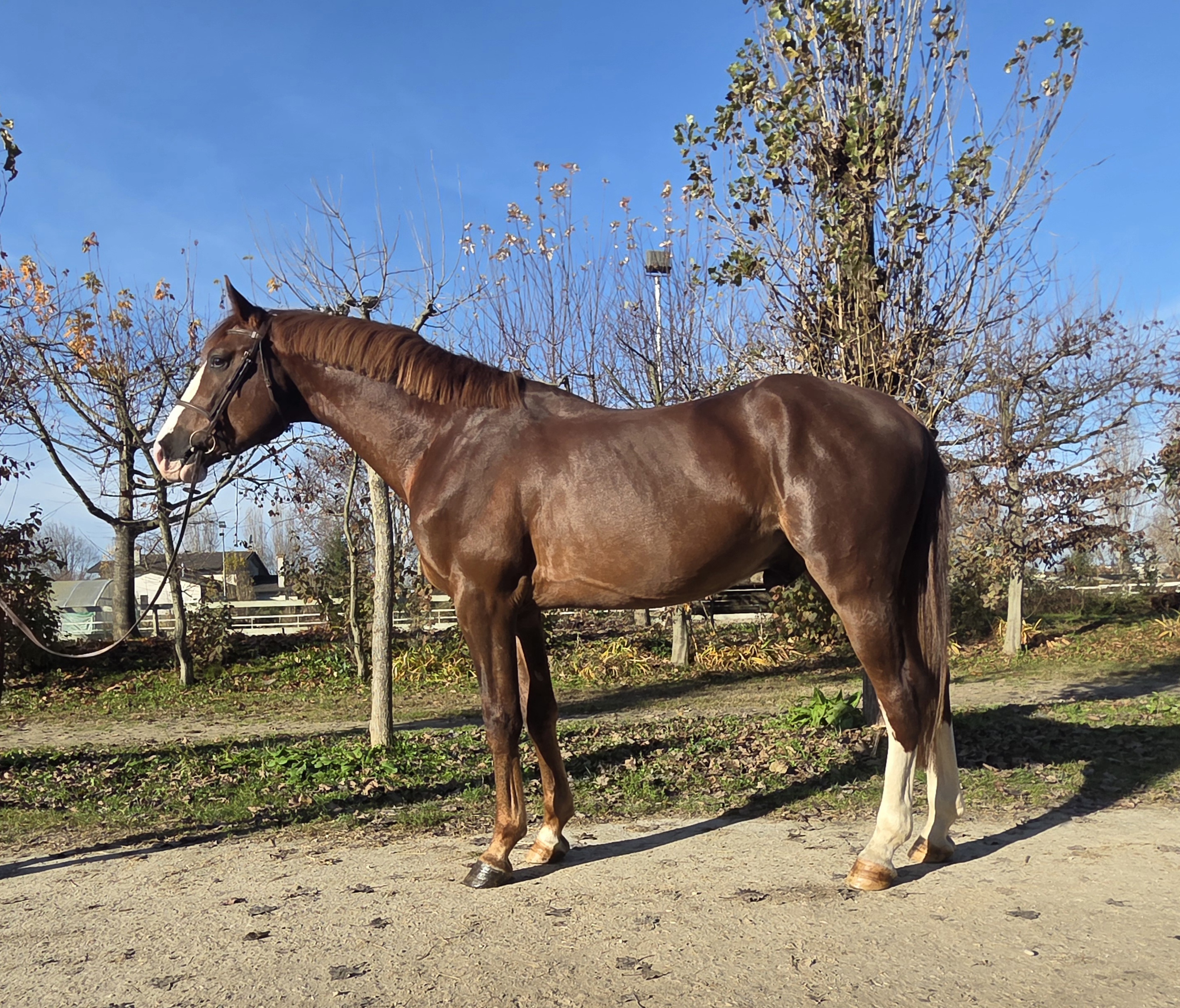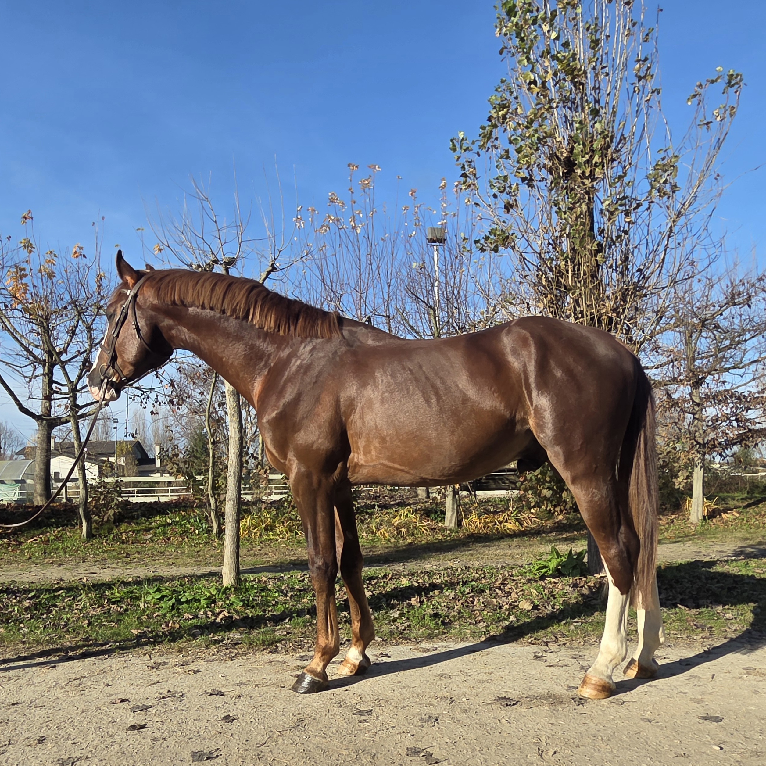 Barrio Dei Dioscuri is een Italiaanse ruin, geboren in 2022, met een schofthoogte van 173 cm. Hij heeft een prachtig type, perfecte verhoudingen en een correcte exterieurconformatie. Zijn vader Baedeker (Heartbreaker x Concorde) heeft meerdere internationale springpaarden voortgebracht, waaronder Benitus di Vallerano, deelnemer aan de Olympische Spelen van Tokio 2021; zijn moederlijn voert terug op de 1.60 m springende hengst Joyau D’Or. Hij beschikt over een lief en evenwichtig karakter, is gemakkelijk in de omgang, zowel op de grond als tijdens transport, intelligent, positief en moedig onder het zadel. Elastische beweging, mooie gangen, uitstekende rijdbaarheid en balans. Zoals te zien is op de video’s, is hij correct in het dressuurmatige werk en maakt hij nette vliegende wissels. Hij is klaar om volgend jaar in de 4-jarige rubrieken uitgebracht te worden. Dit is een paard dat kan uitblinken zowel in het klassieke springwerk als in de hunter equitation of cross-country/eventing. Krachtig en voorzichtig op de sprong, nooit kijkerig of aarzelend, en comfortabel en plezierig te rijden, ook voor amateurruiters. Een paard met een uitzonderlijke schoonheid dat rijden echt leuk maakt! Barrio Dei Dioscuri is an Italian gelding born in 2022, 173 cm at the withers, beautiful type, perfect proportions, correct conformation. His sire Baedeker (Heartbreaker x Concorde) has produced several international-level show jumpers, including Benitus di Vallerano, who competed in the Tokyo 2021 Olympics; his dam descends from the 1.60m performer stallion Joyau D'Or. He has a sweet and balanced temperament, easy to handle both on the ground and during transport, intelligent, positive, and brave under saddle. Elastic movement, lovely gaits, excellent rideability and balance. As you can see in the videos, he’s correct during flatwork and does flying changes properly. He’s ready to show in the 4YO classes next year. He is a horse that can excel both in classic show jumping and in hunter equitation or cross-country/eventing. Powerful and careful over the jumps, never spooky or hesitant, and comfortable and enjoyable even for amateur riders. A horse of uncommon beauty that makes riding truly fun! Barrio Dei Dioscuri est un hongre italien né en 2022, mesurant 173 cm au garrot. Il présente un très beau modèle, des proportions parfaites et une conformation correcte. Son père Baedeker (Heartbreaker x Concorde) a produit plusieurs chevaux de saut d’obstacles de niveau international, dont Benitus di Vallerano, participant aux Jeux Olympiques de Tokyo 2021 ; sa lignée maternelle descend de l’étalon performant à 1,60 m Joyau D’Or. Il possède un tempérament doux et équilibré, facile à manipuler aussi bien à pied qu’en transport, intelligent, positif et courageux sous la selle. Mouvement élastique, belles allures, excellente montabilité et bon équilibre. Comme on peut le voir sur les vidéos, il est correct dans le travail sur le plat et réalise correctement les changements de pied au galop. Il est prêt à sortir en concours dans les épreuves réservées aux chevaux de 4 ans l’année prochaine. C’est un cheval capable d’exceller aussi bien en saut d’obstacles classique qu’en hunter equitation ou en cross-country/concours complet. Puissant et respectueux à l’obstacle, jamais regardant ni hésitant, confortable et agréable à monter, même pour des cavaliers amateurs. Un cheval d’une beauté peu commune qui rend le fait de monter vraiment plaisant ! Barrio Dei Dioscuri ist ein italienischer Wallach, geboren 2022, mit einem Stockmaß von 173 cm. Er überzeugt durch einen wunderschönen Typ, perfekte Proportionen und eine korrekte Exterieurkonformation. Sein Vater Baedeker (Heartbreaker x Concorde) hat mehrere internationale Springpferde hervorgebracht, darunter Benitus di Vallerano, Teilnehmer der Olympischen Spiele in Tokio 2021; die Mutterlinie geht auf den 1,60-m-Springhengst Joyau D’Or zurück. Er hat ein liebes und ausgeglichenes Temperament, ist leicht im Umgang, sowohl am Boden als auch beim Transport, intelligent, positiv und mutig unter dem Sattel. Elastische Bewegung, schöne Grundgangarten, hervorragende Rittigkeit und Balance. Wie in den Videos zu sehen ist, arbeitet er korrekt auf der Ebene und zeigt saubere fliegende Galoppwechsel. Er ist bereit, im nächsten Jahr in den Prüfungen für 4-jährige Pferde vorgestellt zu werden. Ein Pferd, das sowohl im klassischen Springsport als auch in Hunter Equitation oder im Gelände/Vielseitigkeit überzeugen kann. Kraftvoll und vorsichtig am Sprung, niemals schreckhaft oder zögerlich, dabei komfortabel und angenehm zu reiten – auch für Amateure. Ein Pferd von außergewöhnlicher Schönheit, das das Reiten wirklich zum Vergnügen macht!