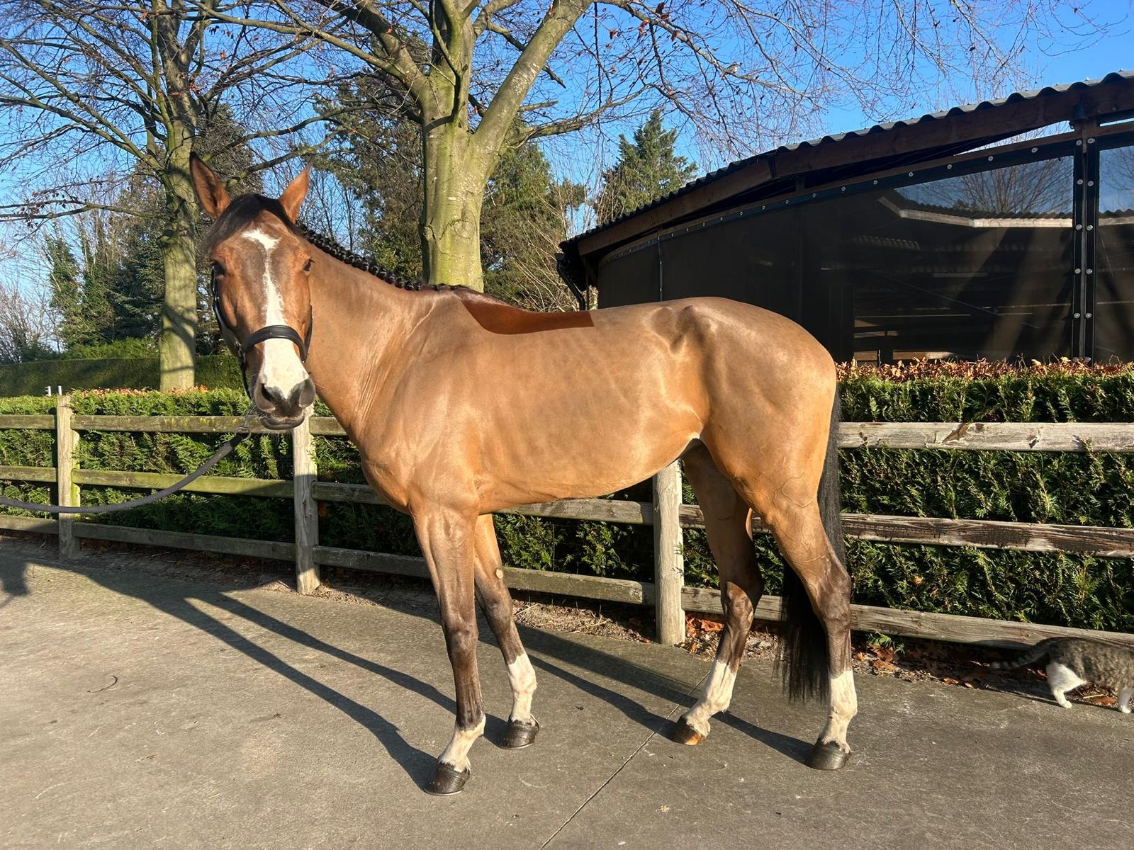 Utopia is een jonge merrie die klaar is om verder mee aan de slag te gaan. Ze is pas begin dit jaar onder het zadel gekomen en heeft inmiddels al meerdere oefenparcoursen met succes afgelegd, springt nu parcours van 1m-1.10m. Ze is zeer voorzichtig op de sprong en maakt zelden een fout. Thuis springt ze reeds vlot over hogere hindernissen en geeft daarbij een bijzonder fijn en licht gevoel. Utopia is zonder twijfel een paard voor de toekomst en komt bovendien uit een echte sportfamilie. Utopia is een gevoelige merrie met een zeer zachte mond. Ze wordt bij voorkeur gereden met een rubberen bit en een lange martingaal. Soms kan ze nog wat paniekerig reageren, maar steeds zonder kwaad opzet. Daarom heeft ze baat bij een ruiter met een zachte, rustige hand. Ze is leergierig, pikt snel nieuwe dingen op en vergeet zelden wat ze geleerd heeft. Ondanks dat ze nog groen is, staat ze goed in het werk en toont ze veel inzet en focus. Haar pedigree spreekt voor zich. Haar vader Jenson van ’t Meulenhof is zelf actief op het hoogste niveau met Niels Bruynseels en stamt af van de bekende Querly Chin-stam. De moeder van Utopia, Chariosa, was actief in de sport tot 1.45 m. Grootmoeder Cariosa sprong op 1.50 m, en overgrootmoeder Carios Z bracht meerdere 1.50 m-paarden voort. Keer op keer bewijst deze stam haar waarde met topsportpaarden — een echte springfamilie. Utopia is a young mare who is ready to continue her training. She was backed at the beginning of this year and has already successfully completed several training courses, currently jumping 1.00–1.10 m courses. She is very careful over fences and rarely makes a mistake. At home, she already jumps higher obstacles with ease and offers a particularly light and pleasant feeling. Utopia is without doubt a horse for the future and comes from a true sport horse family. Utopia is a sensitive mare with a very soft mouth. She is preferably ridden with a rubber bit and a long martingale. Occasionally she can react a bit nervously, but always without any bad intent. Therefore, she benefits from a rider with a soft and calm hand. She is eager to learn, picks up new things quickly and rarely forgets what she has learned. Although she is still green, she works willingly and shows great focus and commitment. Her pedigree speaks for itself. Her sire Jenson van ’t Meulenhof competes at the highest level with Niels Bruynseels and descends from the famous Querly Chin line. Utopia’s dam, Chariosa, competed successfully up to 1.45 m. Her granddam Cariosa competed at 1.50 m, and her great-granddam Carios Z produced several 1.50 m horses. Time and again, this dam line proves its value by producing top sport horses — a true jumping family. Utopia est une jeune jument prête à poursuivre son travail. Elle a été mise sous la selle au début de cette année et a déjà réalisé avec succès plusieurs parcours d’entraînement, évoluant actuellement sur des parcours de 1,00–1,10 m. Elle est très respectueuse à l’obstacle et commet rarement des fautes. À la maison, elle franchit déjà aisément des obstacles plus hauts et procure une sensation particulièrement légère et agréable. Utopia est sans aucun doute un cheval d’avenir, issu d’une véritable famille de sport. Utopia est une jument sensible, avec une bouche très fine. Elle est de préférence montée avec un mors en caoutchouc et une martingale longue. Elle peut parfois réagir de manière un peu nerveuse, mais toujours sans mauvaise intention. Elle a donc besoin d’un cavalier à la main douce et calme. Elle est avide d’apprendre, assimile rapidement de nouvelles choses et oublie rarement ce qu’elle a appris. Bien qu’elle soit encore verte, elle se montre volontaire au travail et fait preuve de beaucoup de concentration et d’engagement. Son pedigree parle de lui-même. Son père, Jenson van ’t Meulenhof, évolue au plus haut niveau avec Niels Bruynseels et est issu de la célèbre lignée Querly Chin. La mère d’Utopia, Chariosa, a concouru jusqu’à 1,45 m. La grand-mère Cariosa a évolué sur 1,50 m, et l’arrière-grand-mère Carios Z a produit plusieurs chevaux de 1,50 m. À maintes reprises, cette lignée démontre sa valeur en produisant des chevaux de haut niveau — une véritable famille de saut d’obstacles. Utopia ist eine junge Stute, die bereit ist, weiter gefördert zu werden. Sie wurde Anfang dieses Jahres angeritten und hat bereits mehrere Trainingsparcours erfolgreich absolviert. Aktuell springt sie Parcours auf 1,00–1,10 m Niveau. Sie ist sehr vorsichtig am Sprung und macht nur selten Fehler. Zuhause springt sie bereits mühelos höhere Hindernisse und vermittelt dabei ein besonders leichtes und angenehmes Reitgefühl. Utopia ist ohne Zweifel ein Pferd für die Zukunft und stammt aus einer echten Sportpferdefamilie. Utopia ist eine sensible Stute mit einer sehr feinen Maul. Sie wird bevorzugt mit einem Gummigebiss und einer langen Martingal geritten. Gelegentlich kann sie etwas nervös reagieren, jedoch stets ohne böse Absicht. Daher benötigt sie einen Reiter mit einer ruhigen und gefühlvollen Hand. Sie ist lernbegierig, nimmt neue Aufgaben schnell auf und vergisst selten, was sie gelernt hat. Obwohl sie noch grün ist, zeigt sie sich arbeitswillig, konzentriert und engagiert. Ihr Pedigree spricht für sich. Ihr Vater Jenson van ’t Meulenhof ist selbst auf höchstem Niveau mit Niels Bruynseels erfolgreich und entstammt dem bekannten Querly Chin-Stamm. Die Mutter von Utopia, Chariosa, war bis 1,45 m im Sport erfolgreich. Die Großmutter Cariosa sprang auf 1,50 m, und die Urgroßmutter Carios Z brachte mehrere 1,50 m-Pferde hervor. Immer wieder beweist diese Linie ihren Wert mit Top-Sportpferden — eine echte Springfamilie.