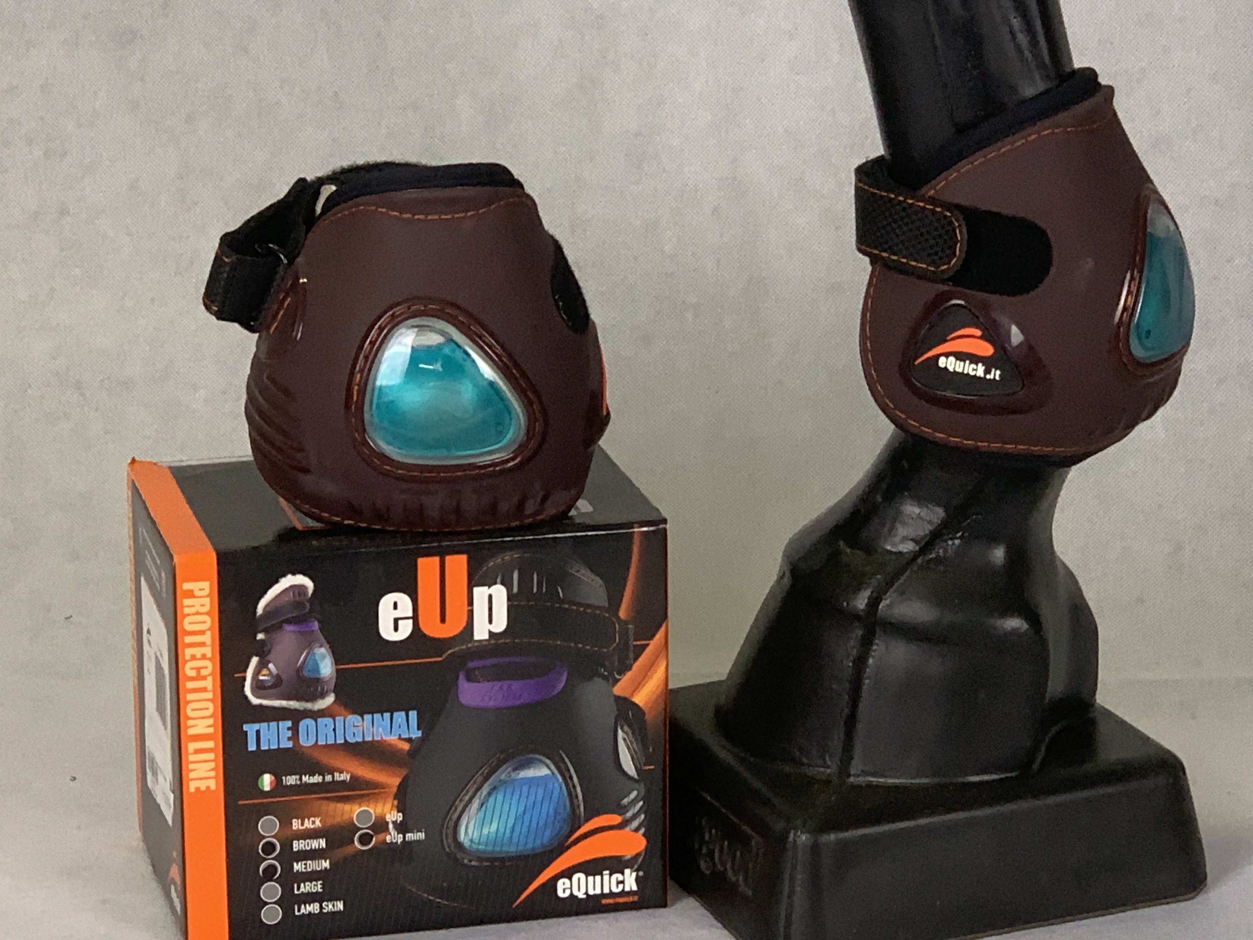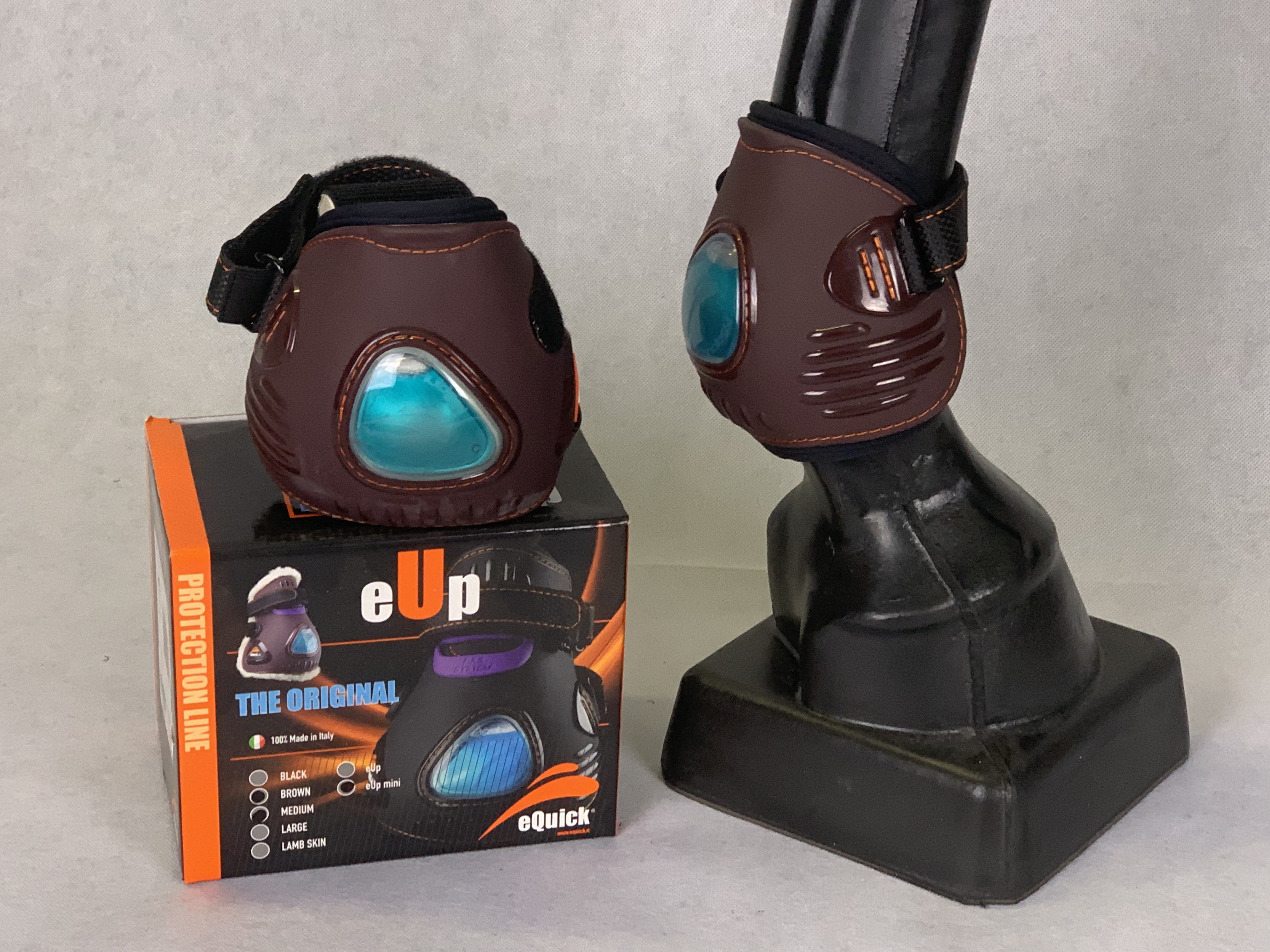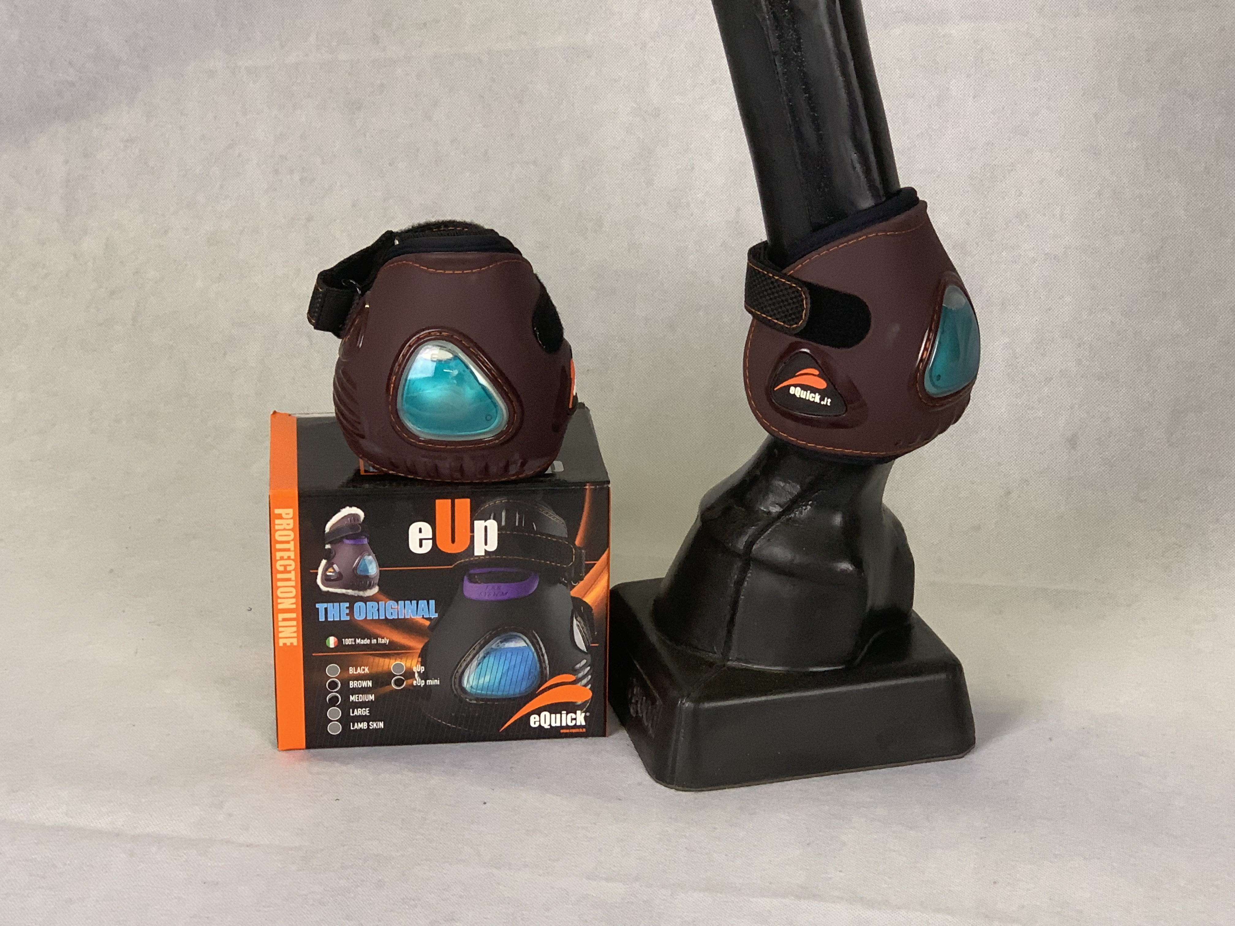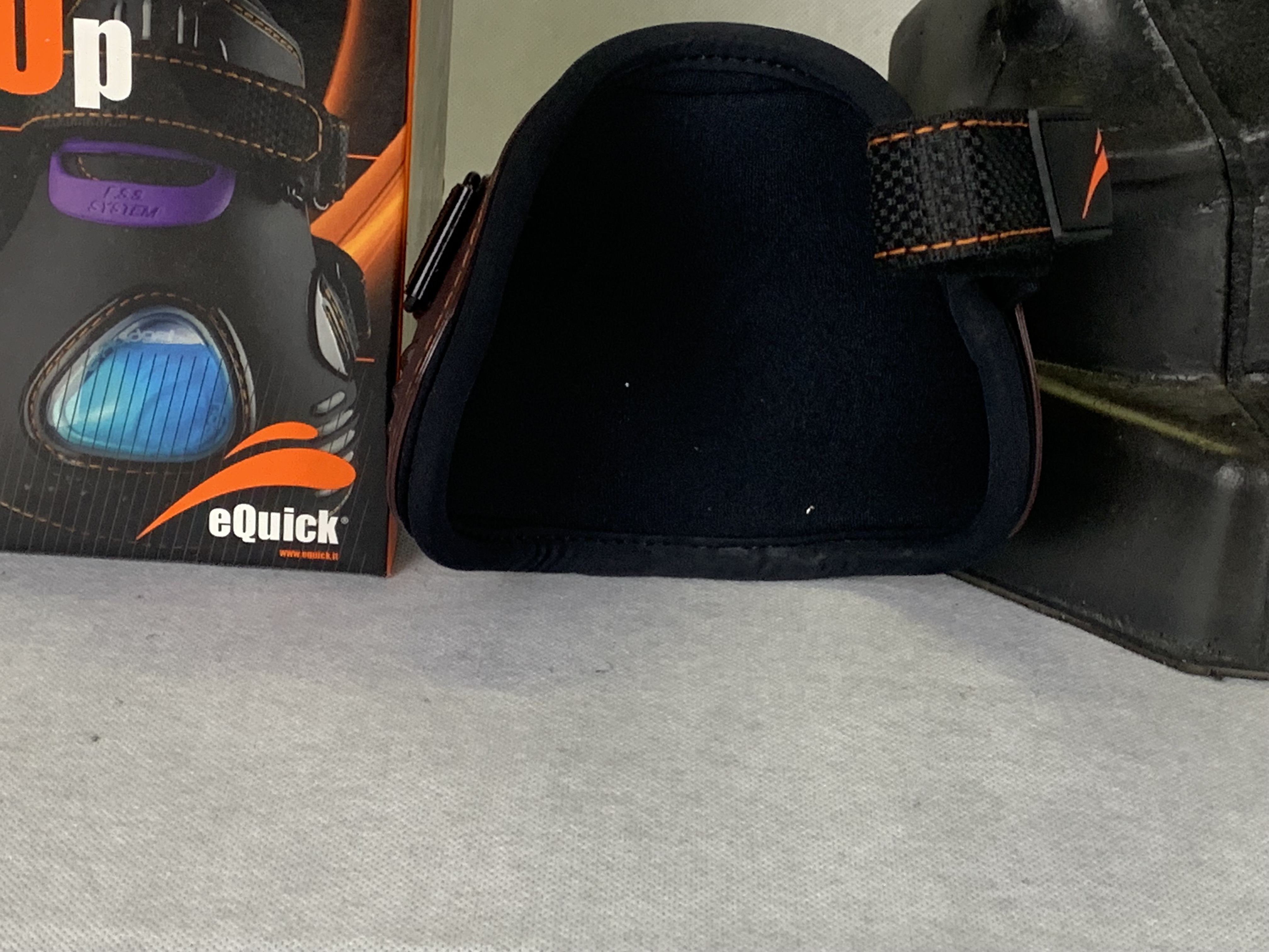 Log inDeze Equick kogelbeschermers van Italiaanse makelij zijn gemaakt van hoogwaardige slijtvaste materialen. De buitenkant is versterkt met TPU om de strijklappen elasticiteit te geven. Ook zit er aan de buitenkant een kamer met eFluidgel die schokabsorberend werkt en de impact op de pezen van het paard significant reduceert. De binnenkant heeft een zachte neopreen voering met een lycra randje om wondjes en schuren te voorkomen. Ze zijn anatomisch gevormd en sluiten nauw aan op het been. De achterbeschermers kunnen tegen kostprijs verzonden worden. These Equick fetlock boots, made in Italy, are crafted from high-quality, wear-resistant materials. The exterior is reinforced with TPU to give the boots elasticity. On the outside, there is also a chamber with eFluidgel that provides shock absorption and significantly reduces the impact on the horse’s tendons. The inside features a soft neoprene lining with a Lycra edge to prevent rubbing and small injuries. They are anatomically shaped and fit closely around the leg. The boots can be shipped at cost price. Ces protège-boulets Equick, fabriqués en Italie, sont réalisés à partir de matériaux de haute qualité et résistants à l’usure. L’extérieur est renforcé avec du TPU afin de donner de l’élasticité aux protège-boulets. Il comporte également une chambre contenant de l’eFluidgel qui absorbe les chocs et réduit considérablement l’impact sur les tendons du cheval. L’intérieur est doté d’une douce doublure en néoprène avec un bord en lycra pour éviter les frottements et les petites blessures. Ils sont de forme anatomique et s’ajustent parfaitement autour de la jambe. Les protège-boulets arrière peuvent être expédiés au prix coûtant. Diese Equick Gamaschen, hergestellt in Italien, bestehen aus hochwertigen, verschleißfesten Materialien. Die Außenseite ist mit TPU verstärkt, um den Gamaschen Elastizität zu verleihen. Außen befindet sich außerdem eine Kammer mit eFluidgel, die stoßdämpfend wirkt und die Belastung auf die Sehnen des Pferdes deutlich reduziert. Die Innenseite verfügt über ein weiches Neoprenfutter mit einem Lycra-Rand, um Scheuerstellen und kleine Verletzungen zu verhindern. Sie sind anatomisch geformt und liegen eng am Bein an. Die Hintergamaschen können zum Selbstkostenpreis versendet werden.