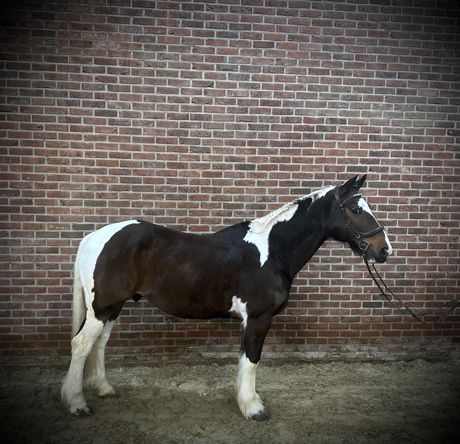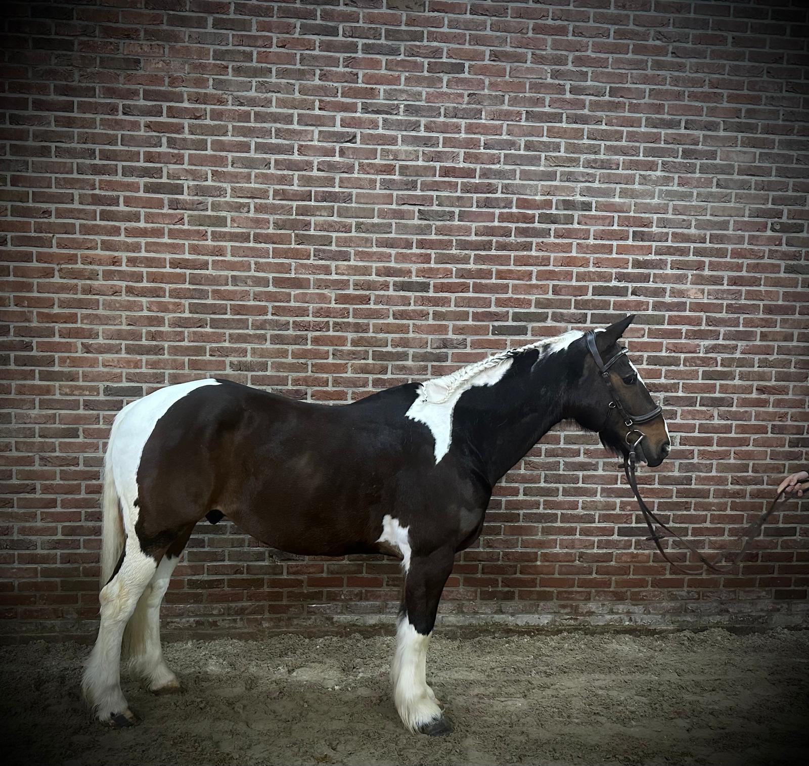 Larso is een vrolijke en lieve platenbonte ruin. Zoals te zien is in de video’s, is Larso een zeer veelzijdig paard waarmee u alle kanten op kunt. Hij zet altijd zijn beste beentje voor en is overal voor in. Kinderen rijden hem zonder zadel, hij gaat mee door de bossen en wordt ook fijn gereden en gesprongen door andere ruiters. Larso is een echte allrounder die altijd zin heeft in een ritje. Hij is geschikt voor veel verschillende ruiters, zowel kinderen als volwassenen. Larso kan netjes nageeflijk lopen, beheerst het wijken, staat fijn aan de hulpen en springt braaf een parcours rond. Hij is niet kijkerig, denkt goed mee en helpt zijn ruiter waar nodig. Hij gaat regelmatig mee op buitenrit en dit kan zowel alleen als in groepsverband. In de omgang is Larso zeer braaf: makkelijk op de poets- en wasplaats, bij de hoefsmid en in het dagelijks gebruik. De kinderen kunnen van alles met hem doen. Bent u op zoek naar een betrouwbare, veelzijdige allrounder waar zowel kinderen als volwassenen met plezier op kunnen rijden, dan heeft u in Larso het juiste paard gevonden. Larso is a cheerful and kind piebald gelding. As can be seen in the videos, Larso is a very versatile horse with whom you can go in many directions. He always gives his best and is willing in everything he does. Children ride him bareback, he happily goes out hacking through the forest, and other riders also enjoy riding and jumping him. Larso is a true all-rounder who is always up for a ride. He is suitable for a wide range of riders, both children and adults. Larso moves nicely in a soft and supple way, can perform leg yield, responds well to the aids and jumps a course calmly and reliably. He is not spooky, thinks along with his rider and is very helpful. He regularly goes out on trail rides, both alone and together with other horses or ponies. In daily handling Larso is very well-behaved: easy on the grooming and washing area, with the farrier and in general handling. The children can do all kinds of activities with him. If you are looking for a reliable, versatile all-rounder that both children and adults can enjoy riding, Larso is the perfect match. Larso est un hongre pie gentil et joyeux. Comme on peut le voir dans les vidéos, Larso est un cheval très polyvalent avec lequel on peut tout faire. Il donne toujours le meilleur de lui-même et est volontaire en toute circonstance. Les enfants le montent à cru, il part volontiers en balade en forêt et d’autres cavaliers l’utilisent aussi bien à l’obstacle qu’en dressage. Larso est un véritable cheval polyvalent, toujours partant pour une sortie. Il convient à de nombreux cavaliers, enfants comme adultes. Larso se monte de manière souple et décontractée, réalise les cessions à la jambe, répond bien aux aides et saute calmement un parcours. Il n’est pas regardant, réfléchit avec son cavalier et l’aide volontiers. Il part régulièrement en balade, aussi bien seul qu’accompagné d’autres chevaux ou poneys. Au quotidien, Larso est très facile : sage au pansage et au lavage, chez le maréchal-ferrant et dans la manipulation générale. Les enfants peuvent tout faire avec lui. Si vous recherchez un cheval fiable et polyvalent, adapté aussi bien aux enfants qu’aux adultes, Larso est le cheval idéal. Larso ist ein fröhlicher und lieber Scheckwallach. Wie in den Videos zu sehen ist, ist Larso ein sehr vielseitiges Pferd, mit dem man in alle Richtungen gehen kann. Er gibt immer sein Bestes und ist stets motiviert. Kinder reiten ihn ohne Sattel, er geht gerne ins Gelände und wird ebenso zum Reiten und Springen genutzt. Larso ist ein echter Allrounder und immer für einen Ausritt zu haben. Er ist für viele verschiedene Reiter geeignet, sowohl für Kinder als auch für Erwachsene. Larso lässt sich schön an die Hand reiten, beherrscht das Schenkelweichen, steht gut an den Hilfen und springt brav einen Parcours. Er ist nicht schreckhaft, denkt gut mit und unterstützt seinen Reiter zuverlässig. Er geht regelmäßig ins Gelände, sowohl alleine als auch in der Gruppe mit anderen Pferden oder Ponys. Im Umgang ist Larso sehr unkompliziert: brav am Putz- und Waschplatz, beim Hufschmied und im täglichen Handling. Die Kinder können alles mit ihm machen. Wenn Sie auf der Suche nach einem zuverlässigen, vielseitigen Allrounder sind, auf dem sowohl Kinder als auch Erwachsene mit Freude reiten können, dann ist Larso genau das richtige Pferd für Sie.