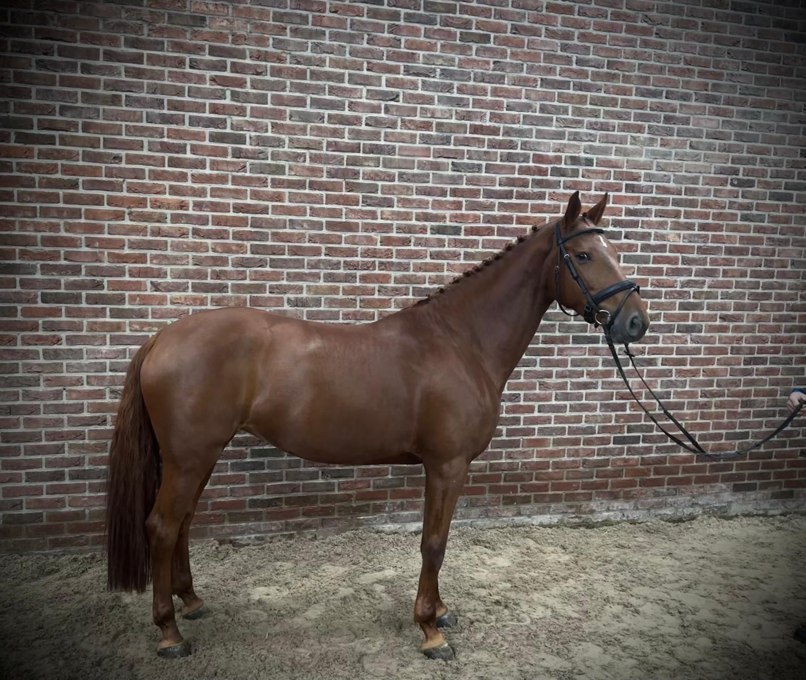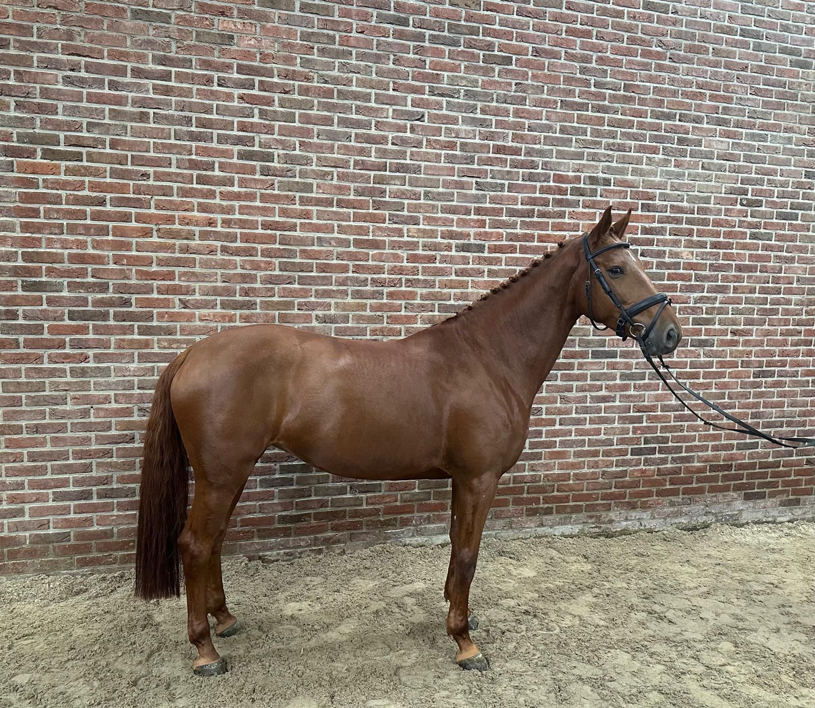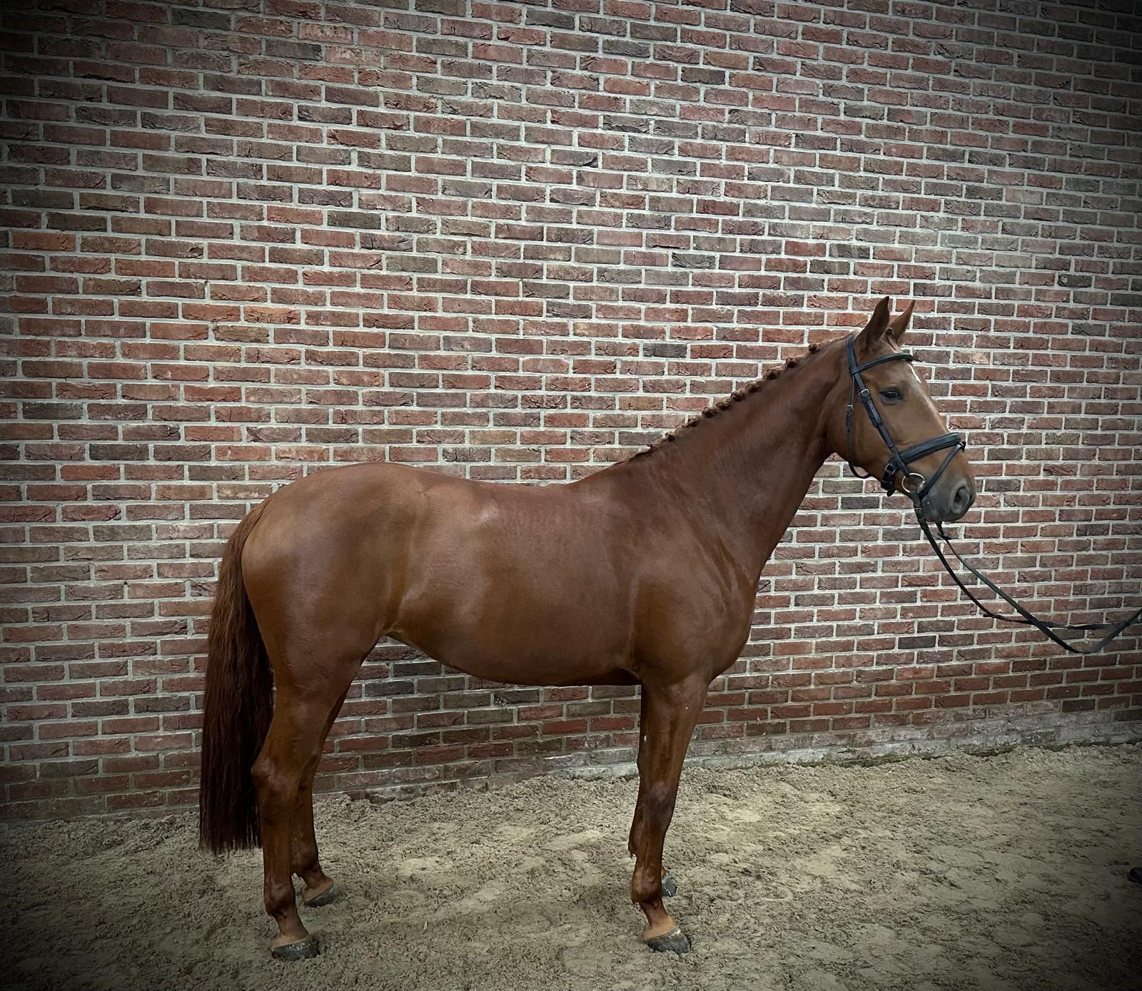 Phernita is een lieve en vrolijke merrie, zowel in de omgang als onder het zadel. Daarnaast is ze een echte verschijning om te zien. Ze beschikt over drie goede gangen en is prettig nageeflijk te rijden. Phernita staat fijn aan de hulpen, is nuchter en niet schrikachtig of kijkerig. Een zeer plezierig paard om mee te werken; ze denkt goed mee en werkt altijd fijn mee. Hierdoor is ze ook zeer geschikt voor een jonge ruiter. De basis- en zijgangen zijn goed bevestigd, waaronder wijken, travers, schouderbinnenwaarts, appuyeren, contragalop en changementen. Op het parcours heeft ze ervaring in de 1.10 m en wordt ze thuis getraind op 1.20–1.25 m (zie video). Ze is voorzichtig, toont veel vermogen en kijkt nergens naar, wat haar ruiter een veilig en vertrouwd gevoel geeft. In de omgang is ze gemakkelijk: braaf op de poetsplaats, bij de smid en eenvoudig te laden. Kortom, een heel fijn paard dat haar nieuwe eigenaar enorm veel plezier zal brengen. Phernita is a kind and cheerful mare, both in handling and under saddle. She is also a very attractive horse to look at. She has three good basic gaits and is pleasantly easy to ride in a soft and supple way. Phernita responds well to the aids and is calm, not spooky or looky. She is a very enjoyable horse to work with, always thinking along and willing to cooperate. This also makes her very suitable for a young rider. The basic movements and lateral work are well confirmed, including leg yield, travers, shoulder-in, half-pass, counter canter and flying changes. She has competition experience up to 1.10 m and is trained at home at 1.20–1.25 m level (see video). She is careful, shows plenty of scope and does not look at the fences, giving her rider a safe and confident feeling. In daily handling she is easy: well-behaved in the grooming area, with the farrier and easy to load. In short, a very pleasant horse that will bring her new owner a lot of joy. Phernita est une jument gentille et joyeuse, aussi bien à pied que montée. De plus, c’est un très beau cheval à voir. Elle dispose de trois bonnes allures et se monte facilement, de manière souple et décontractée. Phernita répond bien aux aides et n’est ni peureuse ni regardante. C’est un cheval très agréable à travailler, qui réfléchit avec son cavalier et coopère volontiers. Elle convient donc également très bien à un jeune cavalier. Les exercices de base et de dressage latéral sont bien acquis, tels que les cessions à la jambe, le travers, l’épaule en dedans, l’appuyer, le contre-galop et les changements de pied. Elle a de l’expérience en concours jusqu’à 1.10 m et est travaillée à la maison sur des hauteurs de 1.20–1.25 m (voir vidéo). Elle est respectueuse, montre beaucoup de moyens et ne regarde pas les obstacles, ce qui procure à son cavalier un sentiment de sécurité et de confiance. Au quotidien, elle est facile : sage au pansage, chez le maréchal-ferrant et facile à embarquer. En résumé, un cheval très agréable qui apportera énormément de plaisir à son futur propriétaire. Phernita ist eine liebe und fröhliche Stute, sowohl im Umgang als auch unter dem Sattel. Außerdem ist sie ein sehr schönes Pferd anzusehen. Sie verfügt über drei gute Grundgangarten und lässt sich angenehm und leicht an die Hand reiten. Phernita steht gut an den Hilfen und ist ruhig, nicht schreckhaft oder guckig. Sie ist ein sehr angenehmes Pferd in der Arbeit, denkt gut mit und arbeitet stets motiviert mit. Dadurch ist sie auch sehr gut für einen jungen Reiter geeignet. Die Lektionen der Grund- und Seitengänge sind gut gefestigt, darunter Schenkelweichen, Travers, Schulterherein, Traversalen, Kontergalopp und fliegende Galoppwechsel. Sie hat Turniererfahrung bis 1.10 m und wird zu Hause auf 1.20–1.25 m trainiert (siehe Video). Sie ist vorsichtig, zeigt viel Vermögen und schaut nicht auf die Sprünge, was dem Reiter ein sicheres und vertrauensvolles Gefühl gibt. Im täglichen Umgang ist sie unkompliziert: brav am Putzplatz, beim Schmied und leicht zu verladen. Kurz gesagt, ein sehr angenehmes Pferd, das seinem neuen Besitzer viel Freude bereiten wird.