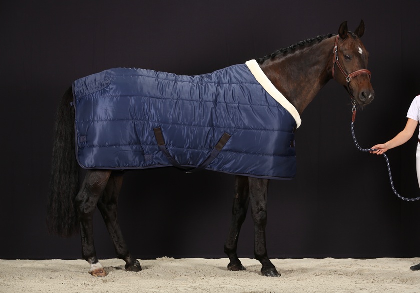 Log inStaldeken 600D/400gr voering in katoen. Hals in zachte synthetische schapenvacht. Gekruist singels en bilkoorden Kleur: Navy/Navy Maten: 155/205cm De maten vallen normaal en de dekens liggen zeer comfortabel op de paarden. De dekens zijn nieuw in de verpakking en kunnen verzonden worden tegen kostprijs. Stable rug 600D / 400g with cotton lining. Neck in soft synthetic sheepskin. Crossed surcingles and leg straps. Color: Navy/Navy Sizes: 155/205cm The sizes fit true to size, and the rugs sit very comfortably on the horses. The rugs are brand new in their packaging and can be shipped at cost price. Couverture d’écurie 600D / 400g avec doublure en coton. Encolure en douce peau de mouton synthétique. Sangles croisées et cordons de cuisse. Couleur : Marine/Marine Tailles : 155/205cm Les tailles sont normales et les couvertures reposent très confortablement sur les chevaux. Les couvertures sont neuves dans leur emballage et peuvent être expédiées au prix coûtant. Stalldecke 600D / 400g mit Baumwollfutter. Hals aus weichem, synthetischem Lammfell. Gekreuzte Bauchgurte und Beinschnüre. Farbe: Marine/Marine Größen: 155/205cm Die Größen fallen normal aus und die Decken liegen sehr bequem auf den Pferden. Die Decken sind neu verpackt und können zum Selbstkostenpreis versendet werden.