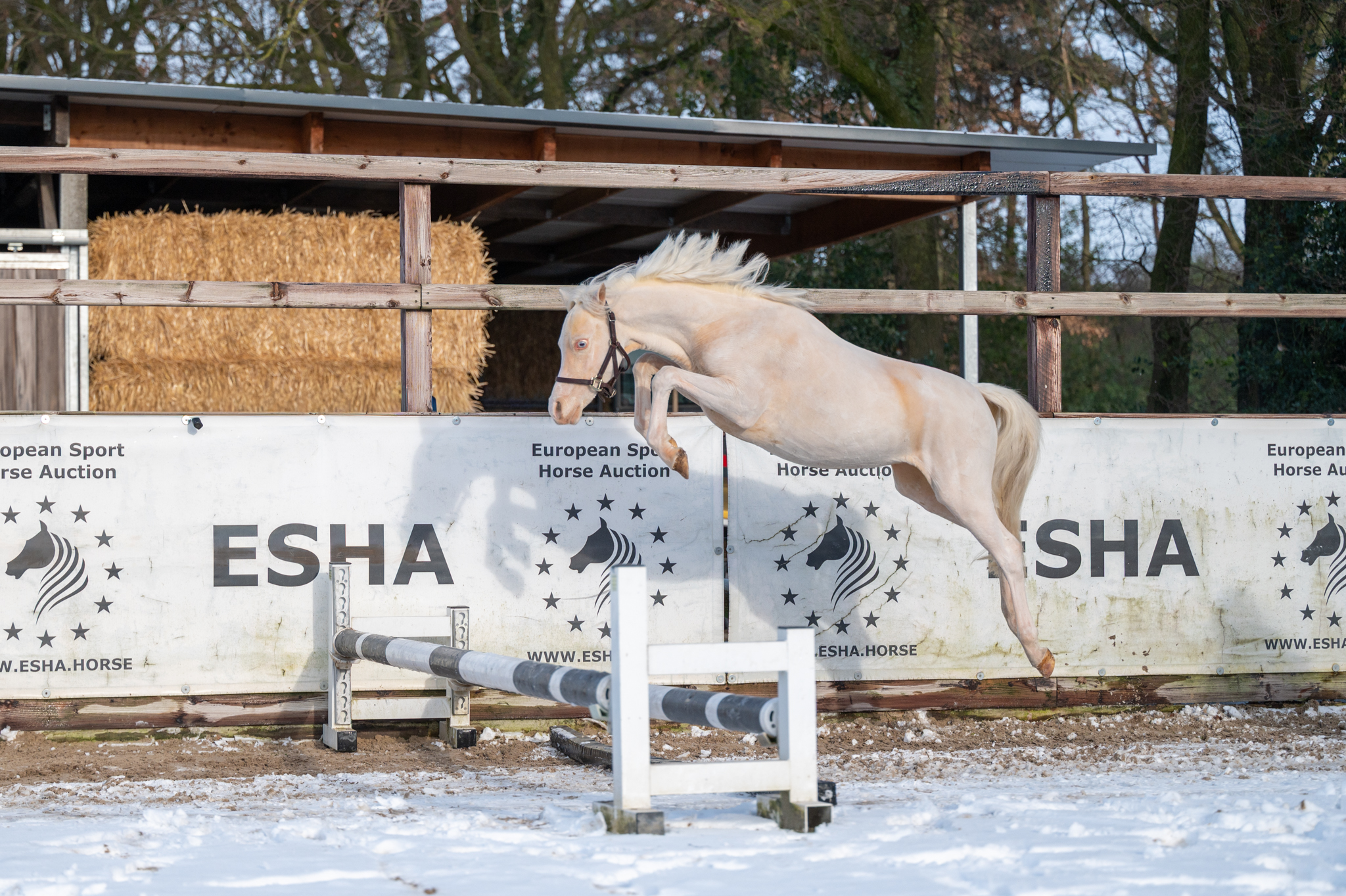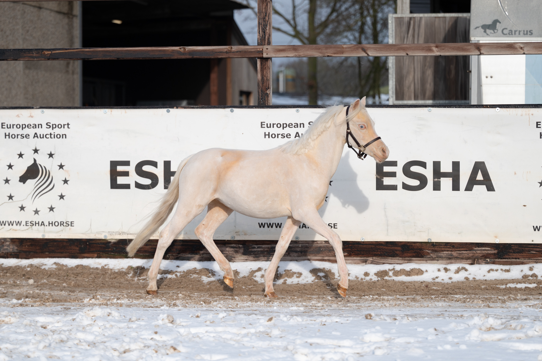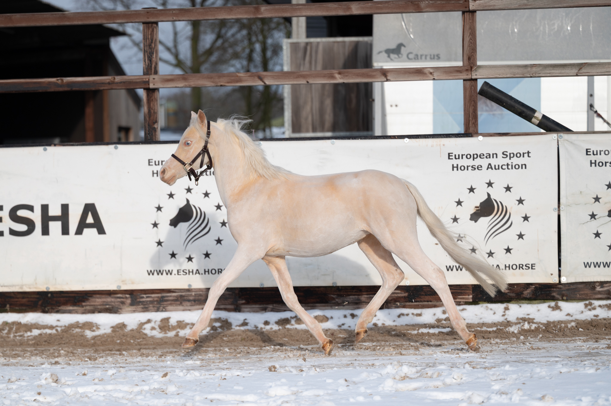 Maestro steelt harten vanaf het eerste moment. Zijn unieke cremello kleur, chique uitstraling en prachtige, opvallende ogen maken hem een pony die je niet snel vergeet. Maar hij is meer dan alleen mooi: ondanks dat hij hengst is en nog jong is van leeftijd, is Maestro ongelooflijk braaf, makkelijk in de hand en voorbeeldig in zijn gedrag. Hij beweegt met kwaliteit en souplesse en toont in vrijheid al veel aanleg voor het springen. Maestro is een lieve kinderpony, gemanierd en meewerkend. Een pony die plezier uitstraalt en vertrouwen geeft. Dankzij zijn sportieve kwaliteiten en zijn vol Welsh stamboekpapier is Maestro niet alleen interessant voor de sport, maar ook voor de fokkerij. Een bijzondere pony met een gouden karakter en een veelbelovende toekomst. Wij denken dat Maestro zal uitgroeien tot een B-Pony. Maestro steals hearts from the very first moment. His unique cremello colour, elegant appearance and striking, expressive eyes make him a pony you won’t easily forget. But Maestro is much more than just good looks: despite being a young stallion, he is incredibly well-mannered, easy to handle and exemplary in his behaviour. He moves with quality and suppleness and already shows natural jumping ability in free movement. Maestro is a kind and reliable children’s pony, polite and willing to cooperate — a pony that radiates joy and inspires confidence. Thanks to his sporting qualities and full Welsh studbook papers, Maestro is not only interesting for sport but also for breeding. A special pony with a golden character and a promising future. We believe Maestro will develop into a B-pony. Maestro séduit dès le premier regard. Sa robe cremello unique, son allure élégante et ses yeux expressifs et remarquables en font un poney inoubliable. Mais Maestro ne se distingue pas uniquement par son apparence : bien qu’il soit un jeune étalon, il est exceptionnellement gentil, facile à manipuler et exemplaire dans son comportement. Il se déplace avec qualité et souplesse et montre déjà un véritable talent pour le saut en liberté. Maestro est un poney pour enfants doux et fiable, bien éduqué et coopératif, qui inspire plaisir et confiance. Grâce à ses qualités sportives et à son papier Welsh complet, Maestro est intéressant aussi bien pour le sport que pour l’élevage. Un poney particulier avec un caractère en or et un avenir très prometteur. Nous pensons que Maestro évoluera en poney B. Maestro erobert Herzen vom ersten Moment an. Seine einzigartige Cremello-Farbe, seine elegante Ausstrahlung und seine auffälligen, ausdrucksstarken Augen machen ihn zu einem Pony, das man nicht so schnell vergisst. Doch Maestro überzeugt nicht nur durch sein Aussehen: Trotz seines jungen Alters und seiner Hengstabstammung ist er außergewöhnlich brav, sehr angenehm im Umgang und vorbildlich in seinem Verhalten. Er bewegt sich mit Qualität und Geschmeidigkeit und zeigt bereits viel Talent für das Springen in der Freispringarbeit. Maestro ist ein liebes, zuverlässiges Kinderpony, gut erzogen und stets kooperativ — ein Pony, das Freude ausstrahlt und Vertrauen schenkt. Dank seiner sportlichen Anlagen und seines vollen Welsh-Stammbuchs ist Maestro sowohl für den Sport als auch für die Zucht interessant. Ein besonderes Pony mit einem goldenen Charakter und einer vielversprechenden Zukunft. Wir sind überzeugt, dass Maestro sich zu einem B-Pony entwickeln wird.