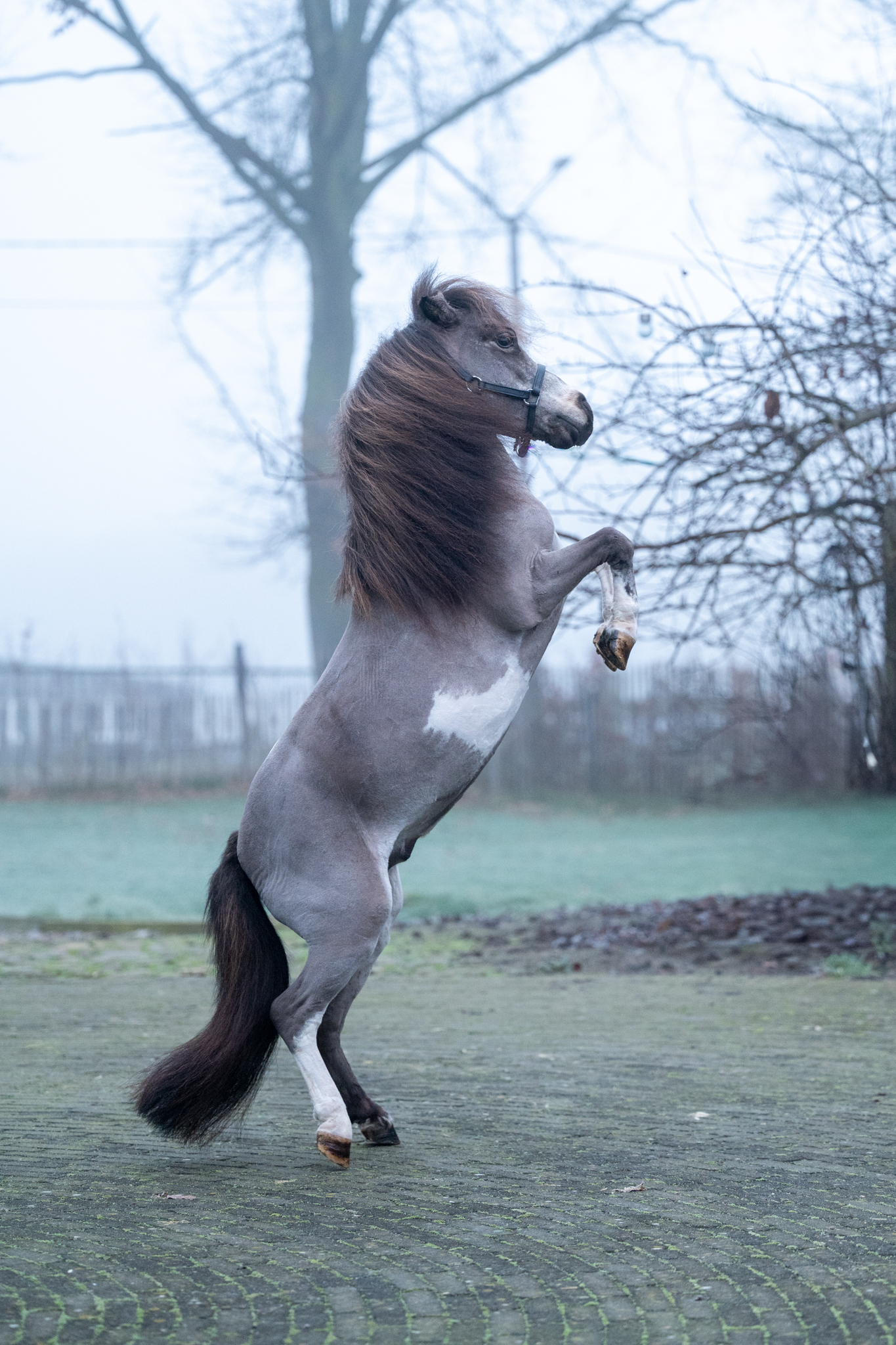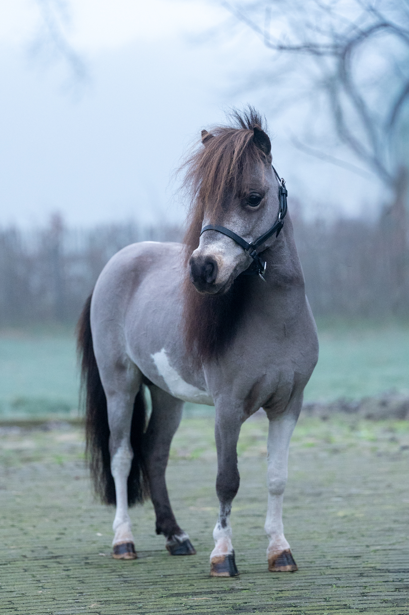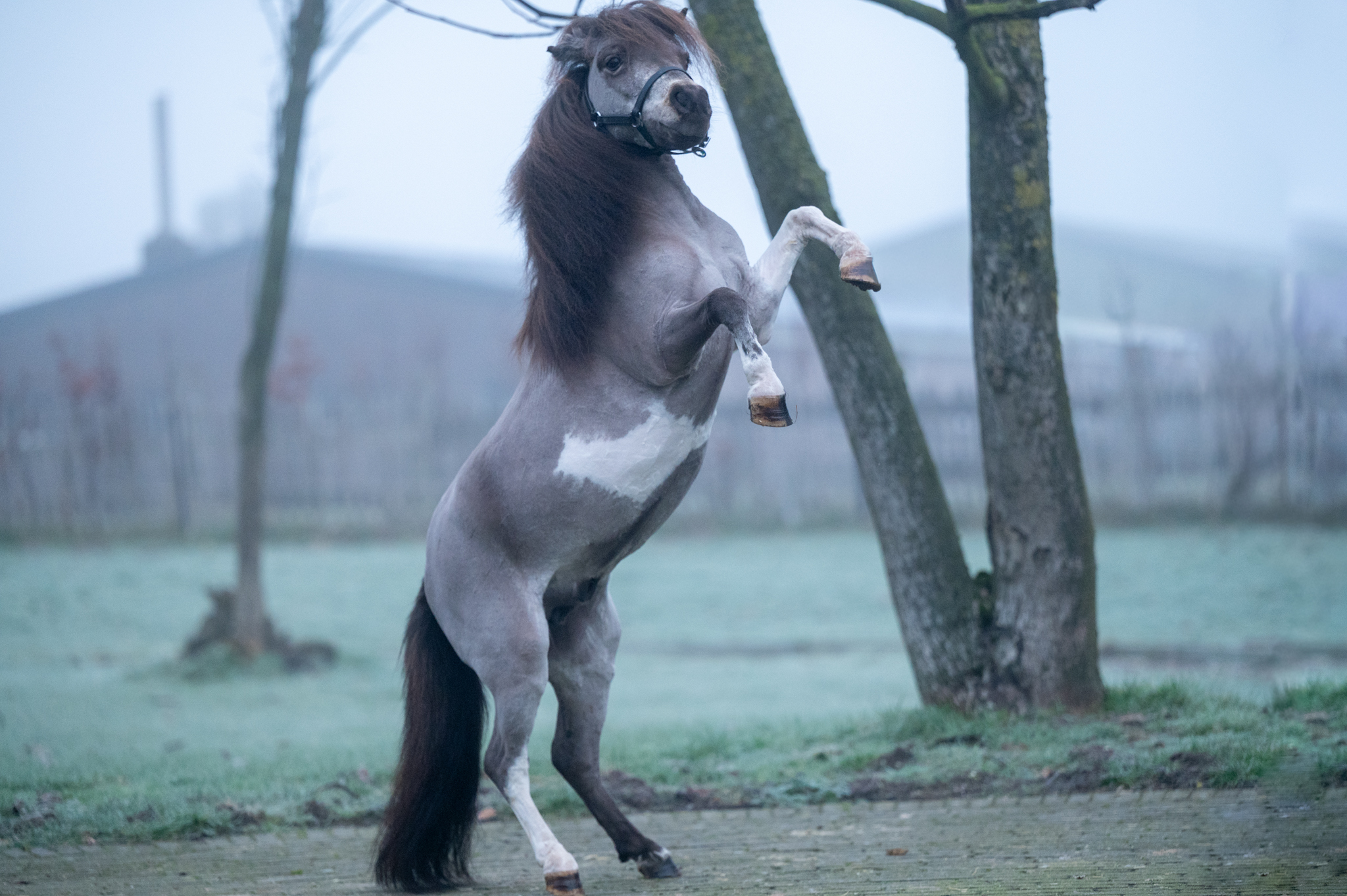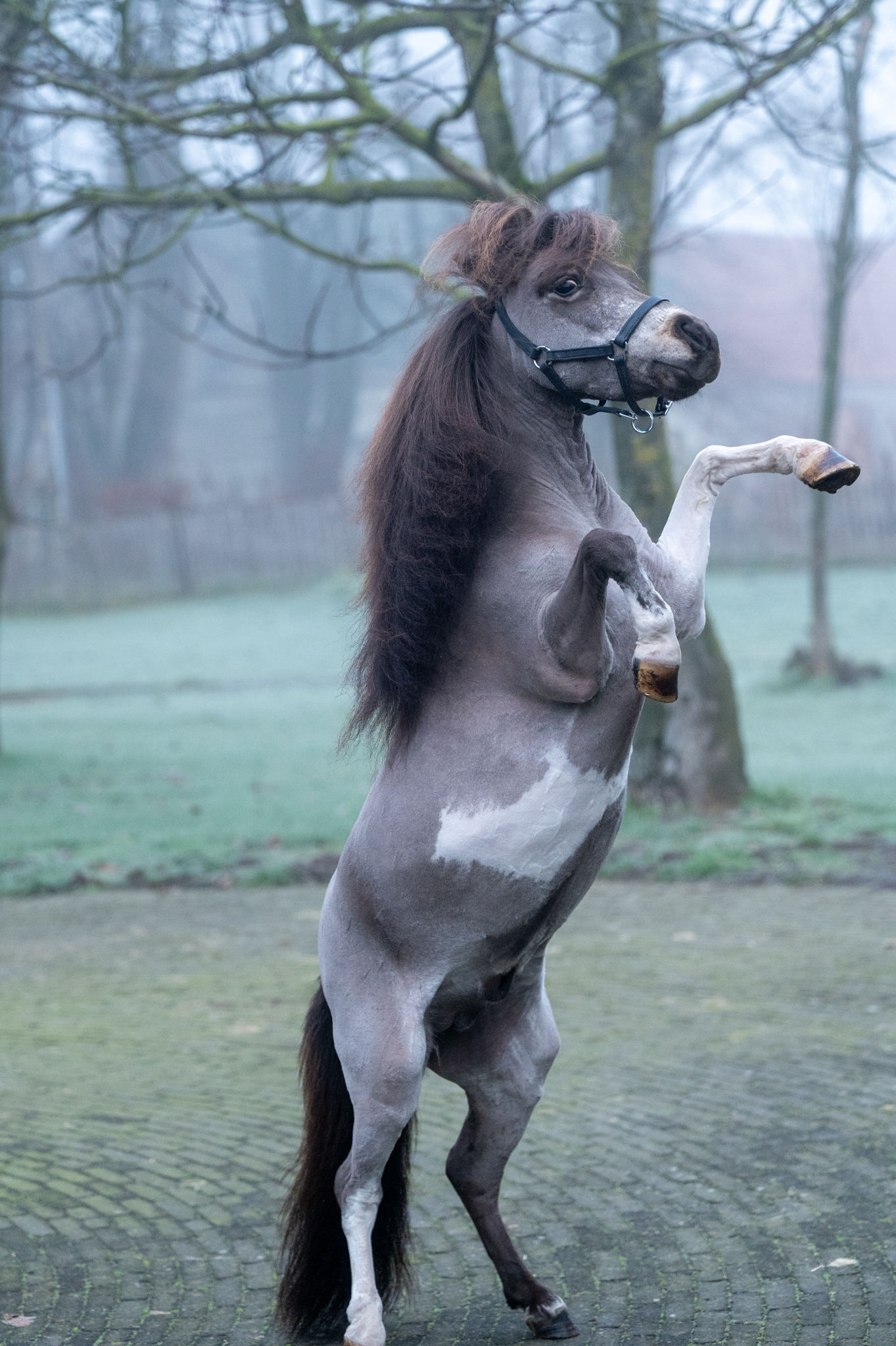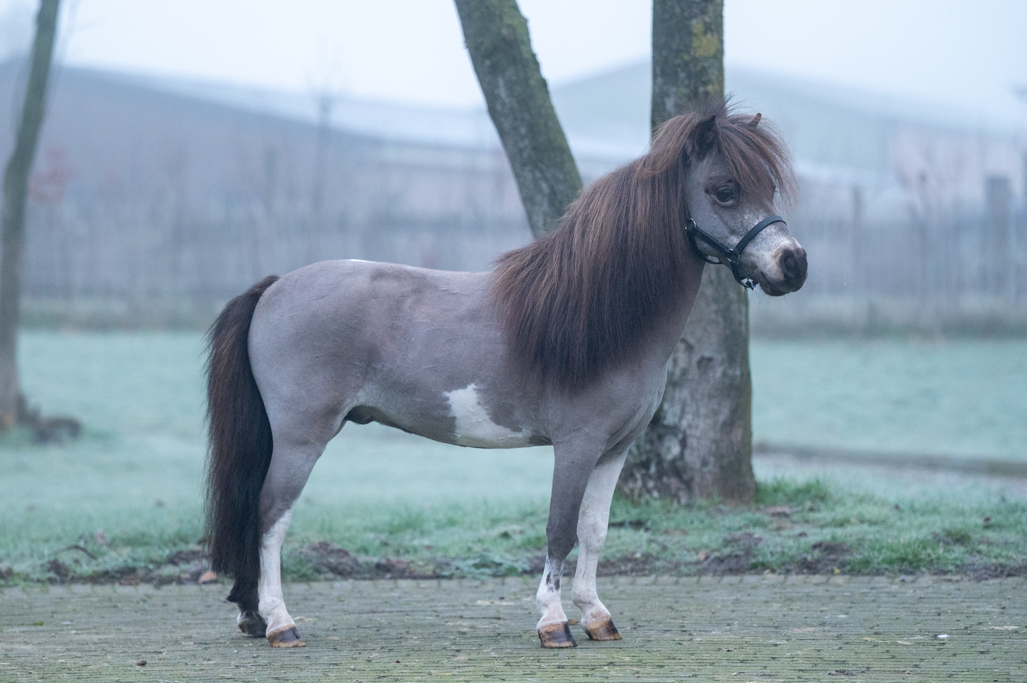 Prins Paddington Klein van stuk, groots in uitstraling! Met zijn ±80 cm schofthoogte, stoere looks en grappige, speelse karakter steelt Prins Paddington moeiteloos de show. Dit bonte hengstje is een echte persoonlijkheid: zelfverzekerd, nieuwsgierig en dol op aandacht. Van buiten wandelen, borstelen en knuffelen tot springen in de piste, Prins Paddington is overal voor te vinden. Hij is een echt speelmaatje, braaf in de omgang en sociaal met andere pony’s. Naast zijn fijne karakter is hij ook een echte showpony. Als hengst heeft hij al twee prachtige veulens gegeven, waarin hij duidelijk zijn typische bonte kleur en uitstraling doorgeeft. Een mini-pony met maxi-charisma, ideaal als kinderpony, showpony of voor de fokkerij. Prins Paddington verovert harten… en blijft hangen. Prince Paddington Small in size, big in presence! With his ±80 cm height, bold looks and playful, charming character, Prince Paddington effortlessly steals the spotlight. This eye-catching piebald colt is a true personality: confident, curious and always eager for attention. From walks outside, grooming and cuddles to jumping in the arena — Prince Paddington loves it all. He is a true playmate, easy to handle and social with other ponies. Alongside his wonderful temperament, he is also a real show pony. As a stallion, he has already sired two beautiful foals, clearly passing on his typical colouring and charisma. A mini pony with maxi charisma — ideal as a children’s pony, show pony or breeding prospect. Prince Paddington steals hearts… and stays there. Prince Paddington Petit par la taille, grand par le charisme ! Avec sa taille d’environ 80 cm, son look affirmé et son caractère joueur et amusant, Prince Paddington attire immédiatement tous les regards. Ce jeune étalon pie est une vraie personnalité : confiant, curieux et très proche de l’homme. Des promenades à l’extérieur, au pansage et aux câlins, jusqu’au saut en piste — Prince Paddington adore tout faire. C’est un véritable compagnon de jeu, facile à manipuler et sociable avec les autres poneys. En plus de son excellent caractère, il est aussi un véritable poney de show. En tant qu’étalon, il a déjà produit deux magnifiques poulains, auxquels il transmet clairement sa robe pie typique et son charisme. Un mini-poney au maxi-charisme — idéal comme poney pour enfants, poney de show ou pour l’élevage. Prince Paddington fait fondre les cœurs… et y reste. Prinz Paddington Klein an Größe, groß an Ausstrahlung! Mit seiner Größe von ca. 80 cm, seinem ausdrucksstarken Erscheinungsbild und seinem verspielten, lustigen Charakter zieht Prinz Paddington alle Blicke auf sich. Dieser auffällige Scheckhengst ist eine echte Persönlichkeit: selbstbewusst, neugierig und sehr menschenbezogen. Ob Spaziergänge, Putzen und Kuscheln oder Springen in der Halle – Prinz Paddington ist für alles zu begeistern. Er ist ein echter Spielgefährte, unkompliziert im Umgang und sozial mit anderen Ponys. Neben seinem tollen Charakter ist er auch ein echtes Showpony. Als Hengst hat er bereits zwei wunderschöne Fohlen gebracht, in denen er seine typische Farbe und Ausstrahlung deutlich vererbt. Ein Mini-Pony mit Maxi-Charisma – ideal als Kinderpony, Showpony oder für die Zucht. Prinz Paddington erobert Herzen… und bleibt unvergessen.