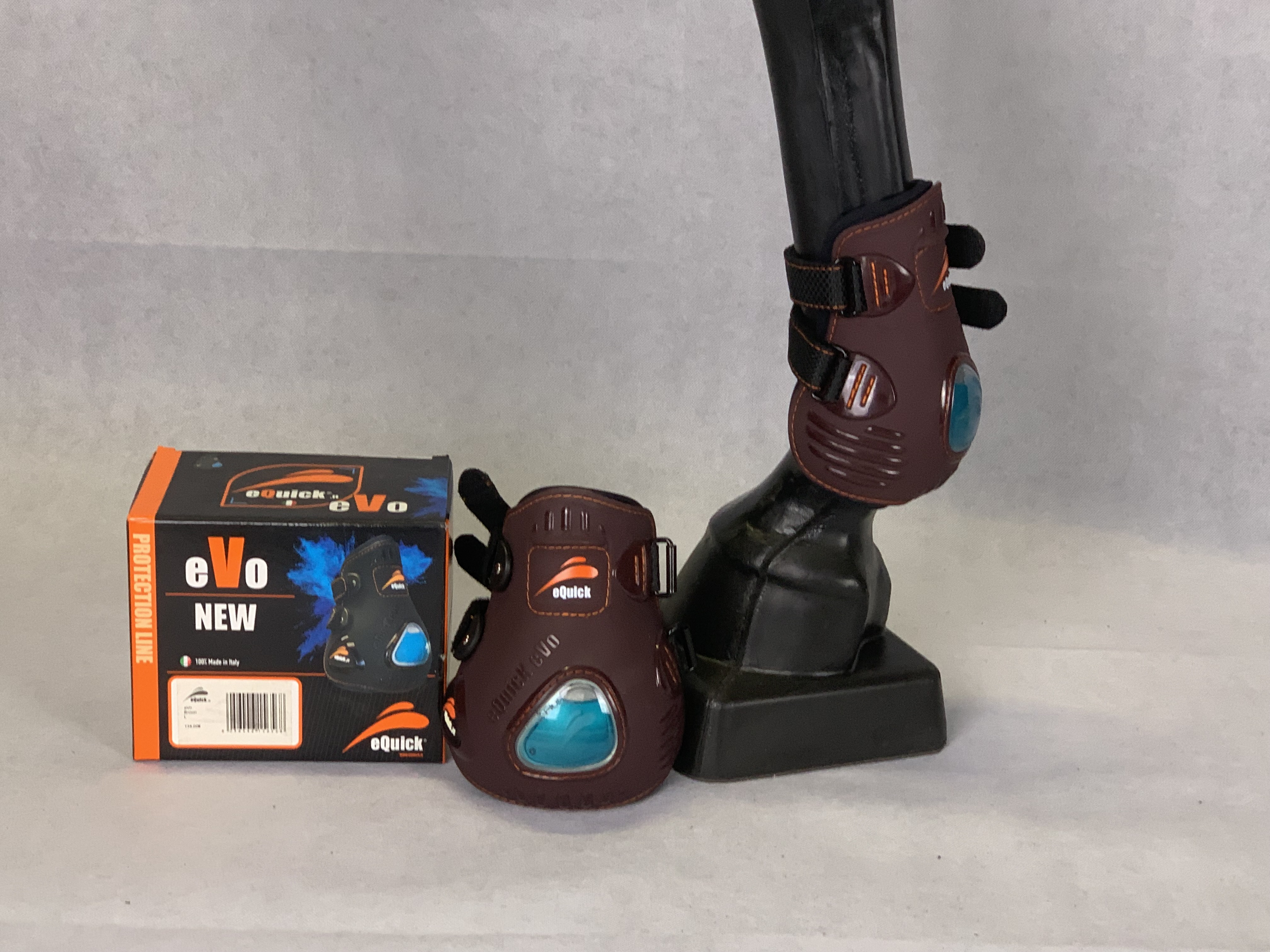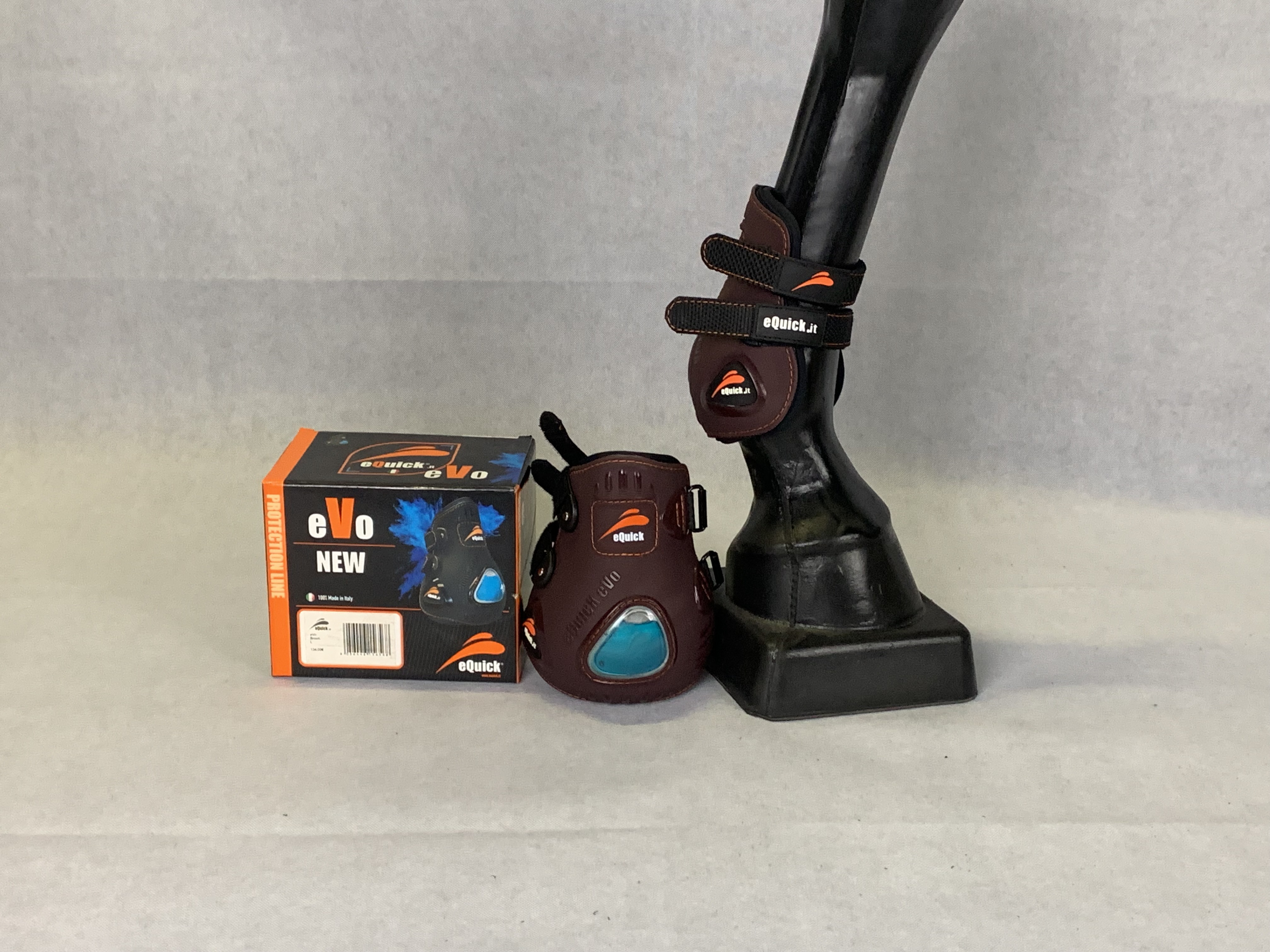 Log inDeze Equick kogelbeschermers van Italiaanse makelij zijn gemaakt van hoogwaardige slijtvaste materialen. De buitenkant is versterkt met TPU om de strijklappen elasticiteit te geven. Ook zit er aan de buitenkant een kamer met eFluidgel die schokabsorberend werkt en de impact op de pezen van het paard significant reduceert. De binnenkant heeft een zachte neopreen voering met een lycra randje om wondjes en schuren te voorkomen. Ze zijn anatomisch gevormd en sluiten nauw aan op het been. De achterbeschermers kunnen tegen kostprijs verzonden worden. These Equick fetlock boots, made in Italy, are crafted from high-quality, wear-resistant materials. The exterior is reinforced with TPU to give the boots elasticity. On the outside, there is also a chamber with eFluidgel that provides shock absorption and significantly reduces the impact on the horse’s tendons. The inside features a soft neoprene lining with a Lycra edge to prevent rubbing and small injuries. They are anatomically shaped and fit closely around the leg. The boots can be shipped at cost price. Ces protège-boulets Equick, fabriqués en Italie, sont réalisés à partir de matériaux de haute qualité et résistants à l’usure. L’extérieur est renforcé avec du TPU afin de donner de l’élasticité aux protège-boulets. Il comporte également une chambre contenant de l’eFluidgel qui absorbe les chocs et réduit considérablement l’impact sur les tendons du cheval. L’intérieur est doté d’une douce doublure en néoprène avec un bord en lycra pour éviter les frottements et les petites blessures. Ils sont de forme anatomique et s’ajustent parfaitement autour de la jambe. Les protège-boulets arrière peuvent être expédiés au prix coûtant. Diese Equick Gamaschen, hergestellt in Italien, bestehen aus hochwertigen, verschleißfesten Materialien. Die Außenseite ist mit TPU verstärkt, um den Gamaschen Elastizität zu verleihen. Außen befindet sich außerdem eine Kammer mit eFluidgel, die stoßdämpfend wirkt und die Belastung auf die Sehnen des Pferdes deutlich reduziert. Die Innenseite verfügt über ein weiches Neoprenfutter mit einem Lycra-Rand, um Scheuerstellen und kleine Verletzungen zu verhindern. Sie sind anatomisch geformt und liegen eng am Bein an. Die Hintergamaschen können zum Selbstkostenpreis versendet werden.