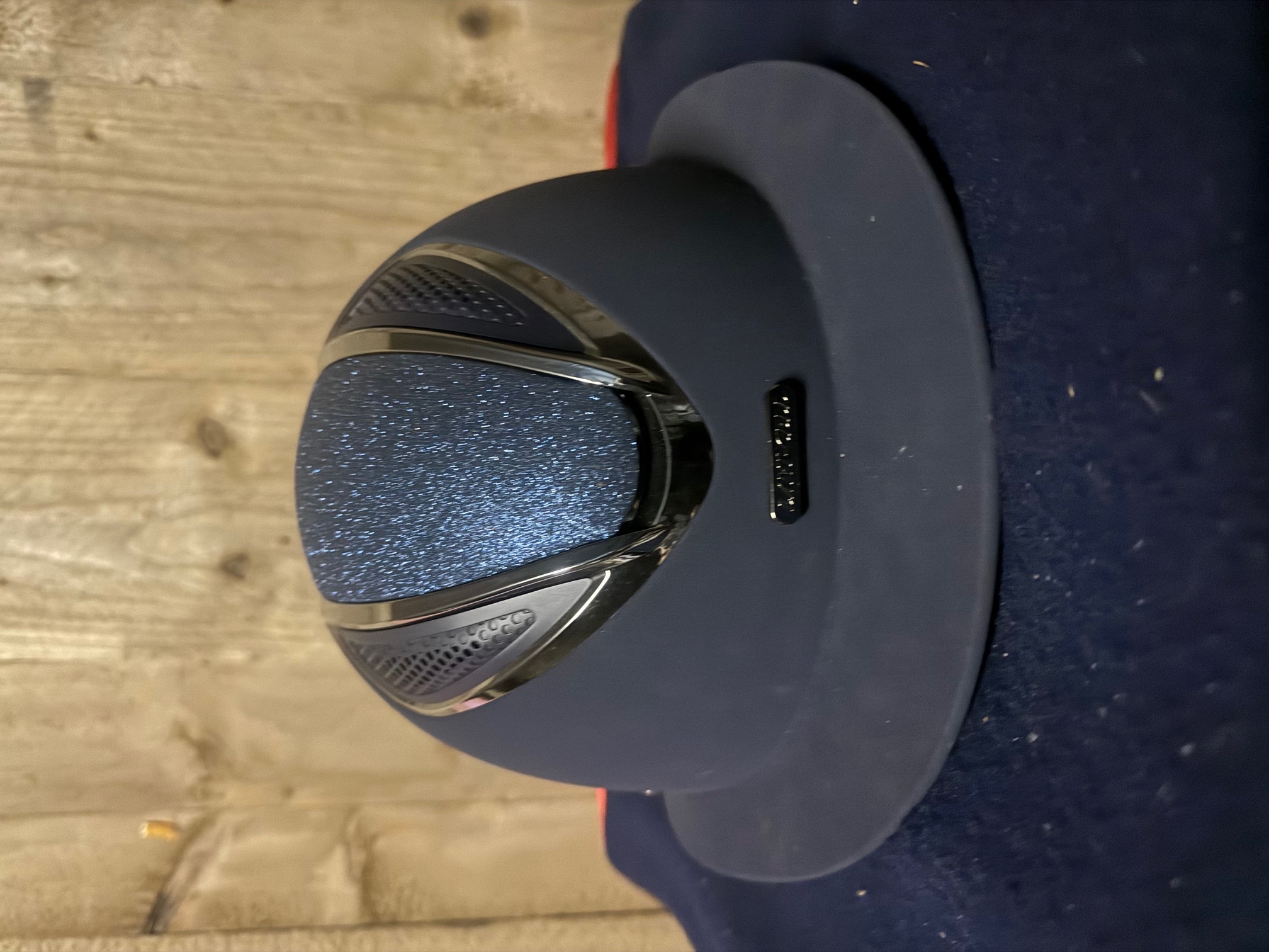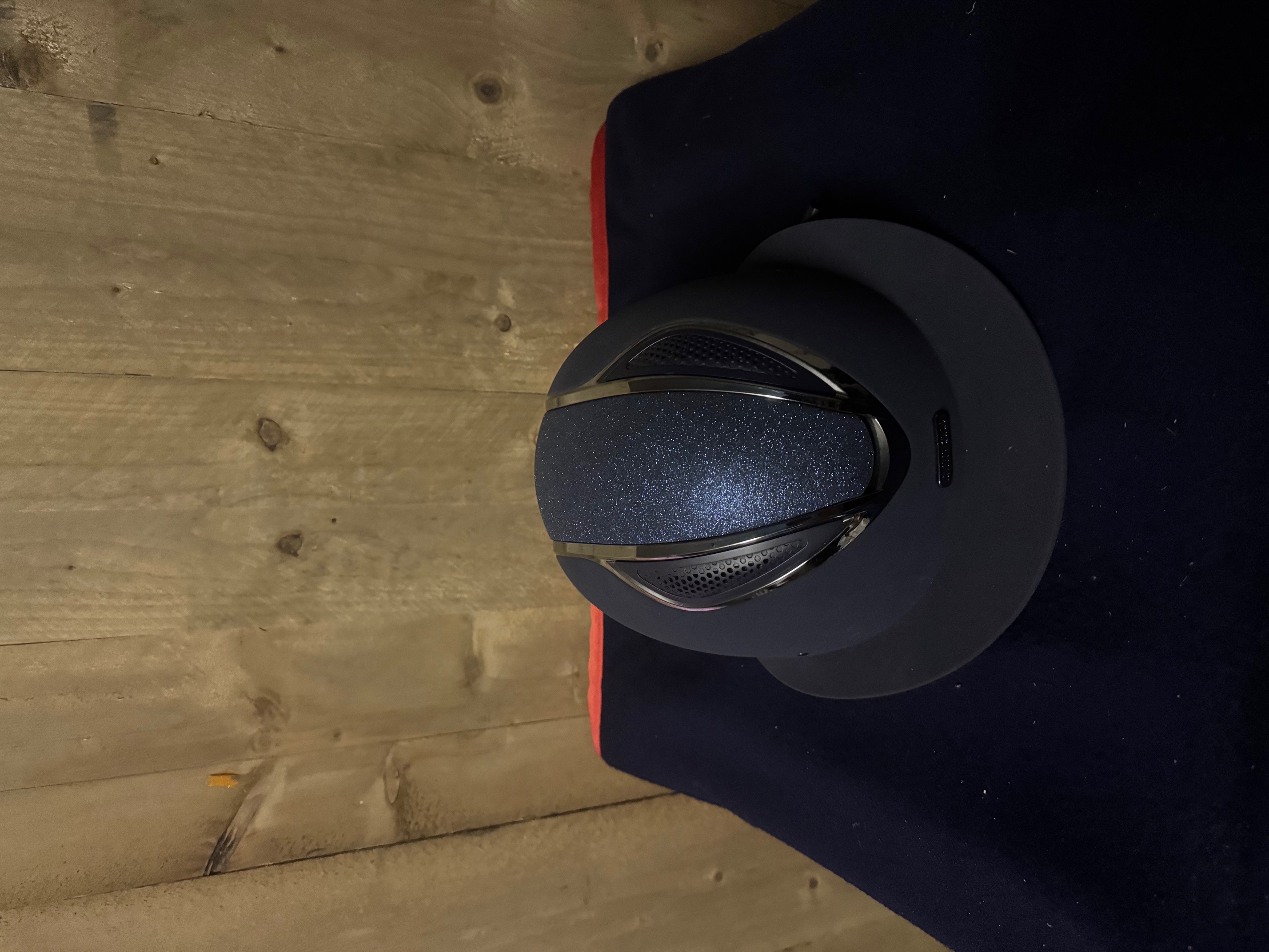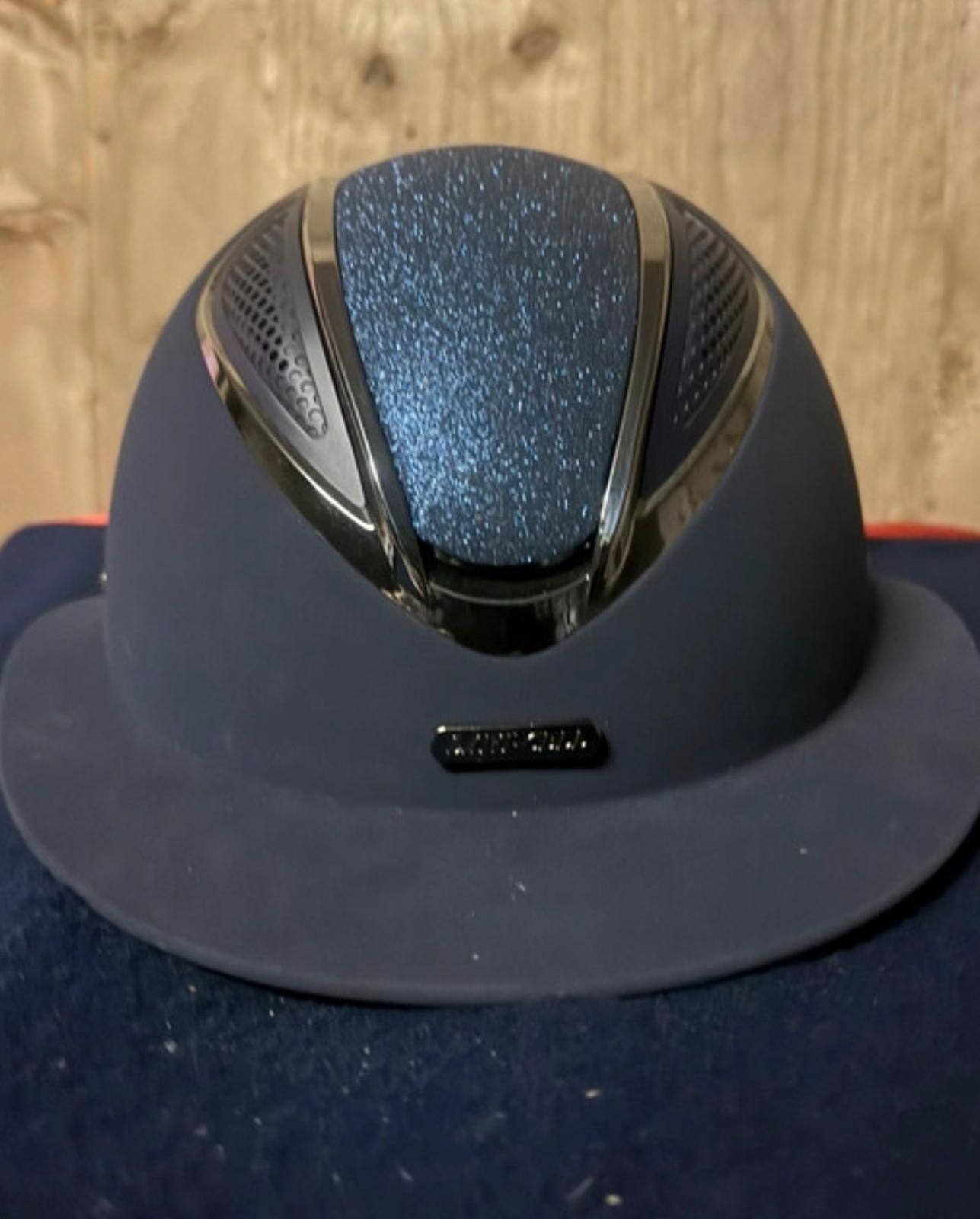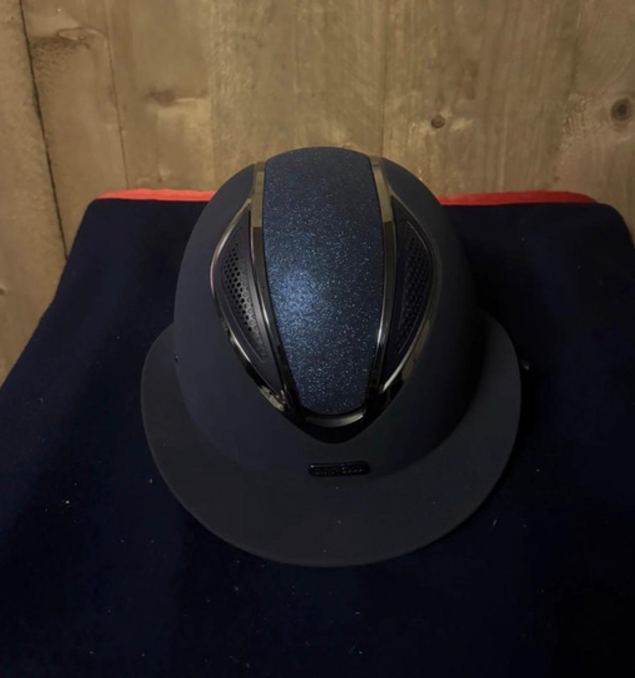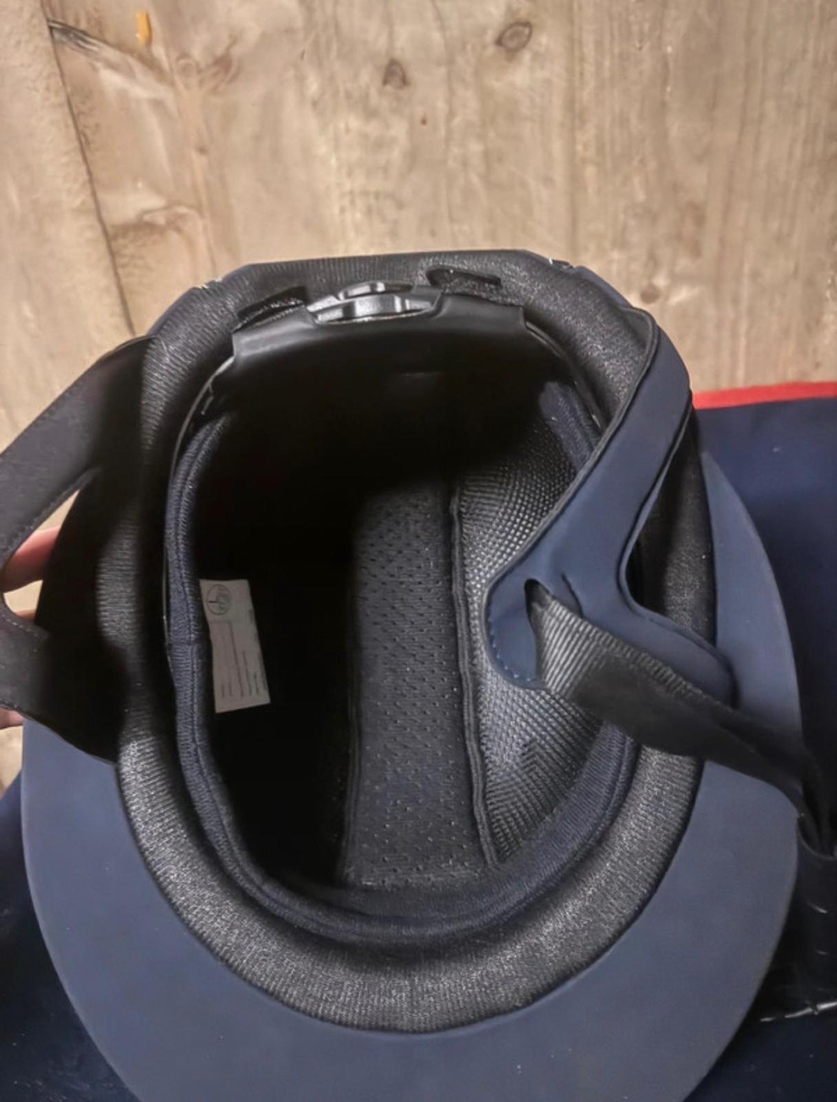 Log inRijhelm van Lami-Cell model Artemis, met een nubucklederen buitenzijde en een glinsterende afwerking in het midden. De helm heeft een brede klep, is verstelbaar via een draaisysteem en beschikt over een comfortabele, uitneembare voering. Maat: L: 57–61 cm De helm is slechts twee keer tijdens wedstrijden gedragen; geen scheuren of beschadigingen. Zowel de helm als de kinband zijn bekleed met hoogwaardig nubuckleer en kunnen eenvoudig in grootte worden aangepast met een praktische schroef aan de achterkant van de nek. Zeer goede ventilatie. VG1-goedgekeurd Elegante zonneklep ________________________________________ Lami-Cell Artemis Riding Helmet, featuring a nubuck leather exterior with a glittery finish in the center. The helmet has a wide visor, is adjustable via a twist system, and comes with a comfortable, removable lining. Size: L: 57–61 cm The helmet has only been worn twice in competitions; no cracks or damage. Both the helmet and chin strap are covered in high-quality nubuck leather and can be easily adjusted in size using a practical screw at the back of the neck. Excellent ventilation. VG1 approved Elegant sun visor ________________________________________ Casque d’équitation Lami-Cell Artemis, avec une coque en cuir nubuck et une finition pailletée au centre. Le casque possède une large visière, est réglable grâce à un système de rotation et dispose d’une doublure confortable et amovible. Taille : L : 57–61 cm Le casque n’a été porté que deux fois en compétition ; aucune fissure ni dommage. Le casque et la jugulaire sont recouverts de cuir nubuck de haute qualité et peuvent être facilement ajustés à l’aide d’une vis pratique à l’arrière du cou. Excellente ventilation. Homologué VG1 Élégante visière ________________________________________ Reithelm Lami-Cell Artemis, mit einer Nubukleder-Außenseite und glitzernder Mitte. Der Helm verfügt über ein breites Visier, ist über ein Drehsystem verstellbar und hat ein komfortables, herausnehmbares Innenfutter. Größe: L: 57–61 cm Der Helm wurde nur zweimal im Wettkampf getragen; keine Risse oder Beschädigungen. Sowohl Helm als auch Kinnriemen sind mit hochwertigem Nubukleder bezogen und können einfach über eine praktische Schraube am Hinterkopf in der Größe angepasst werden. Sehr gute Belüftung. VG1-zugelassen Elegantes Sonnenvisier