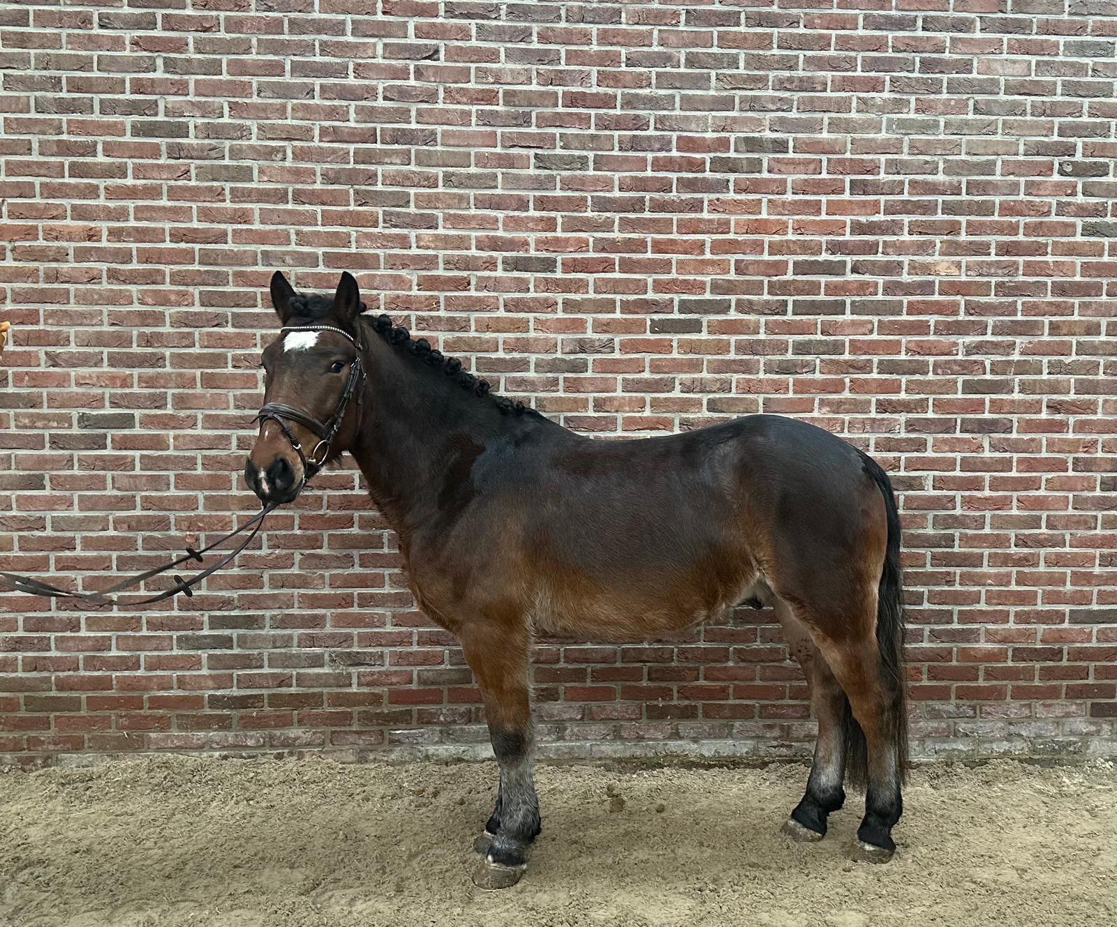Bolero is een leuke, stoere en lieve pony die braaf is in de omgang en onder het zadel. Een aangename pony om mee te werken. Hij staat netjes aan de hulpen, loopt nageeflijk en is niet schrikachtig. Hij springt braaf een parcours en kijkt nergens van op. Hij gaat regelmatig mee op buitenrit. Zoek je een leuke pony om verder op te leiden en naar je eigen hand te zetten, dan is Bolero de pony voor jou. Bolero is a nice, brave and sweet pony who is well-mannered both on the ground and under saddle. A pleasant pony to work with. He responds well to the aids, moves supple and relaxed, and is not spooky. He jumps a course nicely and is not easily distracted. He regularly goes out for trail rides. If you are looking for a lovely pony to further train and develop in your own way, then Bolero is the pony for you. Bolero est un poney gentil, courageux et affectueux, bien éduqué aussi bien à pied que monté. Un poney agréable à travailler. Il répond bien aux aides, se déplace avec souplesse et n’est pas peureux. Il saute un parcours avec franchise et ne se laisse pas distraire. Il part régulièrement en promenade. Si vous recherchez un poney agréable à former davantage et à façonner selon vos envies, alors Bolero est le poney qu’il vous faut. Bolero ist ein nettes, mutiges und liebes Pony, das sowohl im Umgang als auch unter dem Sattel brav ist. Ein angenehmes Pony in der täglichen Arbeit. Er steht gut an den Hilfen, läuft losgelassen und ist nicht schreckhaft. Er springt einen Parcours brav und lässt sich nicht ablenken. Er geht regelmäßig ins Gelände. Wenn Sie ein schönes Pony suchen, das Sie weiter ausbilden und nach Ihren eigenen Vorstellungen fördern möchten, dann ist Bolero das richtige Pony für Sie.