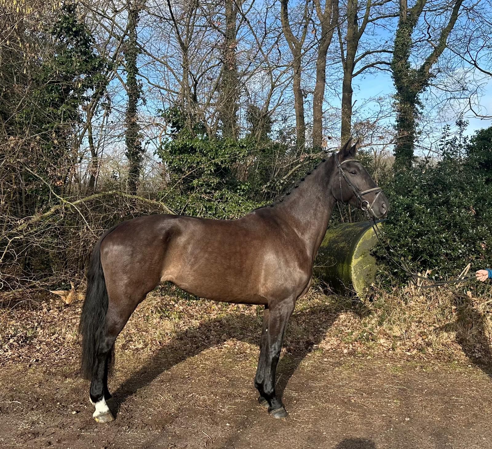 Idorijke Een mooie, lieve merrie uit een zeer goede moederlijn. Idorijke heeft zelf M1-dressuur gelopen, beschikt over zeer fijne gangen en is eenvoudig te rijden. Alle “knopjes” zitten erop. Het is een paard met een fijne “go”, waar je iedere keer met plezier op stapt. Daarnaast laat ze een knappe sprong zien en springt ze braaf een parcours. Idorijke is braaf op vreemd terrein en gaat regelmatig mee op buitenrit. Zoek je een leuke, fijne allrounder waarmee je alle kanten op kunt en waarbij de “knopjes” goed bevestigd zijn, dan is Idorijke het paard voor jou. Idorijke A beautiful and sweet mare from a very strong dam line. Idorijke has competed at M1 dressage level, has very good gaits, and is easy to ride. All the “buttons” are there. She has a nice forward “go” and is a horse you will happily get on every day. In addition, she shows a lovely jump and confidently jumps a course. Idorijke behaves well in new environments and regularly goes out for trail rides. If you are looking for a nice all-rounder with whom you can go in any direction, and with all the “buttons” well established, then Idorijke is the right horse for you. Idorijke Une belle et gentille jument issue d’une très bonne lignée maternelle. Idorijke a concouru en dressage niveau M1, possède de très belles allures et est facile à monter. Tous les “boutons” sont en place. C’est une jument avec une bonne impulsion, sur laquelle on monte toujours avec plaisir. De plus, elle montre un joli saut et saute un parcours avec franchise. Idorijke se comporte bien en terrain inconnu et part régulièrement en promenade. Si vous recherchez une jument polyvalente, agréable, avec laquelle vous pouvez tout faire et dont les bases sont bien établies, alors Idorijke est le cheval qu’il vous faut. Idorijke Eine schöne und liebe Stute aus einer sehr guten Mutterlinie. Idorijke ist auf M1-Dressurniveau gegangen, verfügt über sehr gute Grundgangarten und ist einfach zu reiten. Alle „Knöpfe“ sind vorhanden. Sie hat eine angenehme Vorwärtsenergie und ist ein Pferd, auf das man sich jeden Tag gerne setzt. Außerdem zeigt sie einen schönen Sprung und springt einen Parcours brav. Idorijke ist brav auf fremdem Gelände und geht regelmäßig ins Gelände. Wenn Sie eine nette, vielseitige Allrounderin suchen, mit der Sie in alle Richtungen arbeiten können und bei der alle „Knöpfe“ gut installiert sind, dann ist Idorijke das richtige Pferd für Sie.