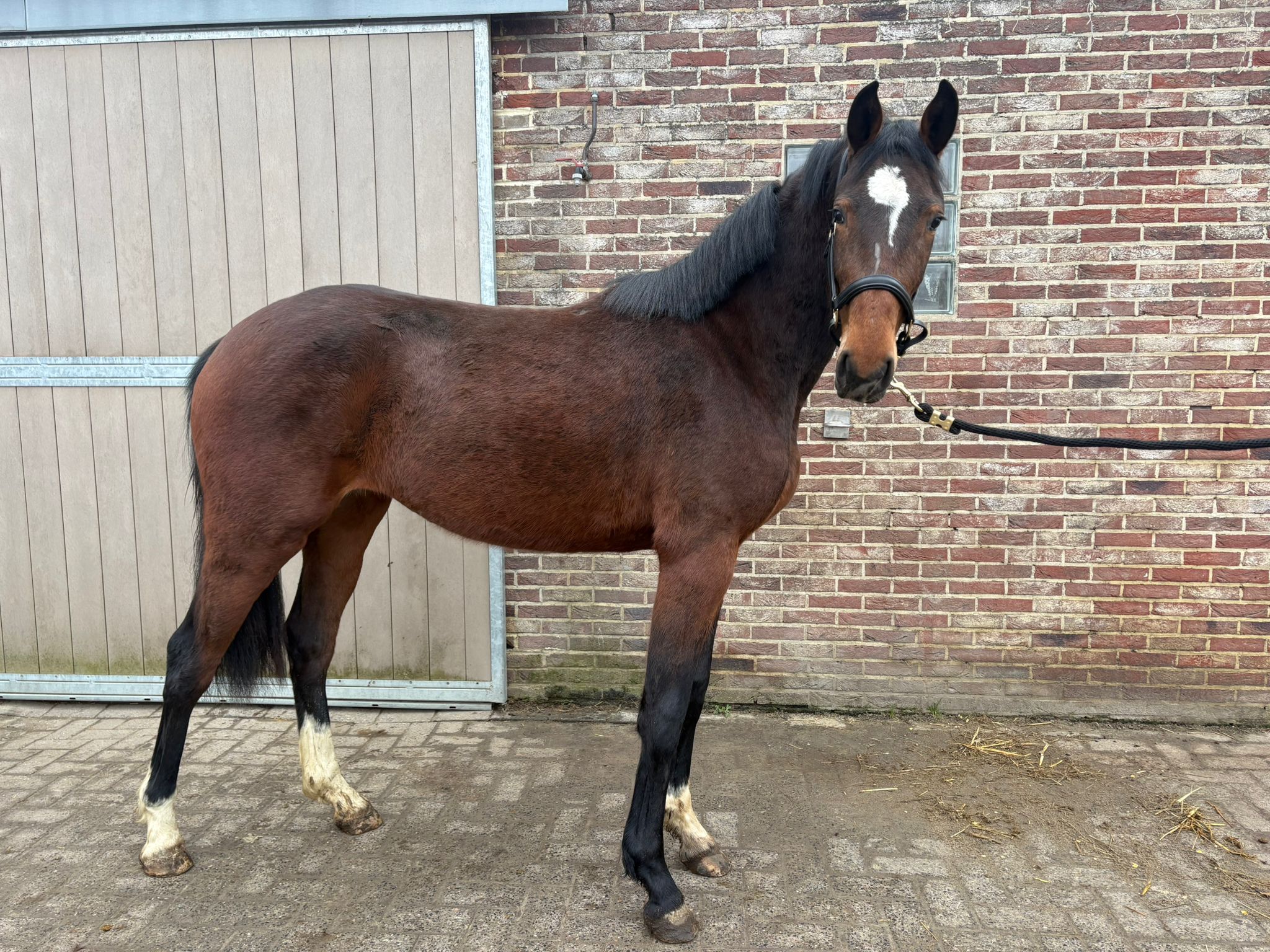 Alaska is een 3 jarige merrie van Thio van T&L (Toulon x Calato) uit een moeder vanCarerra VDL (Cardento x Baloubet du Rouet). Deze ruwe diamant kan nog elke richting uit en is nog volledig naar uw hand te zetten. Alaska is een merrie met bloed en vermogen, deze kwaliteiten gaan perfect passen in de hedendaagse sport. Na haar opleiding word dit een winnaars paardje. Het zijn late doorgroeiers. Alaska is a 3-year-old mare by Thio van T&L (Toulon x Calato) out of a dam by Carerra VDL (Cardento x Baloubet du Rouet). This rough diamond can still go in any direction and is completely to your liking. Alaska is a mare with blood and power, these qualities will fit perfectly in today's sport. After her training, she will become a winner. They are late growers. Alaska est une jument de 3 ans, fille de Thio van T&L (Toulon x Calato) et d'une mère issue de Carerra VDL (Cardento x Baloubet du Rouet). Ce joyau brut possède un potentiel immense et correspond parfaitement à vos attentes. Alaska est une jument puissante et de sang pur, des qualités idéales pour les compétitions actuelles. Après son débourrage, elle deviendra une championne. Sa croissance est tardive. Alaska ist eine dreijährige Stute von Thio van T&L (Toulon x Calato) aus einer Mutter von Carerra VDL (Cardento x Baloubet du Rouet). Dieses Rohdiamant hat noch viel Potenzial und wird Ihnen sicherlich gefallen. Alaska ist eine Stute mit Blut und Kraft – Eigenschaften, die perfekt zum modernen Pferdesport passen. Nach ihrem Training wird sie eine Siegerin werden. Diese Stuten wachsen spät.