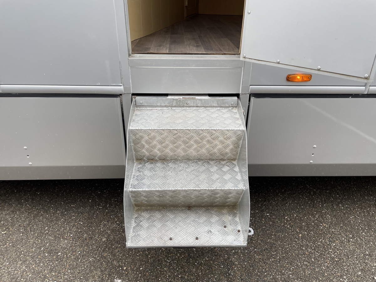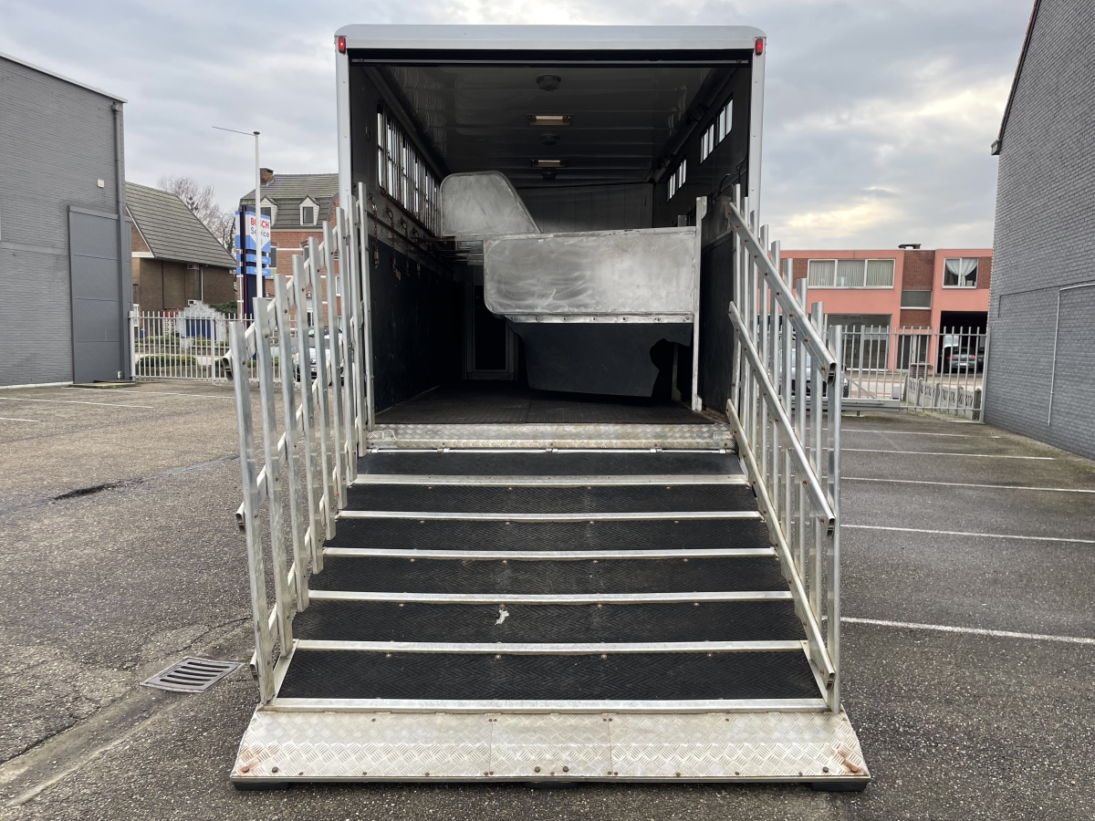 Log inDAF LF55 220PK Hippotrucks voor 5 paarden + zadelkamer Deze Daf LF55 Werd gekocht door de eigenaar terwijl de opbouw werd voorzien op de wagen. Het betreft een opbouw bestaande uit een zadelkamer met inbouwkasten, toilet, doorgang via deur naar de paarden ...mooi afgewerkt met kwalitatief hout. Achterin het voertuig in er ruim plaats voor 5 paarden. Allerhande voorzieningen zijn aanwezig. Het onderhoud werd steeds, volgens schema uitgevoerd. Specificaties: Bouwjaar 09-2006 Kilometerstand: 43500 km Transmissie: Handmatig Brandstof: Diesel Vermogen: 162 kW / 220 PK Kleur: Zilver Cilinder capaciteit: 5580cm3 Gewicht: 7760kg Mistlampen voor Onderhoudsboekjes aanwezig Onderhoudshistorie Aanwezig Niet-Rokersauto Stalen velgen Comfort-opties Luchtvering Comfortstoelen In hoogte verstelbare stoelen Verwarmbare buitenspiegels Stuurbekrachtiging Elektrische ramen voor Schuifdak Veiligheidsopties ABS Buitentemperatuurmeter Infotainment-opties CD-speler +Radio DAF LF55 220HP Hippotrucks for 5 horses + tack room This DAF LF55 was purchased by the owner while the bodywork was being installed on the vehicle. It features a superstructure consisting of a tack room with built-in cabinets, toilet, and a passage through a door to the horse area, beautifully finished with high-quality wood. At the rear of the vehicle, there is ample space for 5 horses. Various facilities are available. Maintenance has always been carried out according to schedule. Specifications: Year of manufacture: 09-2006 Mileage: 43,500 km Transmission: Manual Fuel: Diesel Power: 162 kW / 220 HP Color: Silver Engine capacity: 5,580 cm³ Weight: 7,760 kg Front fog lights Service book available Maintenance history available Non-smoking vehicle Steel wheels Comfort options: Air suspension Comfort seats Height-adjustable seats Heated exterior mirrors Power steering Electric front windows Sunroof Safety options: ABS Outside temperature gauge Infotainment options: CD player + Radio DAF LF55 220CV Hippotrucks pour 5 chevaux + sellerie Ce DAF LF55 a été acheté par le propriétaire pendant que la carrosserie était installée sur le véhicule. Il s’agit d’une superstructure comprenant une sellerie avec armoires intégrées, toilettes et un passage par porte vers l’espace chevaux, joliment fini avec du bois de haute qualité. À l’arrière du véhicule, il y a suffisamment d’espace pour 5 chevaux. Divers équipements sont présents. L’entretien a toujours été effectué selon le planning prévu. Spécifications : Année de construction : 09-2006 Kilométrage : 43 500 km Transmission : Manuelle Carburant : Diesel Puissance : 162 kW / 220 CV Couleur : Argent Cylindrée : 5 580 cm³ Poids : 7 760 kg Phares antibrouillard avant Carnet d’entretien disponible Historique d’entretien disponible Véhicule non-fumeur Jantes en acier Options de confort : Suspension pneumatique Sièges confort Sièges réglables en hauteur Rétroviseurs extérieurs chauffants Direction assistée Vitres électriques avant Toit ouvrant Options de sécurité : ABS Indicateur de température extérieure Options infotainment : Lecteur CD + Radio DAF LF55 220PS Hippotrucks für 5 Pferde + Sattelkammer Dieser DAF LF55 wurde vom Eigentümer gekauft, während der Aufbau auf dem Fahrzeug montiert wurde. Es handelt sich um einen Aufbau mit Sattelkammer inklusive Einbauschränken, Toilette und Durchgangstür zum Pferdebereich, hochwertig mit Qualitäts-Holz verarbeitet. Im hinteren Bereich des Fahrzeugs ist ausreichend Platz für 5 Pferde. Verschiedene Ausstattungen sind vorhanden. Die Wartung wurde stets gemäß Wartungsplan durchgeführt. Spezifikationen: Baujahr: 09-2006 Kilometerstand: 43.500 km Getriebe: Schaltgetriebe Kraftstoff: Diesel Leistung: 162 kW / 220 PS Farbe: Silber Hubraum: 5.580 cm³ Gewicht: 7.760 kg Nebelscheinwerfer vorne Serviceheft vorhanden Wartungshistorie vorhanden Nichtraucherfahrzeug Stahlfelgen Komfortoptionen: Luftfederung Komfortsitze Höhenverstellbare Sitze Beheizbare Außenspiegel Servolenkung Elektrische Fensterheber vorne Schiebedach Sicherheitsoptionen: ABS Außentemperaturanzeige Infotainment-Optionen: CD-Player + Radio