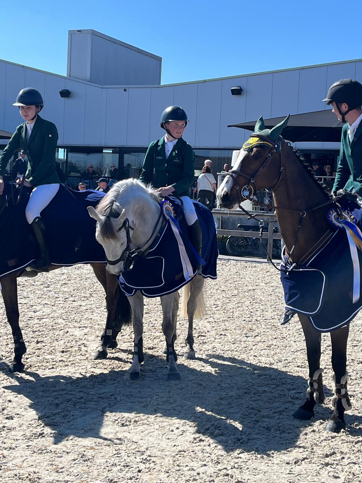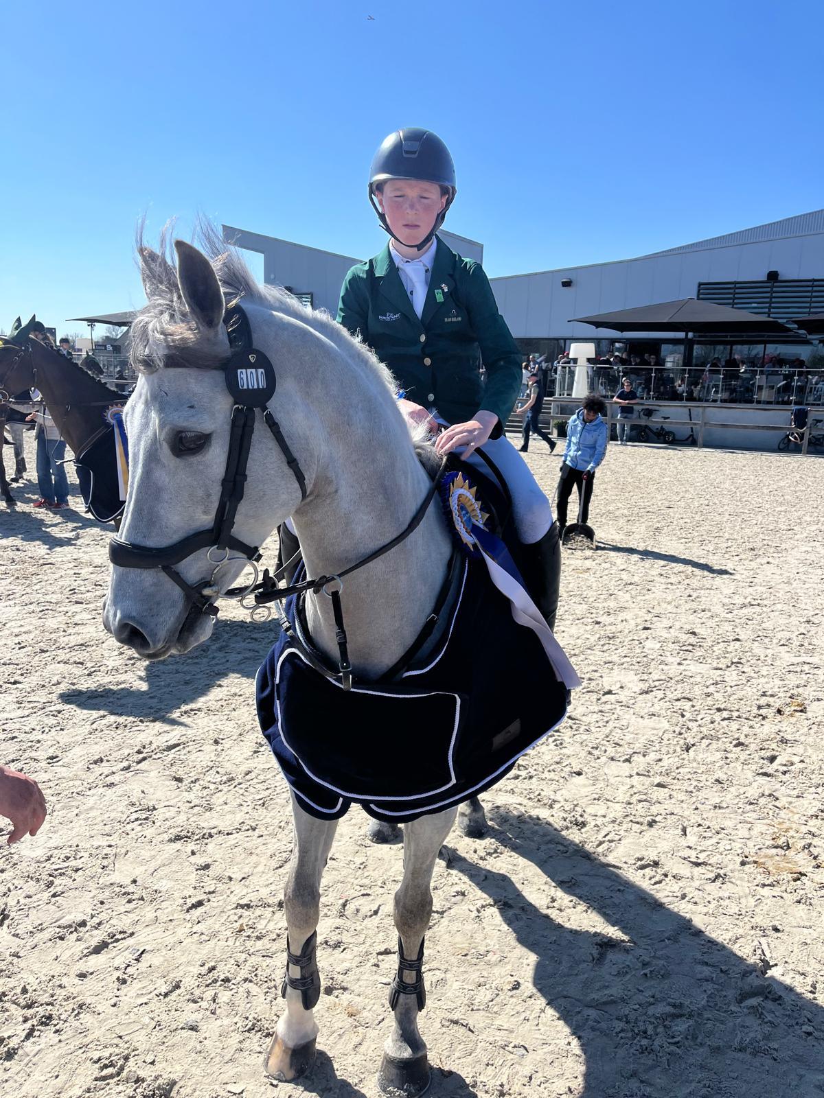 Dit is een unieke kans in het leven voor elk kind om een 148 cm pony te kopen. Hij is zeer kindvriendelijk. Western Ranger is een fantastische springpony met een enorme carrière voor zich. Met veel galop en een grote pas springt hij momenteel met gemak op 1.30 m-niveau. Met al ervaring in Nations Cups bewijst hij zijn kwaliteit en zal hij uitblinken op grote parcoursen in kampioenschapsarena’s. Hij is snel van de grond en heeft bovendien een hart van goud om zijn ruiter te helpen. Hij is een bloedpony met veel uithoudingsvermogen om meerdere rondes/dagen competitief te springen. Hij sprong een foutloze in een sterke 148 Dublin Horse Show-kwalificatie en zal ongetwijfeld consequent kwalificeren voor de Grade A/AJ-kampioenschappen. Winnaar van de Europese Zilveren Medaille 2025 en Reservekampioen op RDS 2025. This is a once in a lifetime opportunity for any child to purchase a 148cm pony. He is very child friendly. Western Ranger is a fabulous jumping pony with a huge career ahead of him. With masses of stride, he is currently jumping 130 level with ease. Already with Nation cups experience under his belt, he is proving his quality and will excel jumping big track in championship arenas. He is quick off the floor and still with a heart of gold to help his rider out. He is a blood pony with great stamina for jumping multiple rounds /days competitively. He jumped a treble clear in a strong 148 Dublin Horse Show Qualifier and will undoubtedly qualify Grade A/AJ championships consistently. Winners of European Silver Medal 2025 Reserve Champion at RDS 2025 C’est une opportunité unique dans une vie pour tout enfant d’acheter un poney de 148 cm. Il est très gentil avec les enfants. Western Ranger est un fabuleux poney de saut avec une immense carrière devant lui. Avec beaucoup d’amplitude et une grande foulée, il saute actuellement le niveau 130 avec facilité. Déjà doté d’une expérience en Coupes des Nations, il prouve sa qualité et excellera sur de grands parcours dans des arènes de championnat. Il est rapide à l’appel et possède un cœur en or pour aider son cavalier. C’est un poney de sang avec une excellente endurance pour sauter plusieurs manches/jours en compétition. Il a réalisé un triple sans-faute dans une forte qualificative 148 du Dublin Horse Show et se qualifiera sans aucun doute régulièrement pour les championnats Grade A/AJ. Médaillé d’Argent Européen 2025 et Vice-Champion au RDS 2025. Dies ist eine einmalige Gelegenheit im Leben für jedes Kind, ein 148-cm-Pony zu erwerben. Er ist sehr kinderfreundlich. Western Ranger ist ein fantastisches Springpony mit einer großen Karriere vor sich. Mit viel Galoppade und großer Galoppsprünge springt er derzeit mühelos auf 1,30-m-Niveau. Mit bereits vorhandener Nationenpreis-Erfahrung beweist er seine Qualität und wird auf großen Parcours in Championatsarenen glänzen. Er ist schnell am Sprung und hat zudem ein Herz aus Gold, um seinem Reiter zu helfen. Er ist ein Blutpony mit großer Ausdauer, um mehrere Runden/Tage im Wettkampf zu springen. Er sprang ein dreifach fehlerfreies Ergebnis in einer starken 148 Dublin Horse Show-Qualifikation und wird sich zweifellos konstant für die Grade A/AJ-Meisterschaften qualifizieren. Gewinner der Europäischen Silbermedaille 2025 und Reserve-Champion beim RDS 2025.