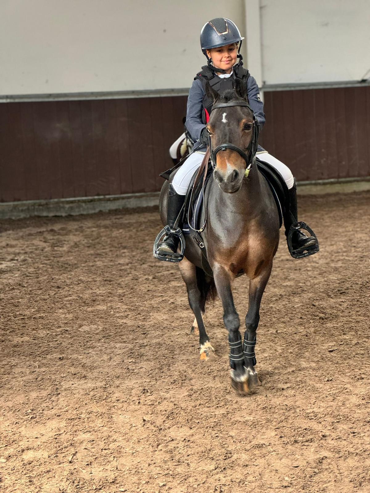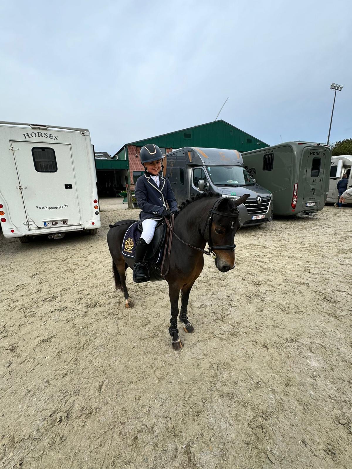 Dulce is een lieve familiepony die te klein is geworden voor haar huidige amazone. De pony is fijn te rijden en gaat ook mee op concours om te springen. De merrie is betrouwbaar in de omgang en ook met andere pony’s/paarden supermakkelijk. Ze is geschikt voor zowel beginnende als ervaren ruiters. Dulce is a sweet family pony who has become too small for her current rider. She is pleasant to ride and also competes in show jumping competitions. The mare is reliable in handling and super easy with other ponies and horses. She is suitable for both beginner and experienced riders. Dulce est un adorable poney de famille devenu trop petit pour sa cavalière actuelle. Elle est agréable à monter et participe également à des concours de saut d’obstacles. La jument est fiable en main et très facile avec les autres poneys et chevaux. Elle convient aussi bien aux cavaliers débutants qu’aux cavaliers expérimentés. Dulce ist ein lieber Familienpony, das für seine aktuelle Reiterin zu klein geworden ist. Sie ist angenehm zu reiten und nimmt auch an Springturnieren teil. Die Stute ist im Umgang zuverlässig und mit anderen Ponys und Pferden super unkompliziert. Sie eignet sich sowohl für Anfänger als auch für erfahrene Reiter.