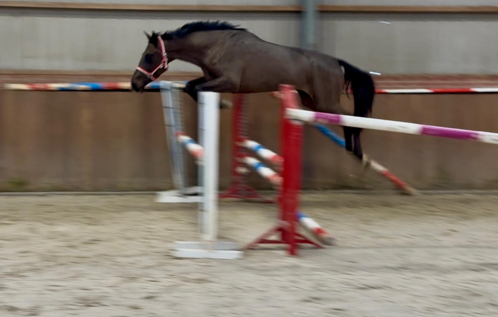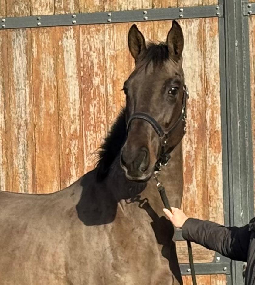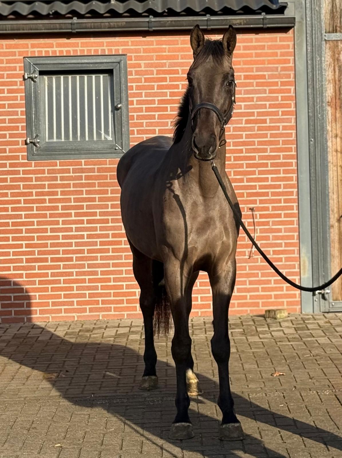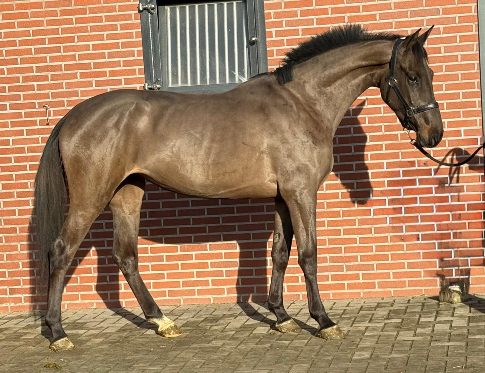 Sarona JK; the beauty and the brains ..! Sarona is een prachtige verschijning om te zien. Deze 4jarige merrie heeft een mooi silhouet en een aansprekend model. Sarona is gefokt uit de sterke ‘Barona’ lijn. Haar vader is de internationale springhengst Zannini die afstamt van de bekende holsteiner hengst CASSINI II uit een Grandeur moeder. Moedersvader is de trakhener hengst Symont die afstamt van de Grand Prix hengst Monteverdi (Partout) uit een Kostolany moeder. Kostolany kennen we o.a. als vader van Gribaldi. Grootmoeder Jarona stamt af van de gelderse hengst Floris bs (v.Negro). Deze hengst was zelf succesvol actief op INTER II niveau dressuur. Wat haar afstamming al doet vermoeden, is Sarona een paard met allround mogelijkheden. Ze beweegt gemakkelijk en lichtvoetig. In galop heeft ze een goede balans en ze wisselt gemakkelijk. Op de sprong toont ze snelle reflexen en is ze voorzichtig. Daarbij laat een mooie techniek zien waarbij ze achter telkens de sprong goed afmaakt. Deze merrie komt ongeveer 2 maand geleden rechtstreeks van de fokker uit de opfok groep. Tot op heden is ze dan ook nog onbeleerd. Dus nog geheel naar eigen hand te zetten. Wel is ze rustig op stal en eerlijk in omgang. Grijp nu uw kans om in het bezit te komen van deze fraaie en talentvolle merrie. Sarona JK; the beauty and the brains..! Sarona is a beautiful sight to behold. This 4-year-old mare has an elegant silhouette and an appealing model. Sarona is bred from the strong ‘Barona’ line. Her sire is the international showjumping stallion Zannini, descended from the well-known Holsteiner stallion Cassini II out of a Grandeur mare. Her damsire is the Trakehner stallion Symont, descending from the Grand Prix stallion Monteverdi (Partout) out of a Kostolany mare. Kostolany is also known, among others, as the sire of Gribaldi. Granddam Jarona descends from the Gelderlander stallion Floris BS (by Negro). This stallion himself competed successfully at INTER II dressage level. As her pedigree already suggests, Sarona is a horse with all-round potential. She moves easily and light-footed. In canter she has good balance and changes leads easily. Over fences she shows quick reflexes and is careful. She also demonstrates a nice technique, finishing the jump well behind every time. This mare came directly from the breeder about two months ago, straight from the youngstock group. Up to now she has therefore not yet been trained, giving you the opportunity to develop her entirely your own way. She is calm in the stable and honest to handle. Take your chance now to acquire this beautiful and talented mare. Sarona JK ; la beauté et l’intelligence..! Sarona est une apparition magnifique. Cette jument de 4 ans possède une belle silhouette et un modèle très harmonieux. Sarona est issue de la solide lignée « Barona ». Son père est l’étalon international de saut d’obstacles Zannini, descendant du célèbre étalon Holsteiner Cassini II, issu d’une mère par Grandeur. Le père de mère est l’étalon Trakehner Symont, descendant de l’étalon de Grand Prix Monteverdi (Partout) et d’une mère par Kostolany. Kostolany est notamment connu comme le père de Gribaldi. La grand-mère Jarona descend de l’étalon Gelderlander Floris BS (par Negro), lui-même performant avec succès au niveau INTER II en dressage. Comme son pedigree le laisse déjà supposer, Sarona est un cheval aux possibilités polyvalentes. Elle se déplace avec facilité et légèreté. Au galop, elle possède un bon équilibre et effectue les changements facilement. À l’obstacle, elle montre des réflexes rapides et beaucoup de prudence. Elle présente également une belle technique, terminant toujours bien son saut avec les postérieurs. Cette jument est arrivée directement de l’éleveur il y a environ deux mois, tout droit du groupe d’élevage. Jusqu’à présent, elle n’a donc pas encore été débourrée, ce qui vous permet de la former entièrement à votre manière. Elle est calme à l’écurie et honnête dans la manipulation. Saisissez dès maintenant l’occasion de devenir propriétaire de cette jument élégante et talentueuse. Sarona JK; Schönheit und Köpfchen..! Sarona ist eine wunderschöne Erscheinung. Diese 4-jährige Stute verfügt über eine elegante Silhouette und ein ansprechendes Modell. Sarona stammt aus der starken „Barona“-Linie. Ihr Vater ist der internationale Springhengst Zannini, abstammend vom bekannten Holsteiner Hengst Cassini II aus einer Grandeur-Mutter. Der Muttervater ist der Trakehner Hengst Symont, abstammend vom Grand-Prix-Hengst Monteverdi (Partout) aus einer Kostolany-Mutter. Kostolany ist unter anderem auch als Vater von Gribaldi bekannt. Großmutter Jarona stammt vom Gelderländer Hengst Floris BS (v. Negro) ab. Dieser Hengst war selbst erfolgreich bis zum Dressurniveau INTER II aktiv. Wie ihre Abstammung bereits vermuten lässt, ist Sarona ein Pferd mit vielseitigen Möglichkeiten. Sie bewegt sich leicht und mit viel Elastizität. Im Galopp hat sie eine gute Balance und wechselt die Galoppsprünge leicht. Am Sprung zeigt sie schnelle Reflexe und ist vorsichtig. Dabei zeigt sie eine schöne Technik und beendet den Sprung jedes Mal gut mit der Hinterhand. Diese Stute kam vor etwa zwei Monaten direkt vom Züchter aus der Aufzuchtgruppe. Bis heute ist sie daher noch ungeritten und kann ganz nach Ihren eigenen Vorstellungen ausgebildet werden. Im Stall ist sie ruhig und im Umgang ehrlich. Nutzen Sie jetzt Ihre Chance, diese elegante und talentierte Stute zu erwerben.
