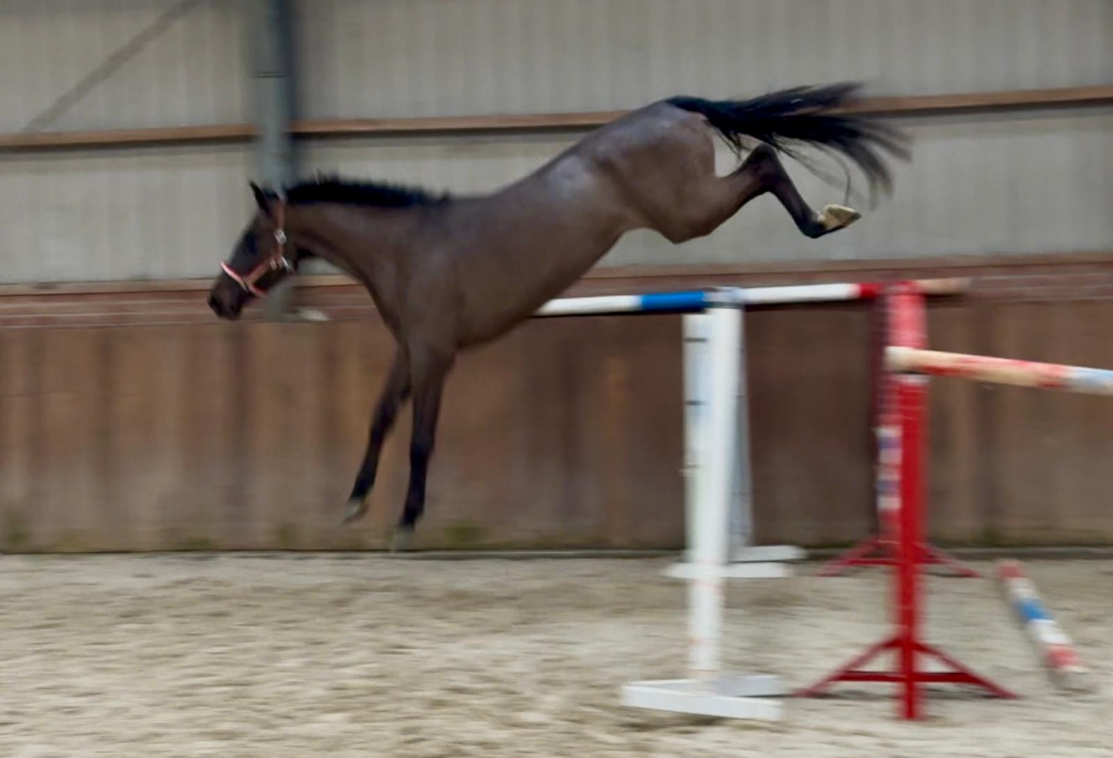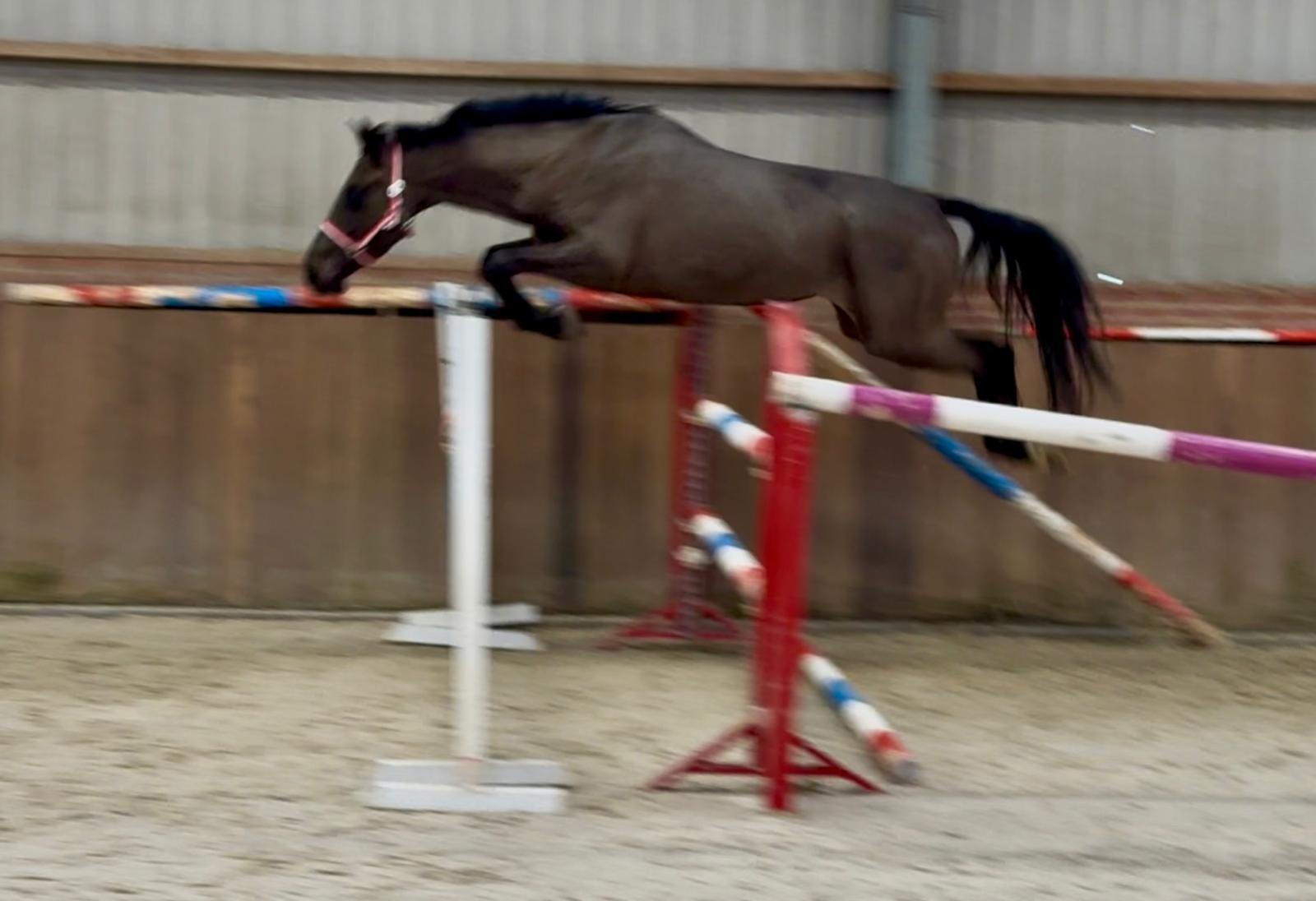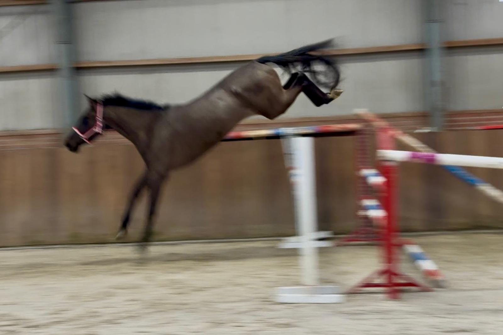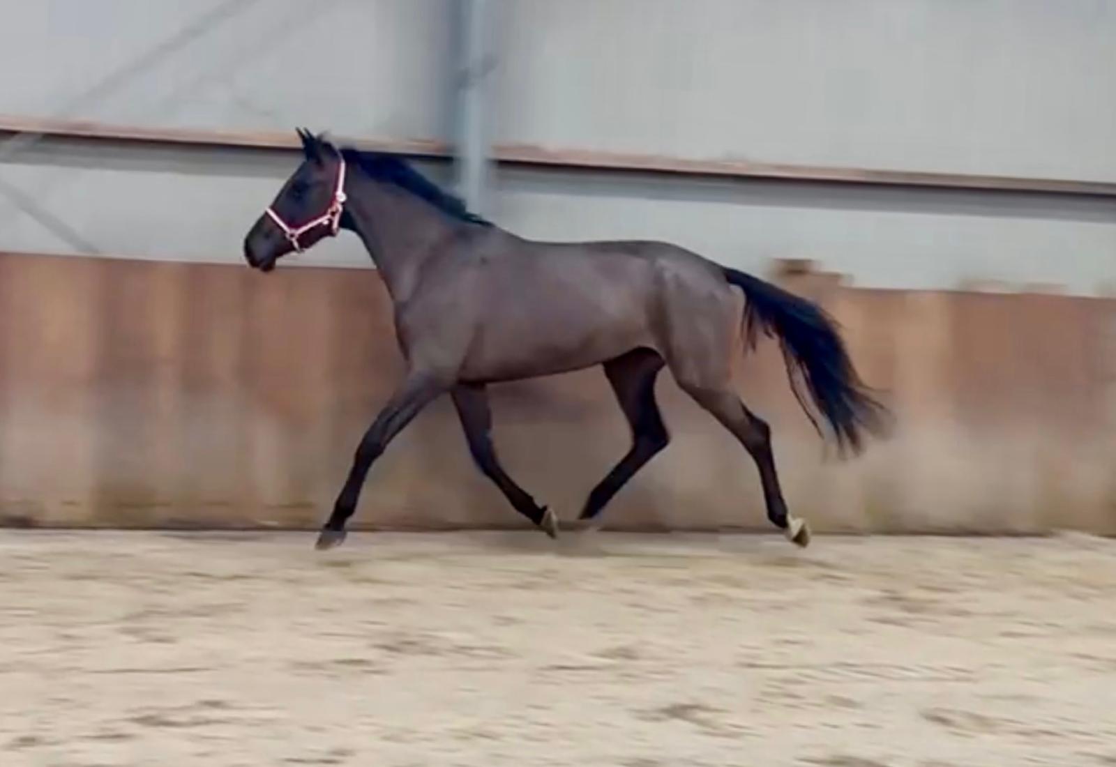 Sarona JK; the beauty and the brains ..! Sarona is een prachtige verschijning om te zien. Deze 4jarige merrie heeft een mooi silhouet en een aansprekend model. Sarona is gefokt uit de sterke ‘Barona’ lijn. Haar vader is de internationale springhengst Zannini die afstamt van de bekende holsteiner hengst CASSINI II uit een Grandeur moeder. Moedersvader is de trakhener hengst Symont die afstamt van de Grand Prix hengst Monteverdi (Partout) uit een Kostolany moeder. Kostolany kennen we o.a. als vader van Gribaldi. Grootmoeder Jarona stamt af van de gelderse hengst Floris bs (v.Negro). Deze hengst was zelf succesvol actief op INTER II niveau dressuur. Wat haar afstamming al doet vermoeden, is Sarona een paard met allround mogelijkheden. Ze beweegt gemakkelijk en lichtvoetig. In galop heeft ze een goede balans en ze wisselt gemakkelijk. Op de sprong toont ze snelle reflexen en is ze voorzichtig. Daarbij laat een mooie techniek zien waarbij ze achter telkens de sprong goed afmaakt. Deze merrie komt ongeveer 2 maand geleden rechtstreeks van de fokker uit de opfok groep. Tot op heden is ze dan ook nog onbeleerd. Dus nog geheel naar eigen hand te zetten. Wel is ze rustig op stal en eerlijk in omgang. Grijp nu uw kans om in het bezit te komen van deze fraaie en talentvolle merrie. Sarona JK; the beauty and the brains..! Sarona is a beautiful sight to behold. This 4-year-old mare has an elegant silhouette and an appealing model. Sarona is bred from the strong ‘Barona’ line. Her sire is the international showjumping stallion Zannini, descended from the well-known Holsteiner stallion Cassini II out of a Grandeur mare. Her damsire is the Trakehner stallion Symont, descending from the Grand Prix stallion Monteverdi (Partout) out of a Kostolany mare. Kostolany is also known, among others, as the sire of Gribaldi. Granddam Jarona descends from the Gelderlander stallion Floris BS (by Negro). This stallion himself competed successfully at INTER II dressage level. As her pedigree already suggests, Sarona is a horse with all-round potential. She moves easily and light-footed. In canter she has good balance and changes leads easily. Over fences she shows quick reflexes and is careful. She also demonstrates a nice technique, finishing the jump well behind every time. This mare came directly from the breeder about two months ago, straight from the youngstock group. Up to now she has therefore not yet been trained, giving you the opportunity to develop her entirely your own way. She is calm in the stable and honest to handle. Take your chance now to acquire this beautiful and talented mare. Sarona JK ; la beauté et l’intelligence..! Sarona est une apparition magnifique. Cette jument de 4 ans possède une belle silhouette et un modèle très harmonieux. Sarona est issue de la solide lignée « Barona ». Son père est l’étalon international de saut d’obstacles Zannini, descendant du célèbre étalon Holsteiner Cassini II, issu d’une mère par Grandeur. Le père de mère est l’étalon Trakehner Symont, descendant de l’étalon de Grand Prix Monteverdi (Partout) et d’une mère par Kostolany. Kostolany est notamment connu comme le père de Gribaldi. La grand-mère Jarona descend de l’étalon Gelderlander Floris BS (par Negro), lui-même performant avec succès au niveau INTER II en dressage. Comme son pedigree le laisse déjà supposer, Sarona est un cheval aux possibilités polyvalentes. Elle se déplace avec facilité et légèreté. Au galop, elle possède un bon équilibre et effectue les changements facilement. À l’obstacle, elle montre des réflexes rapides et beaucoup de prudence. Elle présente également une belle technique, terminant toujours bien son saut avec les postérieurs. Cette jument est arrivée directement de l’éleveur il y a environ deux mois, tout droit du groupe d’élevage. Jusqu’à présent, elle n’a donc pas encore été débourrée, ce qui vous permet de la former entièrement à votre manière. Elle est calme à l’écurie et honnête dans la manipulation. Saisissez dès maintenant l’occasion de devenir propriétaire de cette jument élégante et talentueuse. Sarona JK; Schönheit und Köpfchen..! Sarona ist eine wunderschöne Erscheinung. Diese 4-jährige Stute verfügt über eine elegante Silhouette und ein ansprechendes Modell. Sarona stammt aus der starken „Barona“-Linie. Ihr Vater ist der internationale Springhengst Zannini, abstammend vom bekannten Holsteiner Hengst Cassini II aus einer Grandeur-Mutter. Der Muttervater ist der Trakehner Hengst Symont, abstammend vom Grand-Prix-Hengst Monteverdi (Partout) aus einer Kostolany-Mutter. Kostolany ist unter anderem auch als Vater von Gribaldi bekannt. Großmutter Jarona stammt vom Gelderländer Hengst Floris BS (v. Negro) ab. Dieser Hengst war selbst erfolgreich bis zum Dressurniveau INTER II aktiv. Wie ihre Abstammung bereits vermuten lässt, ist Sarona ein Pferd mit vielseitigen Möglichkeiten. Sie bewegt sich leicht und mit viel Elastizität. Im Galopp hat sie eine gute Balance und wechselt die Galoppsprünge leicht. Am Sprung zeigt sie schnelle Reflexe und ist vorsichtig. Dabei zeigt sie eine schöne Technik und beendet den Sprung jedes Mal gut mit der Hinterhand. Diese Stute kam vor etwa zwei Monaten direkt vom Züchter aus der Aufzuchtgruppe. Bis heute ist sie daher noch ungeritten und kann ganz nach Ihren eigenen Vorstellungen ausgebildet werden. Im Stall ist sie ruhig und im Umgang ehrlich. Nutzen Sie jetzt Ihre Chance, diese elegante und talentierte Stute zu erwerben.