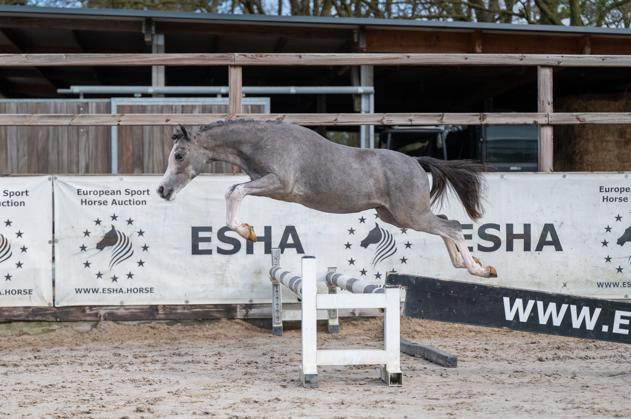 Een prachtig Welsh jaarling met een kleur die u altijd zal blijven aanspreken. Dit hengstje beweegt goed en laat al een uitstekend lichaamsgebruik op de hindernis zien. A beautiful Welsh yearling with a color that will continue to appeal to you forever. This colt moves well and already demonstrates excellent body use over the jump. Un magnifique yearling gallois avec une robe qui continuera à vous séduire pour toujours. Ce poulain se déplace bien et démontre déjà une excellente utilisation de son corps à l’obstacle. Ein wunderschöner walisischer Jährling mit einer Farbe, die Sie für immer begeistern wird. Dieser Hengst bewegt sich gut und zeigt bereits eine hervorragende Körpernutzung über dem Sprung.