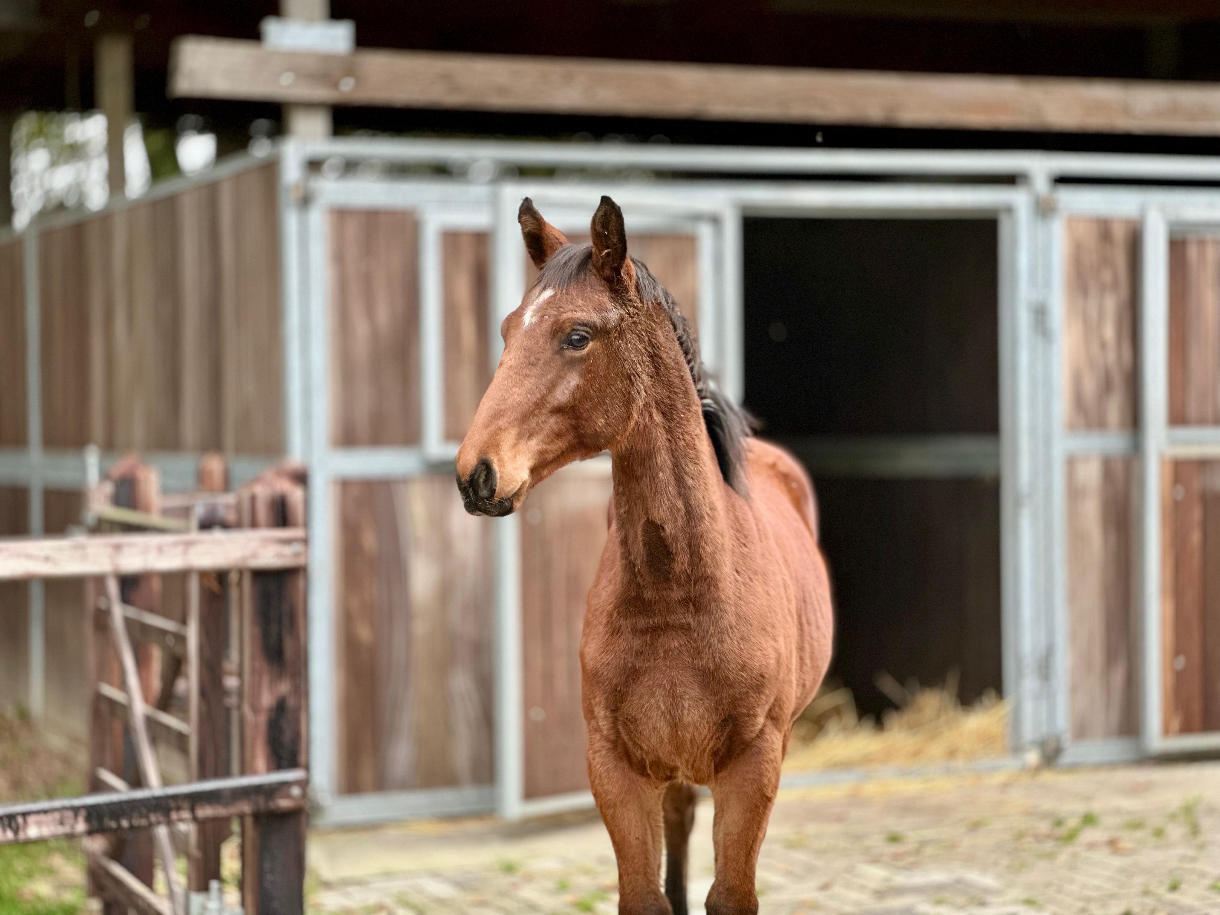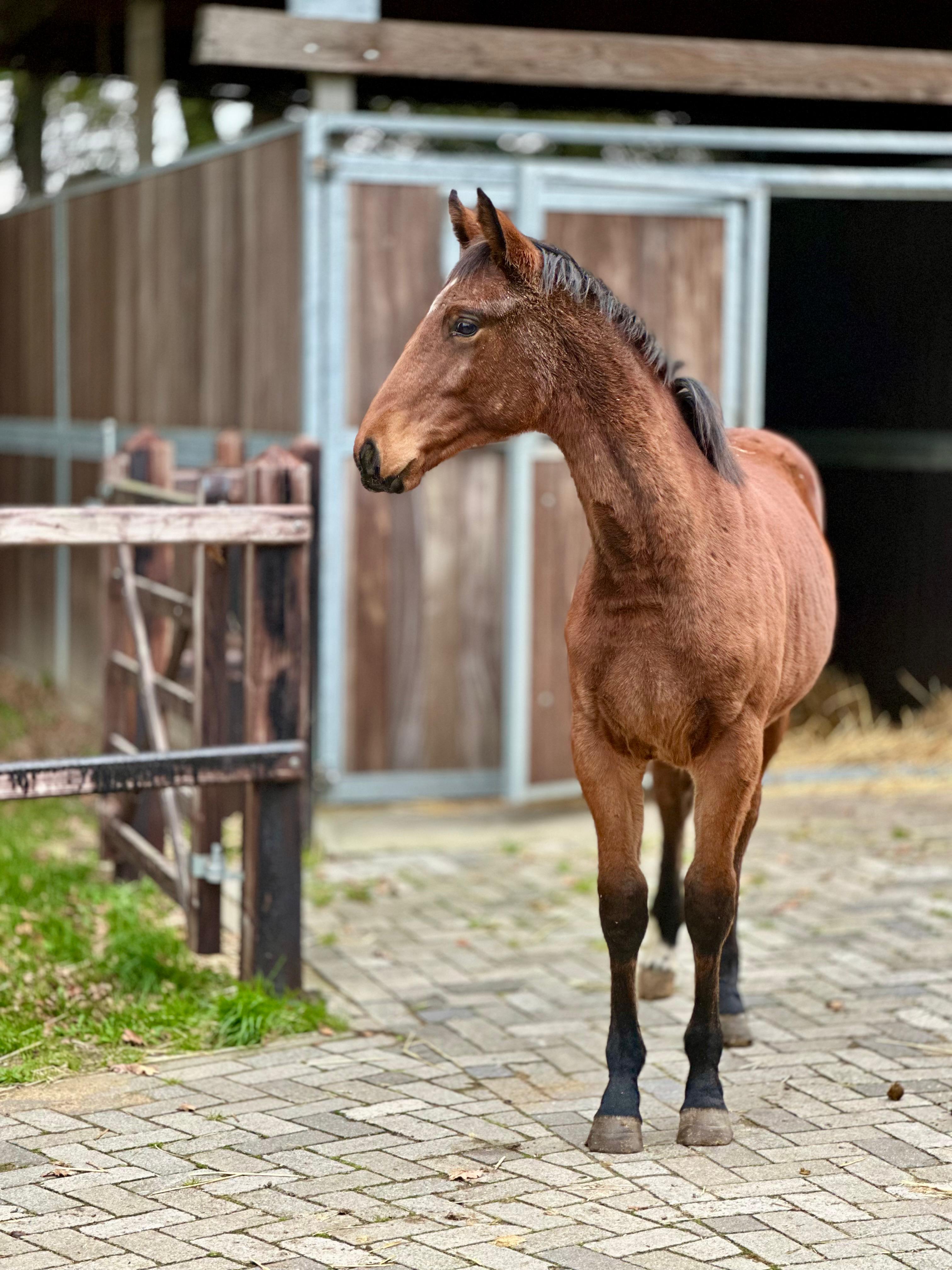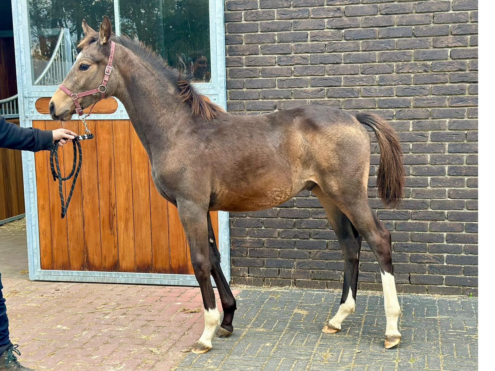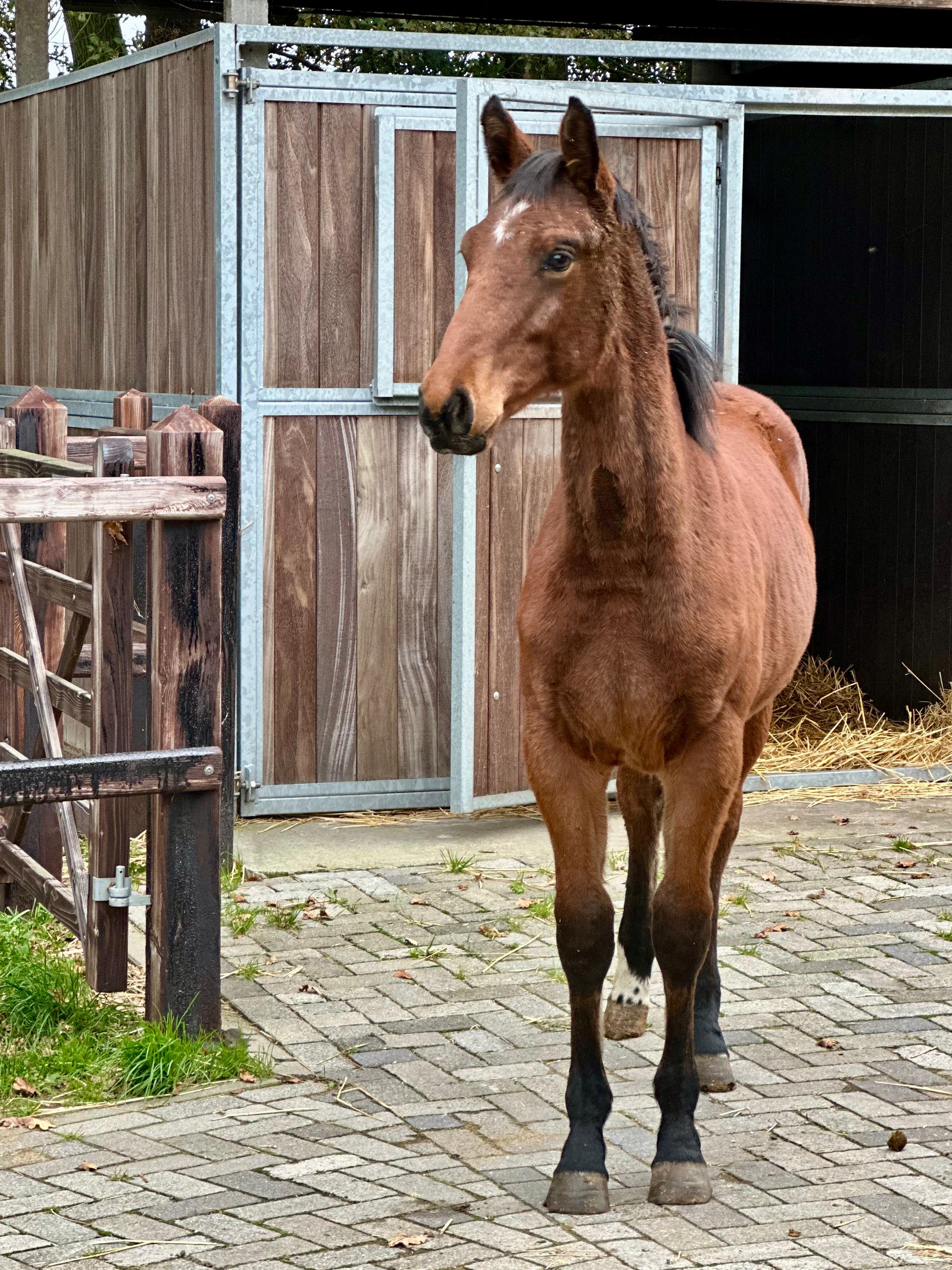 Topper vd Leidijk is een aansprekende 2-jarige merrie van Nick Wimphof x Don Tango x Flemmingh. Deze merrie heeft een vriendelijk, rustig karakter en is zowel op stal als in de hand een heel aangenaam paard. Ze heeft een goede stap, laat lossigheid zien in de beweging en galoppeerd met veel balans. Volgens ons is Topper een paard om vandaag naar waarde te schatten en volgend jaar rustig mee aan de slag te gaan. *Klinische keuring komt Maandag 27/10/2025 Topper van de Leidijk is an attractive two-year-old mare by Nick Wimphof out of a Don Tango x Flemmingh dam line. She has a kind and calm temperament and is very pleasant both in the stable and in handling. Topper shows a good walk, plenty of suppleness in her movement, and a canter with excellent balance. We believe Topper is a promising young horse, ready to be appreciated today and gently started under saddle next year. *Clinical examination will take place on Monday 27/10/2025 Topper van de Leidijk est une jolie jument de deux ans, issue de Nick Wimphof et d’une lignée Don Tango x Flemmingh. Elle possède un caractère doux et calme, et se montre très agréable aussi bien à l’écurie qu’à la main. Topper présente une bonne marche, beaucoup de souplesse dans ses allures et un galop équilibré. Selon nous, Topper est une jeune jument pleine de potentiel, à apprécier dès aujourd’hui et à former tranquillement l’année prochaine. *L'examen clinique aura lieu le lundi 27/10/2025 Topper van de Leidijk ist eine ansprechende zweijährige Stute von Nick Wimphof aus einer Don Tango x Flemmingh-Linie. Sie hat ein freundliches, ruhiges Wesen und zeigt sich sowohl im Stall als auch im Umgang sehr angenehm. Topper verfügt über einen guten Schritt, viel Geschmeidigkeit in der Bewegung und galoppiert mit schöner Balance. Wir sind der Meinung, dass Topper ein vielversprechendes junges Pferd ist, das man heute schon zu schätzen weiß und im nächsten Jahr behutsam weiter ausbilden kann. *Die klinische Untersuchung findet am Montag, den 27.10.2025 statt