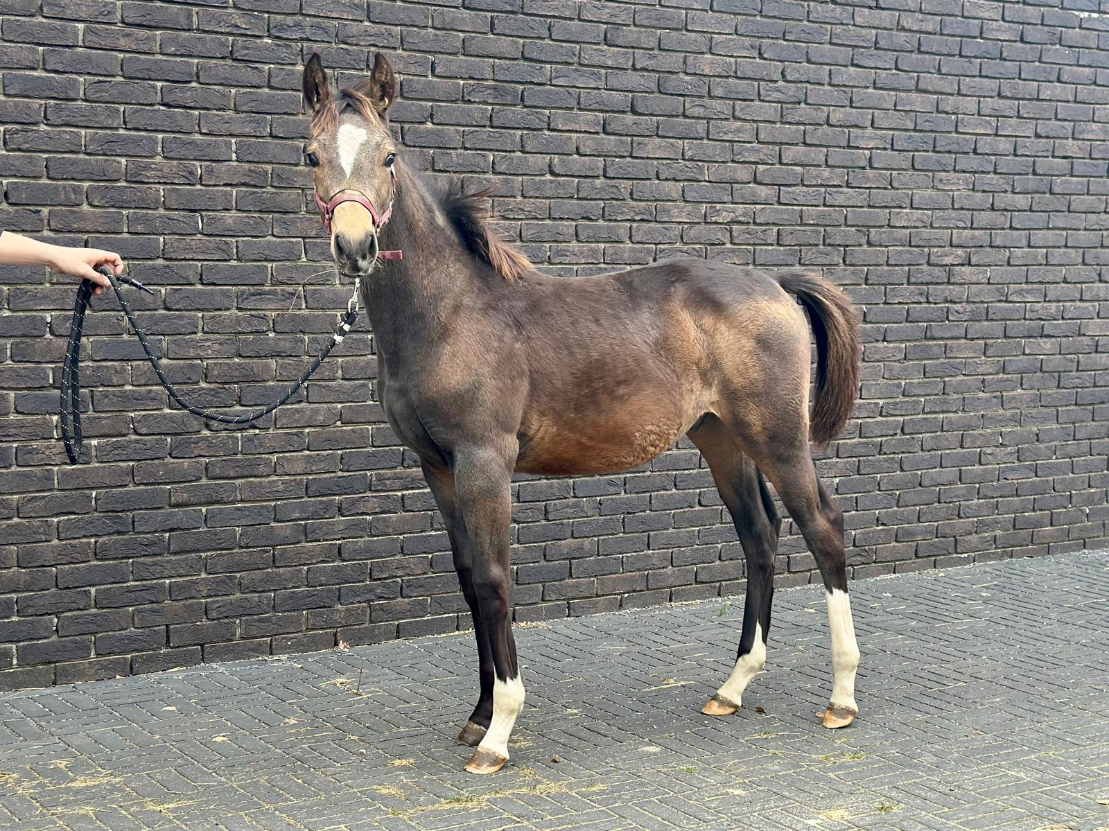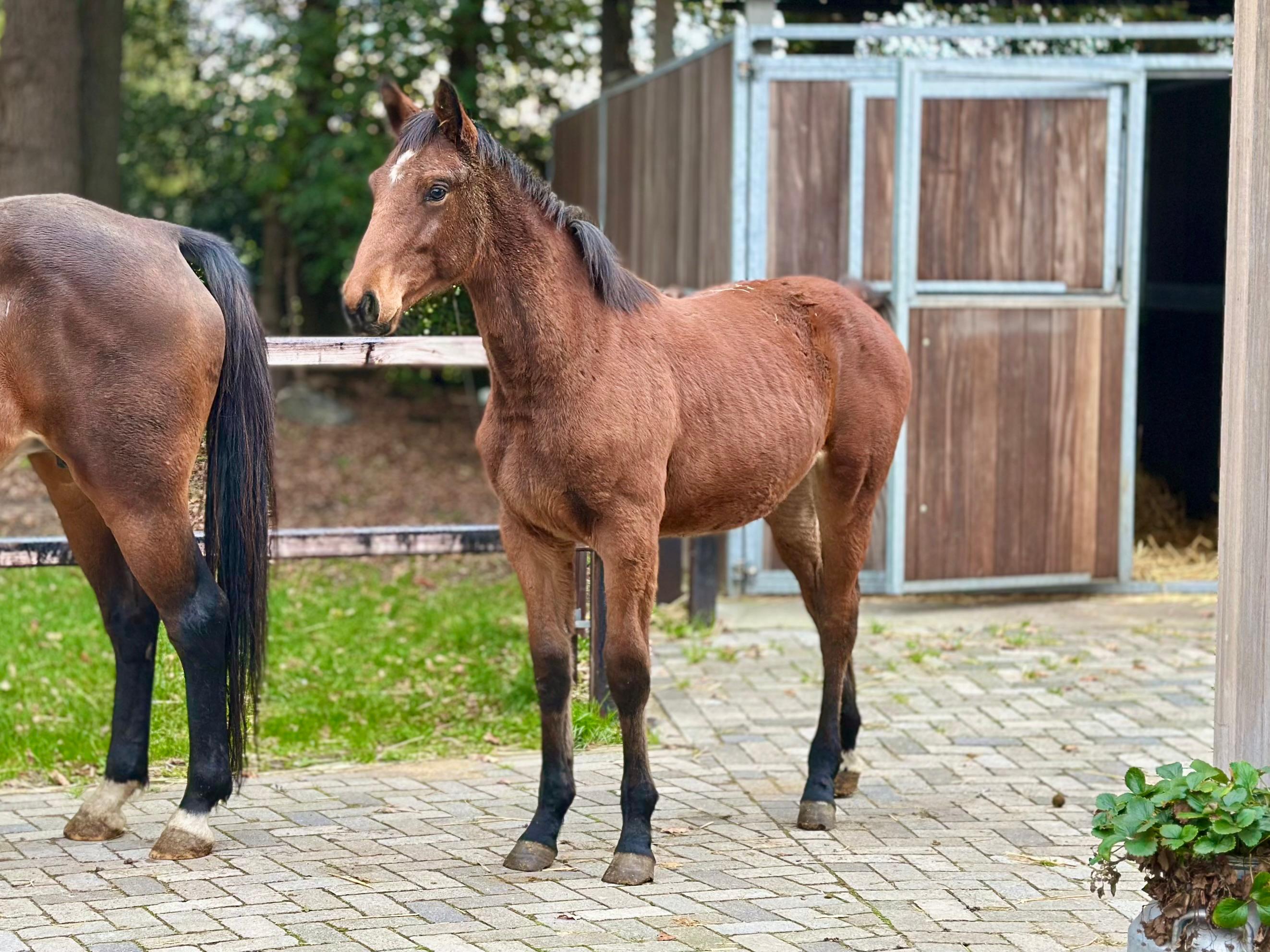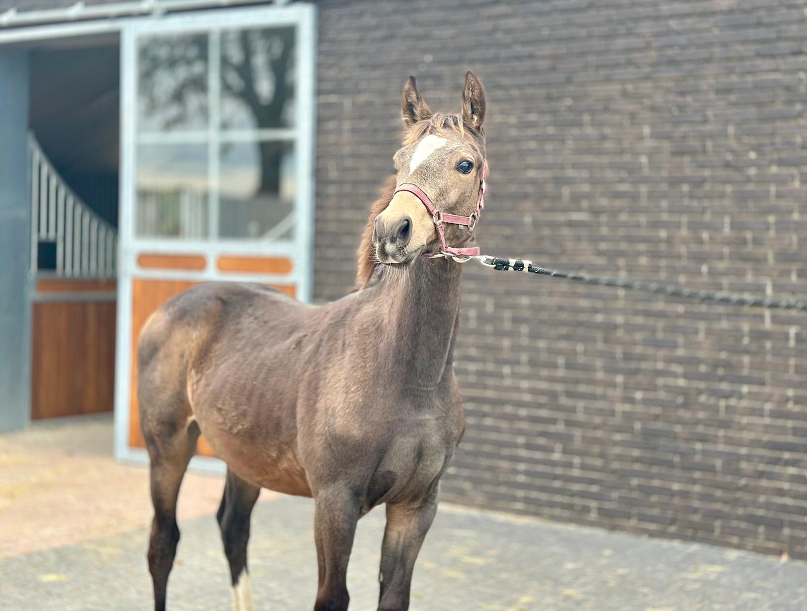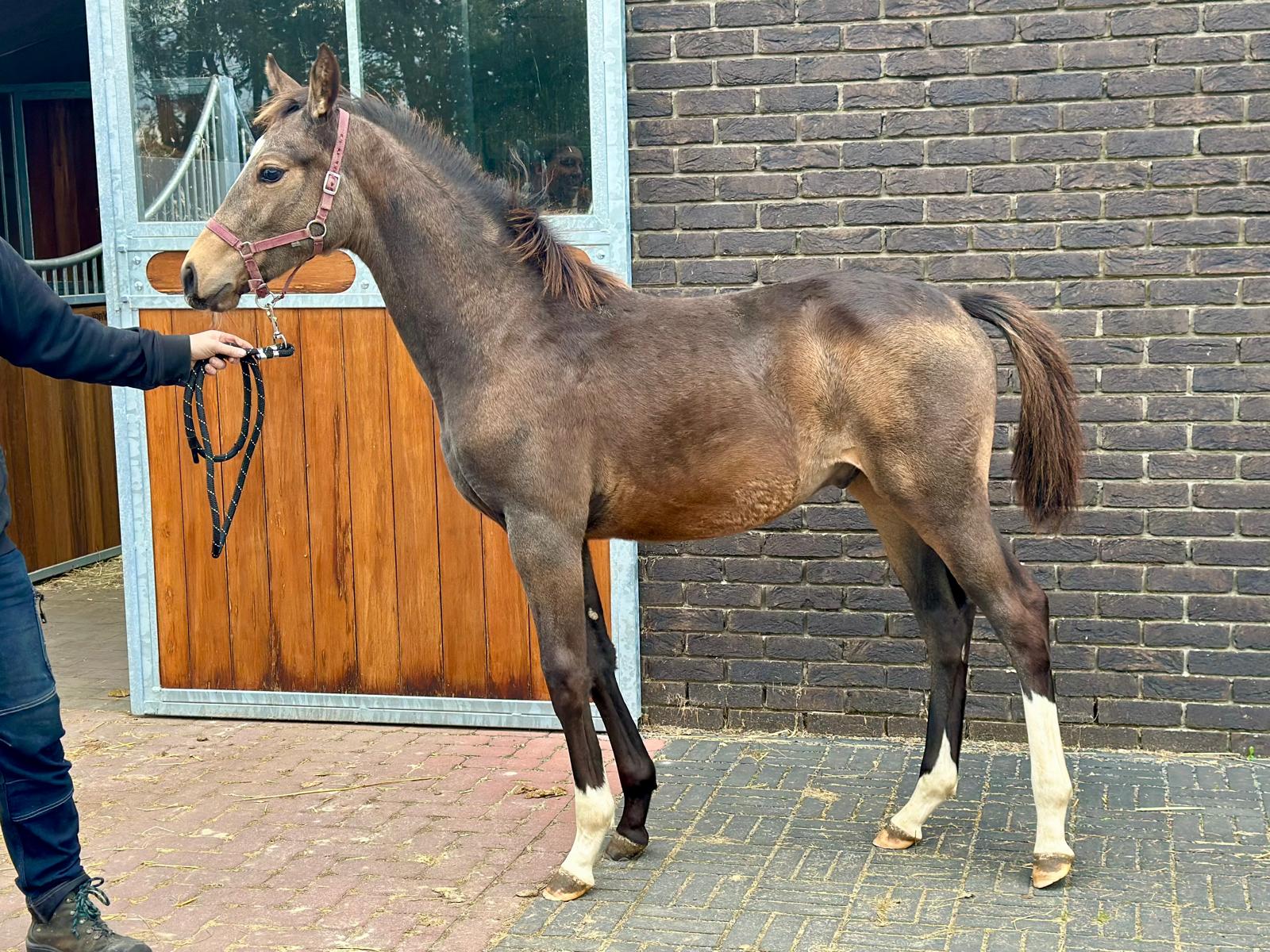 César van het Waterblok – 2025 hengstveulen uit Unicum van de Donkhoeve x Sanne van het Waterblok César van het Waterblok is een veelbelovend BWP-hengstveulen met uitstraling, een sterk fundament en drie correcte, soepele basisgangen. Hij combineert in zijn pedigree bewezen springbloed met moderne sportaanleg. Vader: Unicum van de Donkhoeve – een hengst die bekendstaat om zijn kracht, instelling en vermogen. Hij vererft deze kwaliteiten consequent aan zijn nakomelingen, die uitblinken in jonge paardenproeven en op hoger niveau. Moeder: Sanne van het Waterblok – een betrouwbare merrie die al meerdere correcte, werkwillige nakomelingen heeft gebracht. Ze stamt uit een prestatiegerichte moederlijn waarin sport en kwaliteit diep verankerd zijn. César toont nu al veel balans, een sterke achterhand en een natuurlijke galop met gedragenheid. Hij beweegt met souplesse en laat zich gemakkelijk hanteren. Het veulen is inmiddels enkele weken gespeend en gaat uitstekend aan de hand. César van het Waterblok – een hengstveulen met potentieel, uitstraling en een bloedlijn om van te dromen. César van het Waterblok – 2025 colt by Unicum van de Donkhoeve x Sanne van het Waterblok César van het Waterblok is a highly promising BWP colt with presence, a strong foundation, and three correct, supple basic gaits. His pedigree combines proven jumping blood with modern sport qualities. Sire: Unicum van de Donkhoeve – renowned for his power, attitude, and scope. He consistently passes these traits on to his offspring, who excel in young horse classes and at higher levels of competition. Dam: Sanne van het Waterblok – a reliable mare who has already produced several correct and willing foals. She descends from a performance-oriented dam line rich in sport genetics. César already shows excellent balance, a strong hind leg, and a naturally uphill, collected canter. He moves with suppleness and is easy to handle. Recently weaned, he is well-behaved and confident in hand. César van het Waterblok – a foal with potential, charisma, and a dream pedigree for the future. César van het Waterblok – Poulain mâle 2025 par Unicum van de Donkhoeve et Sanne van het Waterblok César van het Waterblok est un poulain BWP très prometteur, doté d’une belle allure, d’une ossature solide et de trois allures correctes et souples. Il réunit dans son pedigree du sang de saut d’obstacles éprouvé et un type sportif moderne. Père : Unicum van de Donkhoeve – célèbre pour sa puissance, sa mentalité et sa capacité, des qualités qu’il transmet régulièrement à sa descendance, performante aussi bien dans les épreuves de jeunes chevaux qu’à plus haut niveau. Mère : Sanne van het Waterblok – une jument fiable ayant déjà produit plusieurs poulains corrects et appliqués. Elle descend d’une lignée maternelle axée sur la performance, où le sport est inscrit dans les gènes. César montre déjà beaucoup d’équilibre, un arrière-main puissant et un galop naturel, ample et montant. Il se déplace avec souplesse et se montre facile à manipuler. Sevré depuis quelques semaines, il est très sage et confiant à la main. César van het Waterblok – un poulain au grand potentiel, plein de charme et issu d’une lignée de rêve. César van het Waterblok – Hengstfohlen 2025 von Unicum van de Donkhoeve x Sanne van het Waterblok César van het Waterblok ist ein äußerst vielversprechendes BWP-Hengstfohlen mit Ausstrahlung, solidem Fundament und drei korrekten, geschmeidigen Grundgangarten. Sein Pedigree vereint bewährtes Springblut mit modernen Sportgenen. Vater: Unicum van de Donkhoeve – bekannt für seine Kraft, Leistungsbereitschaft und sein Vermögen. Diese Eigenschaften vererbt er konsequent an seine Nachkommen, die sich sowohl in Jungpferdeprüfungen als auch auf höherem Niveau auszeichnen. Mutter: Sanne van het Waterblok – eine verlässliche Stute, die bereits mehrere korrekte, arbeitswillige Nachkommen hervorgebracht hat. Sie entstammt einer leistungsorientierten Mutterlinie mit starkem Sporthintergrund. César zeigt bereits jetzt viel Gleichgewicht, eine kräftige Hinterhand und einen natürlichen, bergauf gesprungenen Galopp. Er bewegt sich elastisch und lässt sich leicht im Umgang führen. César van het Waterblok – ein Fohlen mit großem Potenzial, Ausstrahlung und einer Traumabstammung für die Zukunft.