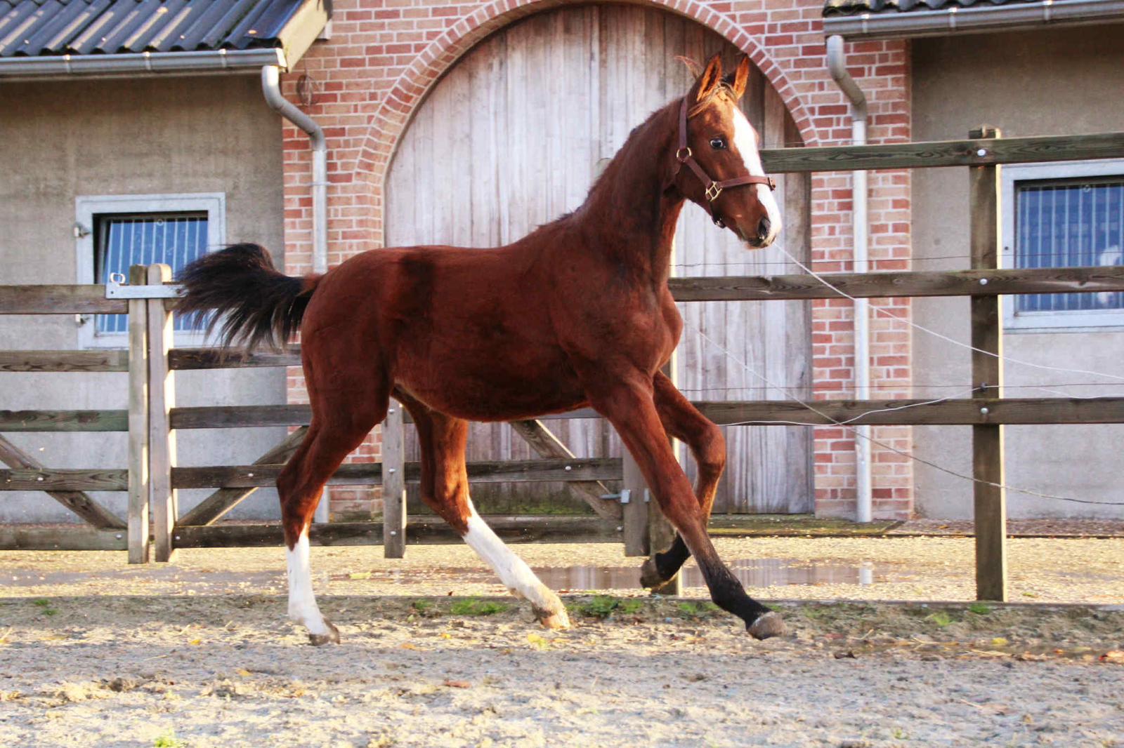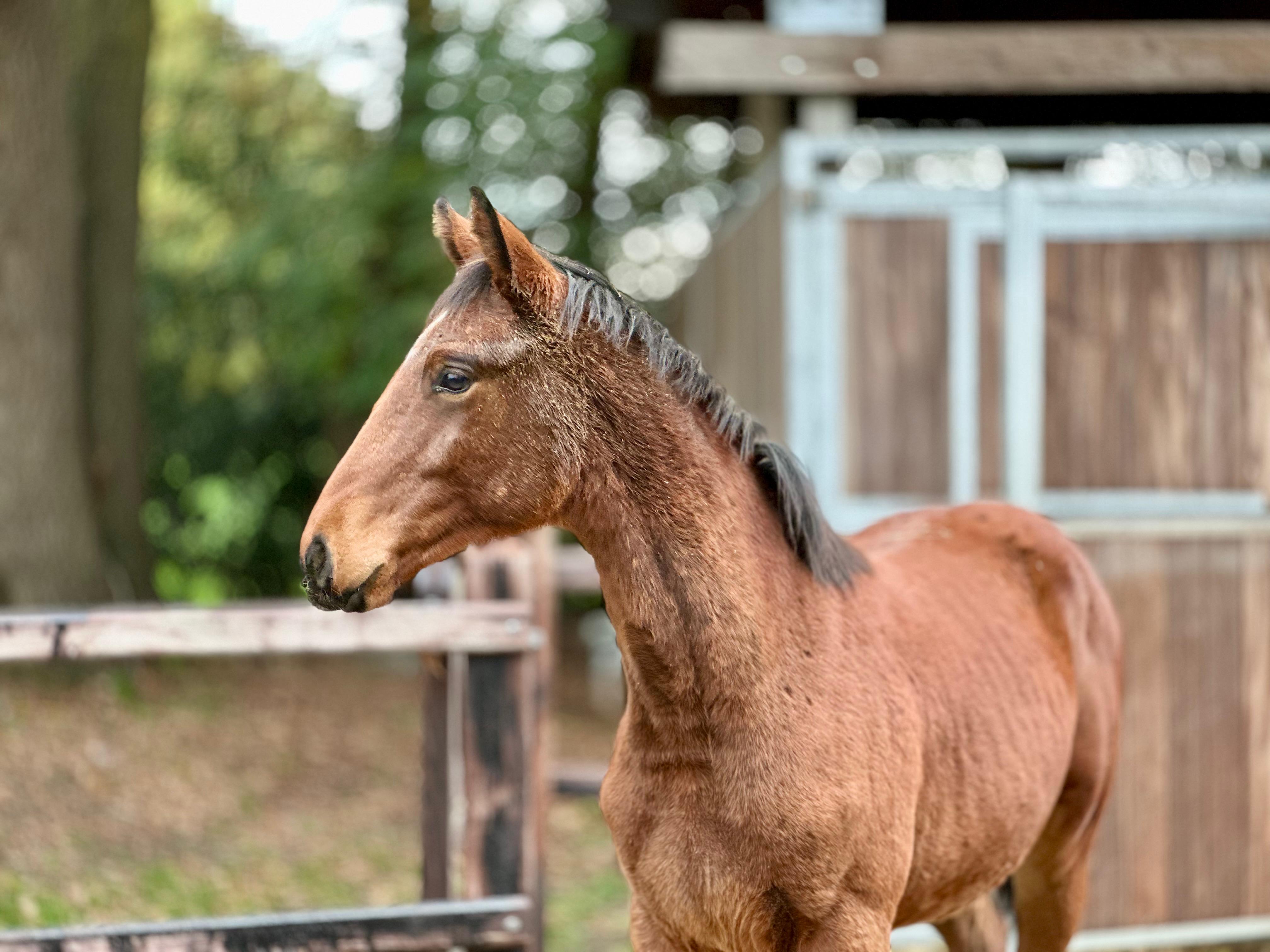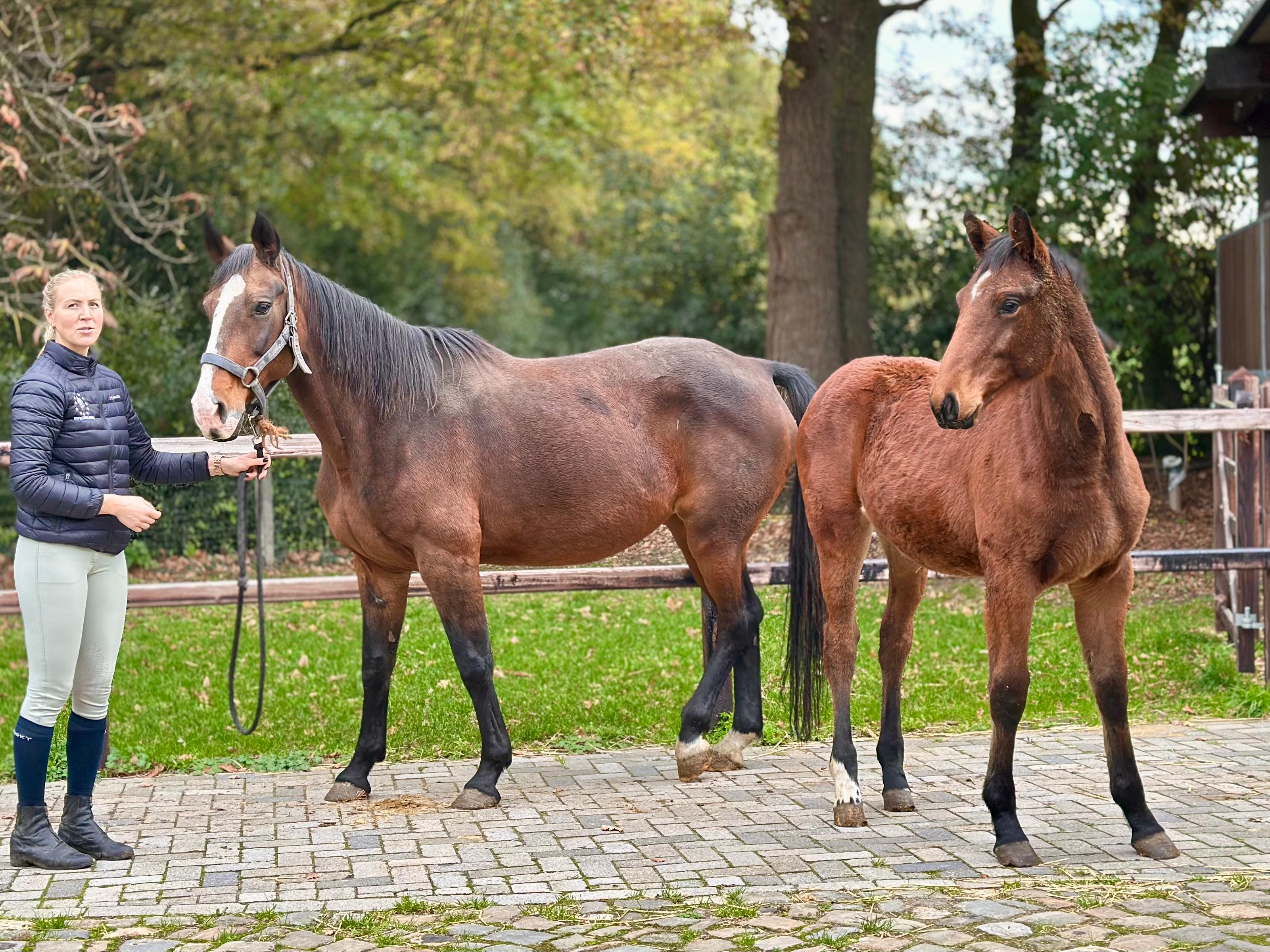 Bijzondere kans voor wie op zoek is naar toekomstig dressuurtalent! Deze elegante 2,5-jarige merrie combineert een moderne uitstraling met een werkwillig karakter en krachtige, soepele bewegingen. Vader: Escamilla Bravo – bekend om zijn expressieve bewegingen, fijne instelling en opvallende nakomelingen die excelleren in de sport. Moeder: Lilou Cherry B – een merrie met veel rasuitstraling, correcte bouw en een betrouwbare moederlijn met bewezen sportprestaties. Deze jonge merrie beweegt met veel balans, souplesse en kracht. Ze toont een sterk achterbeen en een natuurlijke zelfhouding, wat haar een veelbelovend talent maakt voor de toekomst. Met haar vriendelijke karakter en nieuwsgierige instelling is ze makkelijk in de omgang en klaar om verder opgeleid te worden. Amarallys heeft een correct exterieur en een moderne dressuuraanleg. Ze beweegt lichtvoetig en elastisch, is betrouwbaar op stal en beschikt over een nuchter, aangenaam karakter. Ze biedt veel potentie voor zowel de sport als de fokkerij. A unique opportunity for those seeking a future dressage talent! This elegant 2.5-year-old mare combines a modern appearance with a willing temperament and powerful, supple movement. Sire: Escamilla Bravo – known for his expressive gaits, excellent attitude, and outstanding offspring who excel in sport. Dam: Lilou Cherry B – a refined mare with correct conformation and a reliable dam line with proven sport performance. This young mare moves with balance, elasticity, and strength. She shows an active hind leg and natural self-carriage, making her a promising prospect for the future. With her kind and curious temperament, she is easy to handle and ready to continue her training. Amarallys has correct conformation and a modern dressage type. She moves lightly and elastically, is reliable in the stable, and has a calm, straightforward character. She offers great potential for both sport and breeding. Une occasion unique pour ceux qui recherchent un futur talent de dressage ! Cette élégante jument de 2 ans et demi allie une allure moderne à un tempérament volontaire et des mouvements puissants et souples. Père : Escamilla Bravo – réputé pour ses allures expressives, son bon mental et ses descendants remarquables qui excellent en compétition. Mère : Lilou Cherry B – une jument élégante, bien construite, issue d’une lignée maternelle fiable et performante. Cette jeune jument se déplace avec équilibre, souplesse et puissance. Elle montre un postérieur actif et une portance naturelle, ce qui en fait un talent très prometteur pour l’avenir. Avec son caractère doux et curieux, elle est facile à manipuler et prête à poursuivre son apprentissage. Amarallys présente un modèle correct et un type de dressage moderne. Elle se déplace avec légèreté et élasticité, est calme à l’écurie et possède un tempérament posé et fiable. Elle offre un grand potentiel tant pour le sport que pour l’élevage. Eine besondere Gelegenheit für alle, die ein zukünftiges Dressurtalent suchen! Diese elegante 2,5-jährige Stute vereint modernes Erscheinungsbild mit Arbeitswillen und kraftvollen, geschmeidigen Bewegungen. Vater: Escamilla Bravo – bekannt für seine ausdrucksstarken Bewegungen, sein gutes Temperament und Nachkommen, die im Sport überzeugen. Mutter: Lilou Cherry B – eine edle Stute mit korrektem Gebäude und einer verlässlichen Mutterlinie mit nachgewiesenen sportlichen Erfolgen. Diese junge Stute bewegt sich mit viel Gleichgewicht, Elastizität und Kraft. Sie zeigt ein aktives Hinterbein und natürliche Selbsthaltung – ein vielversprechendes Talent für die Zukunft. Mit ihrem freundlichen und neugierigen Wesen ist sie leicht im Umgang und bereit für die weitere Ausbildung. Amarallys hat ein korrektes Exterieur und einen modernen Dressurtyp. Sie bewegt sich leichtfüßig und elastisch, ist zuverlässig im Stall und hat ein ruhiges, ausgeglichenes Wesen. Sie bietet großes Potenzial sowohl für den Sport als auch für die Zucht.