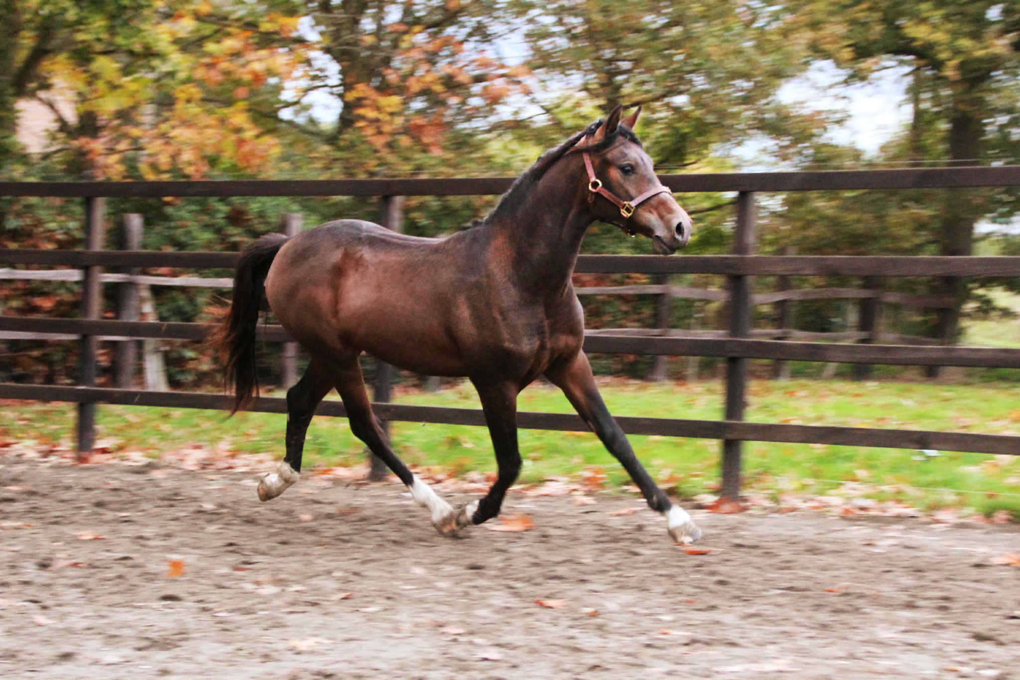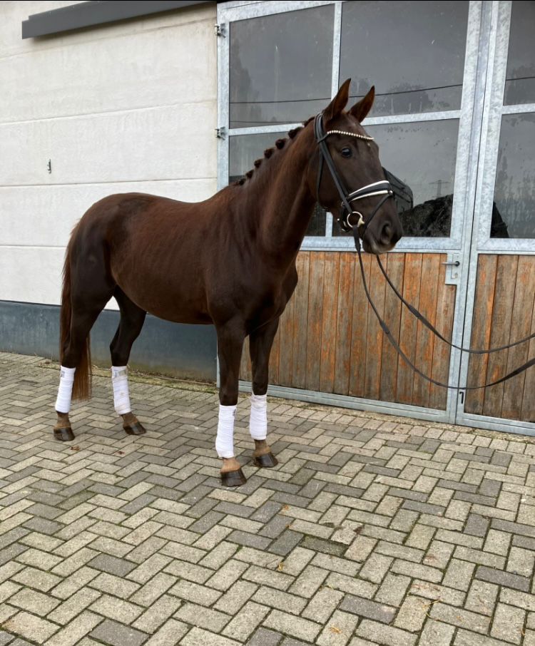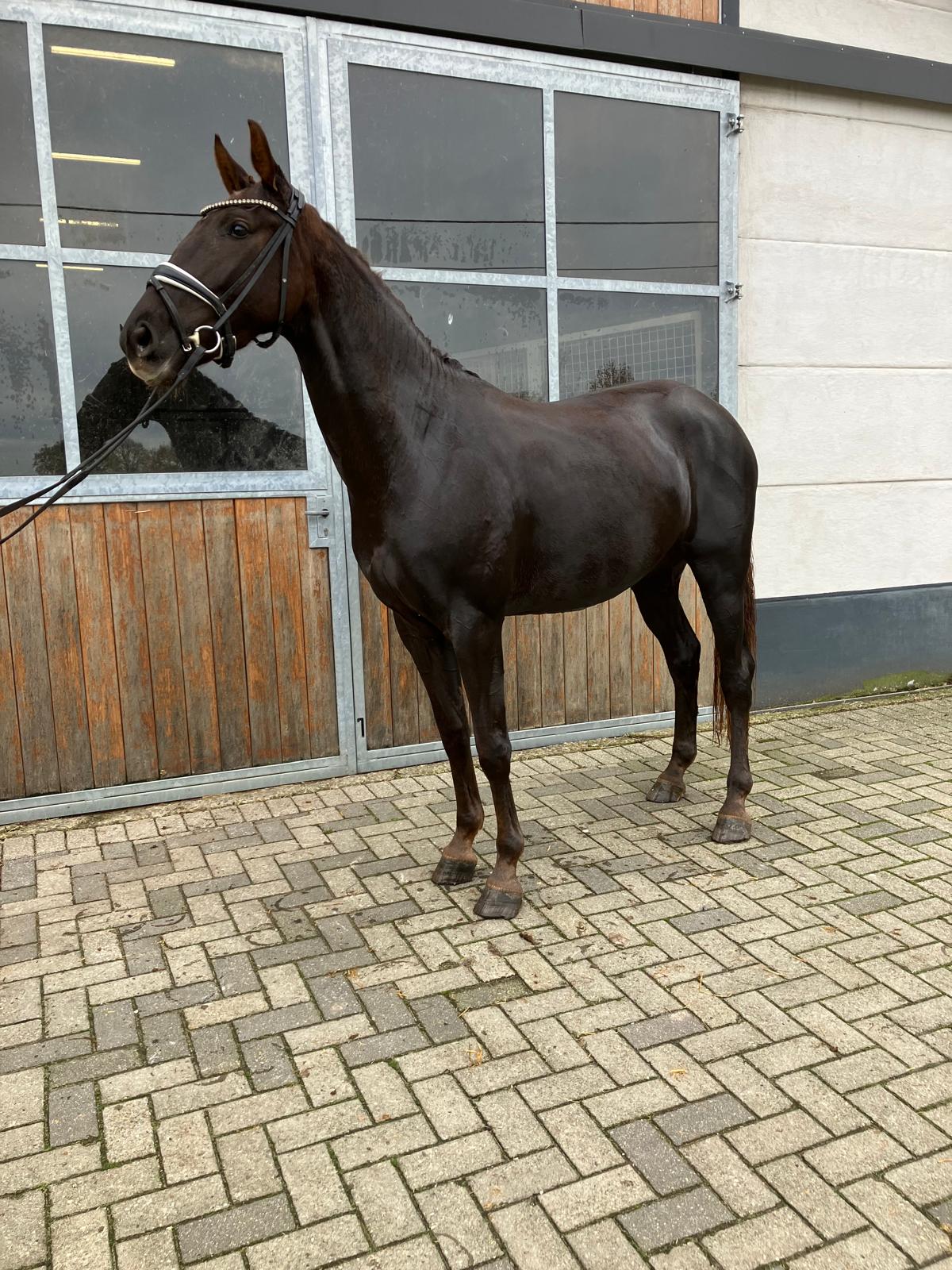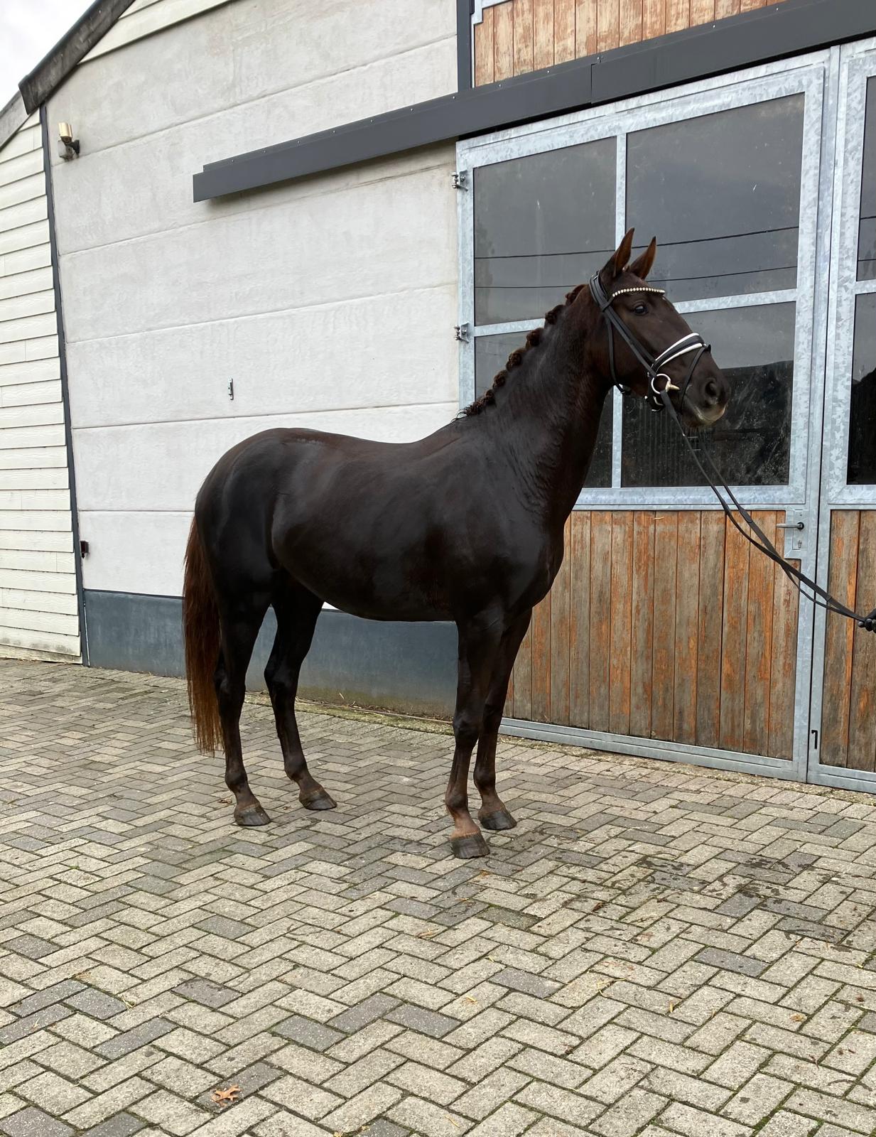 Prachtige 2,5-jarige BWP-dressuurmerrie uit Magic Boy x Nemora van de Paardenbloem Deze beeldschone, donkergekleurde BWP-merrie van 2,5 jaar combineert elegantie met een vriendelijk karakter en een veelbelovende dressuuraanleg. Ze komt rechtstreeks van de fokker en is met de grootste zorg opgegroeid. Vader: Magic Boy – een moderne dressuurhengst, bekend om zijn krachtige bewegingen, goede instelling en werkwillig karakter. Moeder: Nemora van de Paardenbloem – afkomstig uit een betrouwbare merrielijn die uitblinkt in nuchterheid, rijdbaarheid en natuurlijke souplesse. Deze jonge merrie beweegt met veel schwung, balans en souplesse in alle drie de gangen. Ze is correct gebouwd, heeft een aansprekend exterieur en een vriendelijk, meewerkend karakter — ideaal voor wie op zoek is naar een toekomstig sportpaard of fokmerrie met kwaliteit en uitstraling. Zeer braaf, nieuwsgierig en mensgericht. Rechtstreeks van de fokker - Een echte belofte voor de toekomst — zowel in de ring als in de fokkerij. Beautiful 2.5-year-old BWP dressage mare by Magic Boy x Nemora van de Paardenbloem This stunning dark-colored 2.5-year-old BWP mare combines elegance with a kind temperament and promising dressage potential. She comes directly from the breeder and has been raised with excellent care. Sire: Magic Boy – a modern dressage stallion known for his powerful movements, willing attitude, and excellent rideability. Dam: Nemora van de Paardenbloem – from a reliable mare line renowned for its calm nature, rideability, and natural suppleness. This young mare shows expressive, balanced, and supple movement in all three gaits. She is correctly built, beautifully proportioned, and has a kind, cooperative character — the ideal choice for someone seeking a future sport or broodmare with both quality and presence. Very gentle, curious, and people-oriented. Directly from the breeder - A true promise for the future — both in the arena and in breeding. Magnifique jument de dressage BWP de 2 ans et demi, par Magic Boy et Nemora van de Paardenbloem Cette superbe jument BWP, de couleur foncée et âgée de 2 ans et demi, allie élégance, bon caractère et un grand potentiel pour le dressage. Elle provient directement de l’éleveur et a grandi dans d’excellentes conditions. Père : Magic Boy – un étalon de dressage moderne, reconnu pour la puissance de ses allures, sa bonne volonté et sa facilité sous la selle. Mère : Nemora van de Paardenbloem – issue d’une lignée maternelle fiable, réputée pour son tempérament calme, sa souplesse et sa facilité de travail. Cette jeune jument se déplace avec beaucoup d’énergie, d’équilibre et d’élégance dans ses trois allures. Bien construite, harmonieuse et dotée d’un caractère doux et coopératif, elle conviendra parfaitement à un cavalier ou un éleveur recherchant une future jument de sport ou d’élevage de grande qualité. Très gentille, curieuse et proche de l’homme. Directement de l’éleveur - Une véritable promesse pour l’avenir – aussi bien en compétition qu’à l’élevage. Wunderschöne 2,5-jährige BWP-Dressurstute von Magic Boy x Nemora van de Paardenbloem Diese bildhübsche, dunkelgefärbte 2,5-jährige BWP-Stute vereint Eleganz, ein freundliches Wesen und vielversprechendes Dressurpotenzial. Sie kommt direkt vom Züchter und wurde stets mit bester Fürsorge aufgezogen. Vater: Magic Boy – ein moderner Dressurhengst, bekannt für seine kraftvollen Bewegungen, Arbeitsfreude und ausgezeichnete Rittigkeit. Mutter: Nemora van de Paardenbloem – aus einer verlässlichen Mutterlinie, die sich durch Gelassenheit, Rittigkeit und natürliche Geschmeidigkeit auszeichnet. Diese junge Stute zeigt schwungvolle, elastische und ausgeglichene Bewegungen in allen drei Grundgangarten. Sie ist korrekt gebaut, besitzt ein ansprechendes Exterieur und ein freundliches, kooperatives Wesen – ideal für Reiter oder Züchter, die ein zukünftiges Sport- oder Zuchtpferd mit Qualität und Ausstrahlung suchen. Sehr brav, neugierig und menschenbezogen. Direkt vom Züchter - Ein echtes Versprechen für die Zukunft – im Sport ebenso wie in der Zucht.