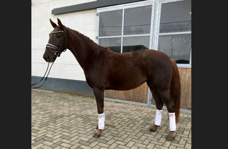 Topaas NS is een elegante merrie, geboren in 2022, met een uitzonderlijke dressuurafstamming. Haar vader is Total Hope, de veelbelovende zoon van Totilas, die een indrukwekkende 10e plaats behaalde op de Olympische Spelen in Parijs. Aan moederszijde voert Topaas eveneens topbloed: haar grootmoeder Kefraya presteert op Intermediaire I-niveau, terwijl haar overgrootmoeder Vradin succesvol was op Internationaal Grand Prix-niveau. Topaas is inmiddels vier maanden zadelmak en netjes aangereden. Ze toont veel werklust, een fijn karakter en drie correcte, expressieve basisgangen. Haar stokmaat bedraagt circa 1.62–1.63 meter. Een jonge merrie met een gouden toekomst in de dressuursport. Topaas NS is a beautiful mare, born in 2022, with an exceptional dressage pedigree. Her sire is Total Hope, a talented son of Totilas, who achieved an impressive 10th place at the Olympic Games in Paris. On the dam’s side, Topaas also carries outstanding bloodlines: her granddam Kefraya competes at Intermediaire I level, and her great-granddam Vradin successfully performed at International Grand Prix level. Topaas has been under saddle for four months and is nicely started. She shows a great willingness to work, a pleasant character, and three expressive, correct gaits. Her height is approximately 1.62–1.63 m. A young mare with a bright future in dressage. Topaas NS est une magnifique jument née en 2022, dotée d’une lignée exceptionnelle pour le dressage. Son père est Total Hope, le talentueux fils de Totilas, qui a obtenu une remarquable 10e place aux Jeux Olympiques de Paris. Du côté maternel, Topaas présente également des origines prestigieuses : sa grand-mère Kefraya concourt au niveau Intermédiaire I, et son arrière-grand-mère Vradin a évolué avec succès au niveau Grand Prix International. Topaas est débourrée depuis quatre mois et travaille déjà très correctement sous la selle. Elle montre beaucoup de bonne volonté, un excellent tempérament et trois allures expressives et régulières. Sa taille est d’environ 1,62–1,63 m. Une jeune jument prometteuse pour le dressage de haut niveau. Topaas NS ist eine elegante Stute, geboren 2022, mit einer hervorragenden Dressurabstammung. Ihr Vater ist Total Hope, der talentierte Sohn von Totilas, der bei den Olympischen Spielen in Paris den 10. Platz belegte. Auch mütterlicherseits verfügt Topaas über beste Gene: Ihre Großmutter Kefraya startet auf Intermediaire I-Niveau, und ihre Urgroßmutter Vradin war erfolgreich auf internationalem Grand-Prix-Niveau. Topaas ist seit vier Monaten angeritten und gut unter dem Sattel gearbeitet. Sie zeigt viel Arbeitsbereitschaft, ein angenehmes Wesen und drei korrekte, ausdrucksstarke Grundgangarten. Ihre Stockmaß beträgt etwa 1,62–1,63 m. Eine junge Stute mit viel Potenzial für die Dressursportzukunft.