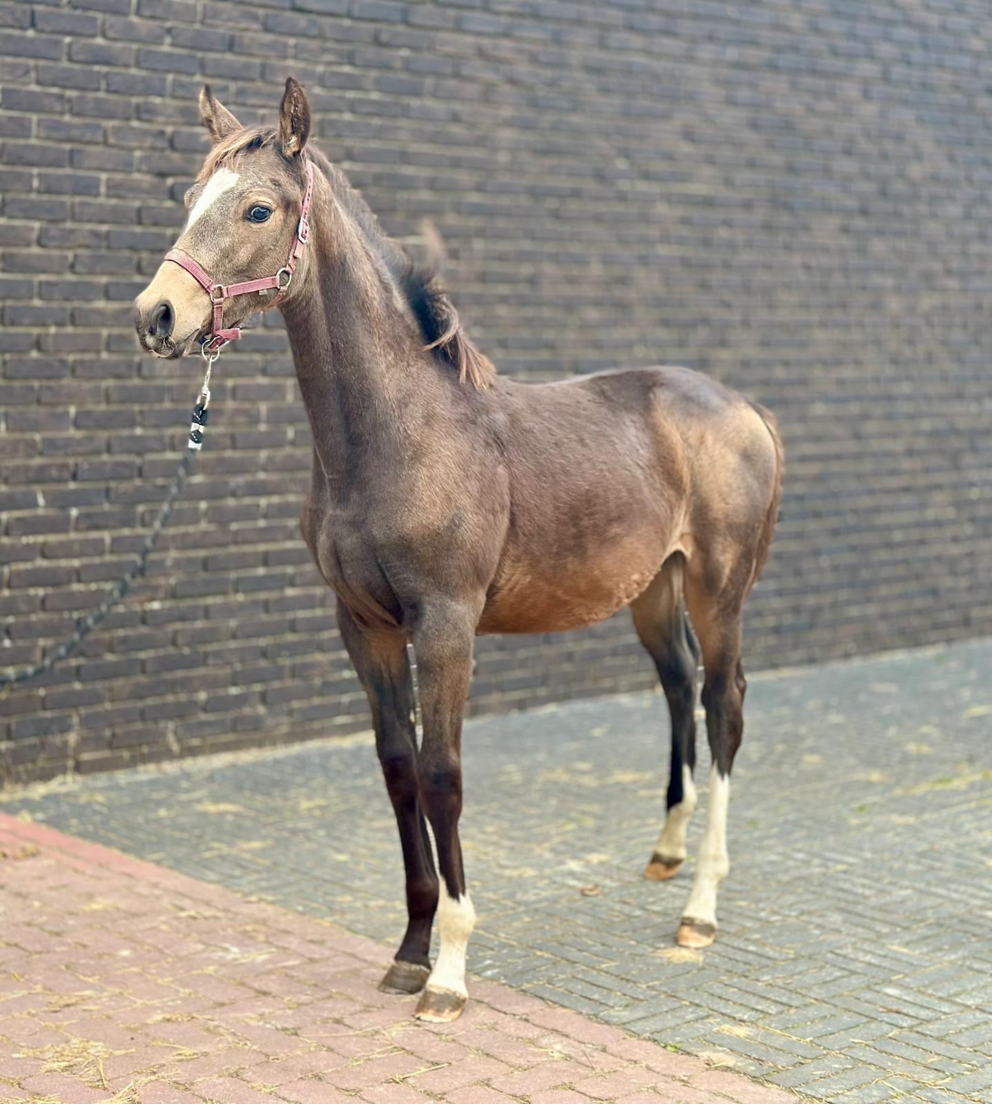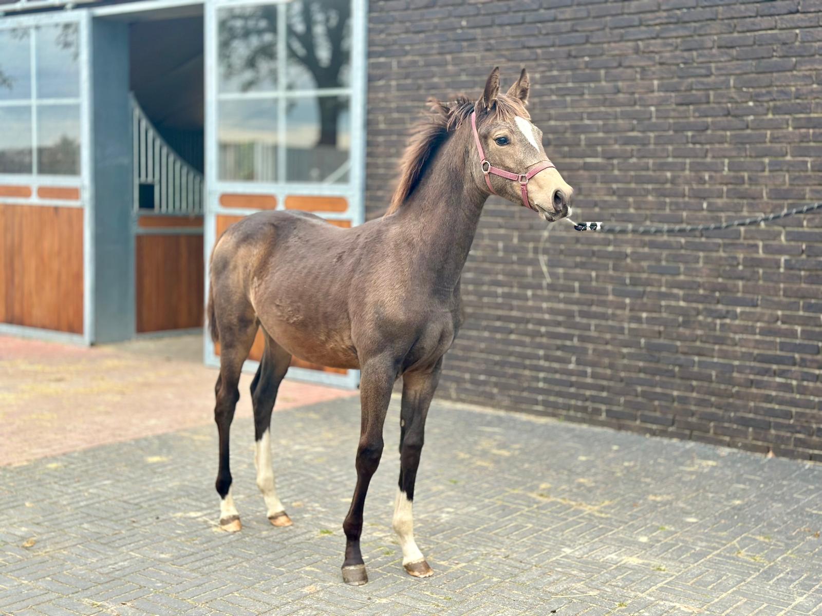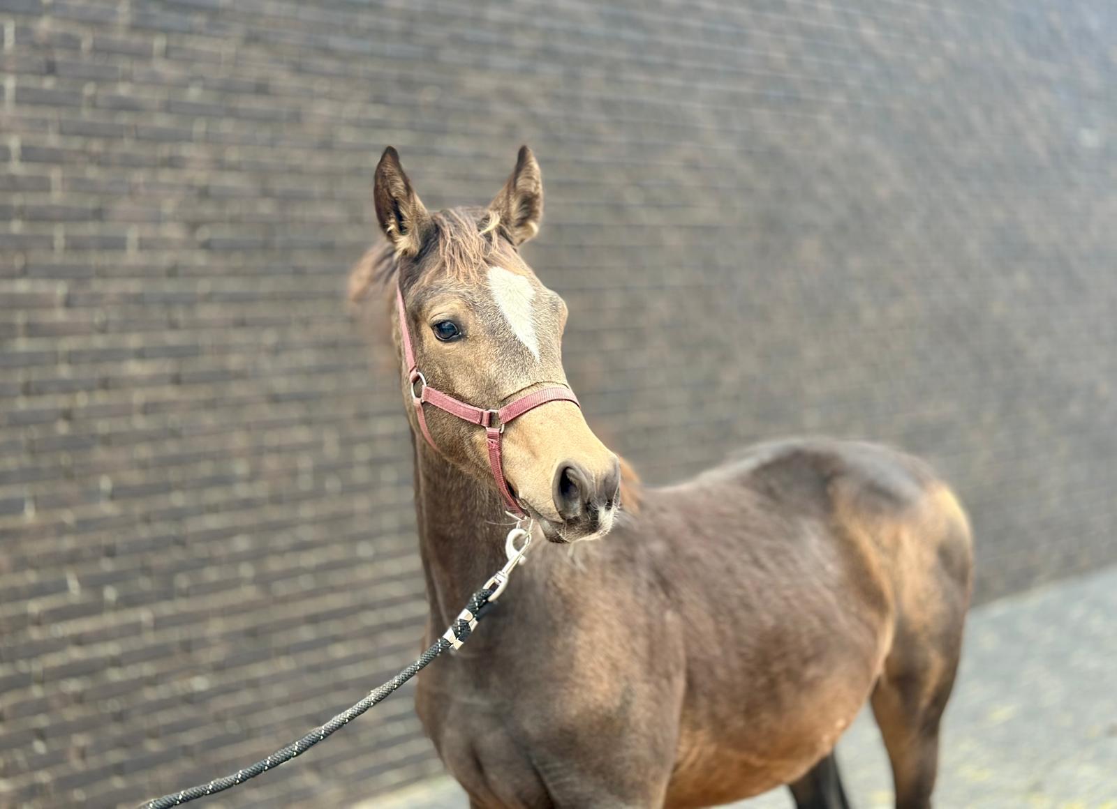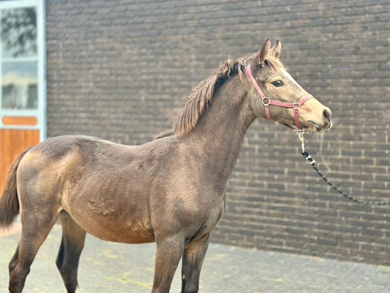 Twix – Jonge pony merrie met stamboek en opvallende kleur Twix is een charmante jonge merrie die met haar bijzondere kleur en correcte bouw meteen de aandacht trekt. Afkomstig van de bekende hengst Bailey’s and Cream, staat ze garant voor kwaliteit, uitstraling en werkwilligheid. Haar moeder, Vegas des Oliviers, brengt extra maat, souplesse en een betrouwbaar karakter mee – een combinatie die Twix zeer geschikt maakt voor zowel sport als fokkerij. Ze valt op door haar aansprekende model, correct fundament en elegante beweging. In de omgang is Twix vriendelijk, leergierig en werkwillig, met een blikvanger van een kleur die haar een unieke uitstraling geeft. Twix – een jonge merrie met uitstraling, kwaliteit en toekomstperspectief – een echte parel voor sport of fokkerij! Twix – Young pony mare with papers and striking colour Twix is a charming young mare who immediately catches the eye with her unique colour and correct conformation. Sired by the renowned Bailey’s and Cream, she guarantees quality, presence, and willingness to work. Her dam, Vegas des Oliviers, contributes size, suppleness, and a reliable temperament, making Twix an ideal prospect for both sport and breeding. She stands out for her beautiful type, correct build, and elegant movement. Twix is kind, eager to learn, and motivated, with a striking coat colour that gives her a truly unique appearance. Twix – a young mare with beauty, quality, and great potential – a real gem for sport or breeding! Twix – Jeune ponette avec papiers et robe remarquable Twix est une jeune ponette pleine de charme, qui attire immédiatement l’attention par sa robe exceptionnelle et sa construction harmonieuse. Fille de l’étalon reconnu Bailey’s and Cream, elle allie qualité, élégance et bonne volonté. Sa mère, Vegas des Oliviers, apporte de la taille, de la souplesse et un caractère fiable, faisant de Twix une jument idéale aussi bien pour le sport que pour l’élevage. Elle se distingue par son modèle attrayant, son aplomb correct et sa démarche élégante. Douce, curieuse et appliquée, Twix possède une robe unique qui renforce encore son charisme. Twix – une jeune ponette pleine d’avenir, élégante et attachante – un véritable atout pour le sport ou la reproduction ! Twix – Junge Pony-Stute mit Abstammung und auffälliger Farbe Twix ist eine charmante junge Stute, die mit ihrer außergewöhnlichen Farbe und korrekten Körperstruktur sofort ins Auge fällt. Ihr Vater, der bekannte Bailey’s and Cream, steht für Qualität, Ausstrahlung und Leistungsbereitschaft. Die Mutter, Vegas des Oliviers, bringt Größe, Geschmeidigkeit und ein zuverlässiges Temperament mit – eine ideale Kombination für Sport und Zucht. Twix überzeugt durch ihr ansprechendes Exterieur, ihr korrektes Fundament und ihre eleganten Bewegungen. Sie ist freundlich, lernfreudig und arbeitswillig, mit einer auffälligen Farbe, die sie zu einem echten Hingucker macht. Twix – eine junge Stute mit Ausstrahlung, Qualität und Zukunft – ein echtes Schmuckstück für Sport oder Zucht!